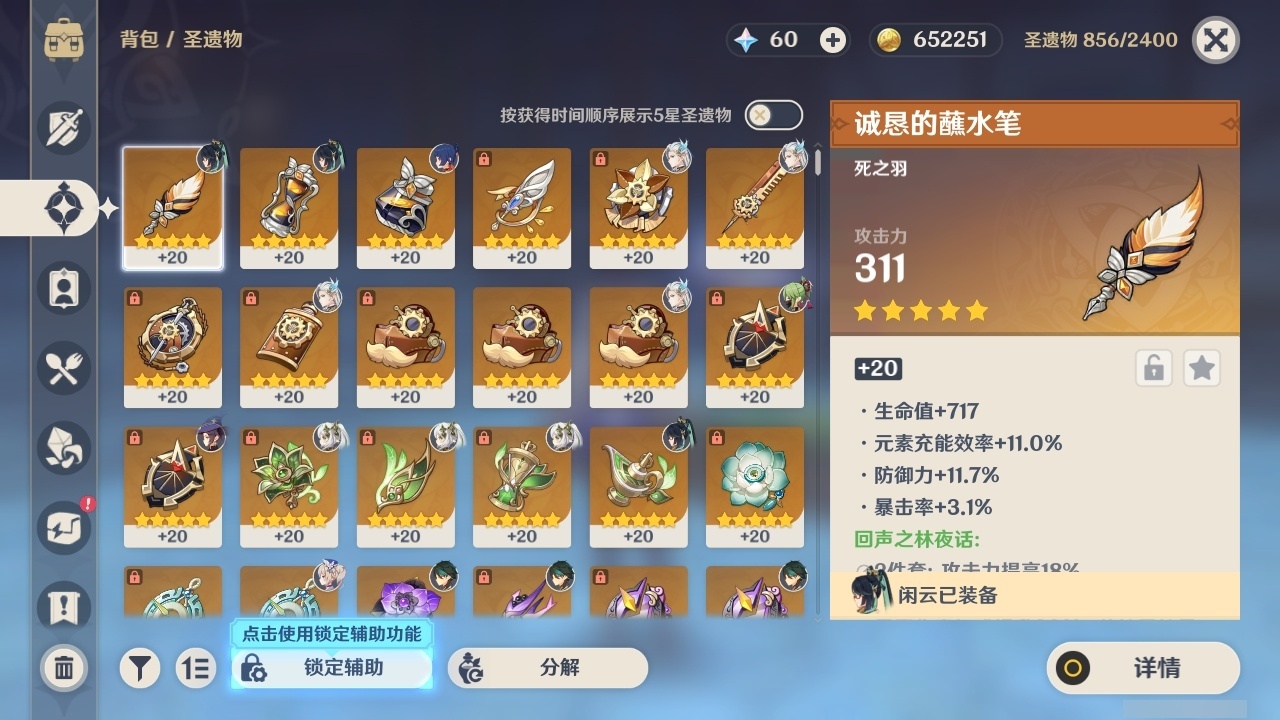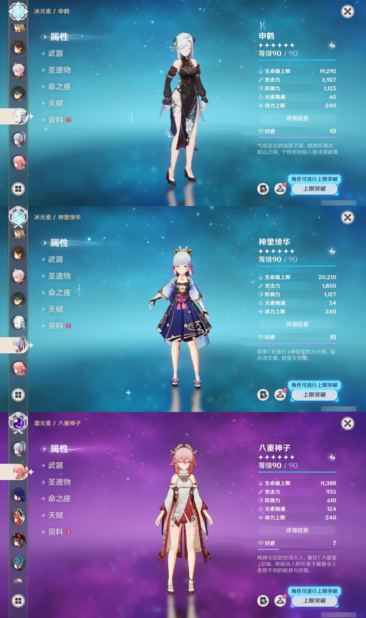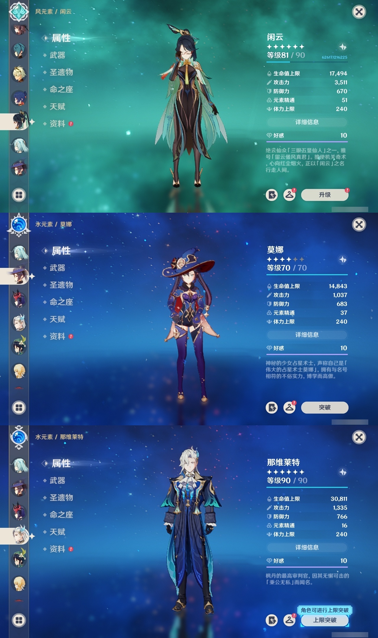 【原神】【lyys7539】冒险等级:58,五星数量:39,五星角色:迪卢克 2命莫娜 2命那维莱特 1命闲云 1命魈 1命七七 1命琴 1命神里绫华温迪迪希雅钟离申鹤八重神子夜兰娜维娅提纳里妮露纳西妲枫原万叶胡桃刻晴雷电将军__五星武器:鹤鸣余音阿莫斯之弓风鹰剑和璞鸢护摩之杖狼的末路磐岩结绿四风原典天空之傲天空之脊天空之翼薙草之稻光终末嗟叹之诗息灾圣显之钥千夜浮梦__四星角色:班尼特 6命行秋 6命香菱 6命珐露珊 6命凝光 6命砂糖 6命芭芭拉 6命早柚 6命烟绯 6命重云 6命辛焱 6命诺艾尔 6命罗莎莉亚 6命嘉明 6命九条裟罗 5命迪奥娜 4命鹿野院平藏 3命柯莱 3命云堇 3命雷泽 3命菲谢尔 3命北斗 3命多莉 2命托马 2命琳妮特 2命绮良良 1命莱依拉 1命坎蒂丝 1命五郎 1命菲米尼 1命夏沃蕾 1命赛索斯 1命埃洛伊卡齐娜久岐忍瑶瑶卡维