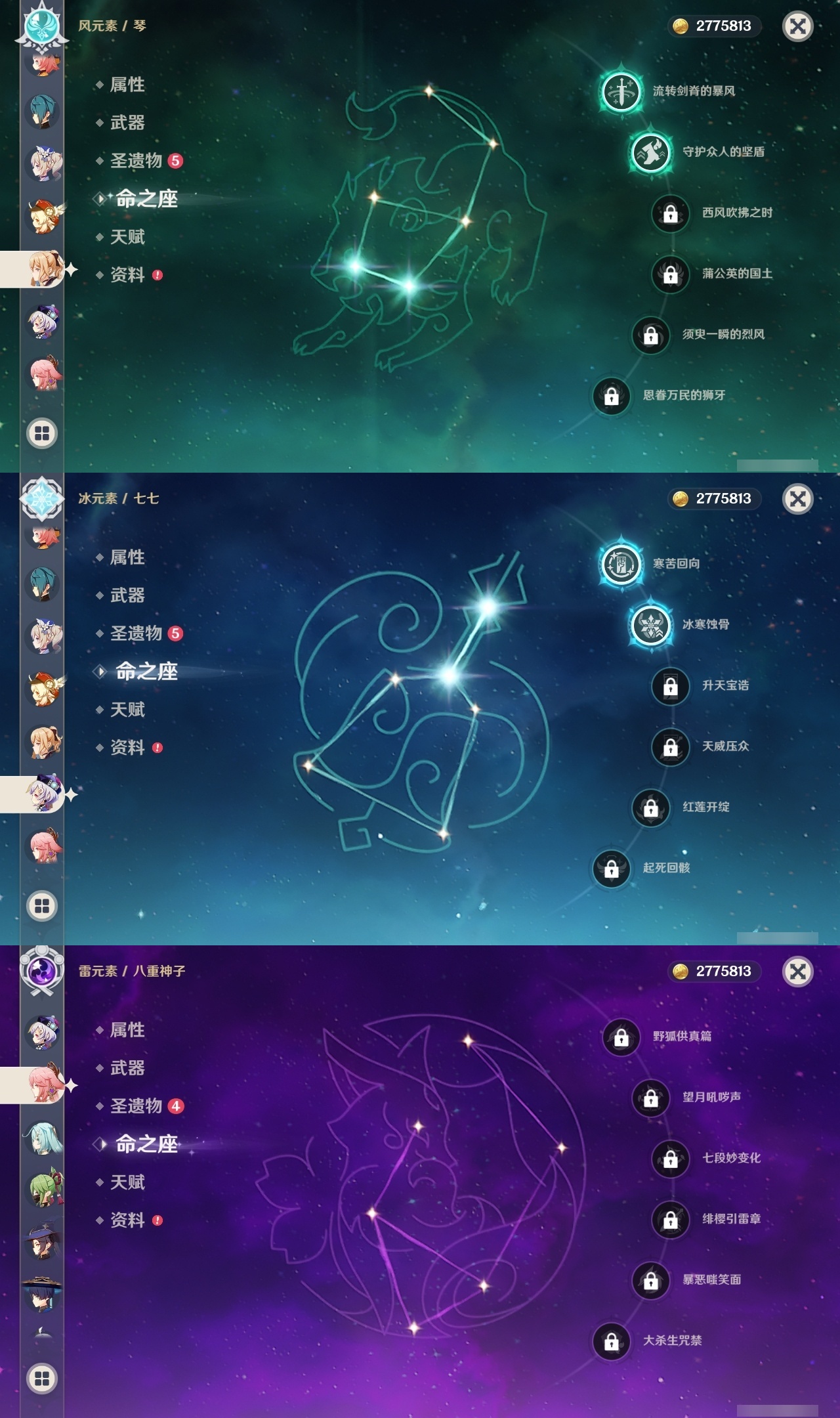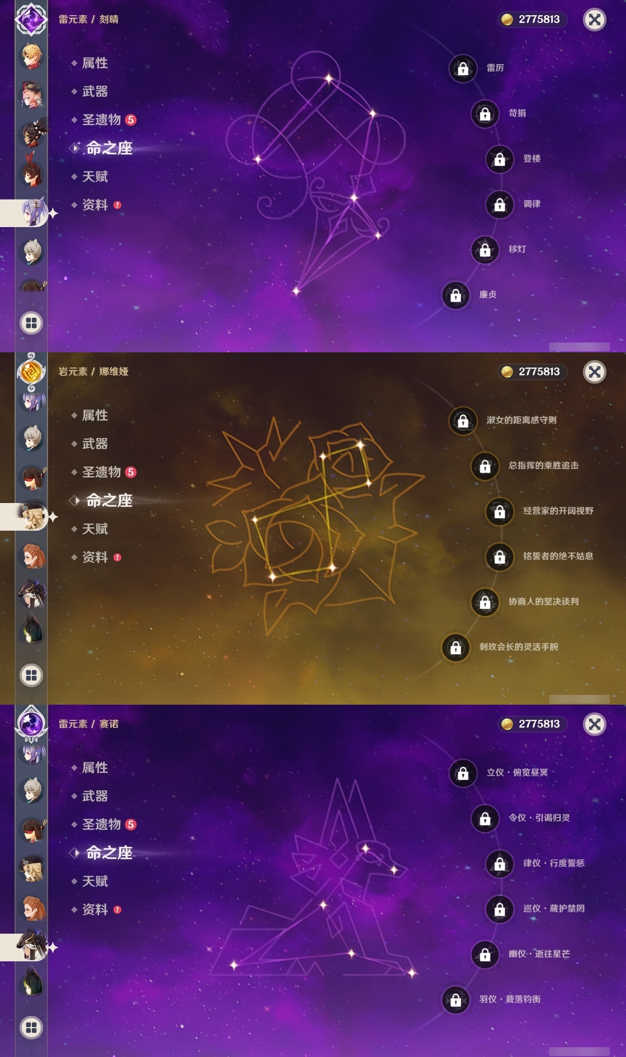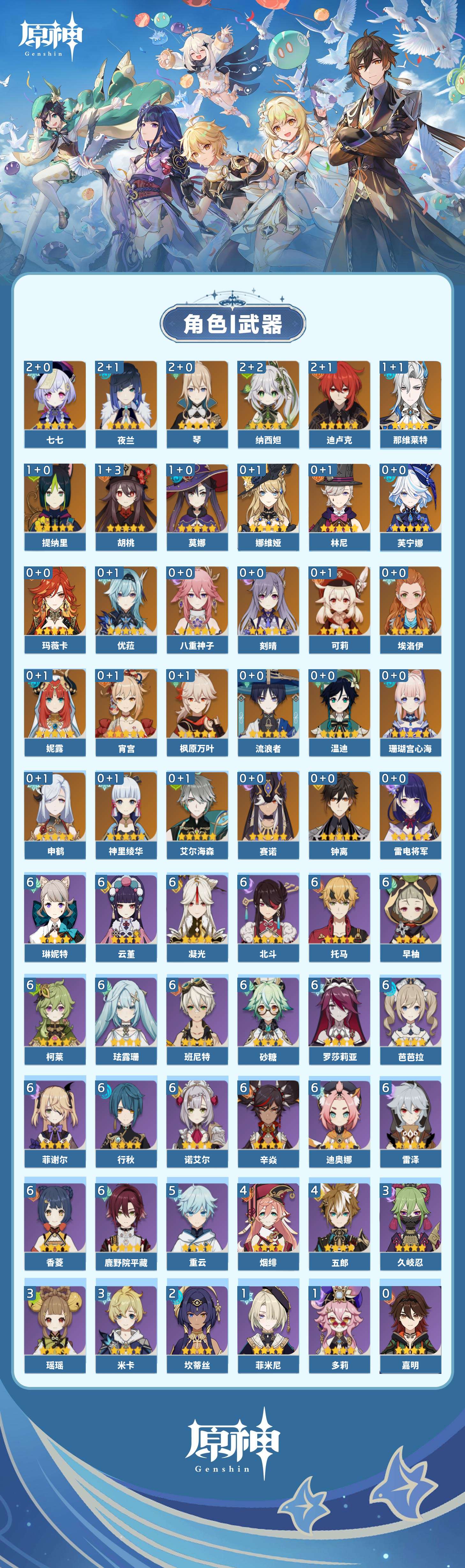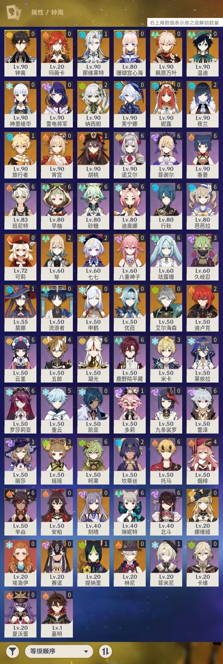 【原神】【lyys7610】冒险等级:59,五星数量:48,五星角色:迪卢克 2命七七 2命琴 2命夜兰 2命纳西妲 2命那维莱特 1命胡桃 1命莫娜 1命提纳里 1命珊瑚宫心海神里绫华温迪玛薇卡宵宫优菈钟离申鹤八重神子林尼芙宁娜娜维娅赛诺妮露艾尔海森流浪者枫原万叶可莉刻晴雷电将军__五星武器:护摩之杖 3精千夜浮梦 2精最初的大魔术万世流涌大典裁断裁叶萃光苍古自由之誓飞雷之弦振和璞鸢狼的末路四风原典松籁响起之时天空之傲雾切之回光息灾波乱月白经津若水圣显之钥__四星角色:班尼特 6命行秋 6命香菱 6命鹿野院平藏 6命珐露珊 6命凝光 6命迪奥娜 6命砂糖 6命柯莱 6命芭芭拉 6命云堇 6命早柚 6命托马 6命辛焱 6命诺艾尔 6命罗莎莉亚 6命雷泽 6命菲谢尔 6命北斗 6命琳妮特 6命重云 5命五郎 4命烟绯 4命久岐忍 3命瑶瑶 3命米卡 3命坎蒂丝 2命多莉 1命菲米尼 1命埃洛伊九条裟罗莱依拉卡维夏沃蕾嘉明