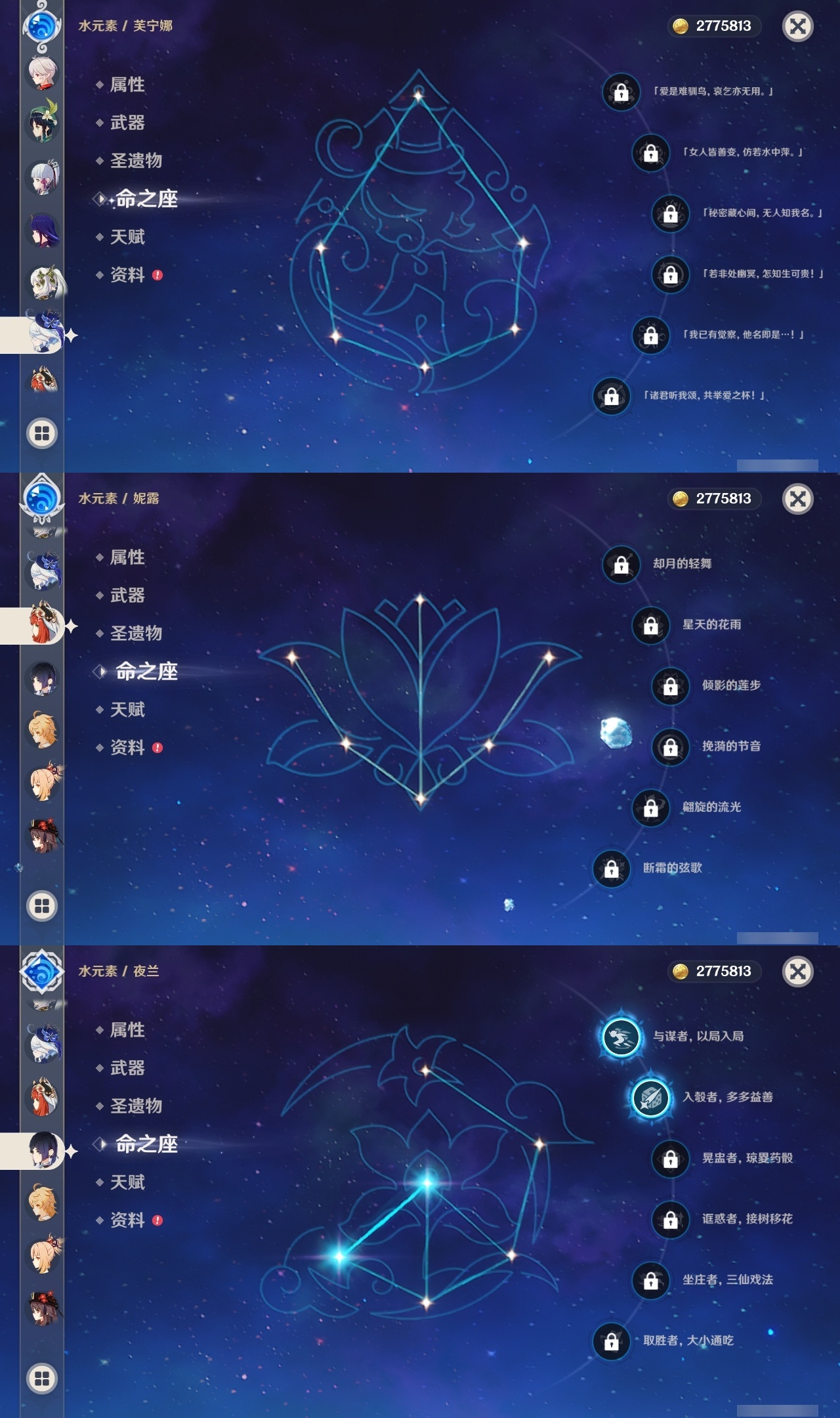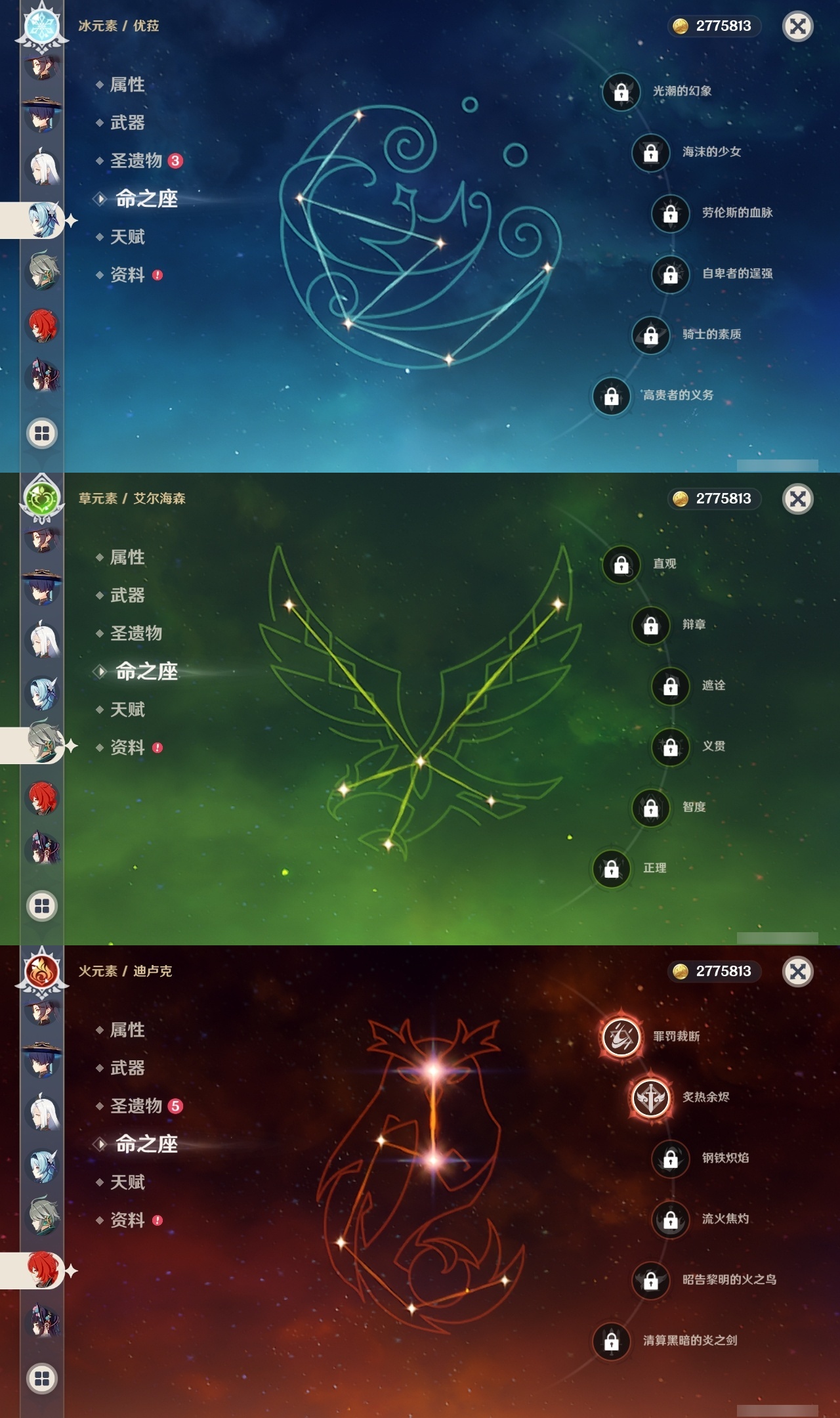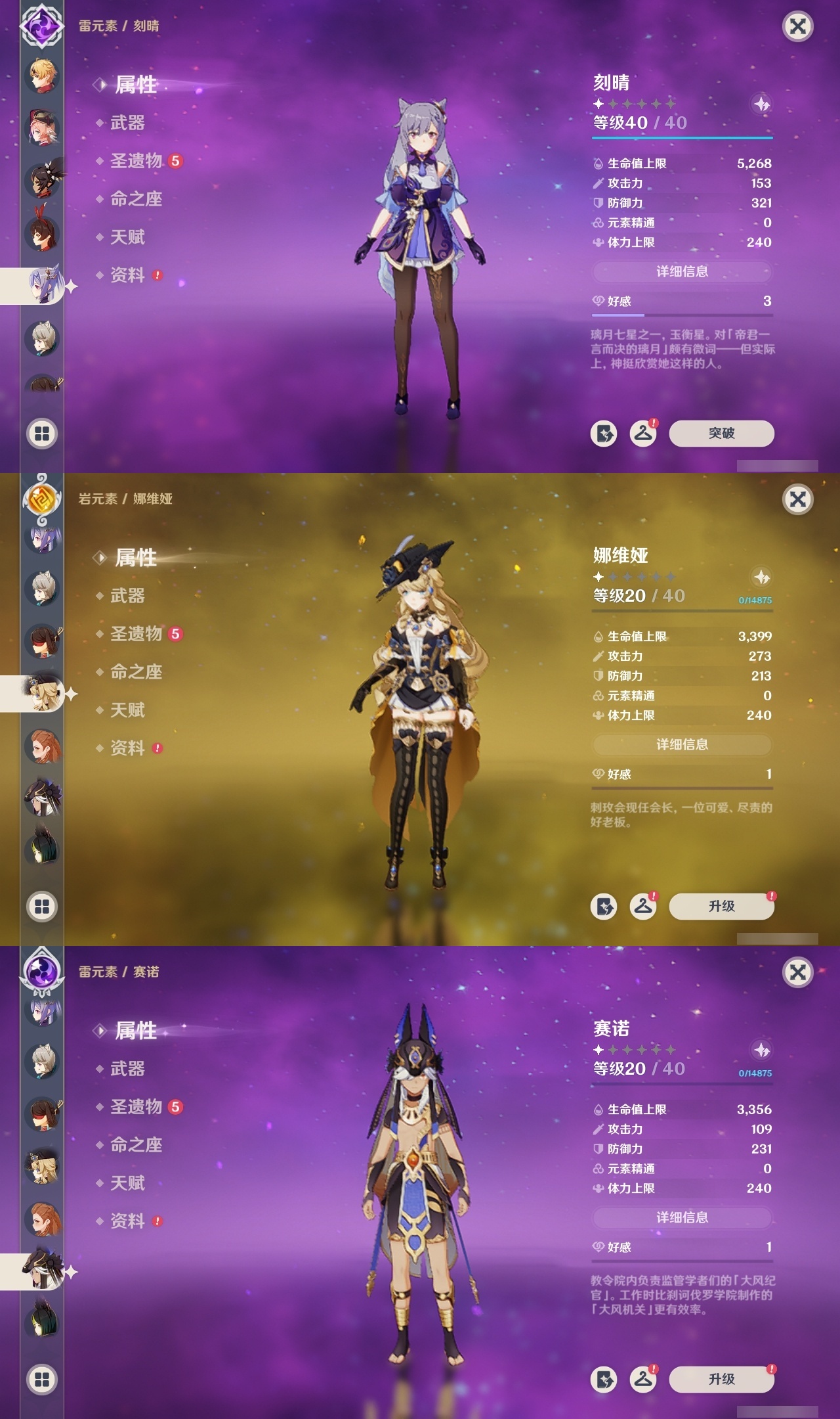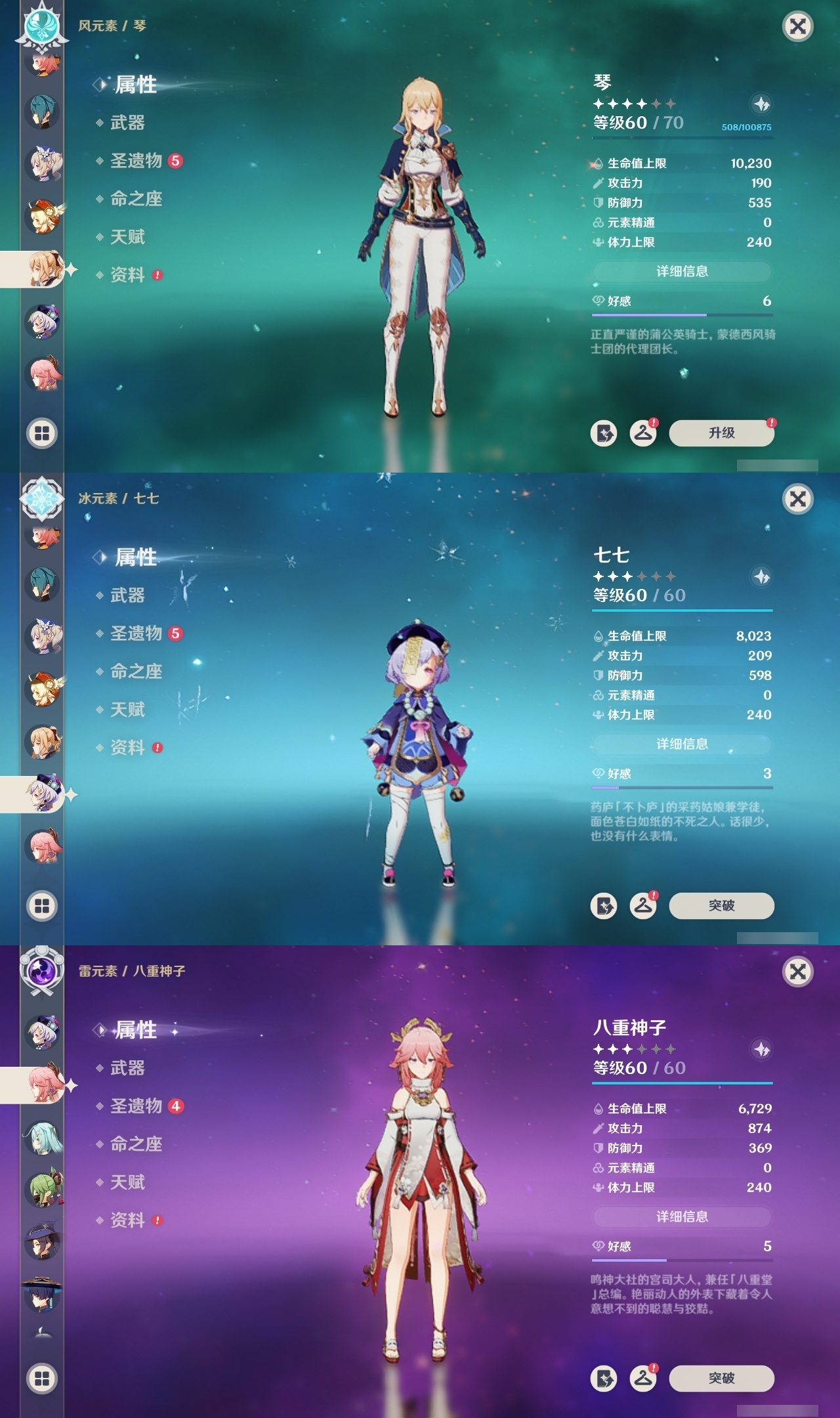 【原神】【lyys7610】冒险等级:59,五星数量:48,五星角色:迪卢克 2命七七 2命琴 2命夜兰 2命纳西妲 2命那维莱特 1命胡桃 1命莫娜 1命提纳里 1命珊瑚宫心海神里绫华温迪玛薇卡宵宫优菈钟离申鹤八重神子林尼芙宁娜娜维娅赛诺妮露艾尔海森流浪者枫原万叶可莉刻晴雷电将军__五星武器:护摩之杖 3精千夜浮梦 2精最初的大魔术万世流涌大典裁断裁叶萃光苍古自由之誓飞雷之弦振和璞鸢狼的末路四风原典松籁响起之时天空之傲雾切之回光息灾波乱月白经津若水圣显之钥__四星角色:班尼特 6命行秋 6命香菱 6命鹿野院平藏 6命珐露珊 6命凝光 6命迪奥娜 6命砂糖 6命柯莱 6命芭芭拉 6命云堇 6命早柚 6命托马 6命辛焱 6命诺艾尔 6命罗莎莉亚 6命雷泽 6命菲谢尔 6命北斗 6命琳妮特 6命重云 5命五郎 4命烟绯 4命久岐忍 3命瑶瑶 3命米卡 3命坎蒂丝 2命多莉 1命菲米尼 1命埃洛伊九条裟罗莱依拉卡维夏沃蕾嘉明