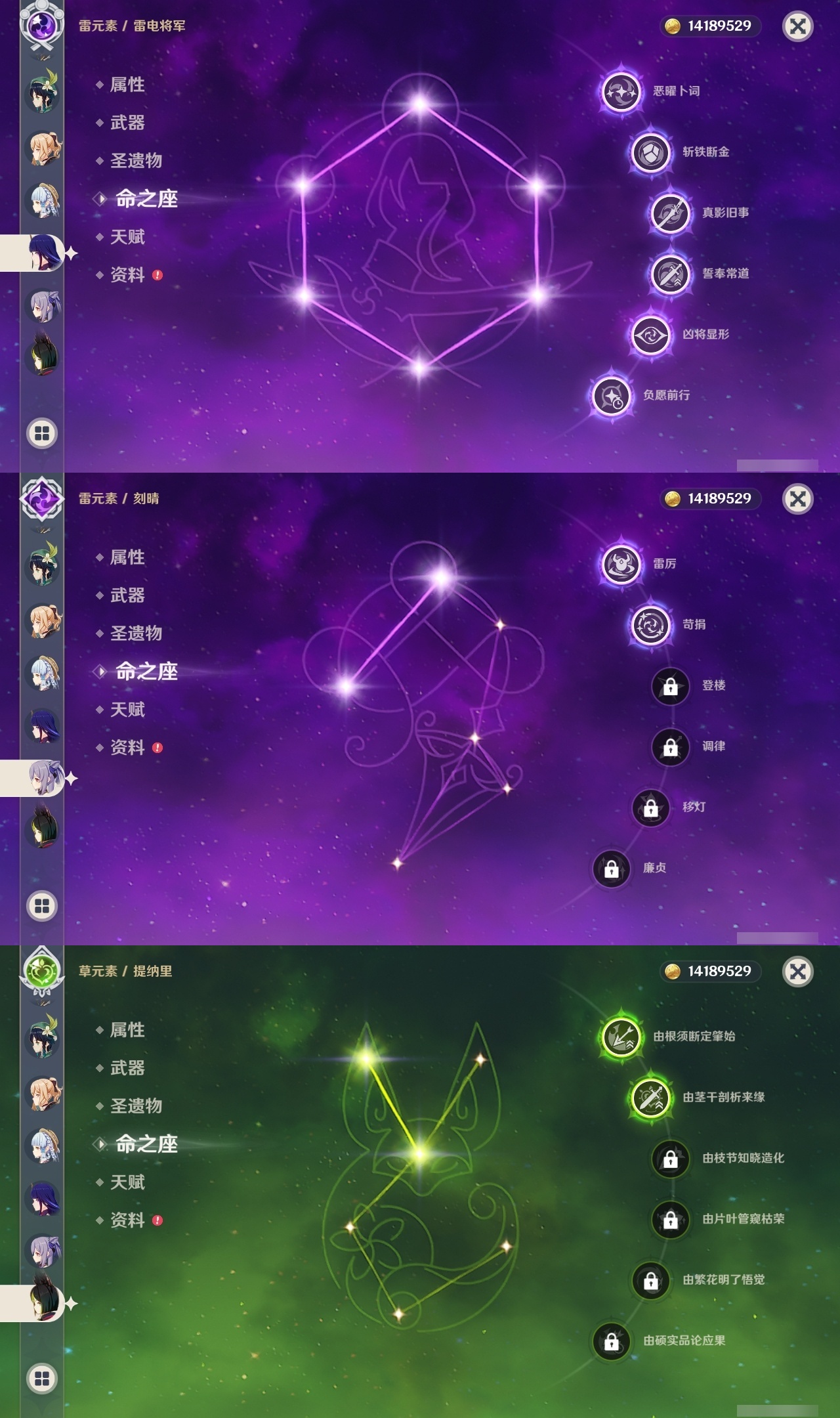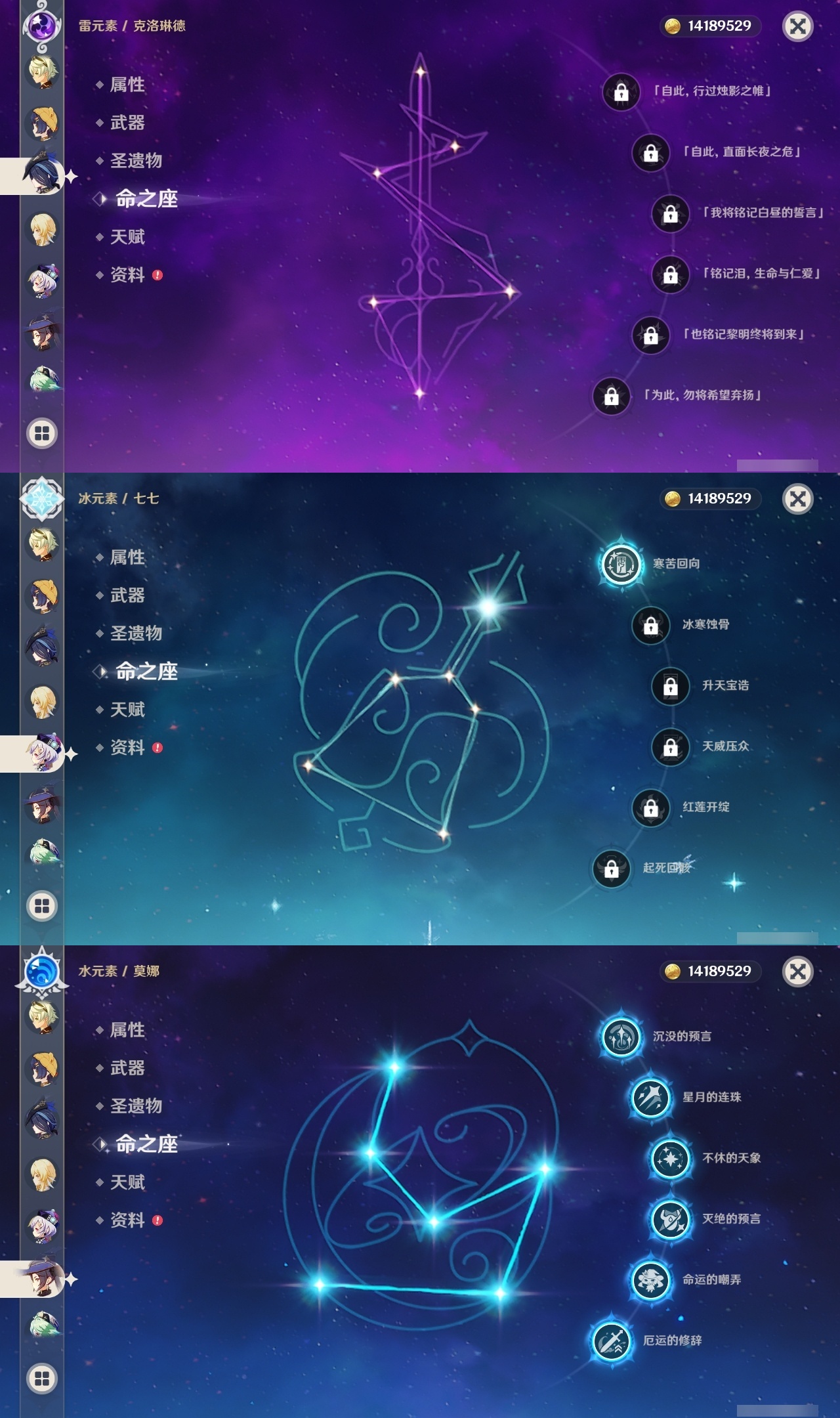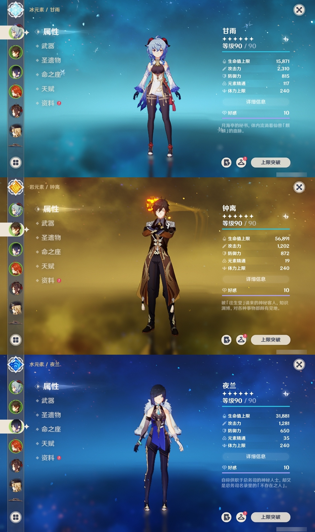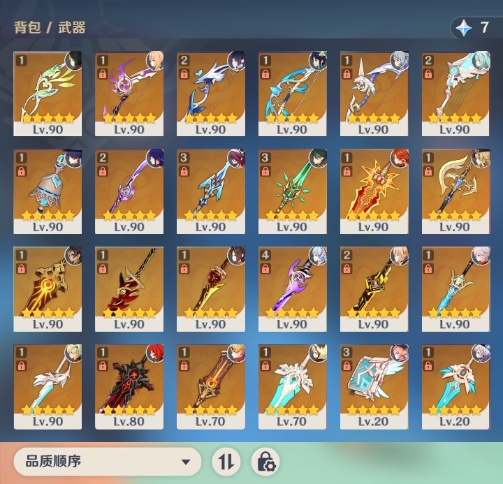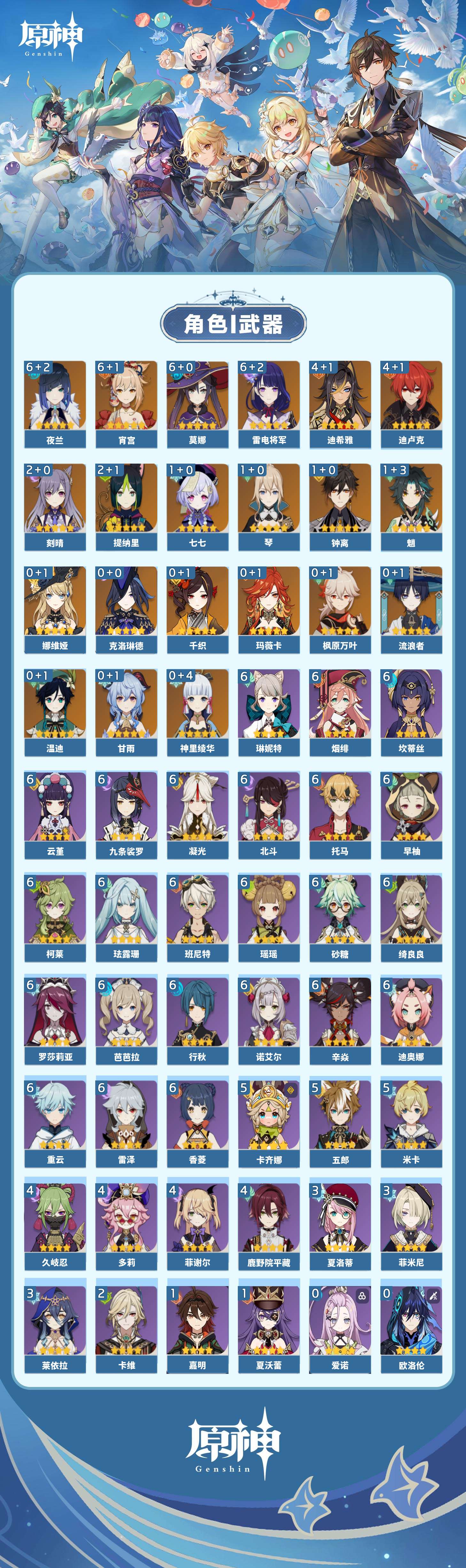 【原神】满命,冒险等级:60,五星数量:45,五星角色:雷电将军 6命莫娜 6命宵宫 6命夜兰 6命迪希雅 4命迪卢克 4命刻晴 2命提纳里 2命魈 1命七七 1命琴 1命钟离 1命神里绫华温迪玛薇卡娜维娅千织流浪者枫原万叶甘雨克洛琳德__五星武器:雾切之回光 4精和璞鸢 3精天空之卷 3精息灾 3精天空之翼 2精薙草之稻光 2精斫峰之刃 2精若水 2精焚曜千阳苇海信标裁断有乐御簾切图莱杜拉的回忆阿莫斯之弓苍古自由之誓飞雷之弦振风鹰剑狼的末路天空之傲天空之刃终末嗟叹之诗赤角石溃杵猎人之径赤沙之杖__四星角色:班尼特 6命行秋 6命九条裟罗 6命香菱 6命珐露珊 6命凝光 6命迪奥娜 6命砂糖 6命绮良良 6命瑶瑶 6命坎蒂丝 6命柯莱 6命芭芭拉 6命云堇 6命早柚 6命托马 6命烟绯 6命重云 6命辛焱 6命诺艾尔 6命罗莎莉亚 6命雷泽 6命北斗 6命琳妮特 6命卡齐娜 5命米卡 5命五郎 5命久岐忍 4命鹿野院平藏 4命多莉 4命菲谢尔 4命莱依拉 3命菲米尼 3命夏洛蒂 3命卡维 2命夏沃蕾 1命嘉明 1命欧洛伦蓝砚爱诺