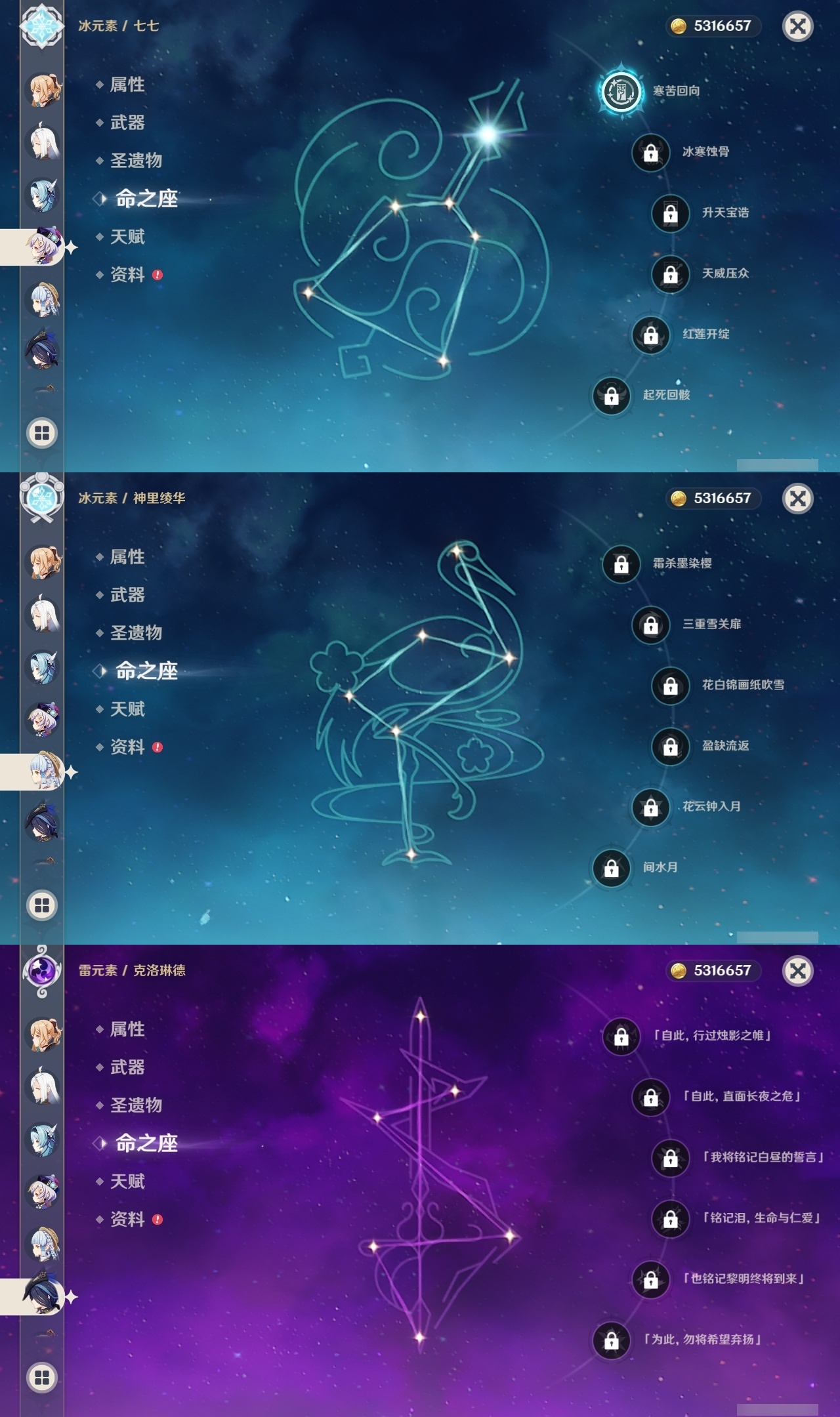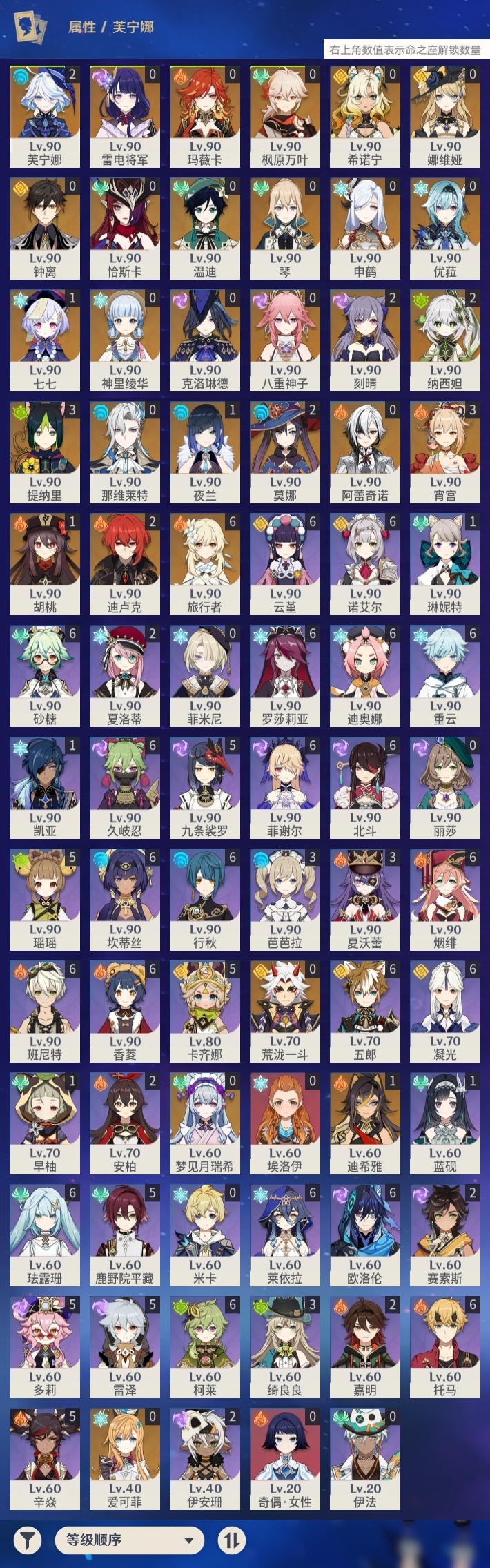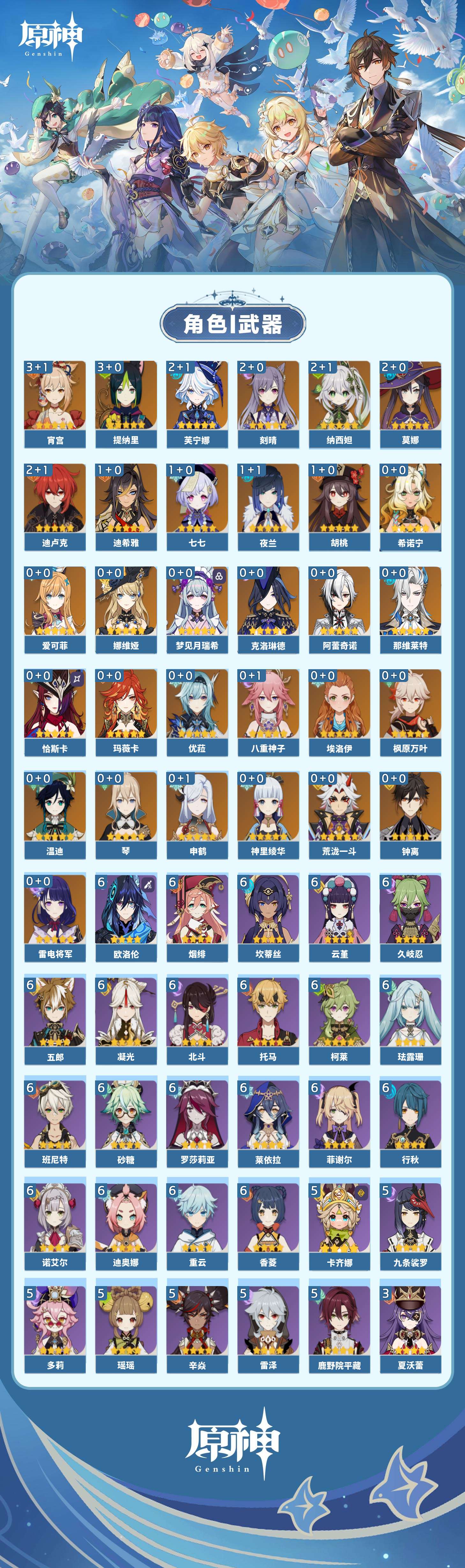 【原神】【lyys7638】冒险等级:60,五星数量:47,五星角色:宵宫 3命提纳里 3命芙宁娜 2命迪卢克 2命刻晴 2命莫娜 2命纳西妲 2命迪希雅 1命胡桃 1命七七 1命夜兰 1命琴希诺宁神里绫华温迪恰斯卡玛薇卡优菈钟离荒泷一斗梦见月瑞希申鹤八重神子那维莱特娜维娅爱可菲阿蕾奇诺枫原万叶克洛琳德雷电将军__五星武器:天空之刃 2精最初的大魔术静水流涌之辉有乐御簾切飞雷之弦振风鹰剑和璞鸢狼的末路四风原典天空之傲天空之脊息灾神乐之真意若水千夜浮梦__四星角色:班尼特 6命行秋 6命香菱 6命久岐忍 6命珐露珊 6命凝光 6命迪奥娜 6命砂糖 6命莱依拉 6命坎蒂丝 6命柯莱 6命欧洛伦 6命云堇 6命托马 6命五郎 6命烟绯 6命重云 6命诺艾尔 6命罗莎莉亚 6命菲谢尔 6命北斗 6命卡齐娜 5命九条裟罗 5命鹿野院平藏 5命瑶瑶 5命多莉 5命辛焱 5命雷泽 5命绮良良 3命芭芭拉 3命夏沃蕾 3命夏洛蒂 2命嘉明 2命伊安珊 2命赛索斯 2命蓝砚 1命早柚 1命琳妮特 1命埃洛伊奇偶·女性米卡菲米尼伊法