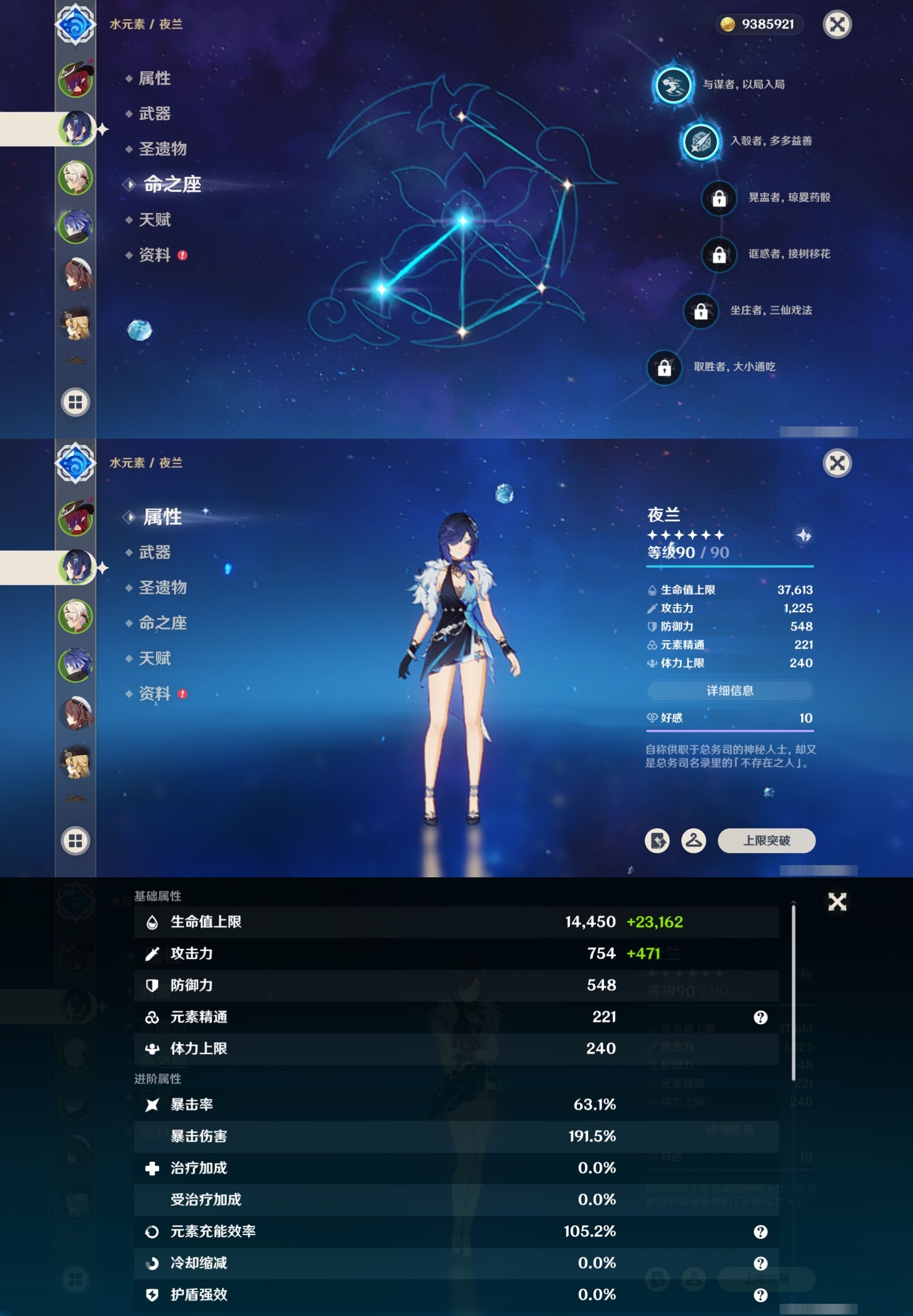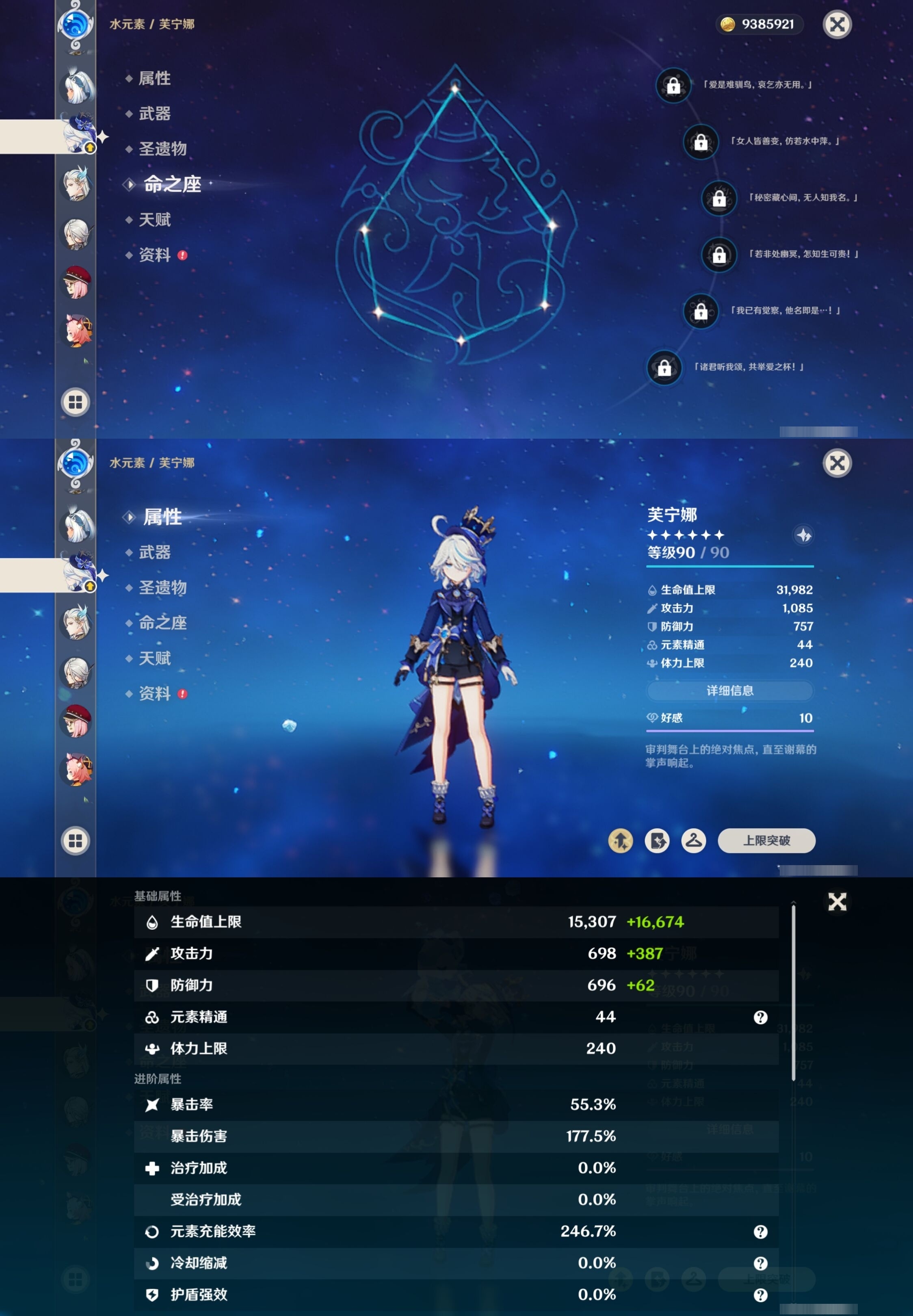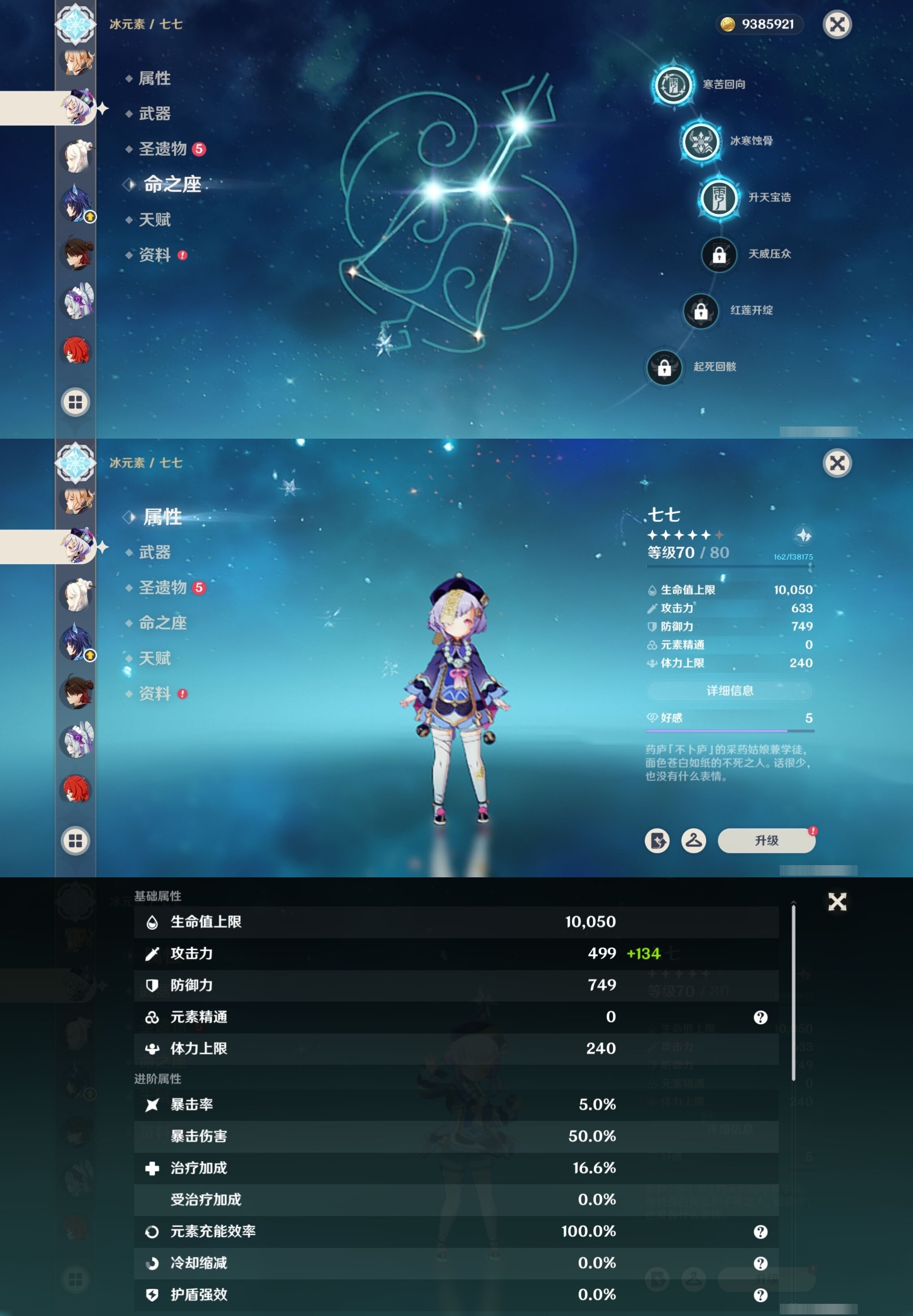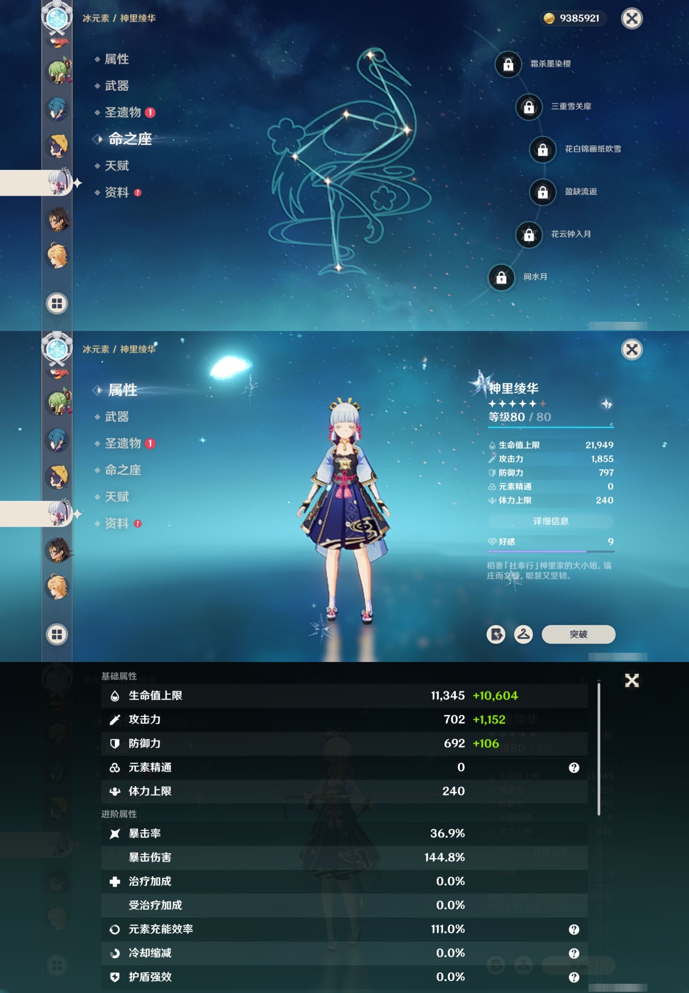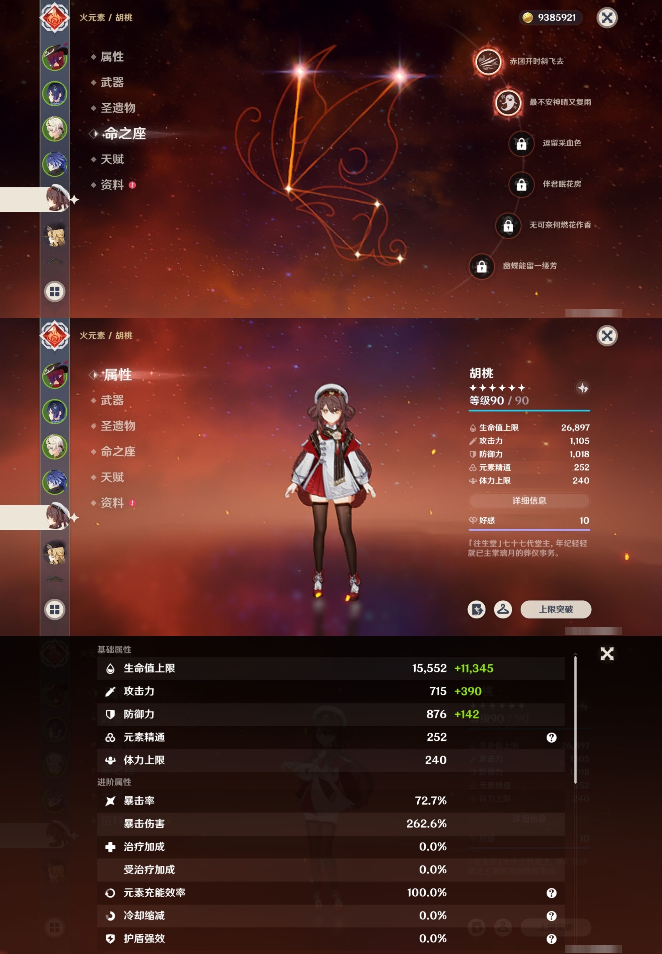 [13548489]54黄 风:6命恰斯卡,0命流浪者,0命枫原万叶,0命魈,3命琴,1命梦见月瑞希 火:2命胡桃,0命阿蕾奇诺,2命迪希雅,1命迪卢克 水:2命夜兰,0命玛拉妮,0命芙宁娜,1命那维莱特,0命莫娜 冰:0命神里绫华,3命七七 岩:0命娜维娅,0命钟离 雷:0命菲林斯,1命雷电将军 草:0命纳西妲 弓:精1星鹫赤羽 法器:精1千夜浮梦,精1四风原典,精1天空之卷 单手剑:精1苍古自由之誓 双手剑:精1狼的末路 长柄武器:精1和璞鸢,精1天空之脊,精2护摩之杖 【角色皮肤】 五星角色:夜兰-静暇雅宴,胡桃-宿雪桃红 四星角色:班尼特-炽绘奇旅,香菱-岁夜欢哗,行秋-雨化竹身,凯亚-帆影游风