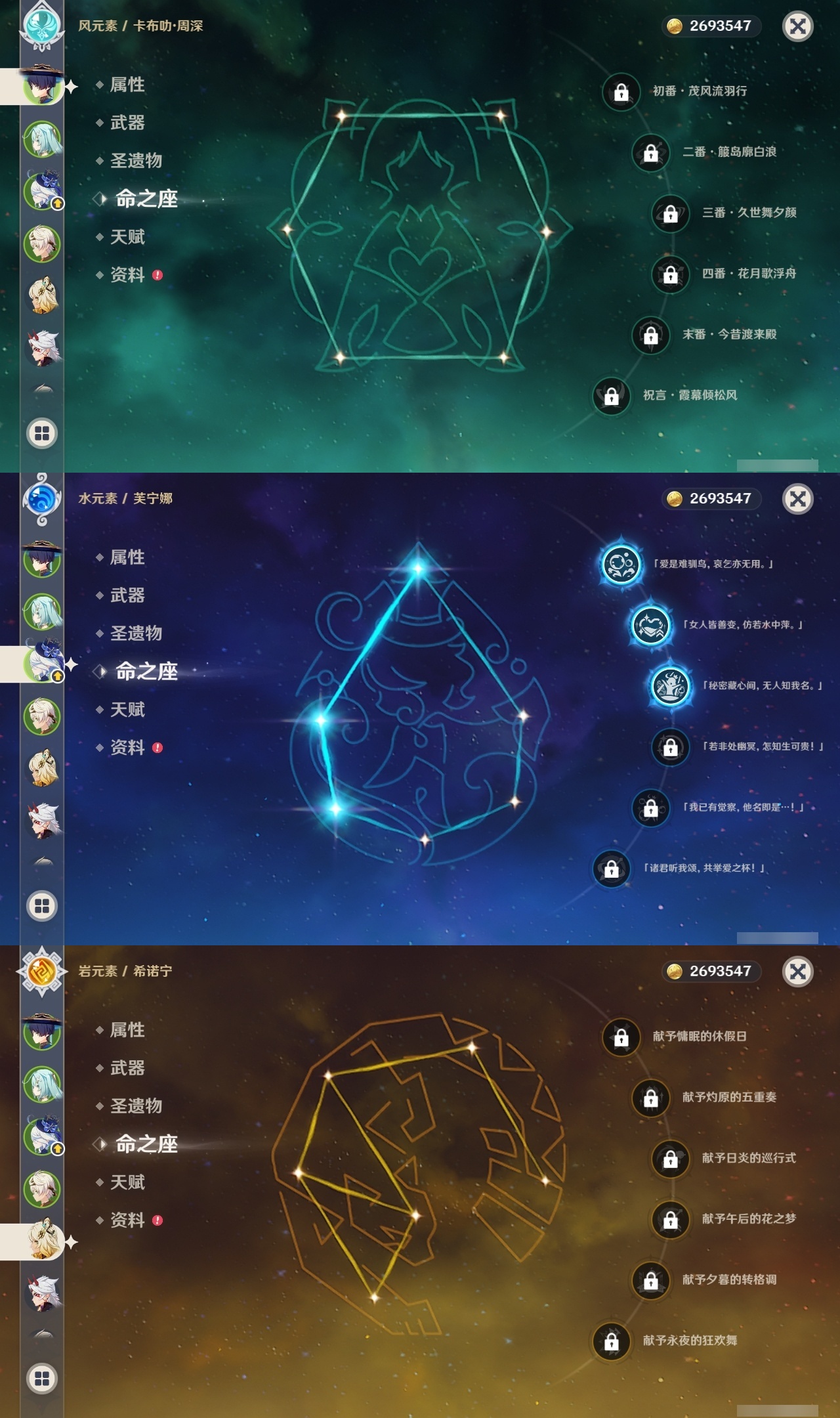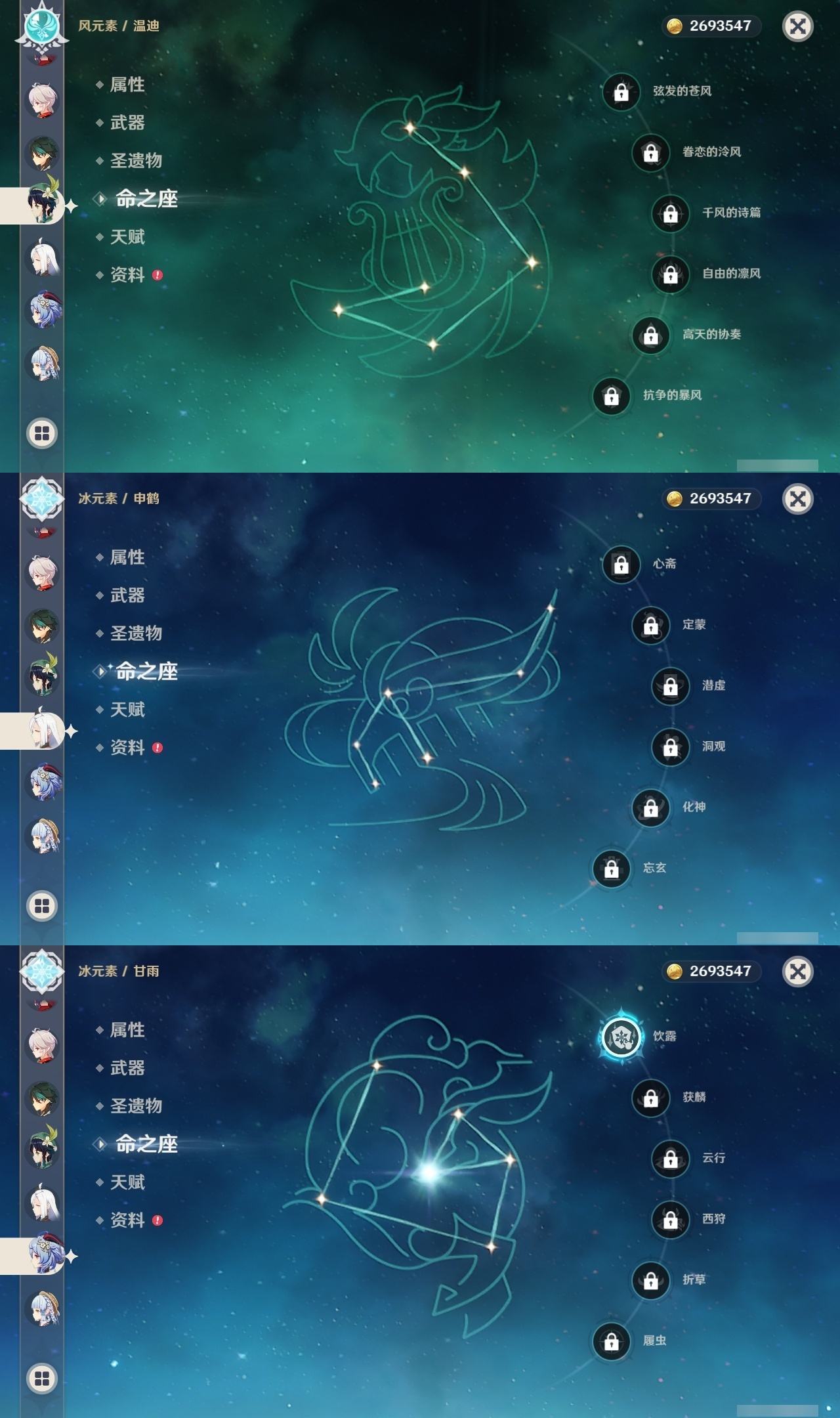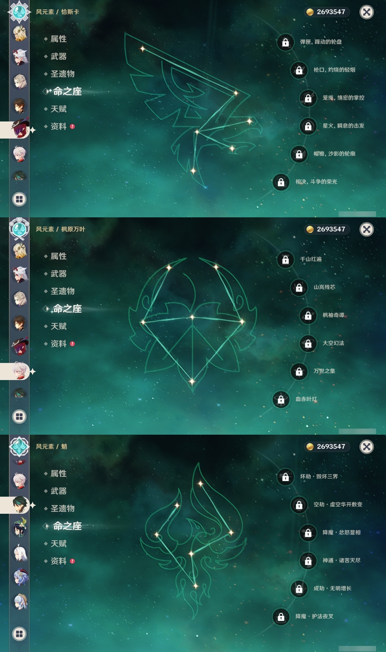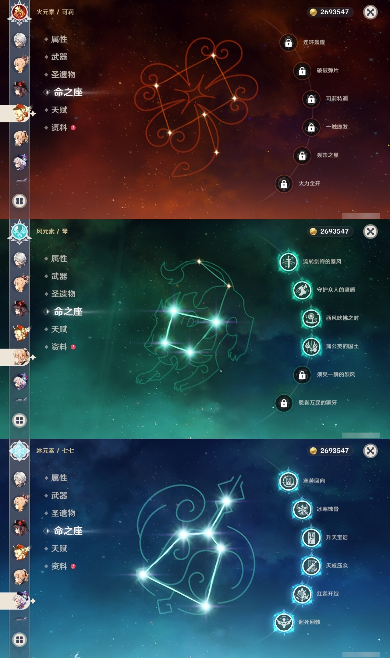 【原神】满命,冒险等级:60,五星数量:53,五星角色:莫娜 6命七七 6命夜兰 6命琴 4命提纳里 4命芙宁娜 3命刻晴 3命雷电将军 3命神里绫华 2命玛薇卡 1命迪希雅 1命达达利亚 1命迪卢克 1命甘雨 1命纳西妲 1命珊瑚宫心海希诺宁温迪恰斯卡宵宫钟离荒泷一斗申鹤八重神子神里绫人阿贝多那维莱特阿蕾奇诺妮露艾尔海森流浪者枫原万叶魈胡桃可莉__五星武器:阿莫斯之弓 2精万世流涌大典不灭月华苍古自由之誓飞雷之弦振风鹰剑狼的末路磐岩结绿天空之傲天空之脊天空之卷天空之翼雾切之回光薙草之稻光终末嗟叹之诗贯虹之槊若水__四星角色:班尼特 6命行秋 6命九条裟罗 6命香菱 6命久岐忍 6命珐露珊 6命凝光 6命迪奥娜 6命砂糖 6命莱依拉 6命米卡 6命坎蒂丝 6命多莉 6命柯莱 6命芭芭拉 6命早柚 6命托马 6命五郎 6命烟绯 6命重云 6命辛焱 6命诺艾尔 6命罗莎莉亚 6命雷泽 6命菲谢尔 6命北斗 6命琳妮特 6命夏洛蒂 6命卡齐娜 5命瑶瑶 5命云堇 5命鹿野院平藏 3命绮良良 3命夏沃蕾 3命嘉明 3命赛索斯 2命卡维 1命欧洛伦 1命菲米尼 1命塔利雅 1命爱诺 1命埃洛伊伊法