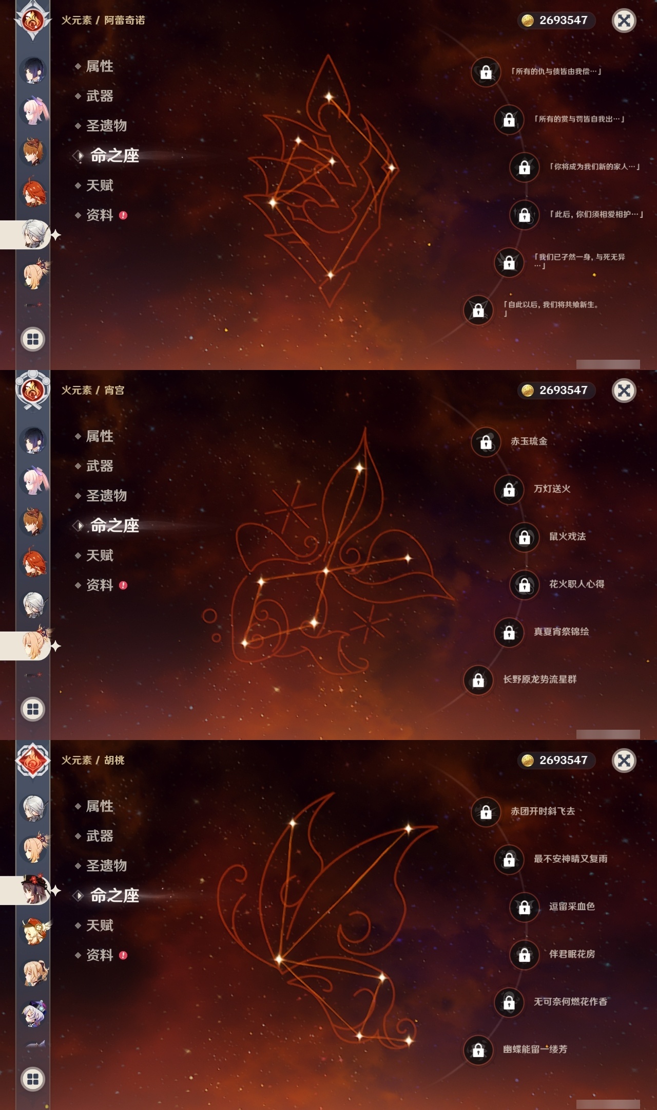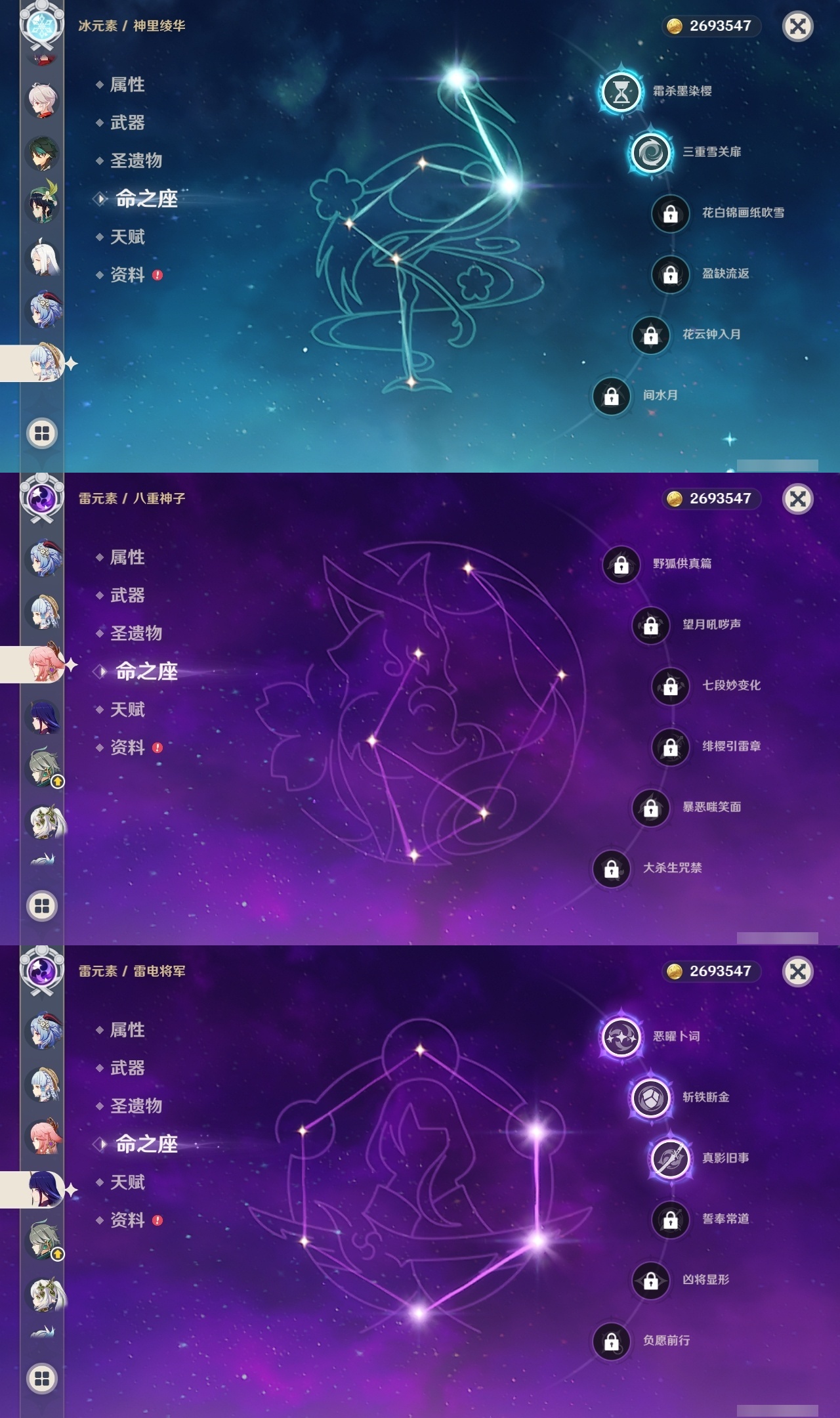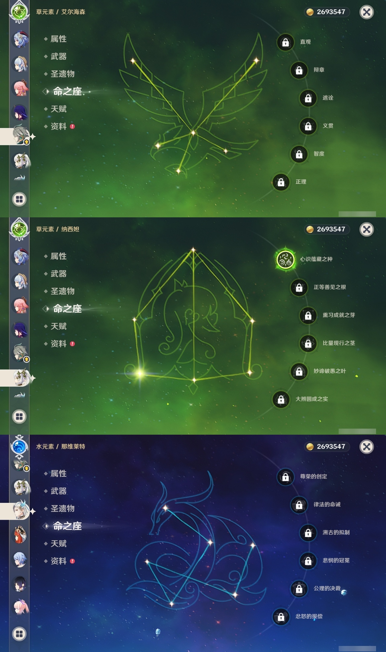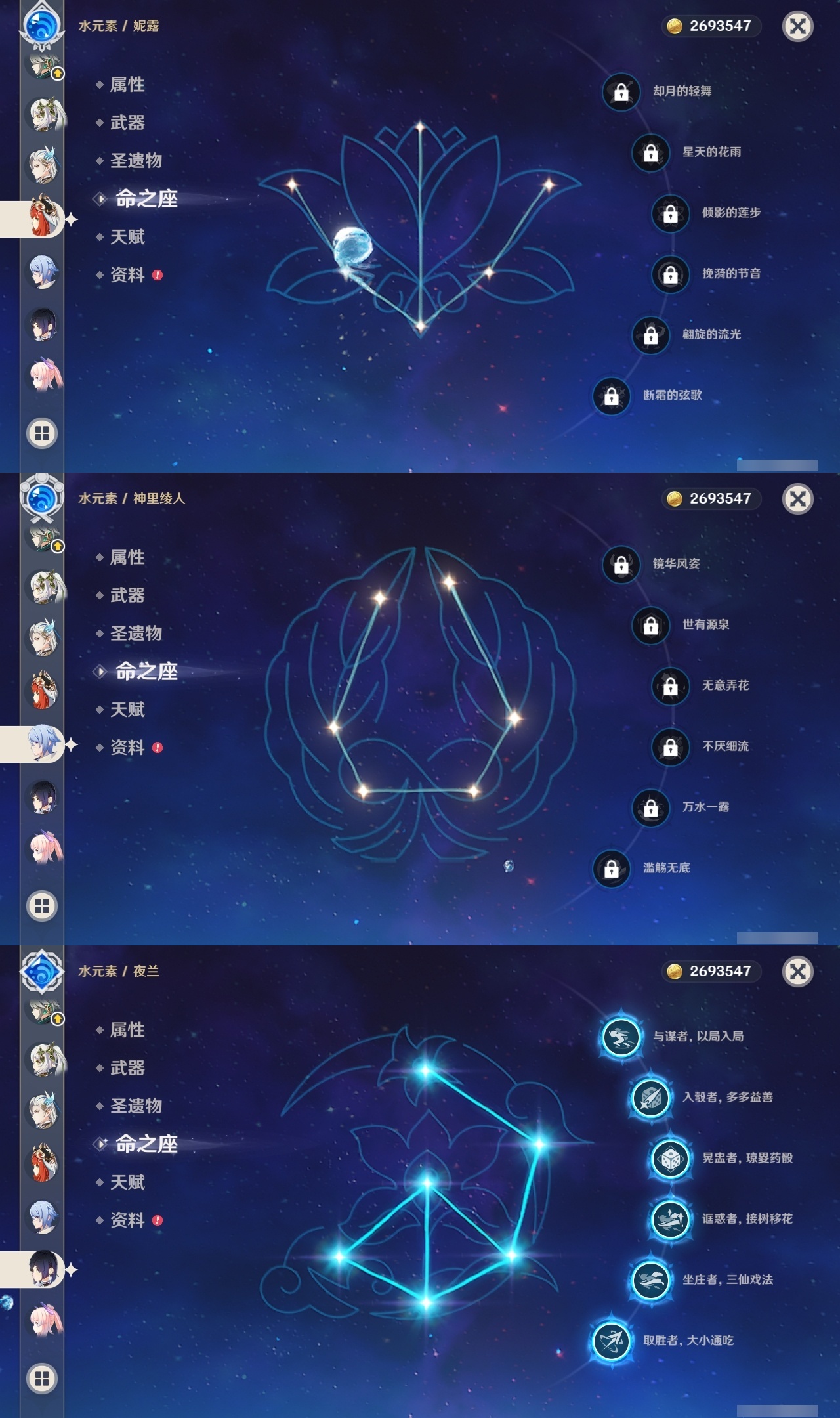 【原神】满命,冒险等级:60,五星数量:53,五星角色:莫娜 6命七七 6命夜兰 6命琴 4命提纳里 4命芙宁娜 3命刻晴 3命雷电将军 3命神里绫华 2命玛薇卡 1命迪希雅 1命达达利亚 1命迪卢克 1命甘雨 1命纳西妲 1命珊瑚宫心海希诺宁温迪恰斯卡宵宫钟离荒泷一斗申鹤八重神子神里绫人阿贝多那维莱特阿蕾奇诺妮露艾尔海森流浪者枫原万叶魈胡桃可莉__五星武器:阿莫斯之弓 2精万世流涌大典不灭月华苍古自由之誓飞雷之弦振风鹰剑狼的末路磐岩结绿天空之傲天空之脊天空之卷天空之翼雾切之回光薙草之稻光终末嗟叹之诗贯虹之槊若水__四星角色:班尼特 6命行秋 6命九条裟罗 6命香菱 6命久岐忍 6命珐露珊 6命凝光 6命迪奥娜 6命砂糖 6命莱依拉 6命米卡 6命坎蒂丝 6命多莉 6命柯莱 6命芭芭拉 6命早柚 6命托马 6命五郎 6命烟绯 6命重云 6命辛焱 6命诺艾尔 6命罗莎莉亚 6命雷泽 6命菲谢尔 6命北斗 6命琳妮特 6命夏洛蒂 6命卡齐娜 5命瑶瑶 5命云堇 5命鹿野院平藏 3命绮良良 3命夏沃蕾 3命嘉明 3命赛索斯 2命卡维 1命欧洛伦 1命菲米尼 1命塔利雅 1命爱诺 1命埃洛伊伊法