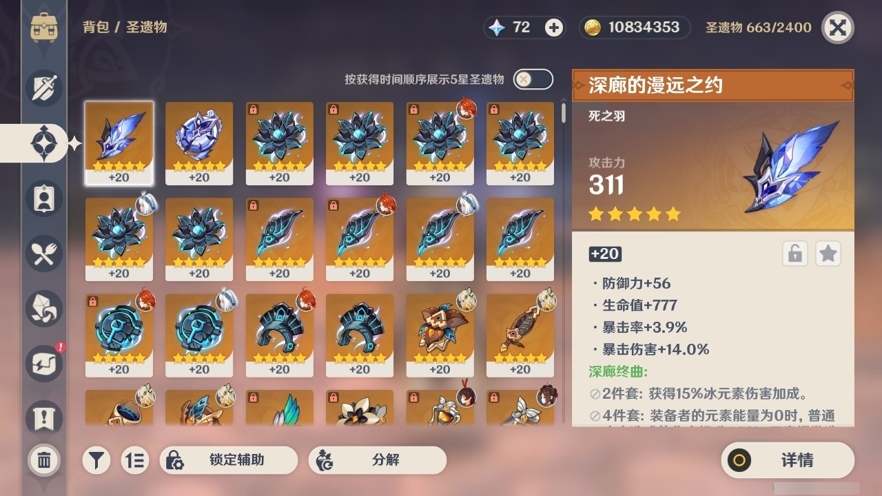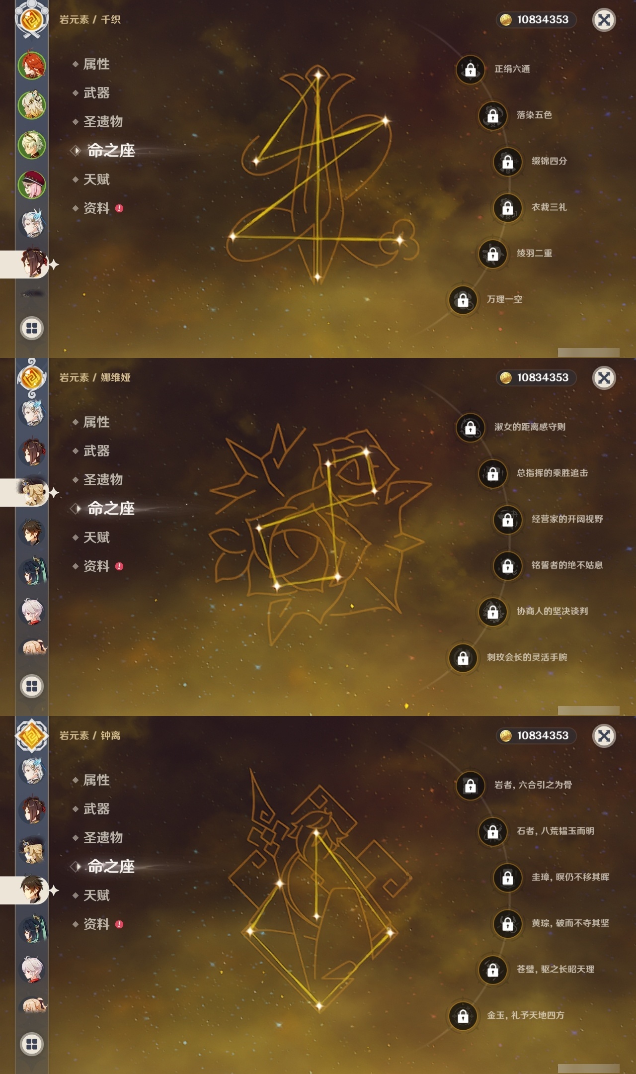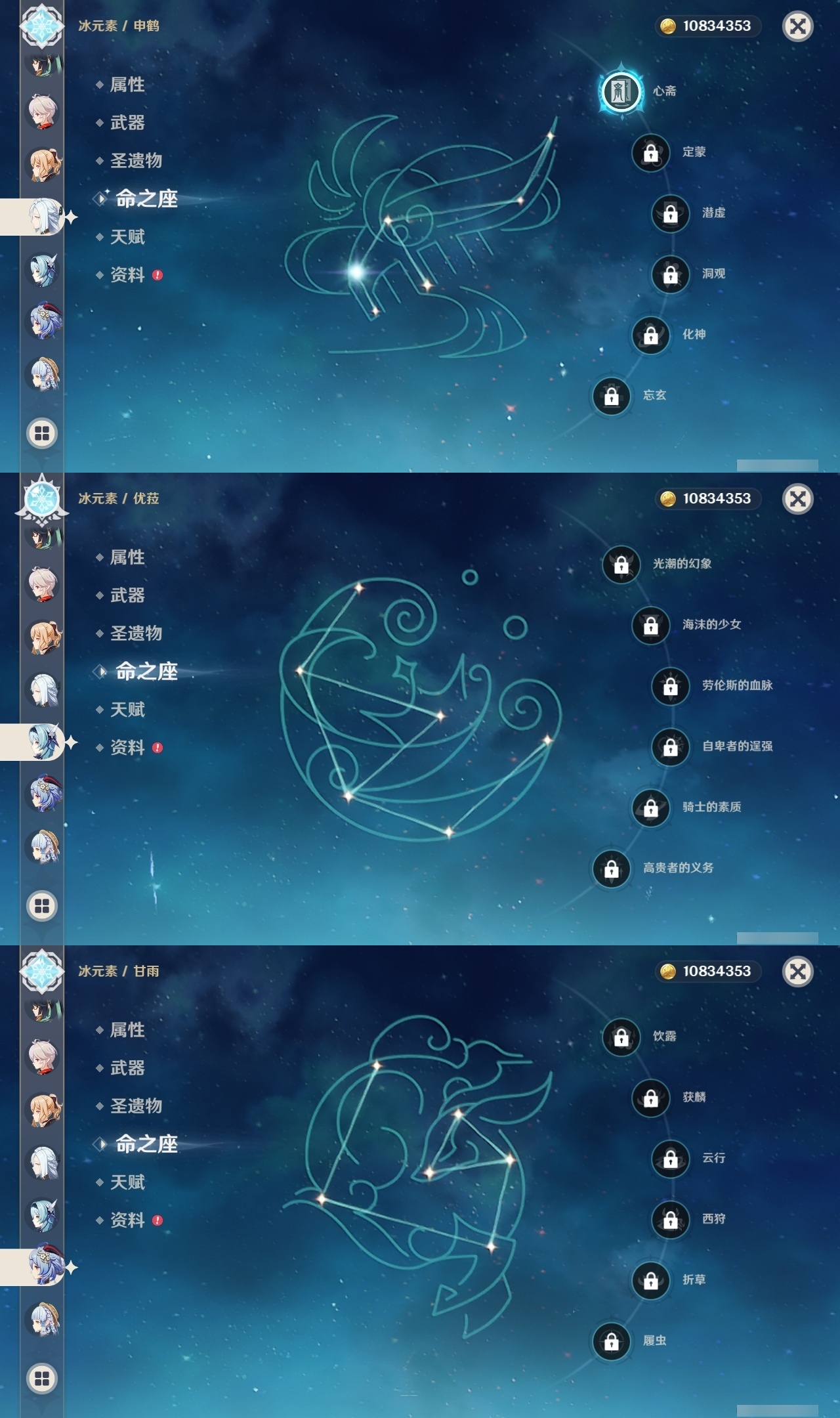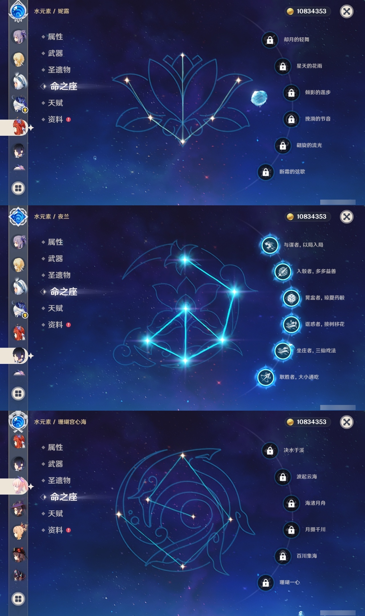 【原神】满命,冒险等级:60,五星数量:51,五星角色:芙宁娜 6命莫娜 6命夜兰 6命刻晴 4命雷电将军 3命琴 2命宵宫 2命七七 1命申鹤 1命提纳里 1命玛拉妮珊瑚宫心海希诺宁神里绫华玛薇卡优菈钟离梦见月瑞希八重神子那维莱特娜维娅闲云千织妮露迪卢克枫原万叶甘雨胡桃__五星武器:阿莫斯之弓 3精四风原典 2精天空之傲 2精无工之剑 2精碧落之珑焚曜千阳静水流涌之辉裁断有乐御簾切飞雷之弦振和璞鸢护摩之杖磐岩结绿松籁响起之时天空之脊天空之卷天空之刃雾切之回光薙草之稻光神乐之真意若水圣显之钥__四星角色:班尼特 6命行秋 6命九条裟罗 6命香菱 6命珐露珊 6命凝光 6命迪奥娜 6命砂糖 6命米卡 6命柯莱 6命芭芭拉 6命云堇 6命早柚 6命托马 6命五郎 6命烟绯 6命辛焱 6命诺艾尔 6命罗莎莉亚 6命雷泽 6命菲谢尔 6命北斗 6命夏洛蒂 6命久岐忍 4命多莉 3命欧洛伦 3命菲米尼 3命琳妮特 3命卡齐娜 2命鹿野院平藏 2命绮良良 2命瑶瑶 2命莱依拉 2命坎蒂丝 2命嘉明 2命伊法 2命赛索斯 2命卡维 1命重云 1命夏沃蕾 1命爱诺 1命奇偶·女性伊安珊