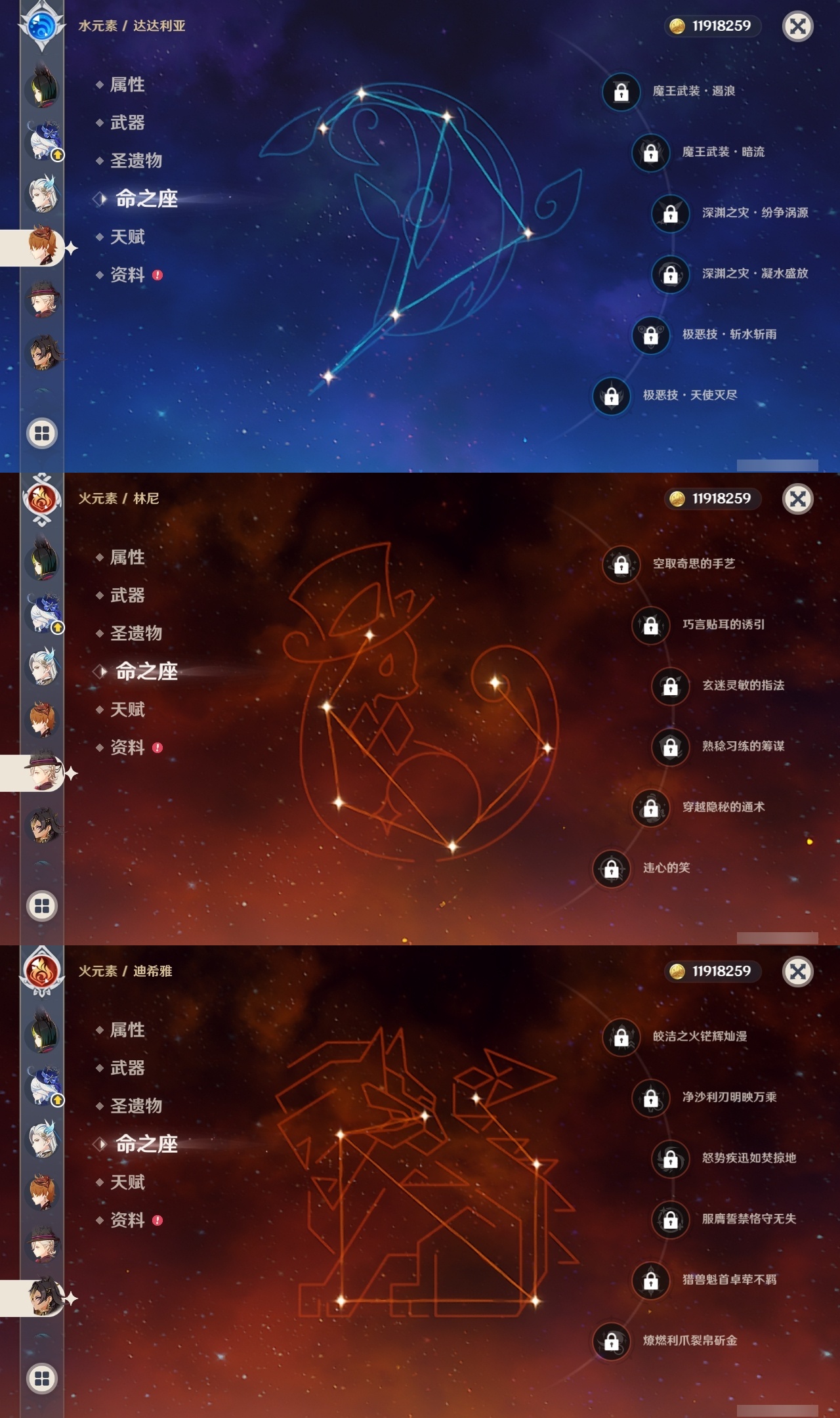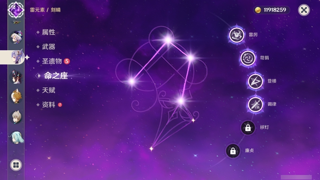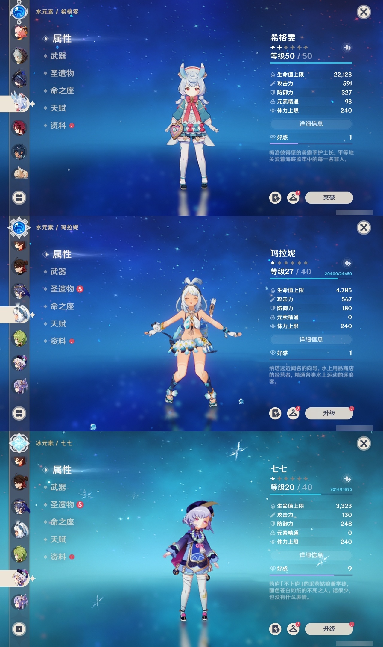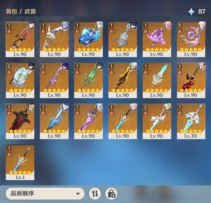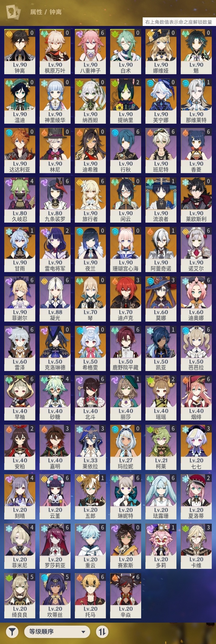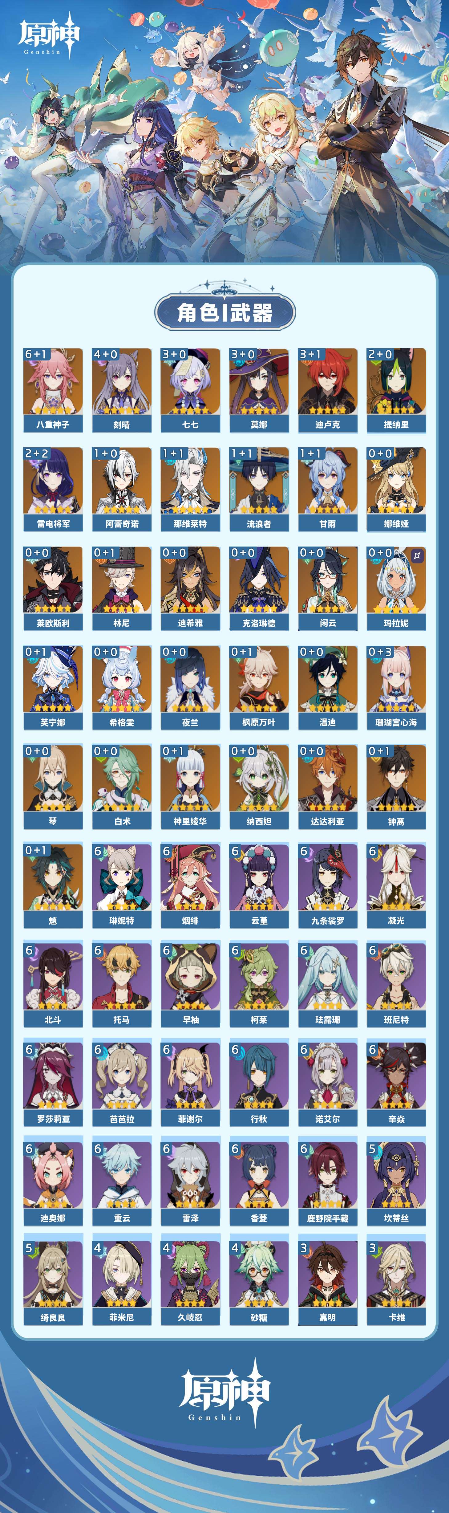 【原神】【lyys7770】冒险等级:60,五星数量:49,五星角色:八重神子 6命刻晴 4命迪卢克 3命莫娜 3命七七 3命雷电将军 2命提纳里 2命那维莱特 1命阿蕾奇诺 1命甘雨 1命流浪者 1命玛拉妮琴珊瑚宫心海白术神里绫华温迪迪希雅钟离达达利亚林尼莱欧斯利夜兰芙宁娜娜维娅闲云纳西妲枫原万叶魈克洛琳德希格雯__五星武器:不灭月华 3精风鹰剑 2精四风原典 2精薙草之稻光 2精最初的大魔术万世流涌大典静水流涌之辉图莱杜拉的回忆阿莫斯之弓苍古自由之誓和璞鸢狼的末路天空之脊天空之刃雾切之回光赤角石溃杵神乐之真意贯虹之槊__四星角色:班尼特 6命行秋 6命九条裟罗 6命香菱 6命鹿野院平藏 6命珐露珊 6命凝光 6命迪奥娜 6命柯莱 6命芭芭拉 6命云堇 6命早柚 6命托马 6命烟绯 6命重云 6命辛焱 6命诺艾尔 6命罗莎莉亚 6命雷泽 6命菲谢尔 6命北斗 6命琳妮特 6命绮良良 5命坎蒂丝 5命久岐忍 4命砂糖 4命菲米尼 4命莱依拉 3命卡维 3命嘉明 3命瑶瑶 2命夏洛蒂 2命多莉 1命五郎 1命赛索斯