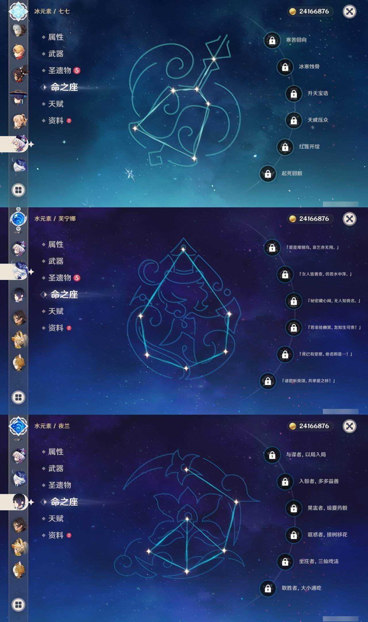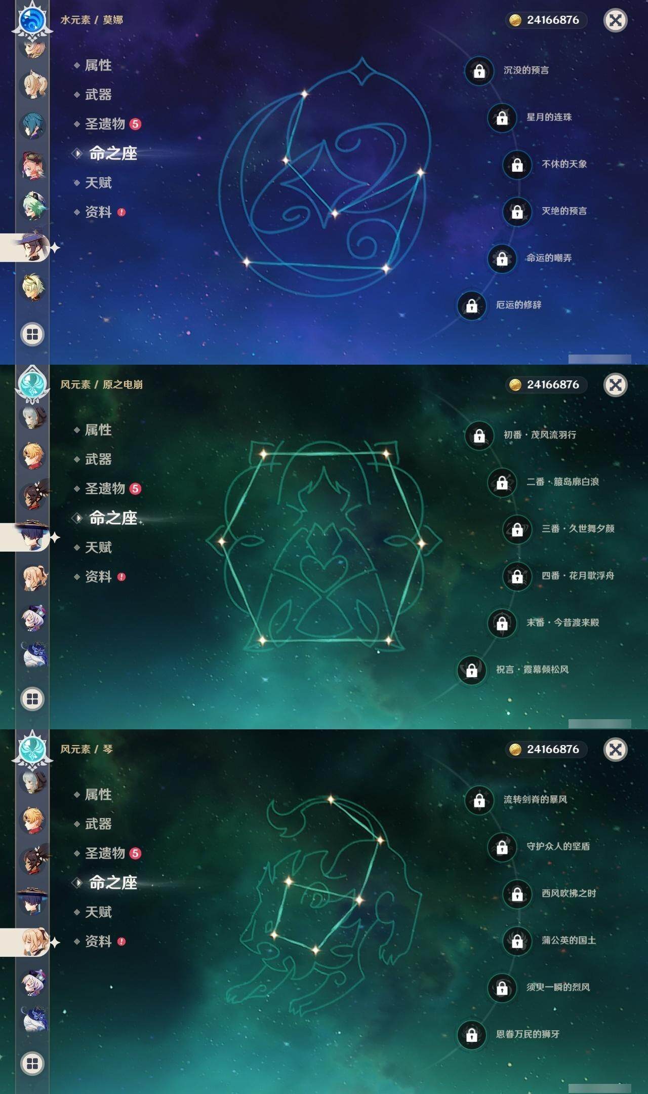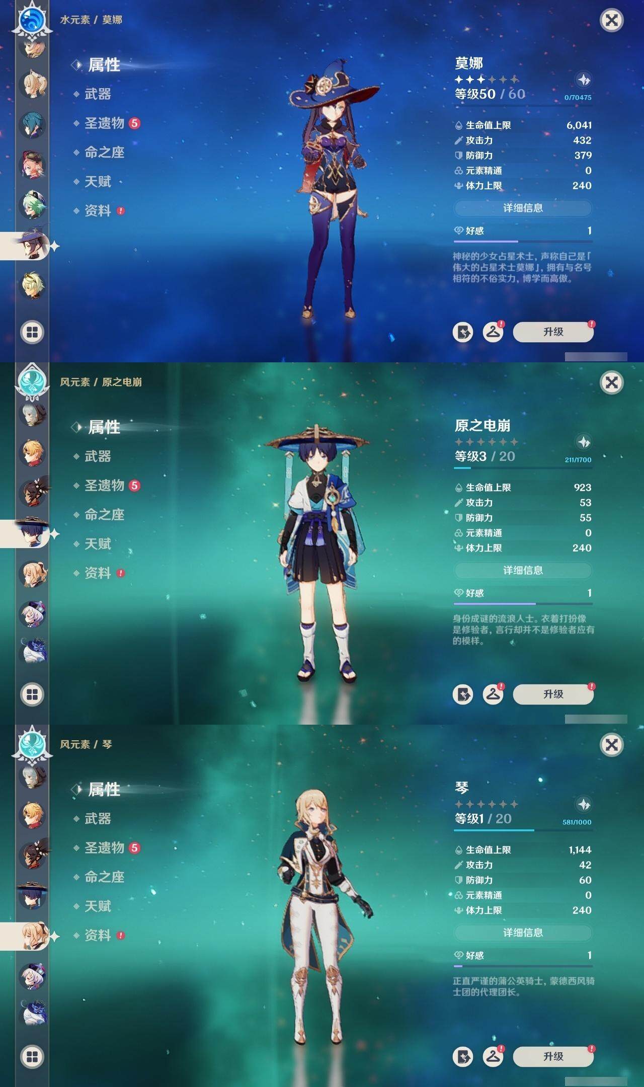 56级/19黄/女主/13个五星角色/2个五星武器 0命芙宁娜0命迪希雅0命流浪者0命夜兰0命八重神子0命申鹤0命神里绫华0命可莉2命刻晴0命七七0命琴0命莫娜2命迪卢克精1天空之翼精1天空之卷