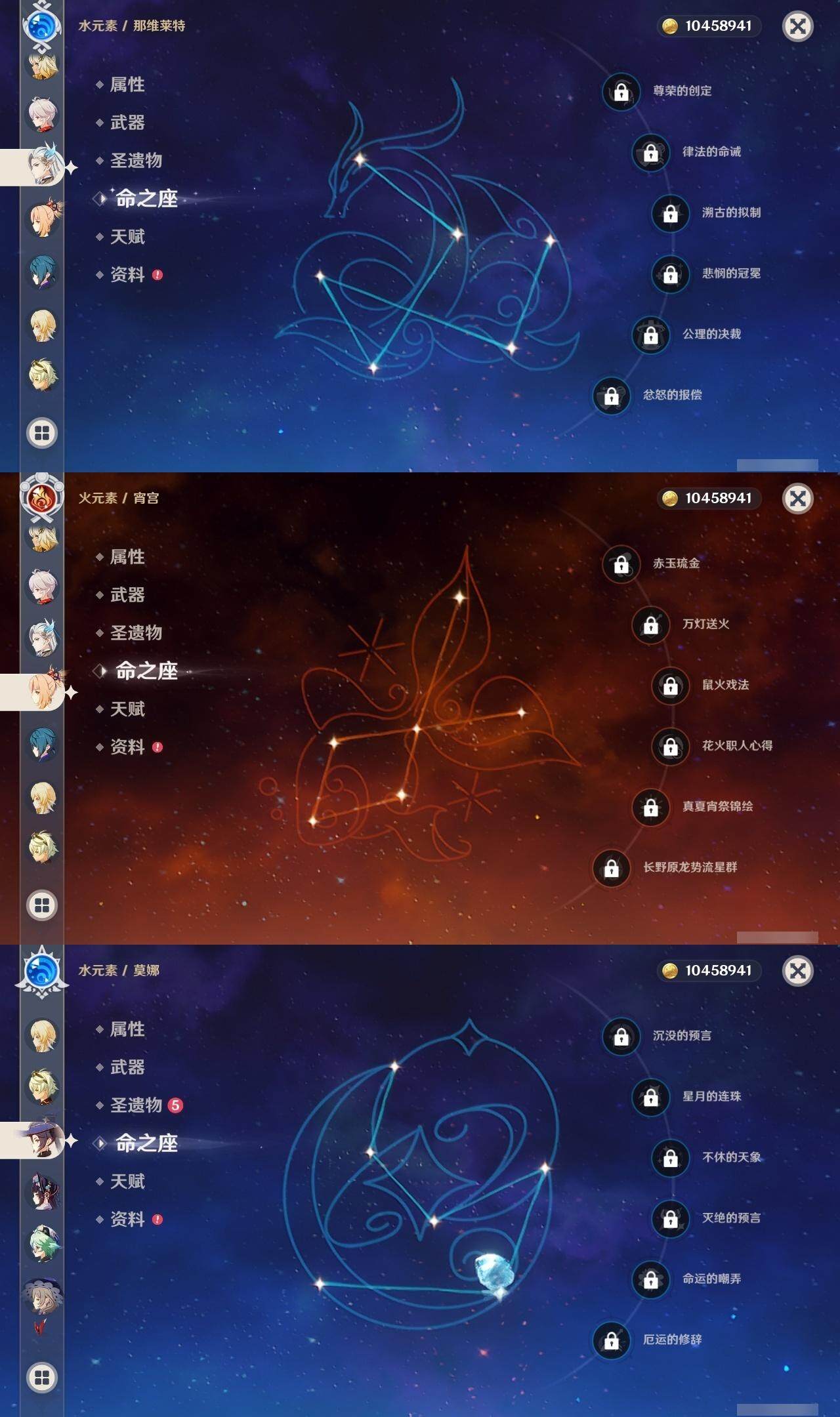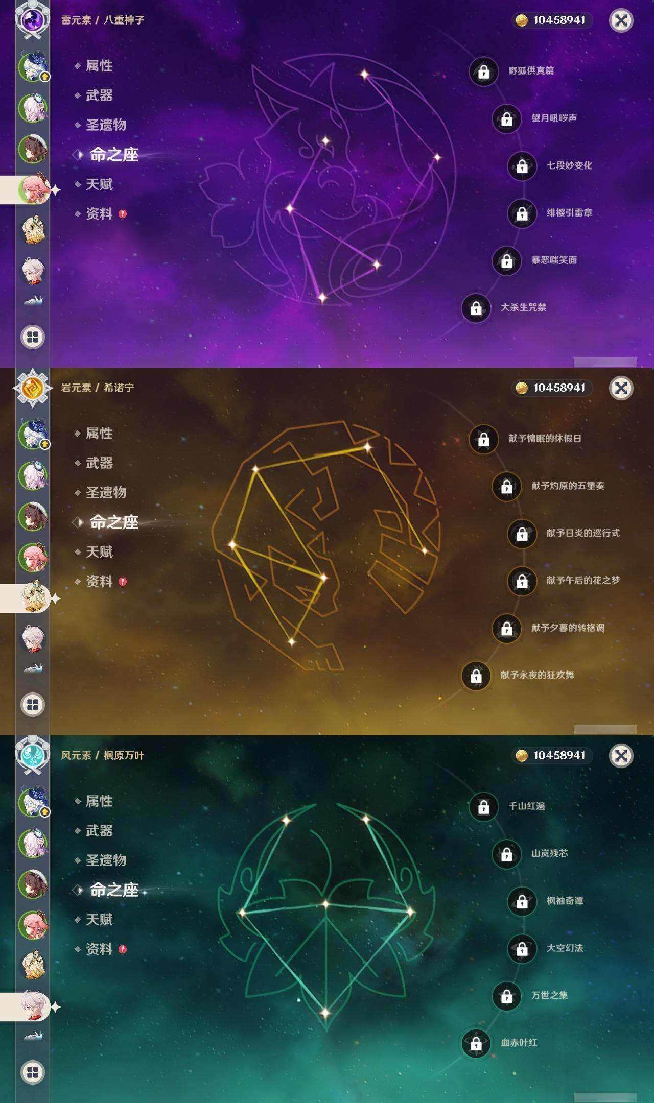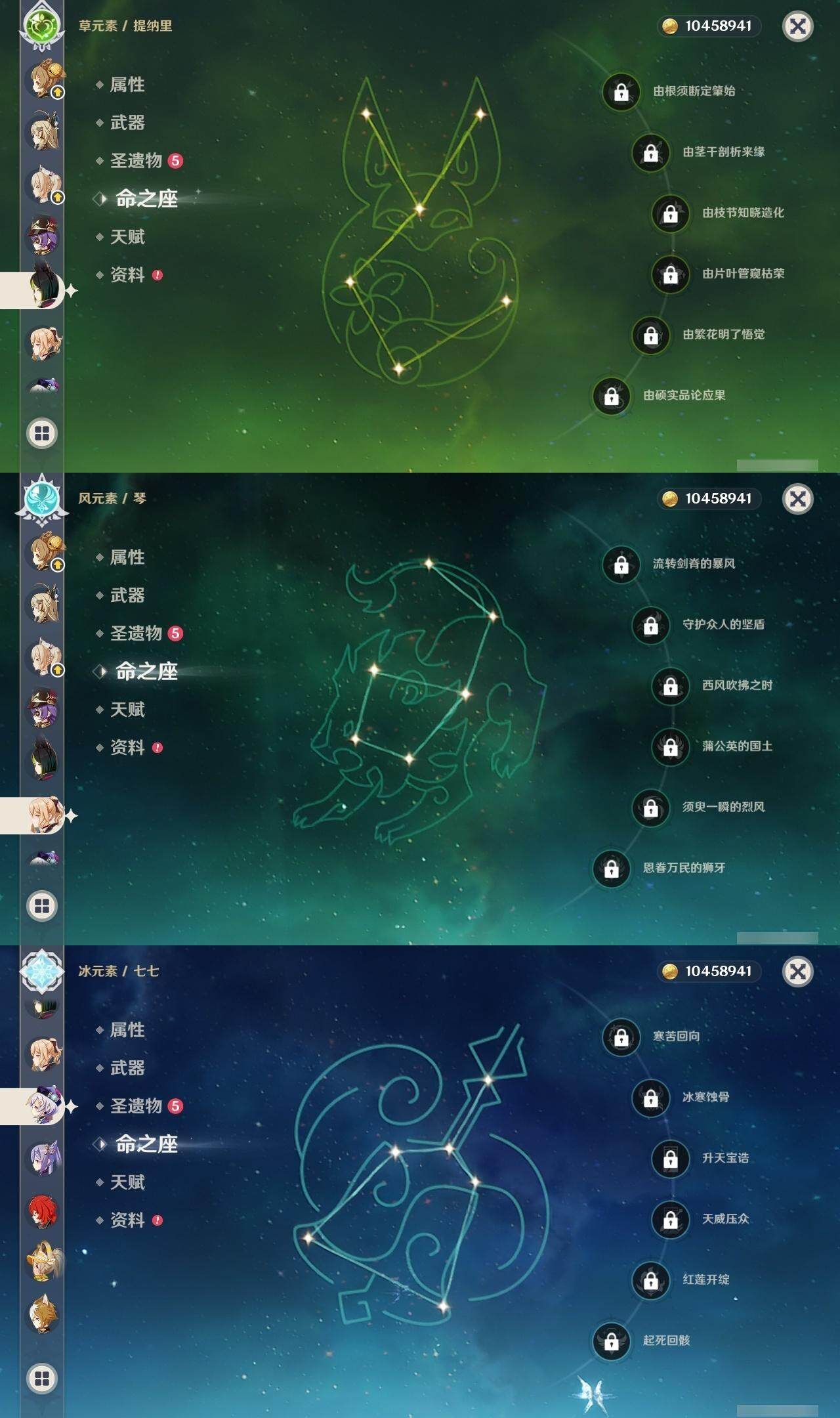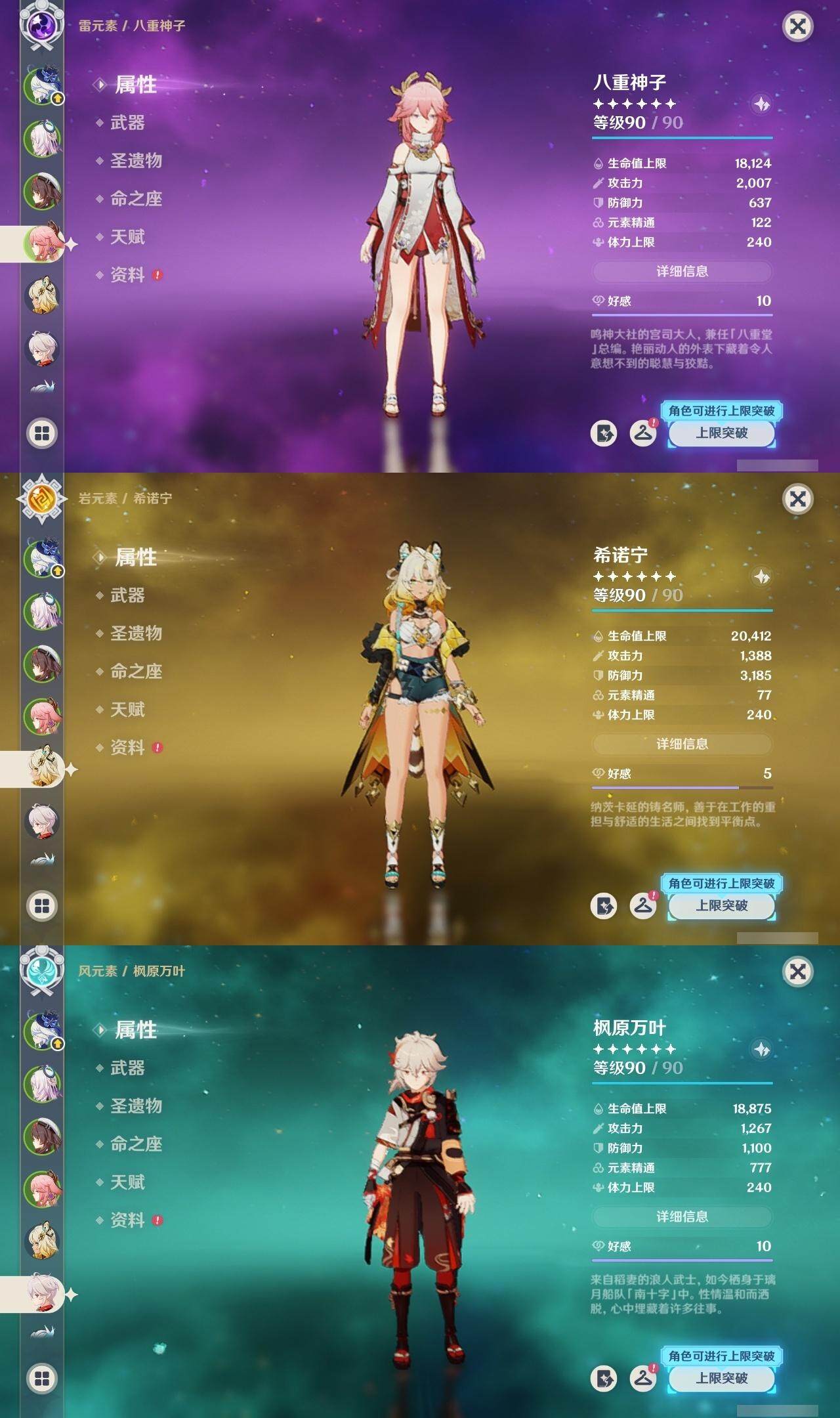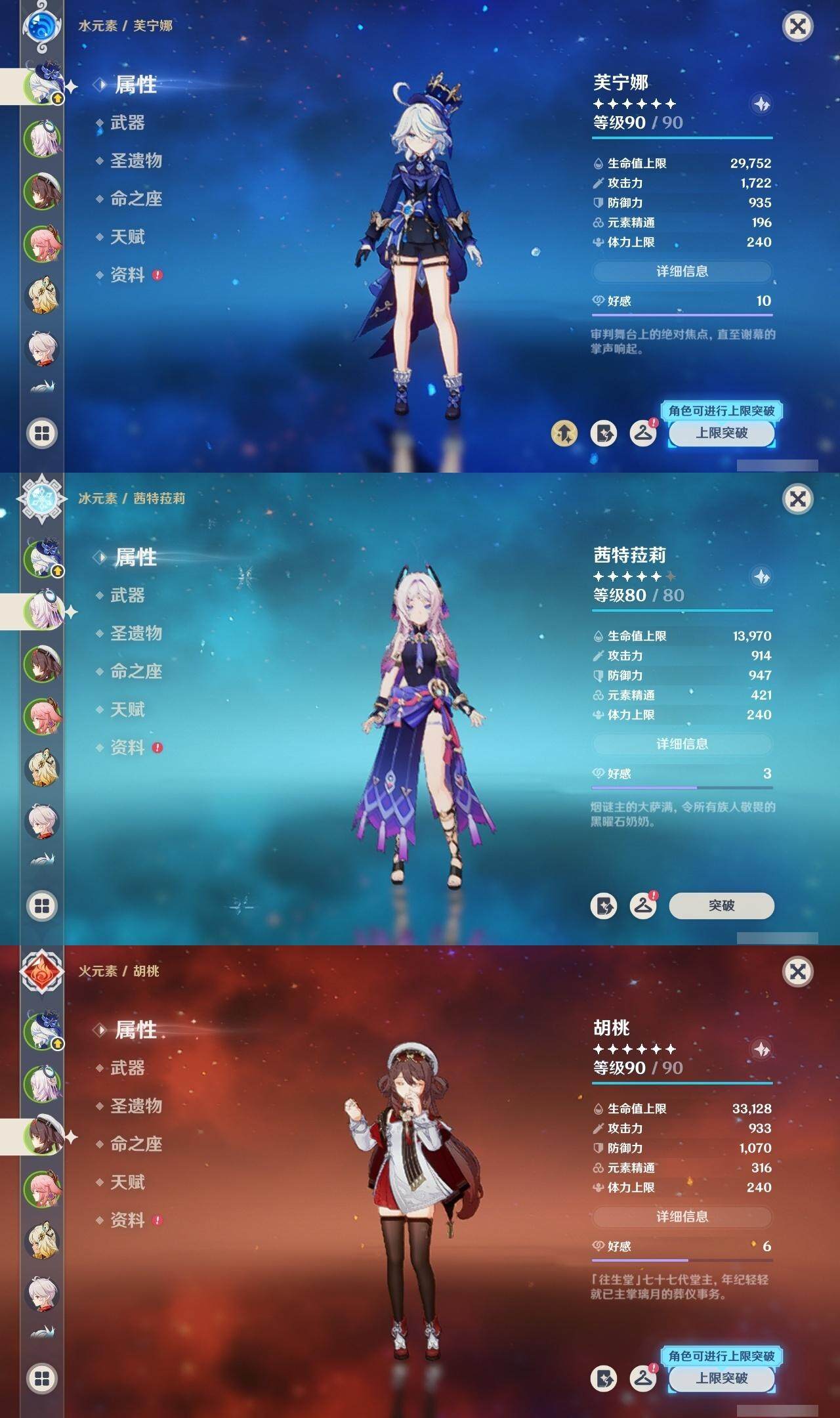 56级/21黄/女主/15个五星角色/5个五星武器 0命芙宁娜0命那维莱特0命迪希雅0命提纳里0命八重神子0命枫原万叶0命胡桃0命宵宫1命刻晴0命七七0命琴0命莫娜0命迪卢克0命希诺宁0命茜特菈莉精1千夜浮梦精1神乐之真意精1天空之脊精1天空之刃