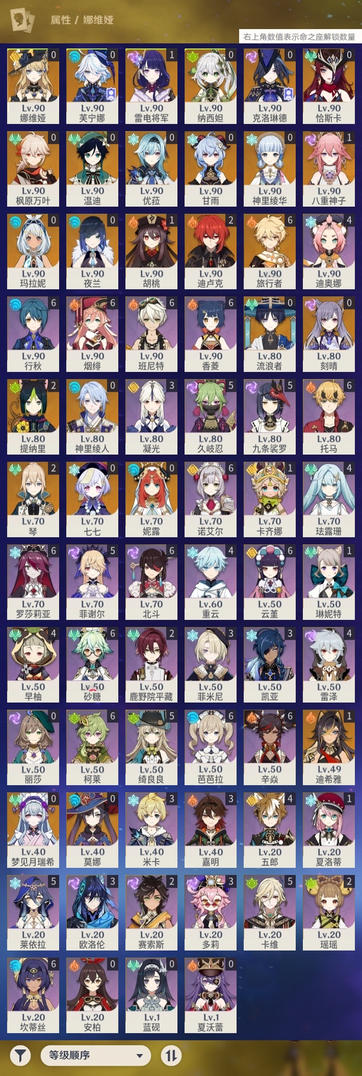 【原神】【lyys7844】冒险等级:60,五星数量:37,五星角色:迪卢克 2命琴 2命提纳里 2命迪希雅 1命胡桃 1命雷电将军 1命八重神子 1命莫娜七七玛拉妮神里绫华温迪恰斯卡优菈梦见月瑞希神里绫人夜兰芙宁娜娜维娅妮露纳西妲流浪者枫原万叶甘雨克洛琳德刻晴__五星武器:和璞鸢 2精四风原典 2精冲浪时光静水流涌之辉裁断阿莫斯之弓护摩之杖狼的末路天空之刃天空之翼若水__四星角色:班尼特 6命行秋 6命香菱 6命砂糖 6命坎蒂丝 6命柯莱 6命芭芭拉 6命云堇 6命托马 6命烟绯 6命辛焱 6命诺艾尔 6命罗莎莉亚 6命北斗 6命九条裟罗 5命久岐忍 5命绮良良 5命莱依拉 5命卡维 5命菲谢尔 5命珐露珊 4命迪奥娜 4命早柚 4命五郎 4命重云 4命雷泽 4命凝光 3命米卡 3命多莉 3命欧洛伦 3命菲米尼 3命嘉明 3命鹿野院平藏 2命瑶瑶 2命赛索斯 2命卡齐娜 1命琳妮特 1命夏洛蒂 1命蓝砚夏沃蕾