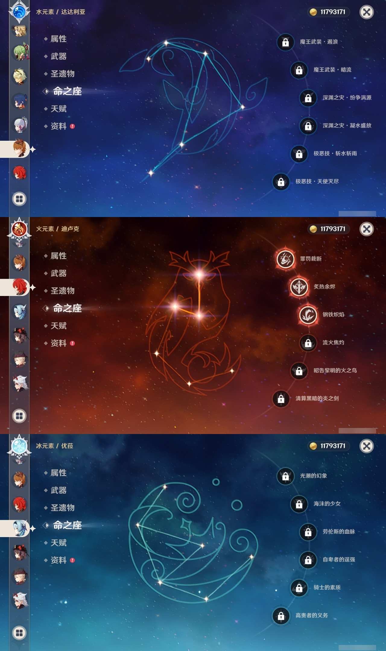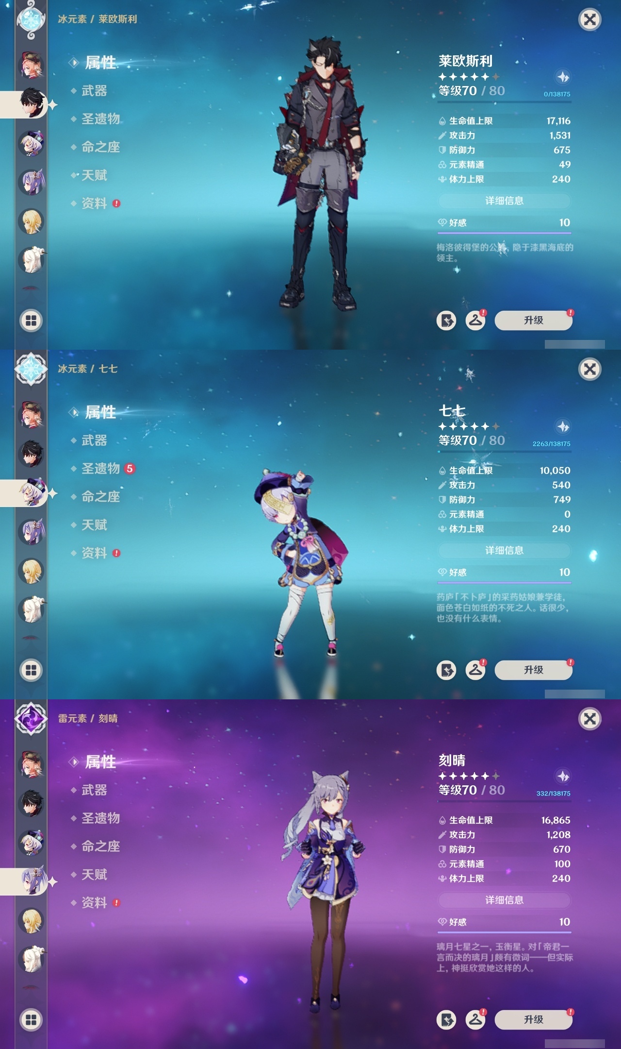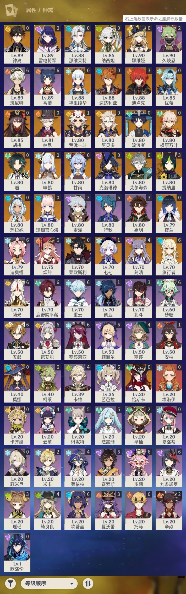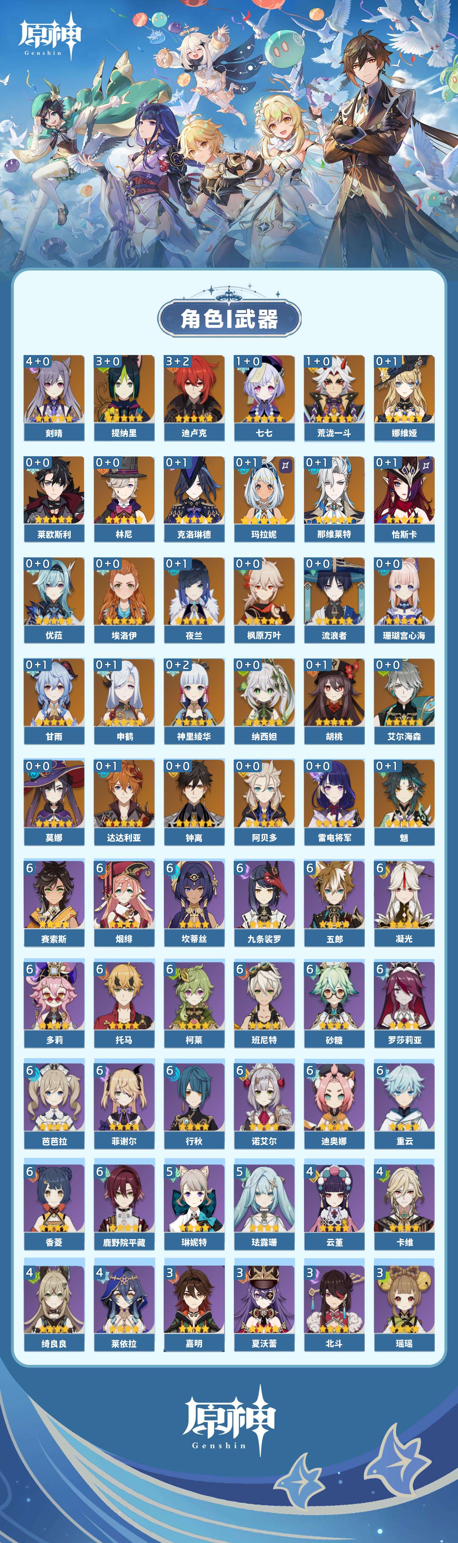 【原神】【lyys7872】冒险等级:60,五星数量:46,五星角色:刻晴 4命迪卢克 3命提纳里 3命七七 1命荒泷一斗 1命莫娜玛拉妮珊瑚宫心海神里绫华恰斯卡优菈钟离达达利亚申鹤林尼阿贝多那维莱特莱欧斯利夜兰娜维娅纳西妲艾尔海森流浪者枫原万叶甘雨魈胡桃克洛琳德雷电将军__五星武器:狼的末路 2精雾切之回光 2精冲浪时光星鹫赤羽万世流涌大典裁断阿莫斯之弓和璞鸢护摩之杖天空之脊天空之刃天空之翼冬极白星息灾若水赦罪__四星角色:班尼特 6命行秋 6命九条裟罗 6命香菱 6命鹿野院平藏 6命凝光 6命迪奥娜 6命砂糖 6命坎蒂丝 6命多莉 6命柯莱 6命芭芭拉 6命托马 6命五郎 6命烟绯 6命重云 6命诺艾尔 6命罗莎莉亚 6命菲谢尔 6命赛索斯 6命珐露珊 5命琳妮特 5命绮良良 4命莱依拉 4命卡维 4命云堇 4命瑶瑶 3命雷泽 3命北斗 3命夏沃蕾 3命嘉明 3命久岐忍 2命米卡 2命早柚 2命辛焱 2命埃洛伊卡齐娜欧洛伦菲米尼夏洛蒂
