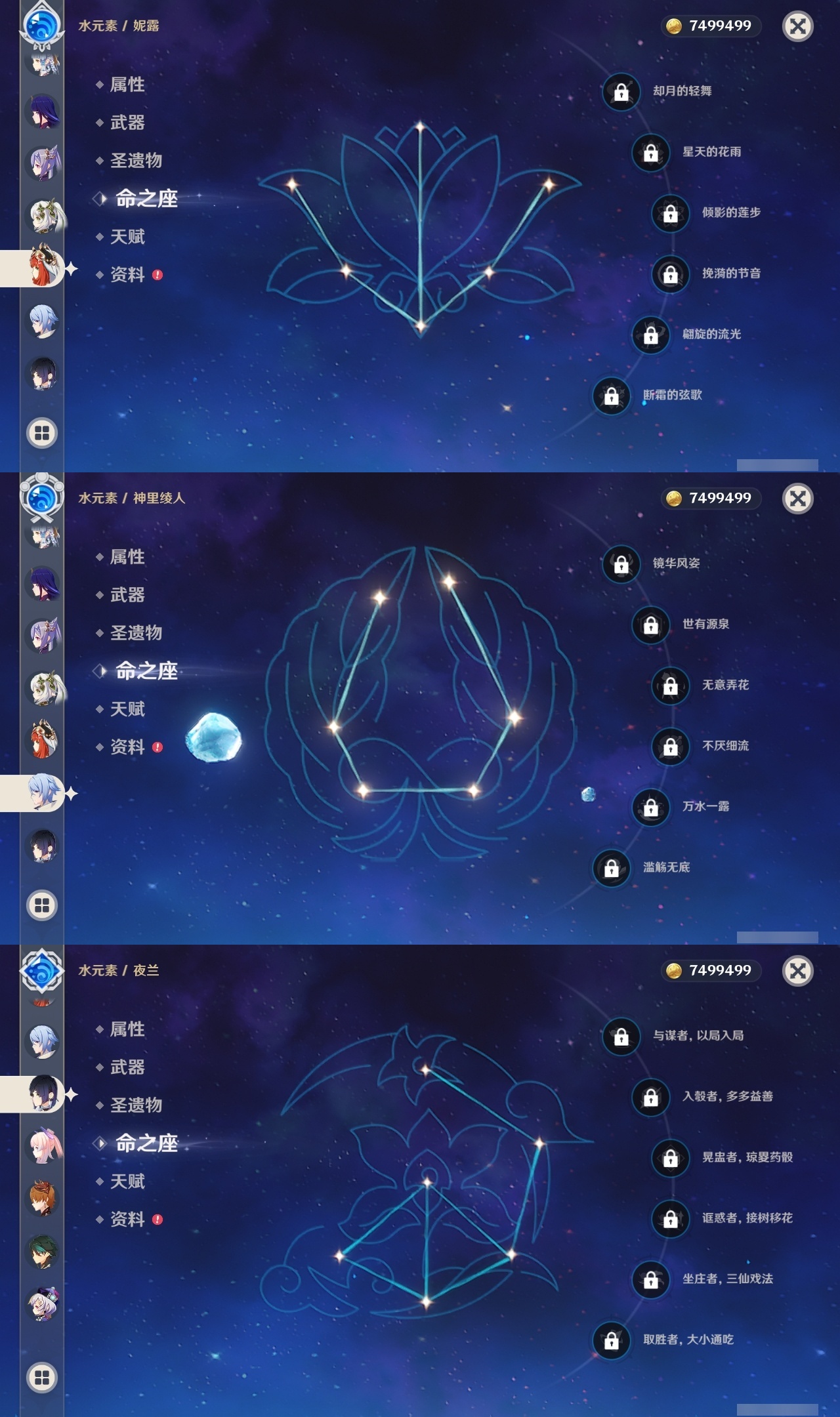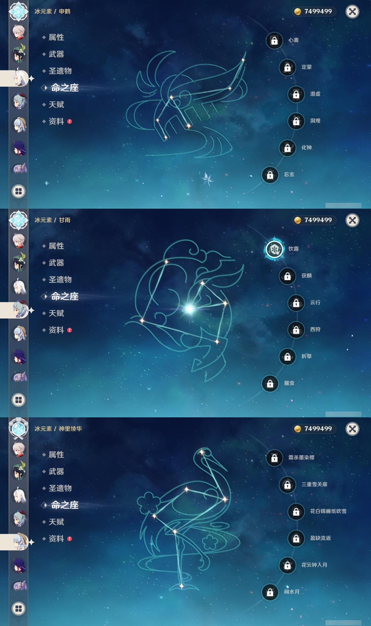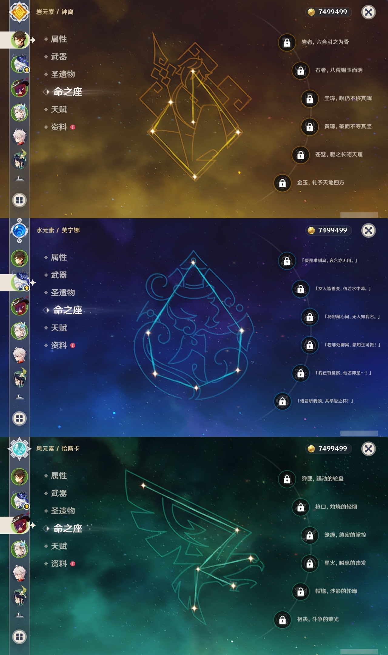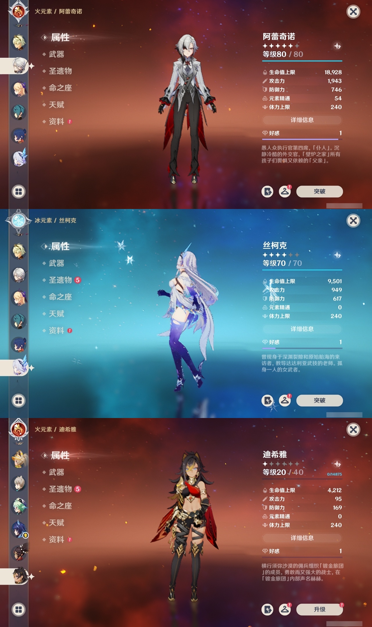 【原神】【lyys7885】冒险等级:59,五星数量:45,五星角色:琴 4命七七 2命那维莱特 1命迪卢克 1命甘雨 1命刻晴 1命莫娜 1命珊瑚宫心海神里绫华温迪恰斯卡迪希雅钟离达达利亚申鹤神里绫人夜兰芙宁娜娜维娅提纳里阿蕾奇诺丝柯克妮露纳西妲枫原万叶魈雷电将军__五星武器:天空之脊 3精雾切之回光 2精贯虹之槊 2精千夜浮梦 2精星鹫赤羽万世流涌大典静水流涌之辉裁断阿莫斯之弓不灭月华和璞鸢狼的末路四风原典天空之傲天空之卷天空之刃薙草之稻光终末嗟叹之诗__四星角色:班尼特 6命行秋 6命九条裟罗 6命香菱 6命鹿野院平藏 6命凝光 6命迪奥娜 6命砂糖 6命柯莱 6命芭芭拉 6命早柚 6命托马 6命烟绯 6命重云 6命诺艾尔 6命罗莎莉亚 6命雷泽 6命菲谢尔 6命北斗 6命五郎 5命夏洛蒂 5命辛焱 4命莱依拉 3命云堇 3命琳妮特 3命坎蒂丝 2命多莉 2命欧洛伦 2命菲米尼 2命夏沃蕾 2命塔利雅 2命卡齐娜 1命久岐忍 1命瑶瑶 1命赛索斯 1命珐露珊米卡伊安珊