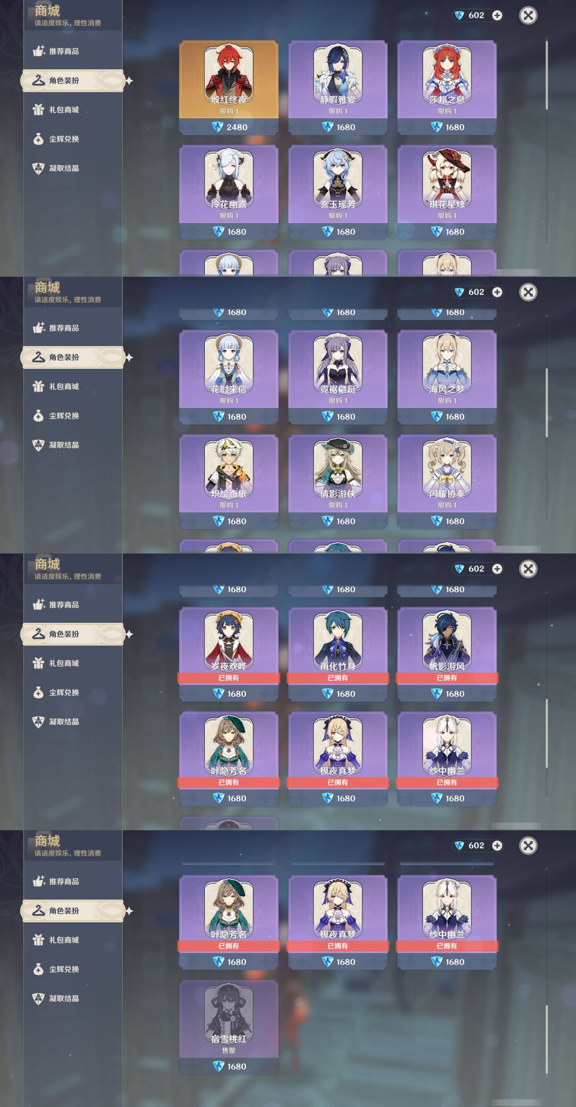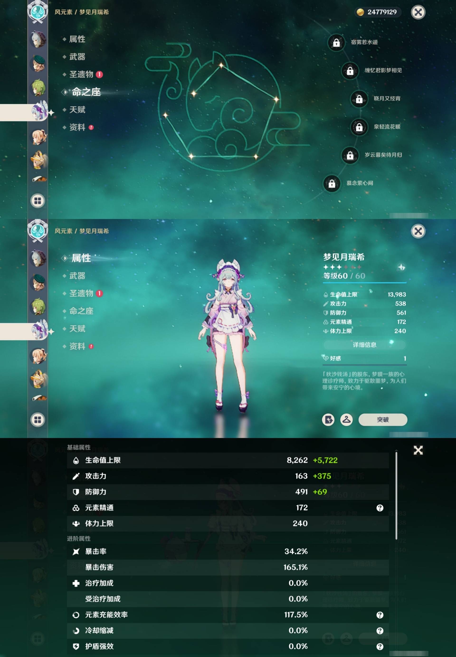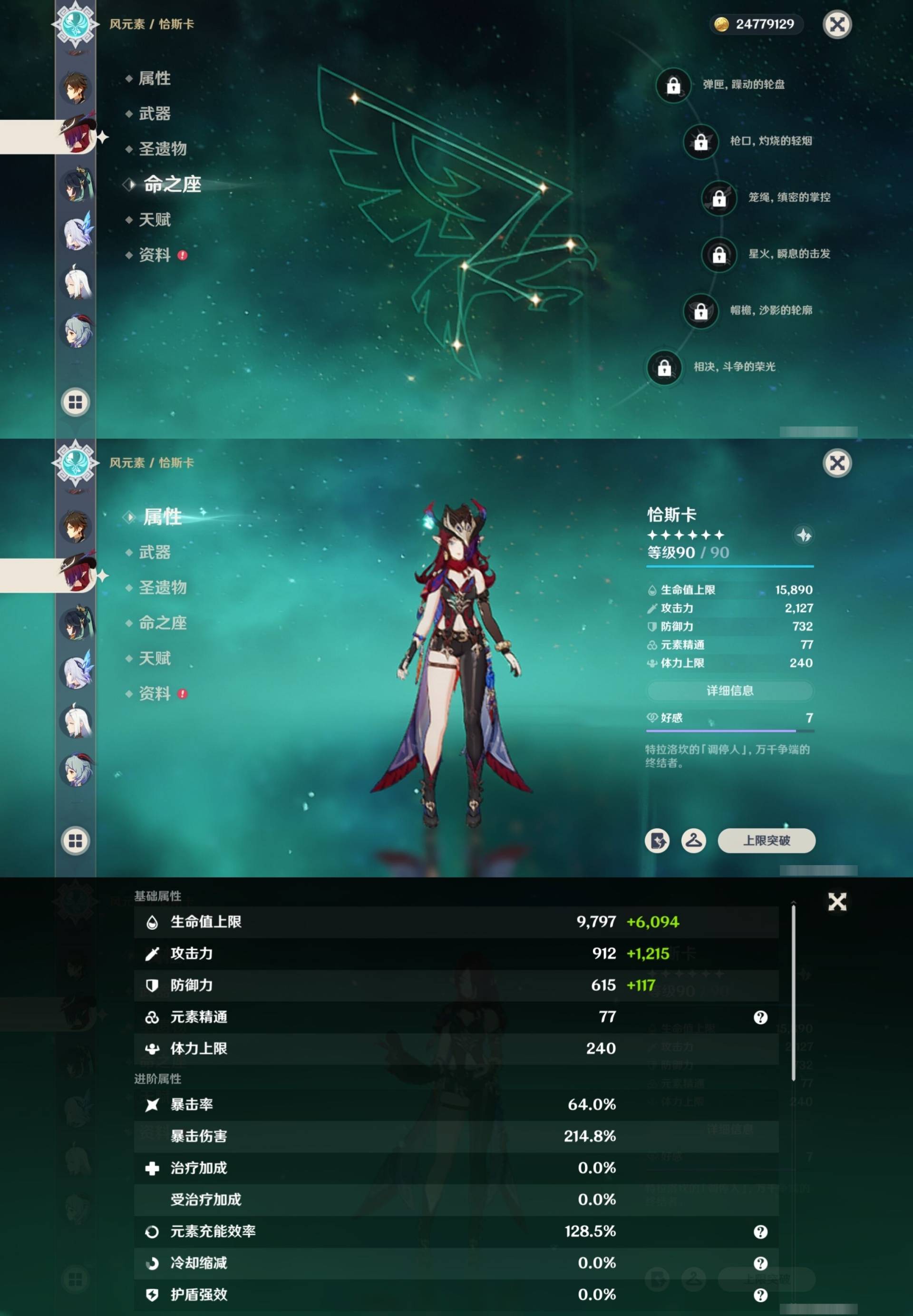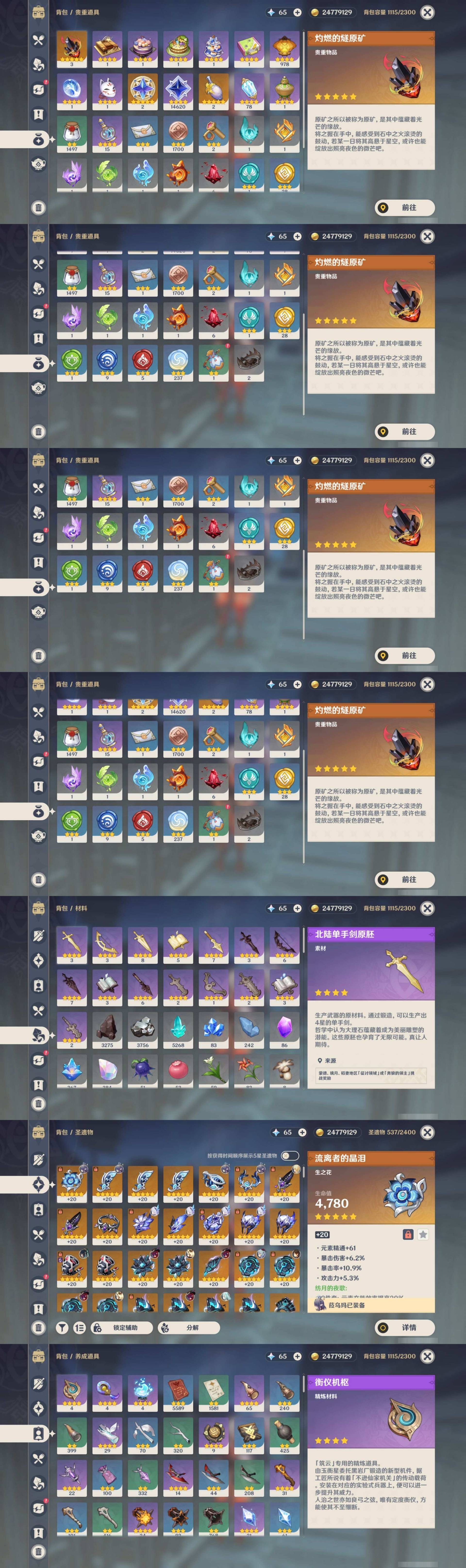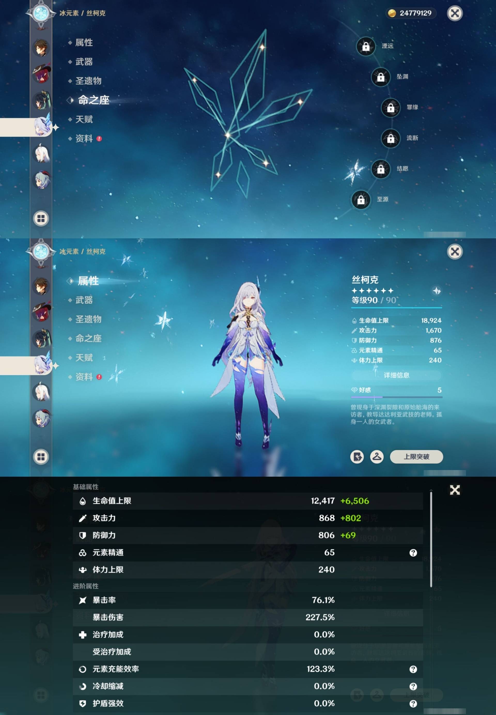 [13787558]81黄 风:0命枫原万叶,0命恰斯卡,1命闲云,0命温迪,0命梦见月瑞希,0命琴 火:6命胡桃,1命迪希雅,0命宵宫,6命迪卢克 水:6命那维莱特,3命芙宁娜,2命夜兰,1命莫娜 冰:0命丝柯克,0命申鹤,1命甘雨,2命七七 岩:0命钟离 雷:0命菲林斯,2命雷电将军,3命刻晴 草:0命纳西妲,0命菈乌玛,4命提纳里 弓:精1若水,精1天空之翼 法器:精1鹤鸣余音,精1万世流涌大典,精3千夜浮梦,精2四风原典,精1天空之卷 单手剑:精1静水流涌之辉,精1苍古自由之誓,精1风鹰剑,精1风鹰剑 双手剑:精1天空之傲 长柄武器:精1薙草之稻光,精1和璞鸢,精1护摩之杖 【角色皮肤】 五星角色:胡桃-宿雪桃红 四星角色:香菱-岁夜欢哗,行秋-雨化竹身,凯亚-帆影游风,丽莎-叶隐芳名,菲谢尔-极夜真梦,凝光-纱中幽兰