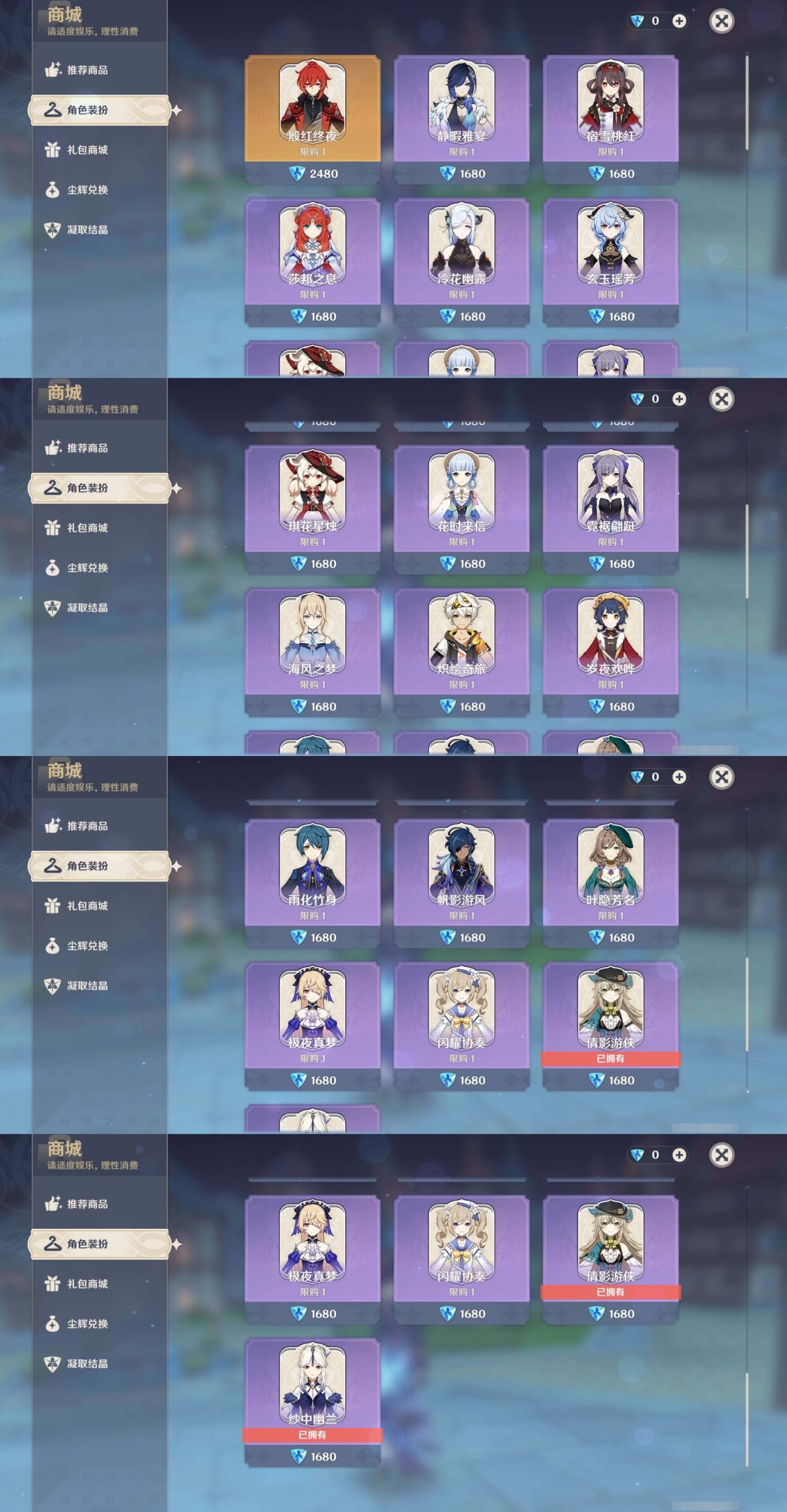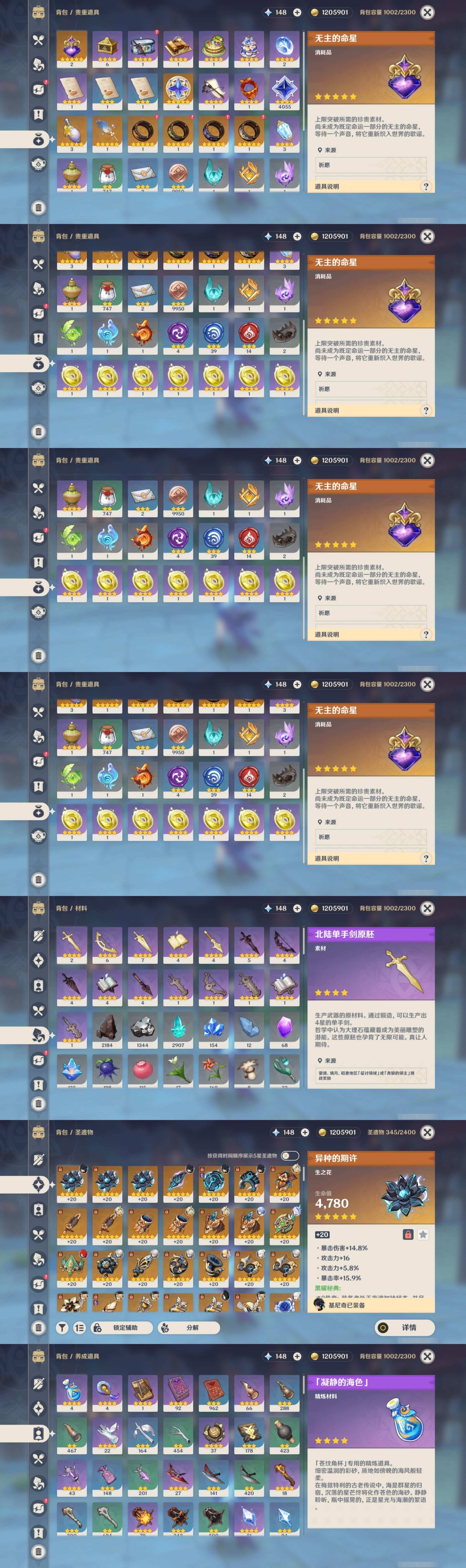 [13787687]122黄 风系:0命温迪/1命梦见月瑞希/4命琴/2命枫原万叶 火系:1命阿蕾奇诺/6命迪卢克/2命迪希雅 水系:5命芙宁娜/0命神里绫人/0命珊瑚宫心海/5命莫娜/0命那维莱特 冰系:0命丝柯克/1命申鹤/6命甘雨/6命神里绫华/1命七七 岩系:0命娜维娅/6命荒泷一斗/2命钟离/0命千织/1命希诺宁 雷系:6命八重神子/3命雷电将军/2命刻晴 草系:2命基尼奇/1命提纳里 [四星角色等级及命座] 风系: 6命砂糖/5命琳妮特/6命早柚/0命伊法/0命蓝砚/0命珐露珊/5命鹿野院平藏 火系: 6命班尼特/6命香菱/6命嘉明/6命烟绯/6命辛焱/3命安柏/6命托马/0命夏沃蕾 水系:6命行秋/6命芭芭拉/1命塔利雅/6命坎蒂丝 冰系:6命迪奥娜/6命重云/4命凯亚/6命罗莎莉亚/2命夏洛蒂/4命菲米尼/1命米卡/2命莱依拉 岩系:6命五郎/6命凝光/6命诺艾尔/6命云堇 雷系:6命九条裟罗/6命菲谢尔/6命雷泽/0命伊安珊/0命欧洛伦/1命赛索斯/2命多莉/2命久岐忍/6命北斗/3命丽莎 草系:1命卡维/6命瑶瑶/4命柯莱/6命绮良良 [角色经验书] 紫色92/蓝色962