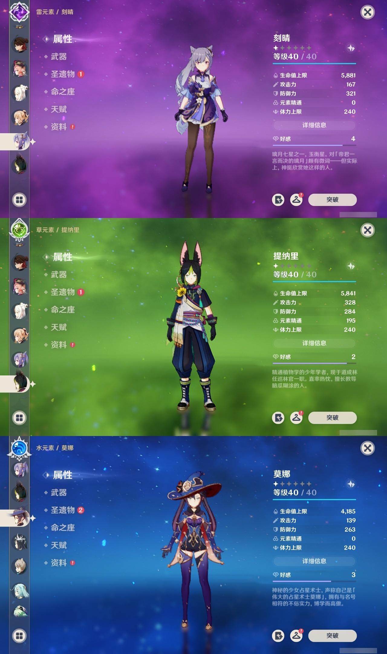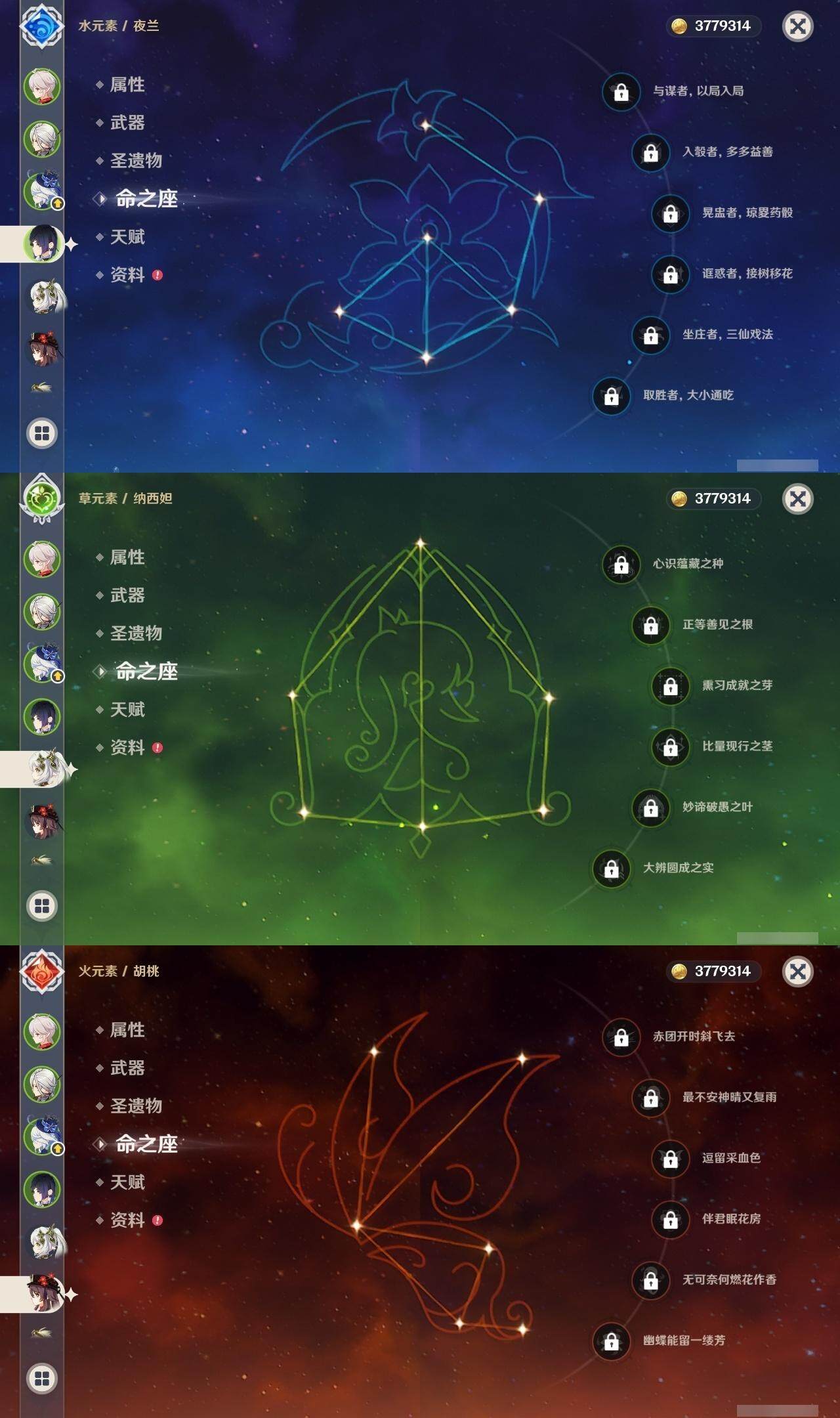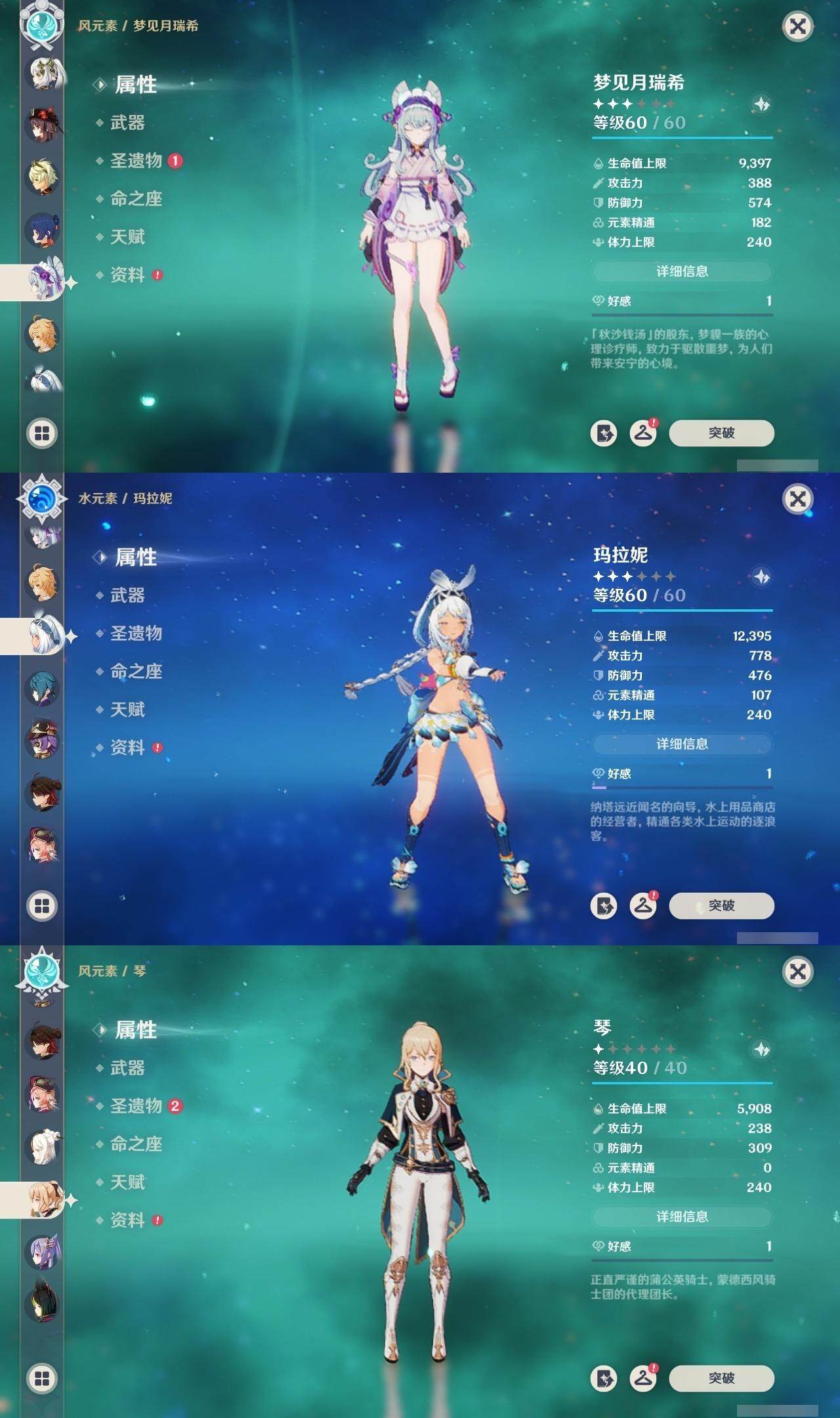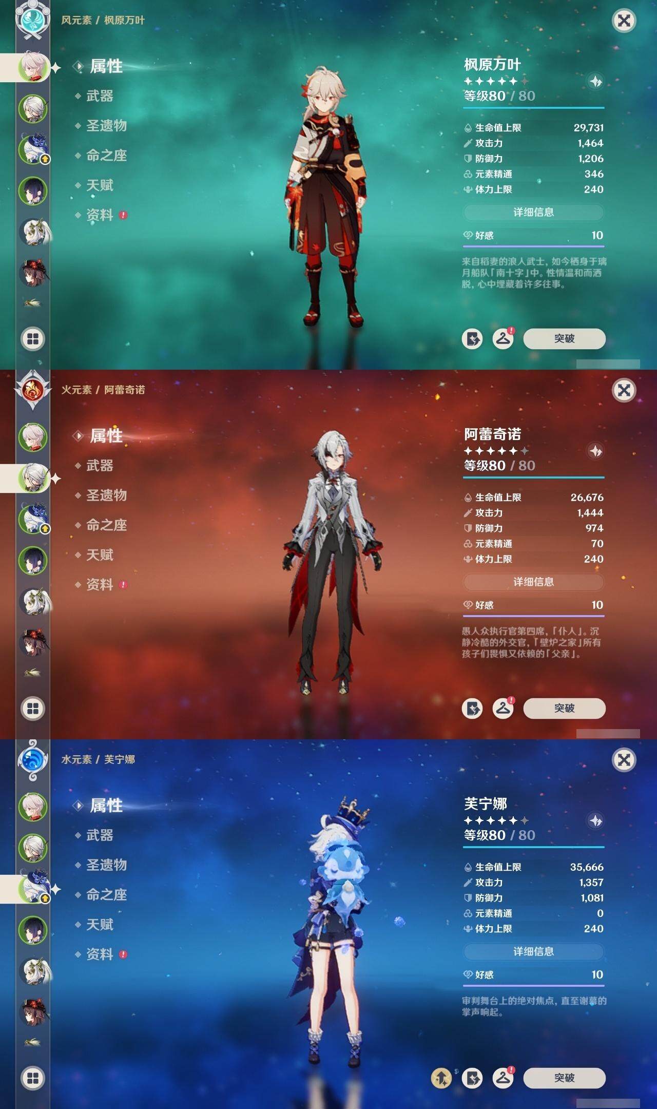 55级/18黄/男主/12个五星角色/1个五星武器 1命阿蕾奇诺0命芙宁娜0命纳西妲1命提纳里0命夜兰0命枫原万叶0命胡桃0命刻晴1命琴2命莫娜0命玛拉妮0命梦见月瑞希精1天空之卷