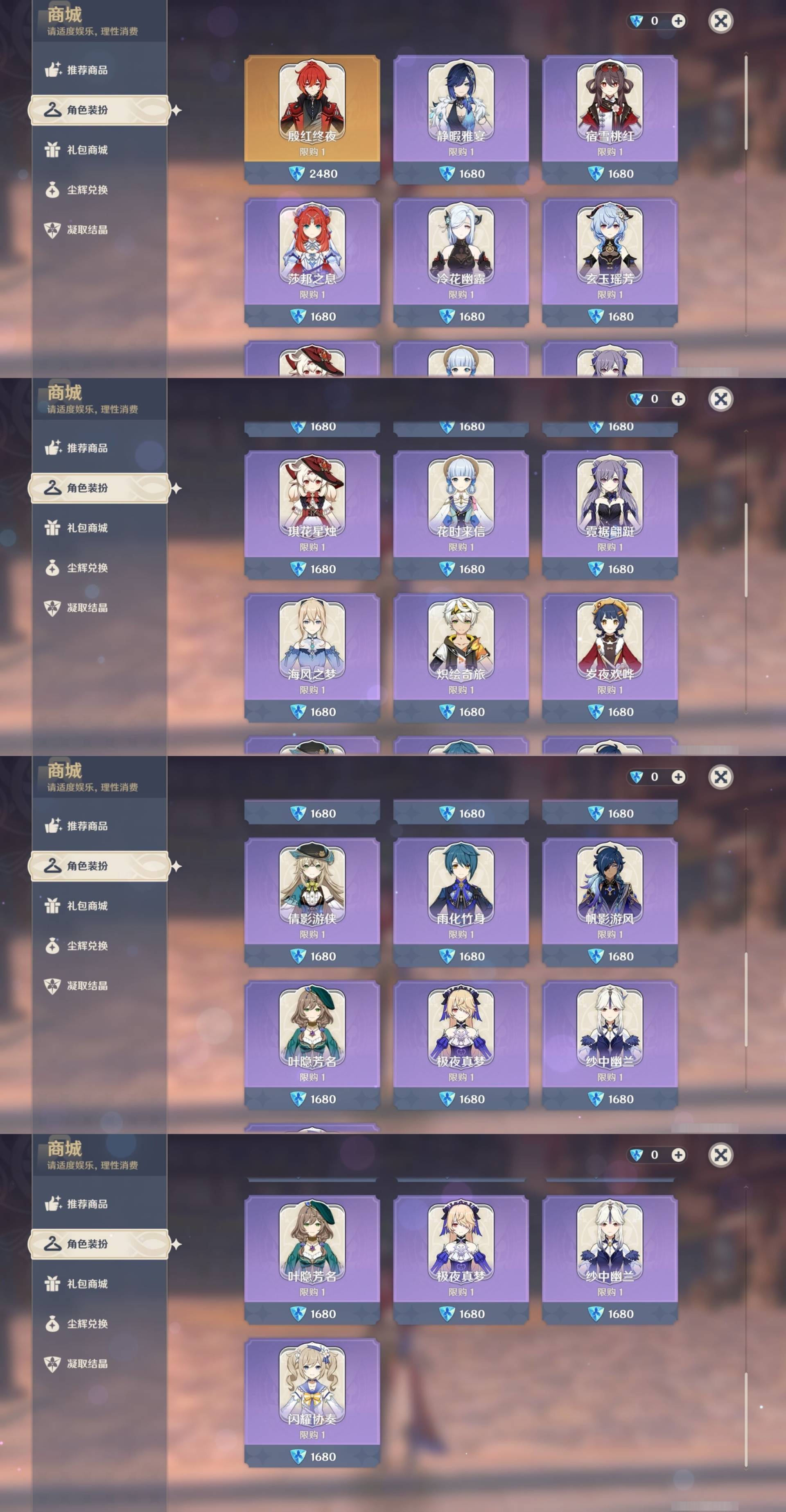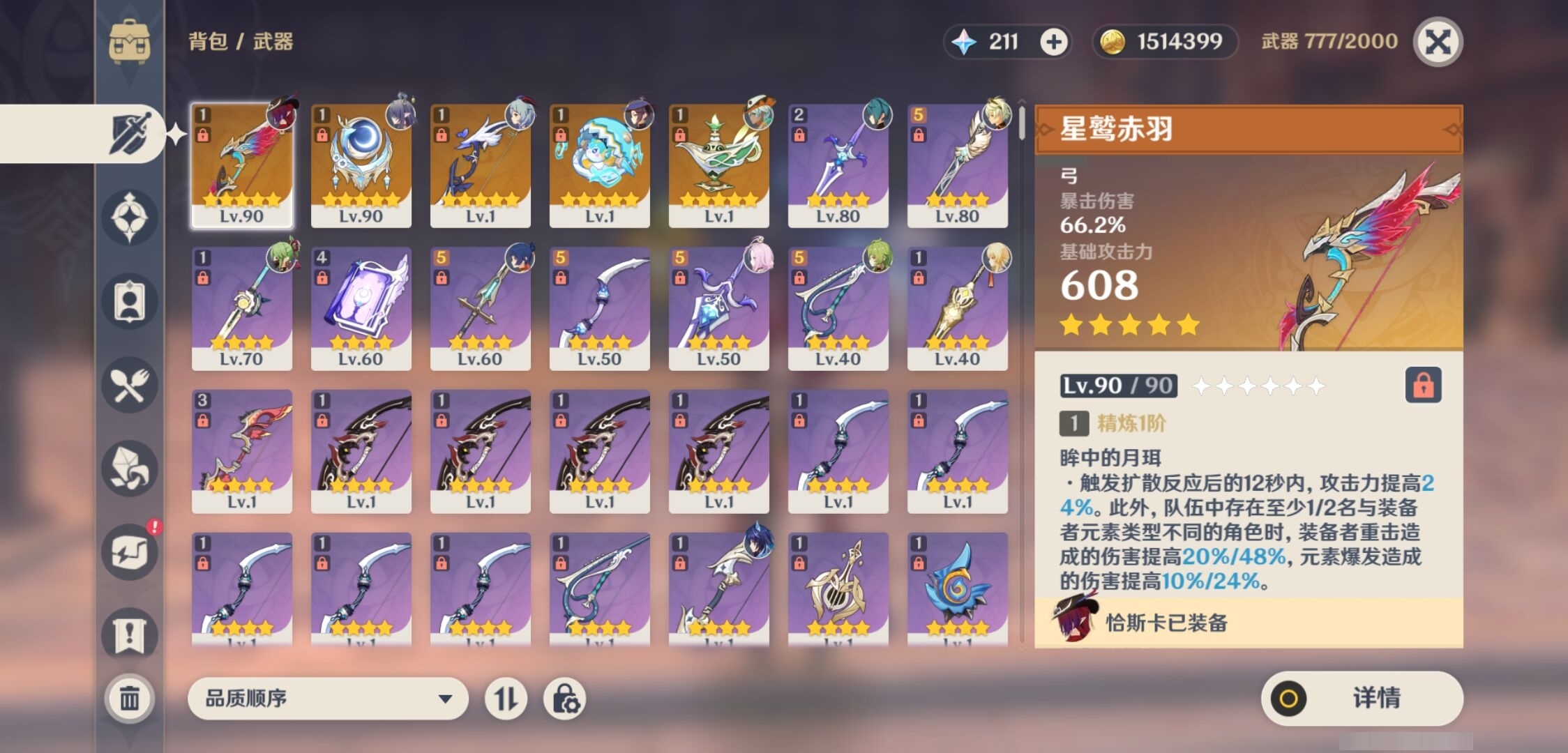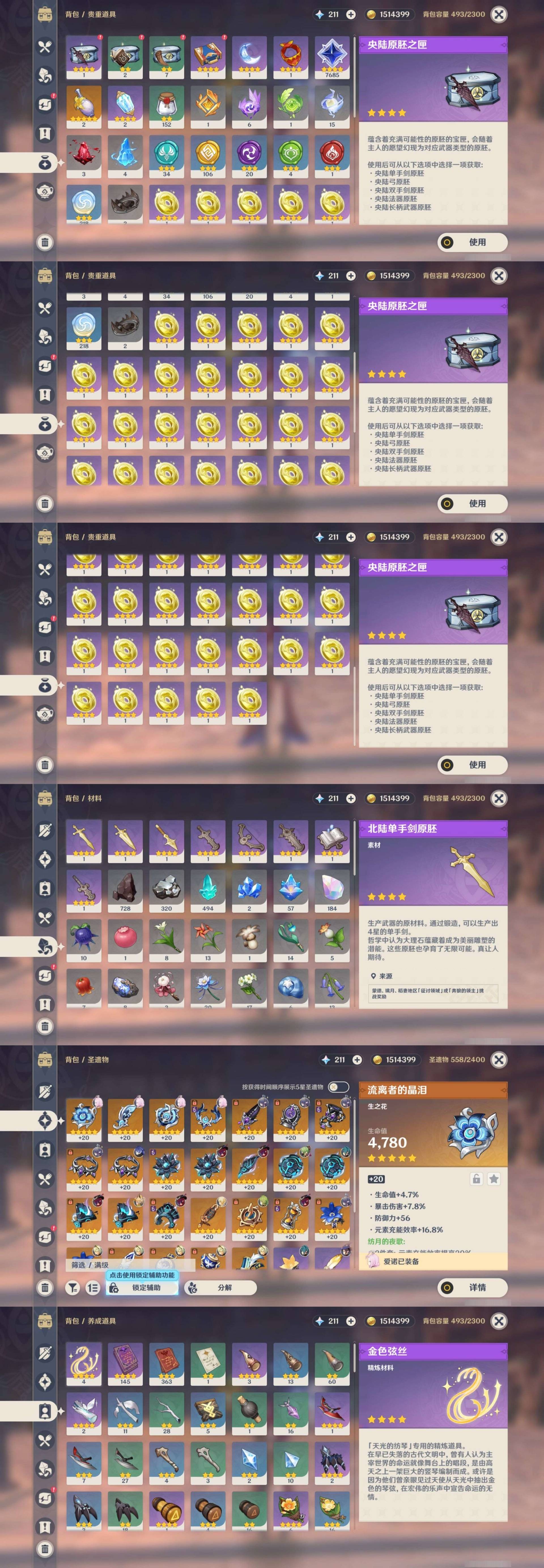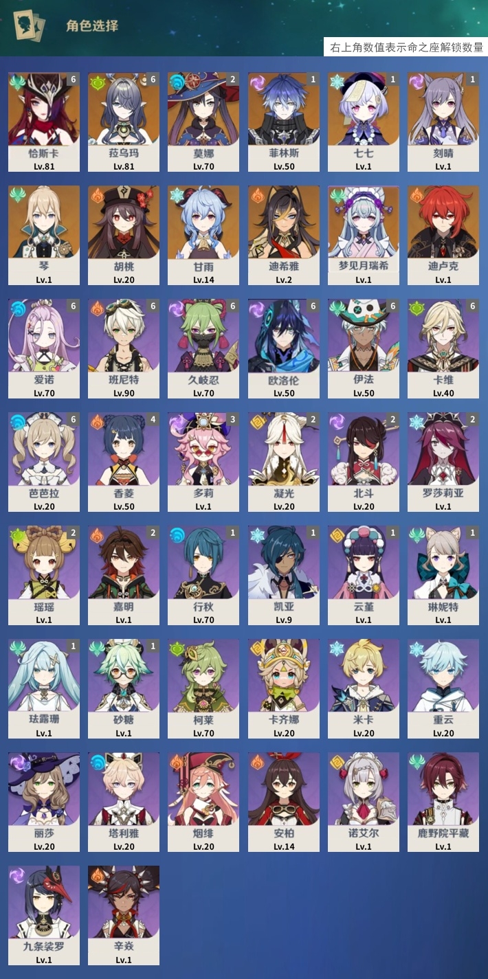 [13812750]34黄 风系:6命恰斯卡/0命琴/0命梦见月瑞希 火系:0命胡桃/0命迪希雅/0命迪卢克 水系:2命莫娜 冰系:0命甘雨/1命七七 岩系: 雷系:1命菲林斯/1命刻晴 草系:6命菈乌玛 [四星角色等级及命座] 风系: 6命伊法/1命琳妮特/1命珐露珊/0命鹿野院平藏/1命砂糖 火系: 6命班尼特/4命香菱/0命烟绯/0命安柏/2命嘉明/0命辛焱 水系:6命爱诺/1命行秋/0命塔利雅/6命芭芭拉 冰系:0命米卡/0命重云/1命凯亚/2命罗莎莉亚 岩系:2命凝光/1命云堇/0命诺艾尔 雷系:6命久岐忍/6命欧洛伦/2命北斗/0命丽莎/3命多莉/0命九条裟罗 草系:0命柯莱/6命卡维/2命瑶瑶 [角色经验书] 紫色145/蓝色363/绿色1 [小物品] 脆弱树脂1/异梦溶媒2/嬗变之尘152 [特殊材料] 东风之翎3/东风之爪3/东风的吐息1/吞天之鲸·只角1/魔王之刃·残片2/武炼之魂·孤影2/智识之冕9