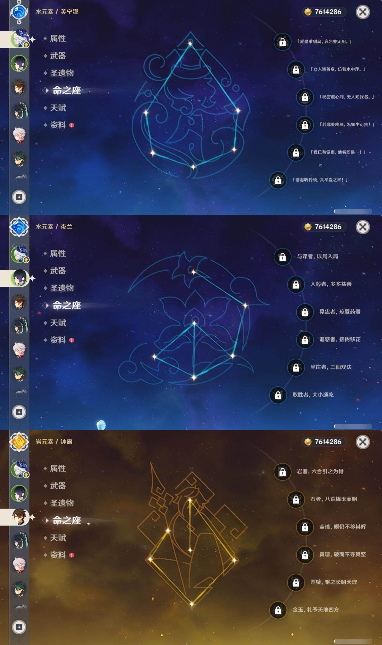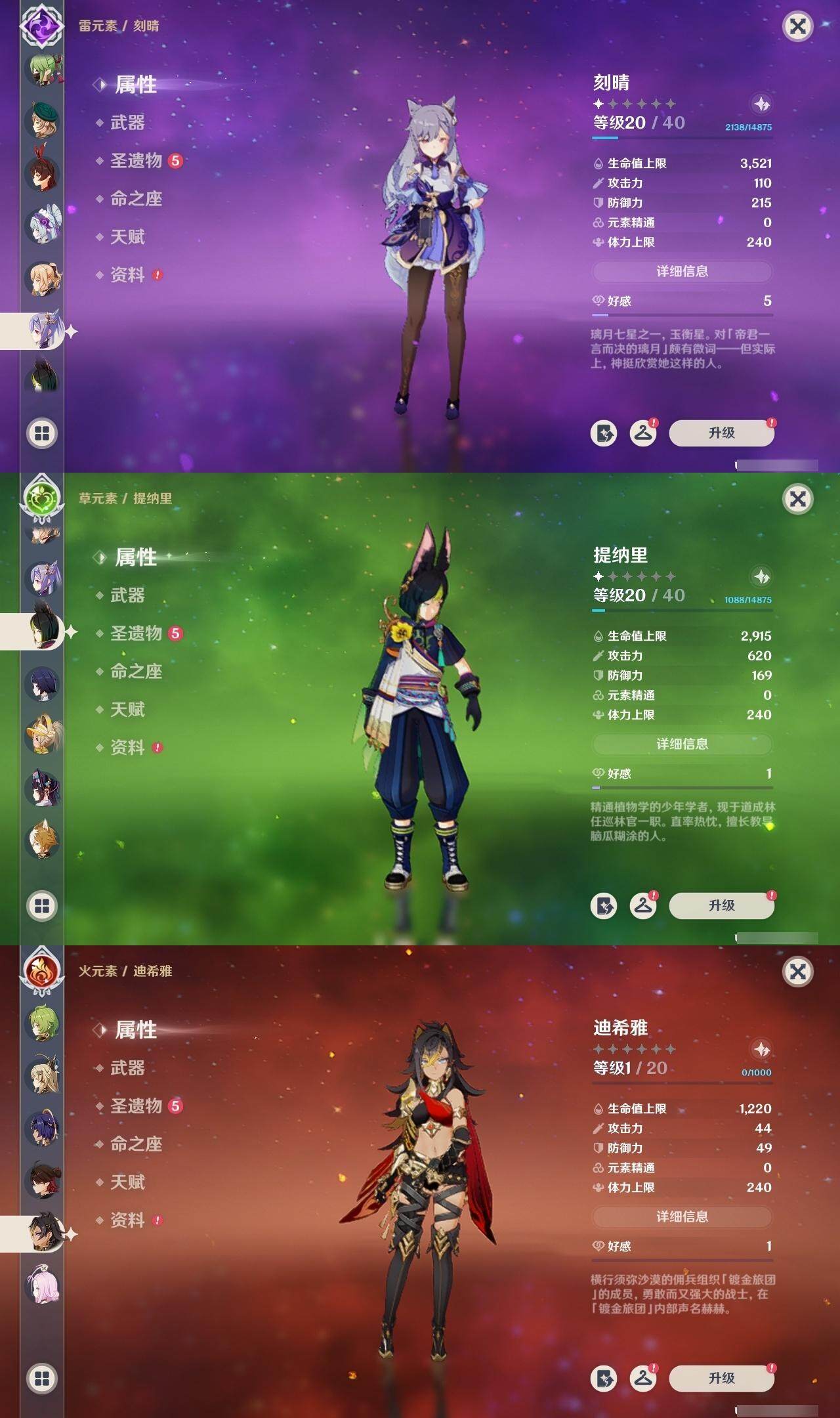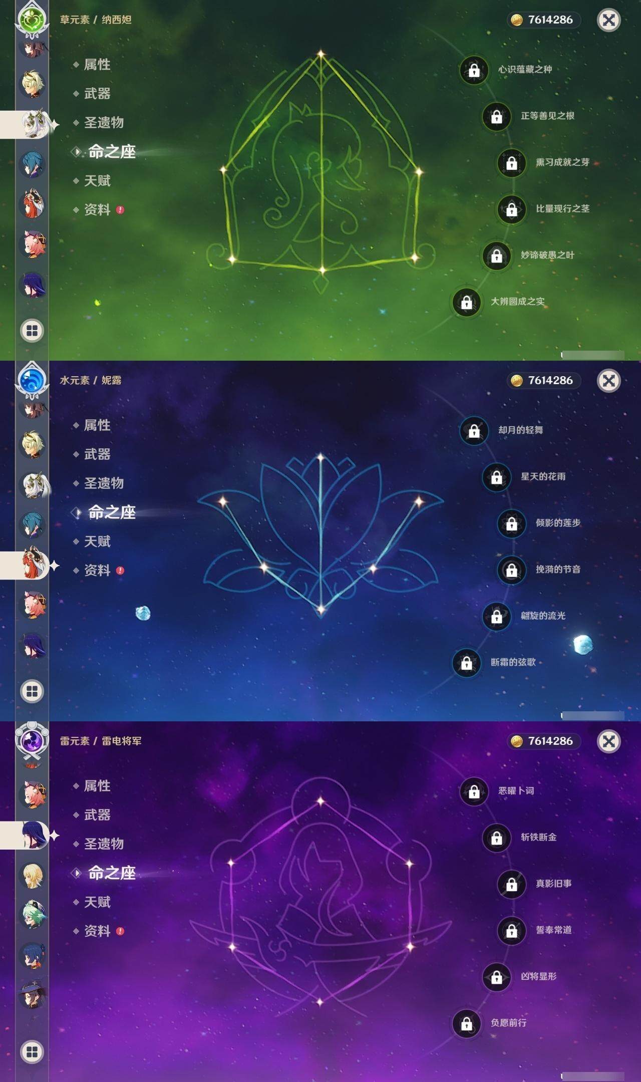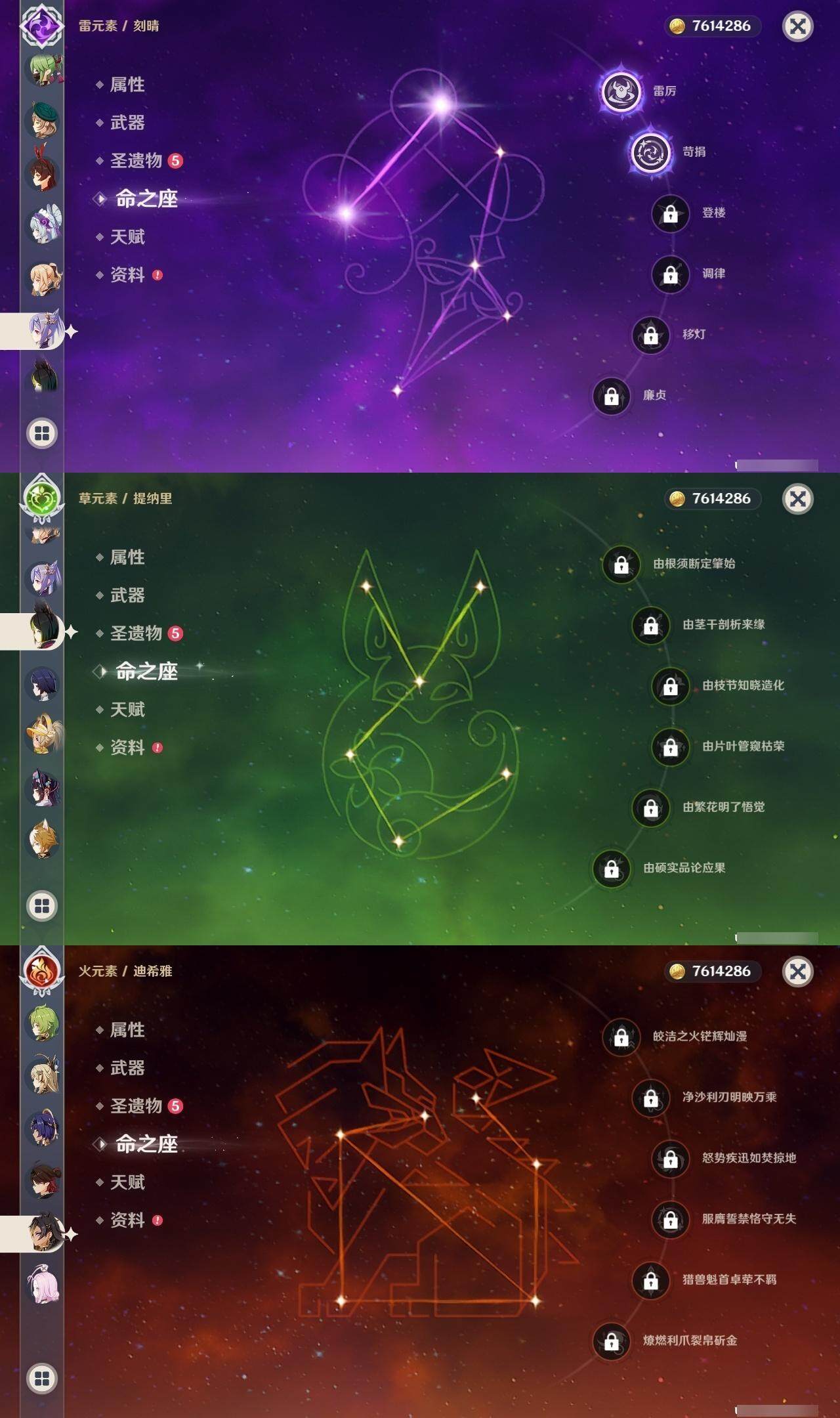 58级/28黄/女主/21个五星角色/4个五星武器 0命克洛琳德0命闲云0命芙宁娜0命那维莱特0命迪希雅0命纳西妲0命妮露0命赛诺0命提纳里0命夜兰0命雷电将军0命枫原万叶0命神里绫华0命钟离0命胡桃0命魈2命刻晴0命琴1命莫娜0命迪卢克0命梦见月瑞希精1赤沙之杖精1神乐之真意精1阿莫斯之弓精1狼的末路