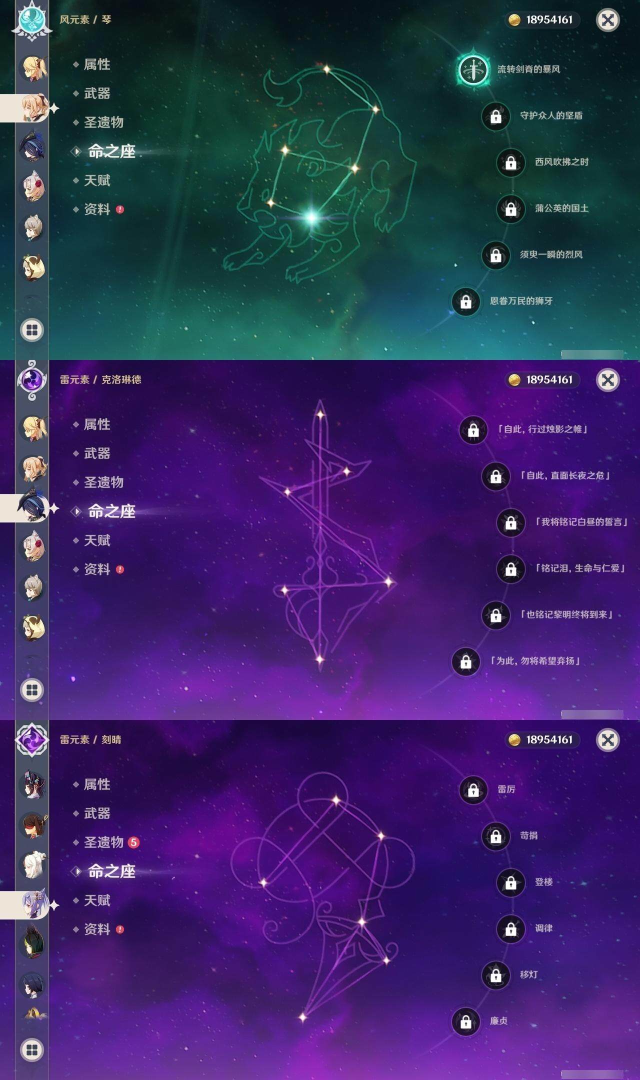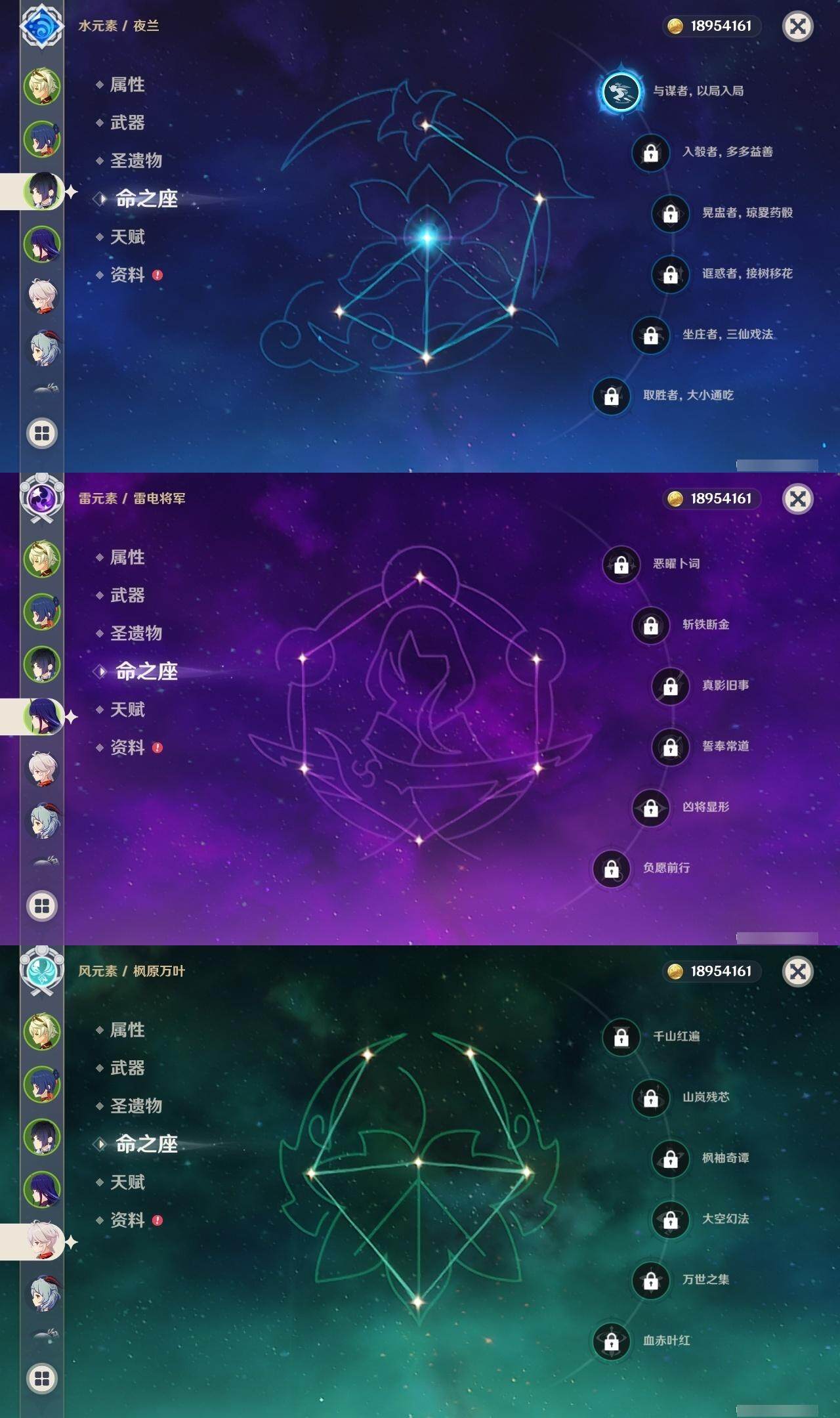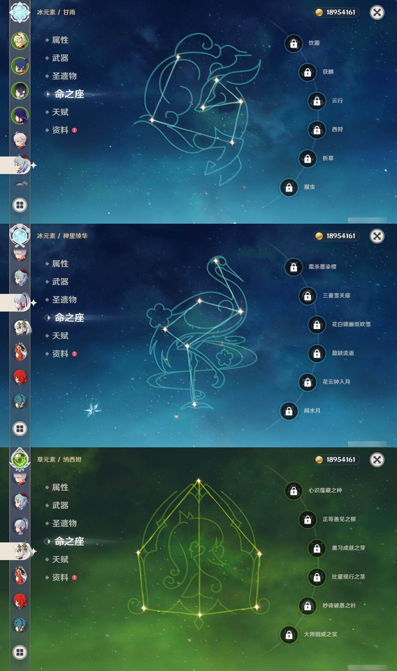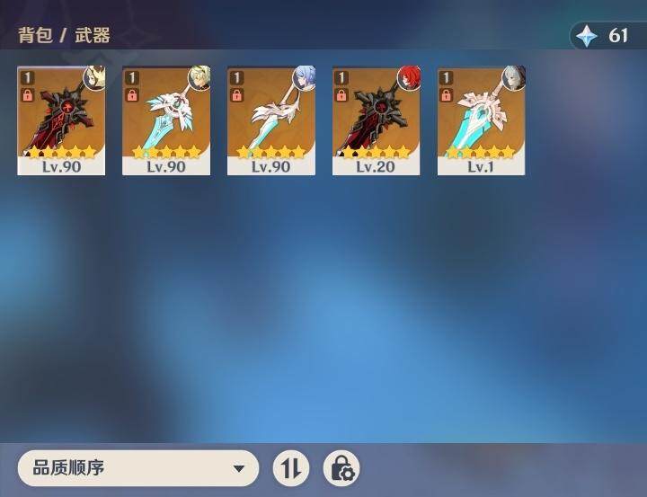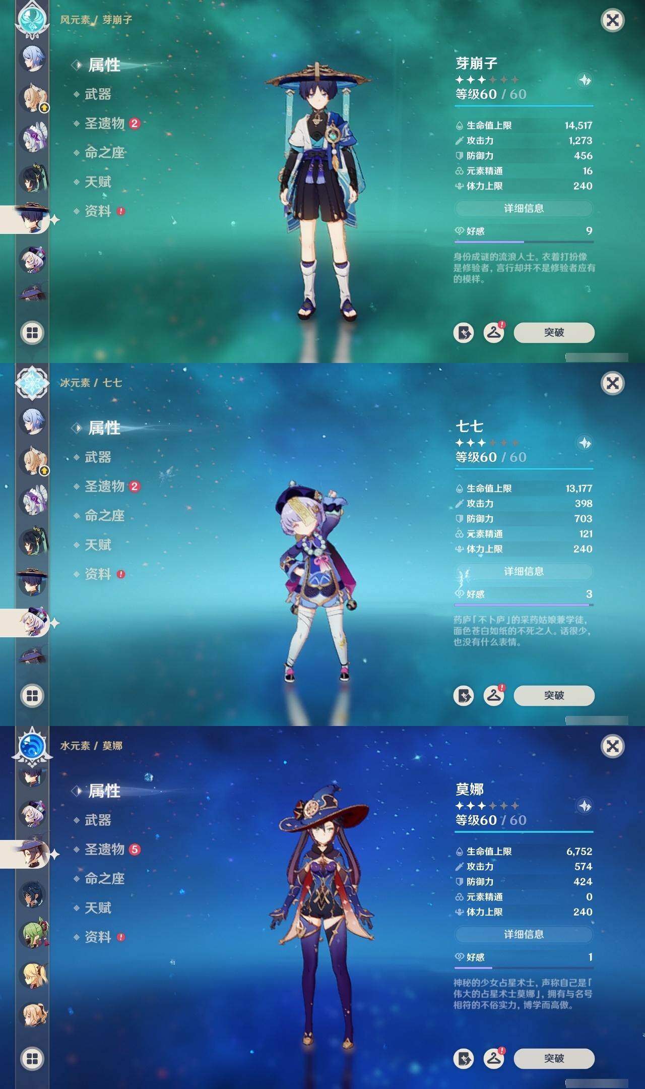 57级/28黄/女主/19个五星角色/5个五星武器 0命克洛琳德0命闲云0命流浪者0命纳西妲0命妮露1命提纳里1命夜兰0命神里绫人0命雷电将军0命枫原万叶0命神里绫华0命甘雨0命珊瑚宫心海0命刻晴0命七七1命琴0命莫娜1命迪卢克0命梦见月瑞希精1天空之刃精1风鹰剑精1狼的末路精1天空之傲