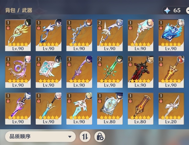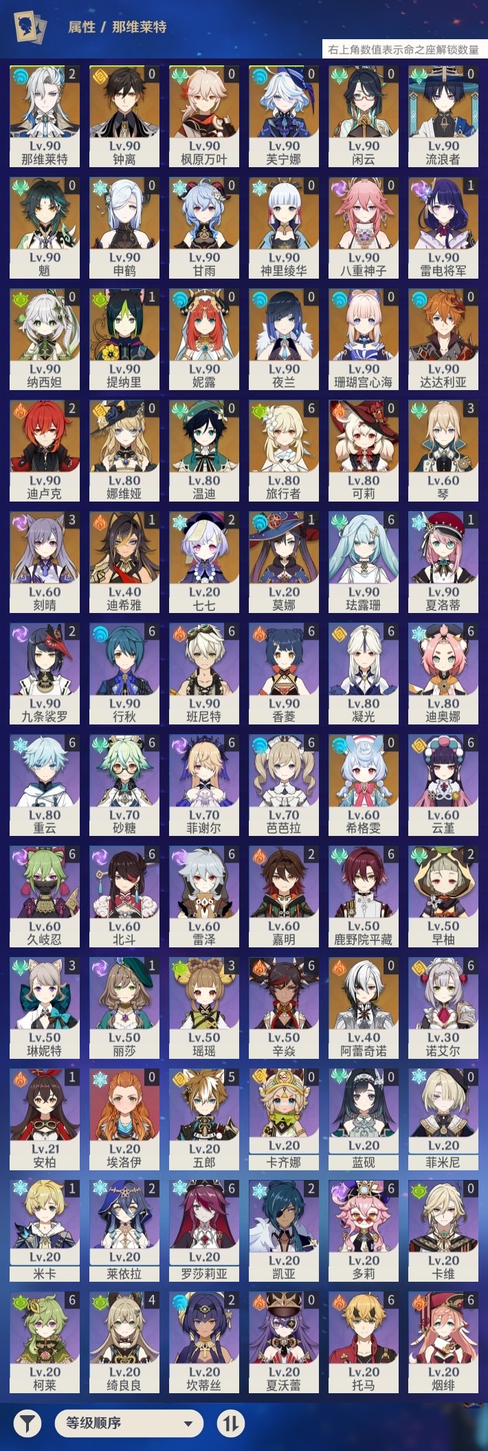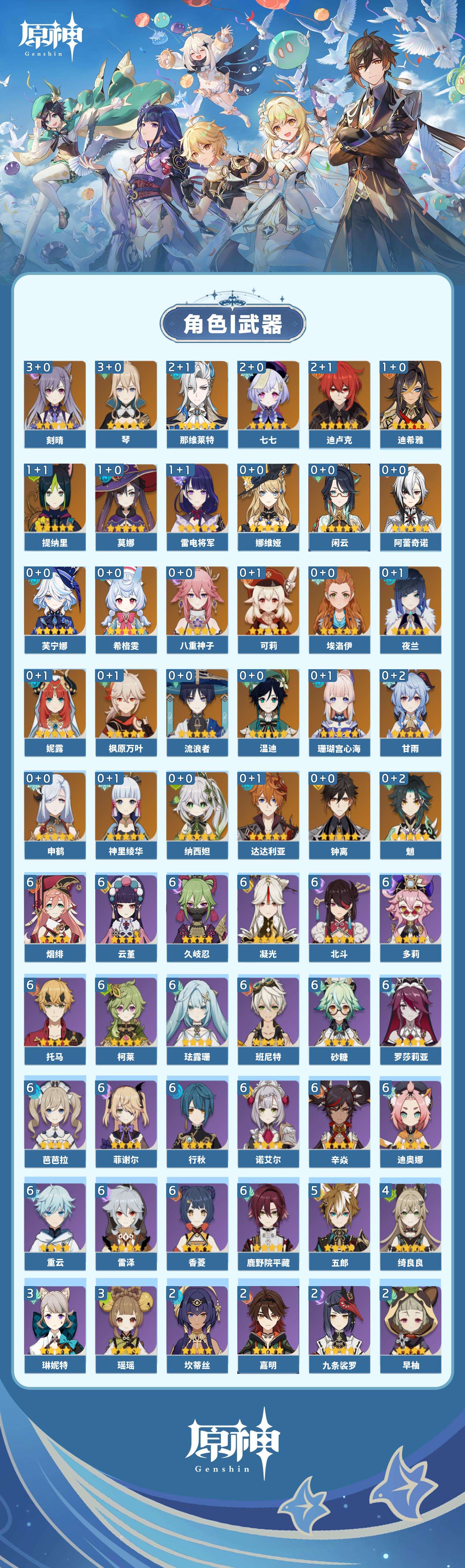 【原神】【lyys8065】冒险等级:60,五星数量:48,五星角色:刻晴 3命琴 3命那维莱特 2命迪卢克 2命七七 2命迪希雅 1命雷电将军 1命莫娜 1命提纳里 1命珊瑚宫心海神里绫华温迪钟离达达利亚申鹤八重神子夜兰芙宁娜娜维娅闲云阿蕾奇诺妮露纳西妲流浪者枫原万叶甘雨魈希格雯可莉__五星武器:阿莫斯之弓 2精和璞鸢 2精万世流涌大典不灭月华苍古自由之誓风鹰剑狼的末路四风原典天空之卷天空之刃天空之翼雾切之回光薙草之稻光冬极白星若水猎人之径赤沙之杖圣显之钥__四星角色:班尼特 6命行秋 6命香菱 6命久岐忍 6命鹿野院平藏 6命珐露珊 6命凝光 6命迪奥娜 6命砂糖 6命多莉 6命柯莱 6命芭芭拉 6命云堇 6命托马 6命烟绯 6命重云 6命辛焱 6命诺艾尔 6命罗莎莉亚 6命雷泽 6命菲谢尔 6命北斗 6命五郎 5命绮良良 4命瑶瑶 3命琳妮特 3命九条裟罗 2命莱依拉 2命坎蒂丝 2命早柚 2命嘉明 2命米卡 1命夏洛蒂 1命埃洛伊卡齐娜卡维蓝砚菲米尼夏沃蕾