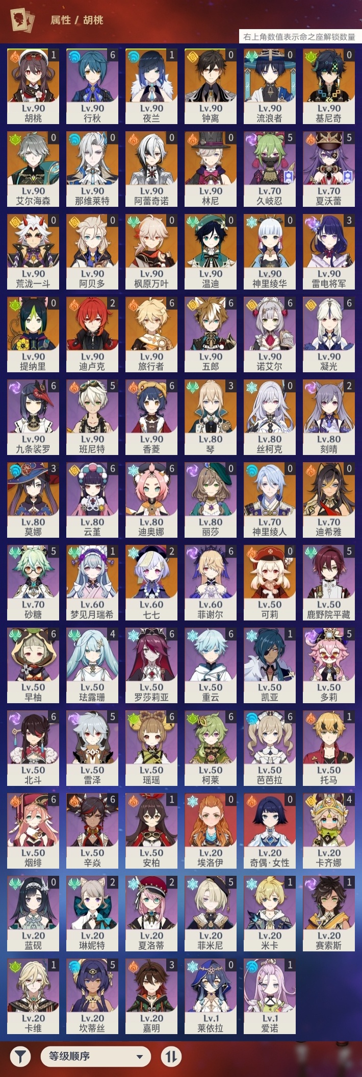 【原神】【lyys8069】冒险等级:60,五星数量:47,五星角色:雷电将军 3命莫娜 3命琴 3命迪卢克 2命刻晴 2命七七 2命梦见月瑞希 1命胡桃 1命夜兰 1命基尼奇神里绫华温迪迪希雅钟离荒泷一斗神里绫人林尼阿贝多那维莱特提纳里阿蕾奇诺丝柯克艾尔海森流浪者枫原万叶可莉__五星武器:波乱月白经津 2精山王长牙最初的大魔术万世流涌大典有乐御簾切裁叶萃光图莱杜拉的回忆阿莫斯之弓苍古自由之誓风鹰剑护摩之杖狼的末路四风原典天空之卷天空之刃雾切之回光薙草之稻光终末嗟叹之诗若水__四星角色:行秋 6命九条裟罗 6命香菱 6命凝光 6命迪奥娜 6命瑶瑶 6命柯莱 6命芭芭拉 6命云堇 6命早柚 6命五郎 6命烟绯 6命重云 6命辛焱 6命诺艾尔 6命罗莎莉亚 6命菲谢尔 6命北斗 6命班尼特 5命久岐忍 5命鹿野院平藏 5命砂糖 5命坎蒂丝 5命多莉 5命雷泽 5命菲米尼 5命夏沃蕾 5命卡齐娜 4命珐露珊 4命嘉明 3命琳妮特 2命夏洛蒂 2命米卡 1命卡维 1命托马 1命爱诺 1命赛索斯 1命埃洛伊奇偶·女性莱依拉蓝砚