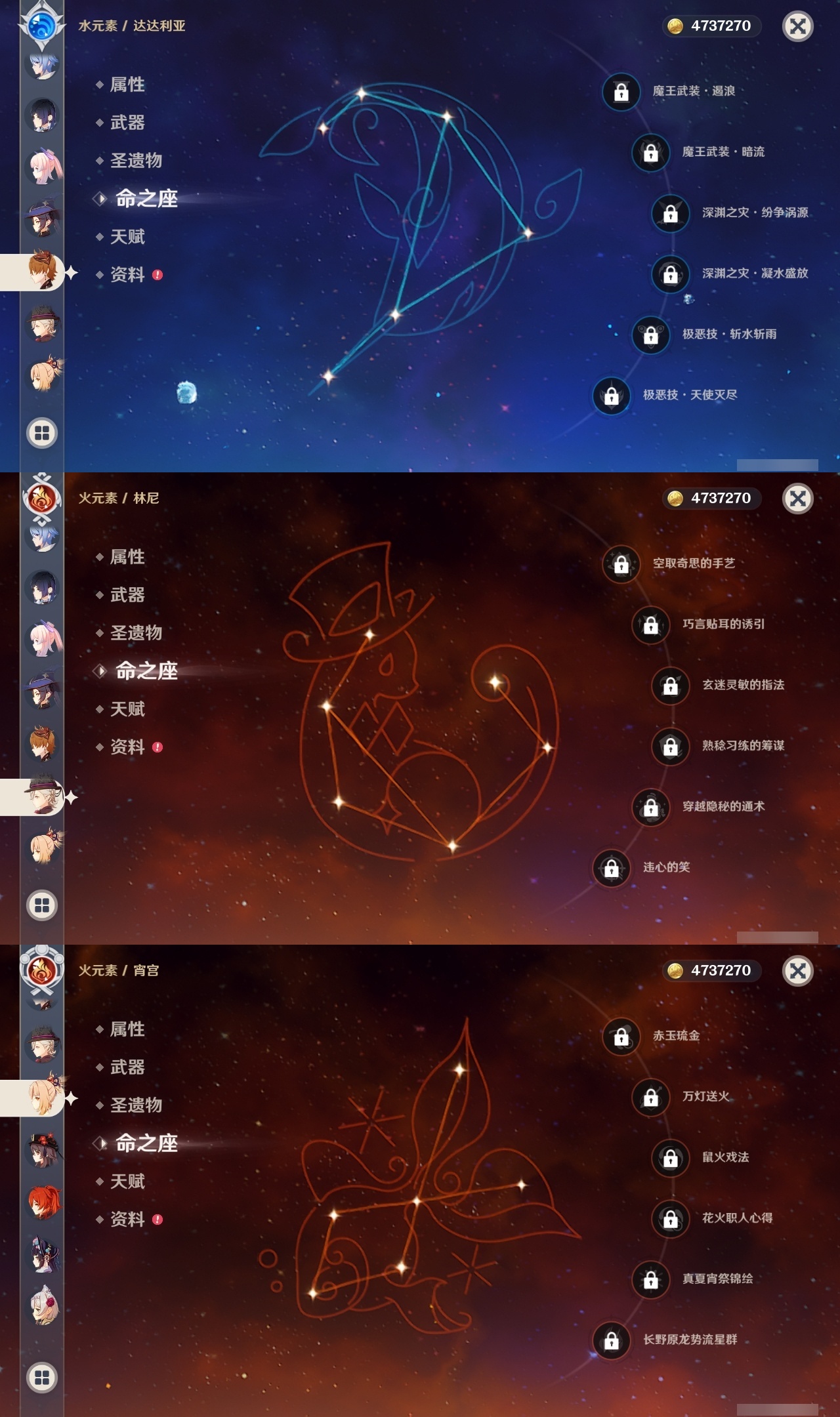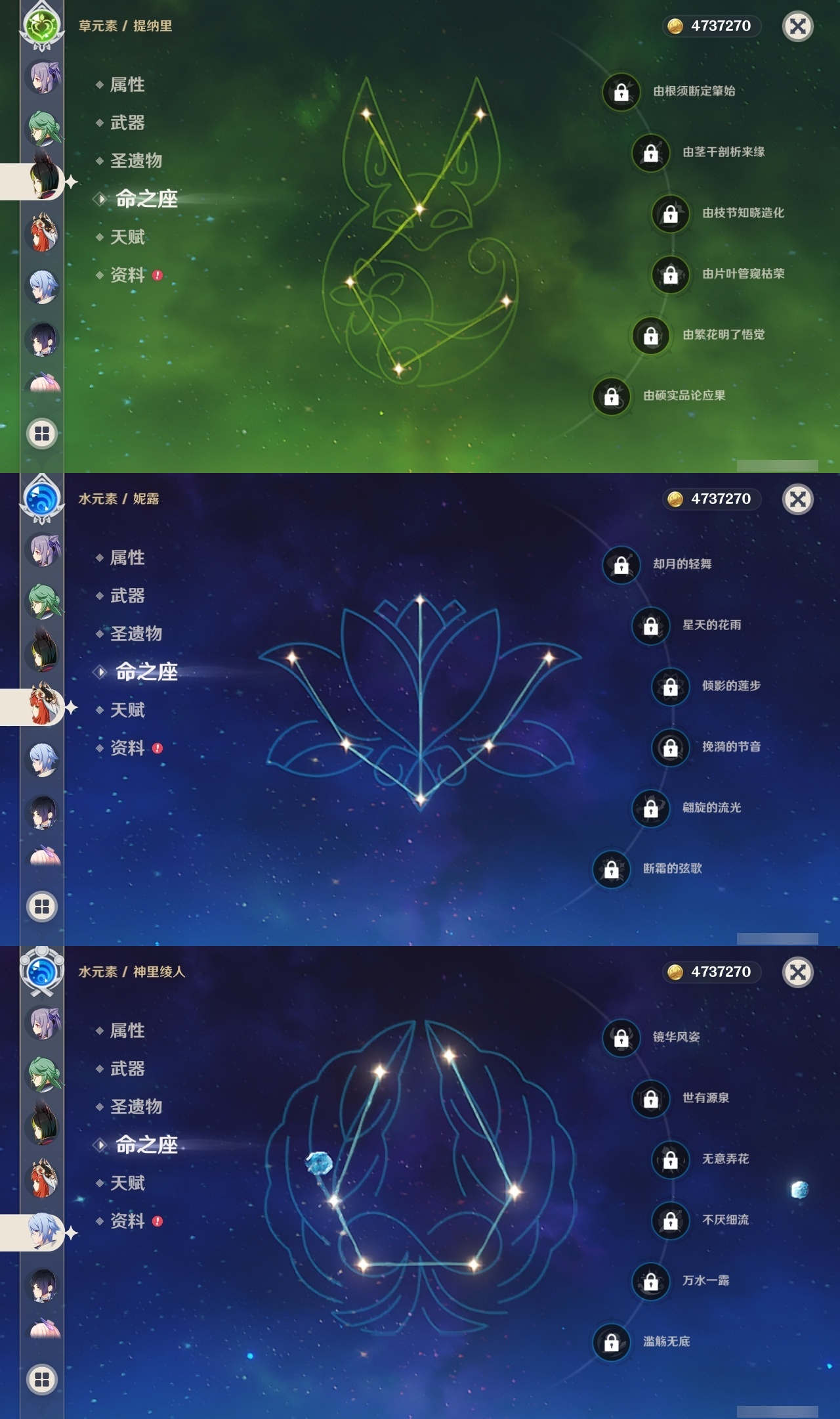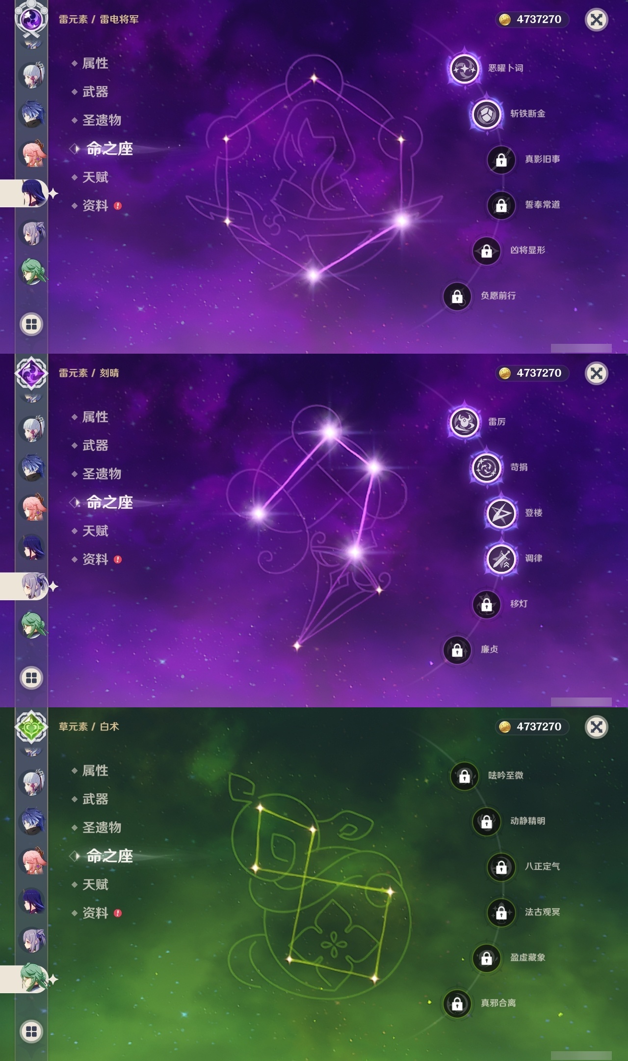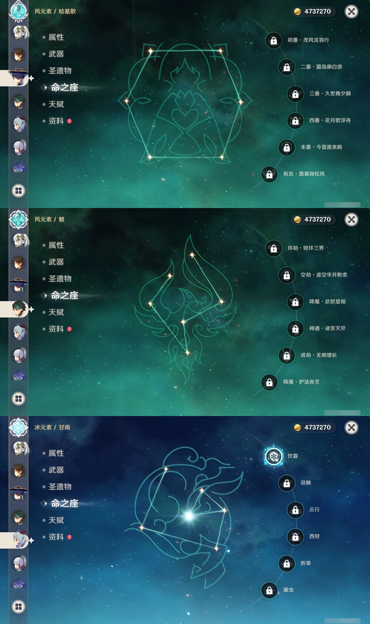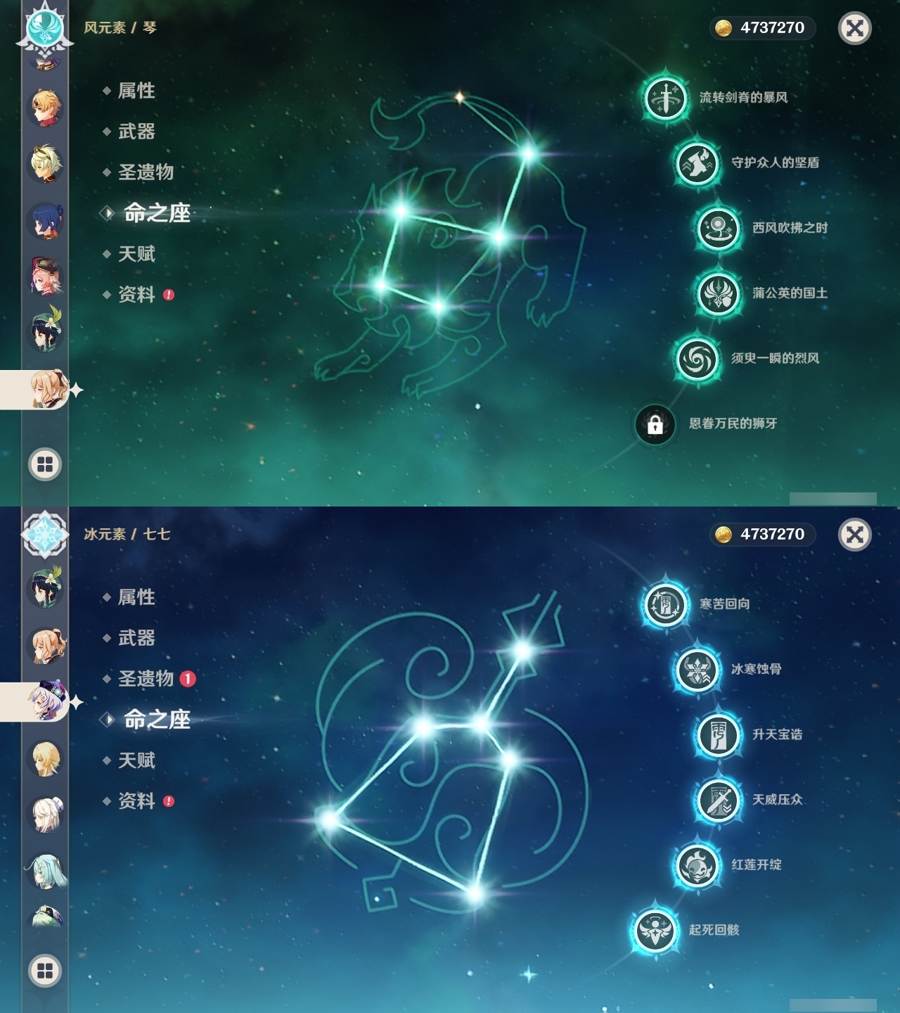 【原神】【lyys8070】冒险等级:60,五星数量:52,五星角色:七七 6命琴 5命刻晴 4命莫娜 4命迪卢克 3命那维莱特 2命芙宁娜 2命雷电将军 2命甘雨 1命夜兰 1命珊瑚宫心海希诺宁白术神里绫华温迪宵宫钟离达达利亚八重神子神里绫人林尼提纳里妮露纳西妲菲林斯流浪者枫原万叶魈胡桃__五星武器:天空之傲 2精万世流涌大典静水流涌之辉裁叶萃光飞雷之弦振和璞鸢护摩之杖狼的末路磐岩结绿天空之脊天空之卷天空之翼雾切之回光薙草之稻光终末嗟叹之诗神乐之真意贯虹之槊若水猎人之径千夜浮梦__四星角色:班尼特 6命行秋 6命九条裟罗 6命香菱 6命久岐忍 6命珐露珊 6命凝光 6命迪奥娜 6命砂糖 6命多莉 6命柯莱 6命芭芭拉 6命云堇 6命早柚 6命托马 6命烟绯 6命辛焱 6命诺艾尔 6命罗莎莉亚 6命雷泽 6命菲谢尔 6命北斗 6命瑶瑶 5命重云 5命卡齐娜 4命鹿野院平藏 4命坎蒂丝 4命夏洛蒂 4命米卡 3命嘉明 3命莱依拉 2命五郎 2命卡维 1命菲米尼 1命琳妮特 1命夏沃蕾 1命爱诺 1命埃洛伊奇偶·女性奇偶·男性绮良良赛索斯