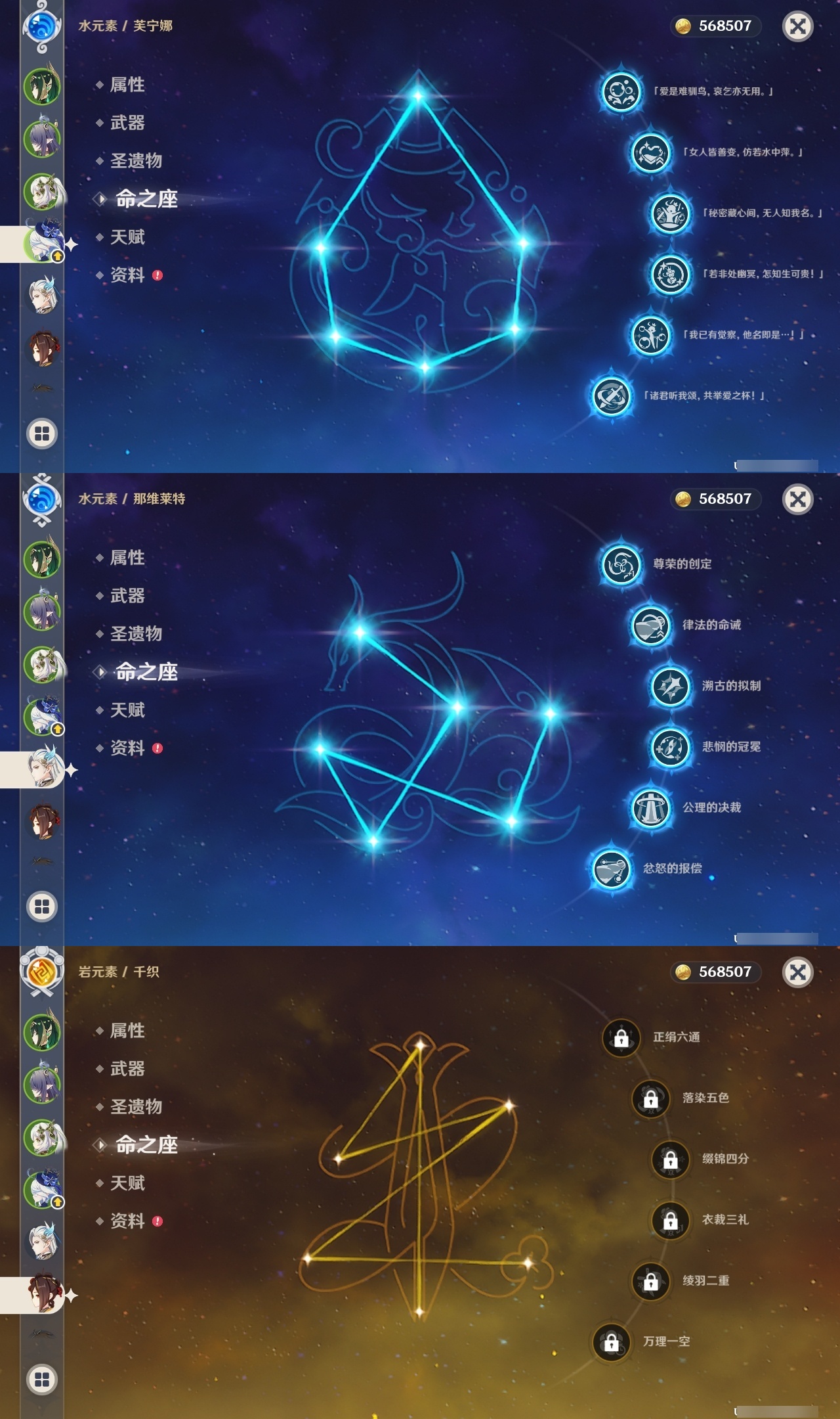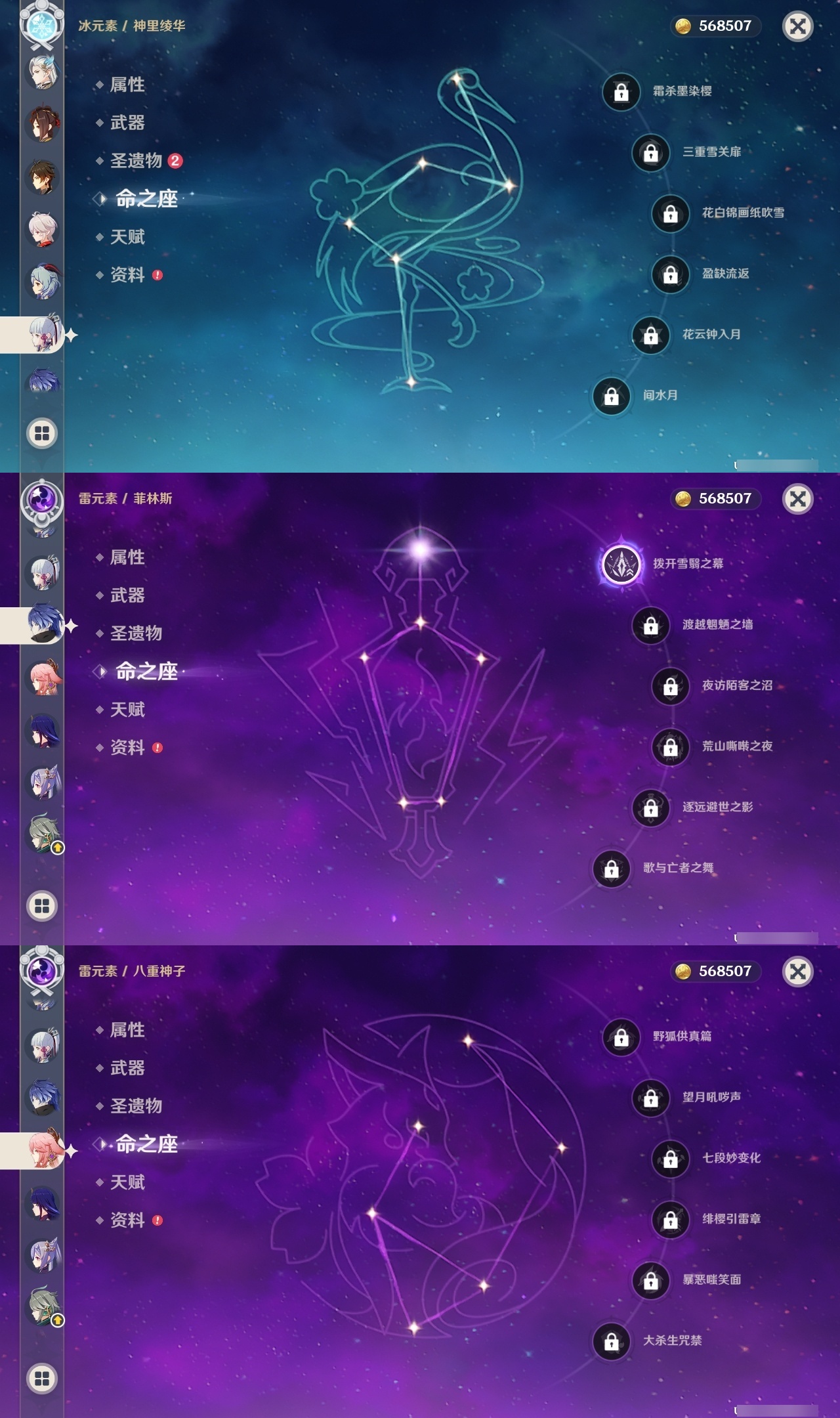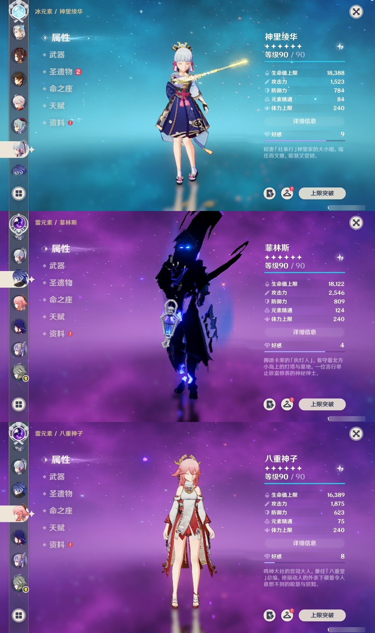 【原神】满命,冒险等级:60,五星数量:57,五星角色:那维莱特 6命芙宁娜 6命宵宫 6命提纳里 6命雷电将军 3命迪卢克 2命刻晴 2命莫娜 2命七七 2命夜兰 2命纳西妲 2命希诺宁 1命迪希雅 1命阿蕾奇诺 1命菲林斯 1命枫原万叶 1命胡桃 1命琴 1命玛拉妮珊瑚宫心海神里绫华钟离梦见月瑞希八重神子千织妮露菈乌玛艾尔海森奈芙尔流浪者甘雨__五星武器:飞雷之弦振 2精最初的大魔术万世流涌大典静水流涌之辉有乐御簾切血染荒城真语秘匣裁叶萃光不灭月华苍古自由之誓护摩之杖四风原典天空之傲天空之卷天空之刃天空之翼雾切之回光薙草之稻光斫峰之刃赤角石溃杵波乱月白经津若水猎人之径赤沙之杖圣显之钥__四星角色:班尼特 6命行秋 6命九条裟罗 6命香菱 6命久岐忍 6命珐露珊 6命凝光 6命迪奥娜 6命砂糖 6命瑶瑶 6命坎蒂丝 6命多莉 6命柯莱 6命芭芭拉 6命云堇 6命早柚 6命托马 6命五郎 6命烟绯 6命辛焱 6命诺艾尔 6命罗莎莉亚 6命雷泽 6命菲谢尔 6命北斗 6命菲米尼 6命琳妮特 6命夏洛蒂 6命爱诺 6命嘉明 5命莱依拉 4命鹿野院平藏 3命重云 2命卡齐娜 1命卡维 1命赛索斯 1命奇偶·女性绮良良米卡欧洛伦夏沃蕾