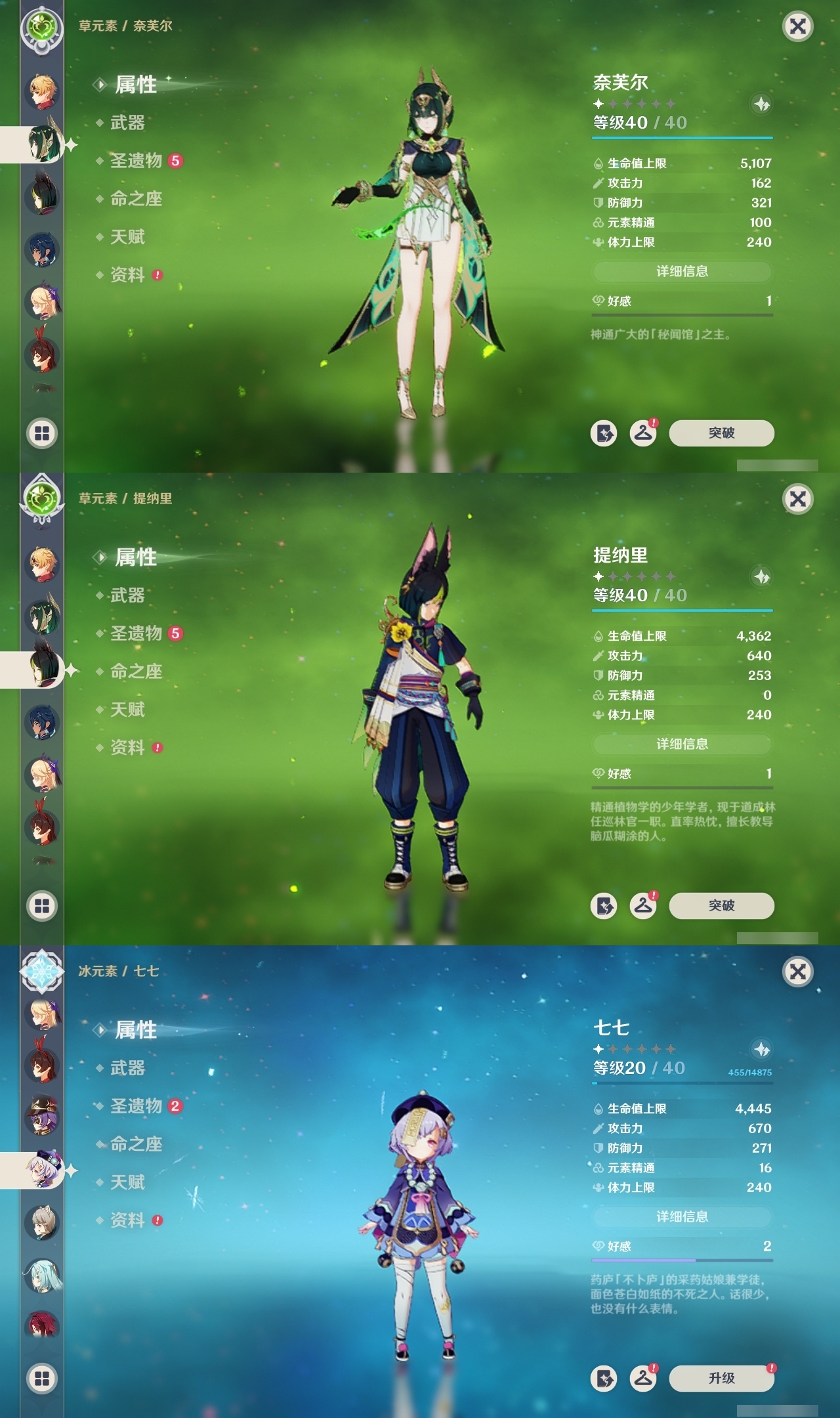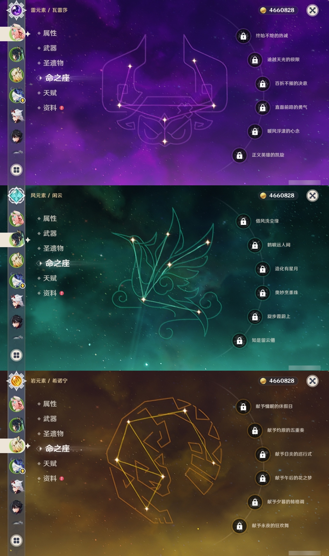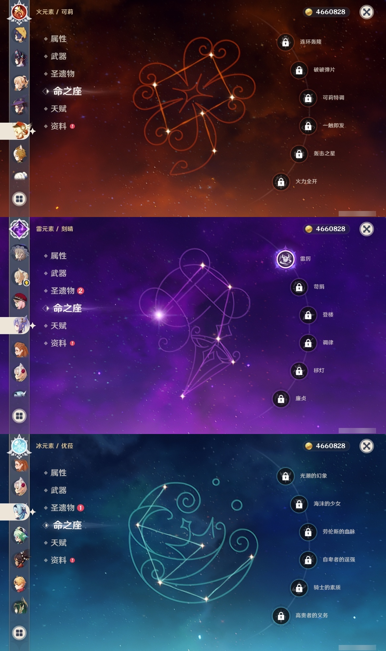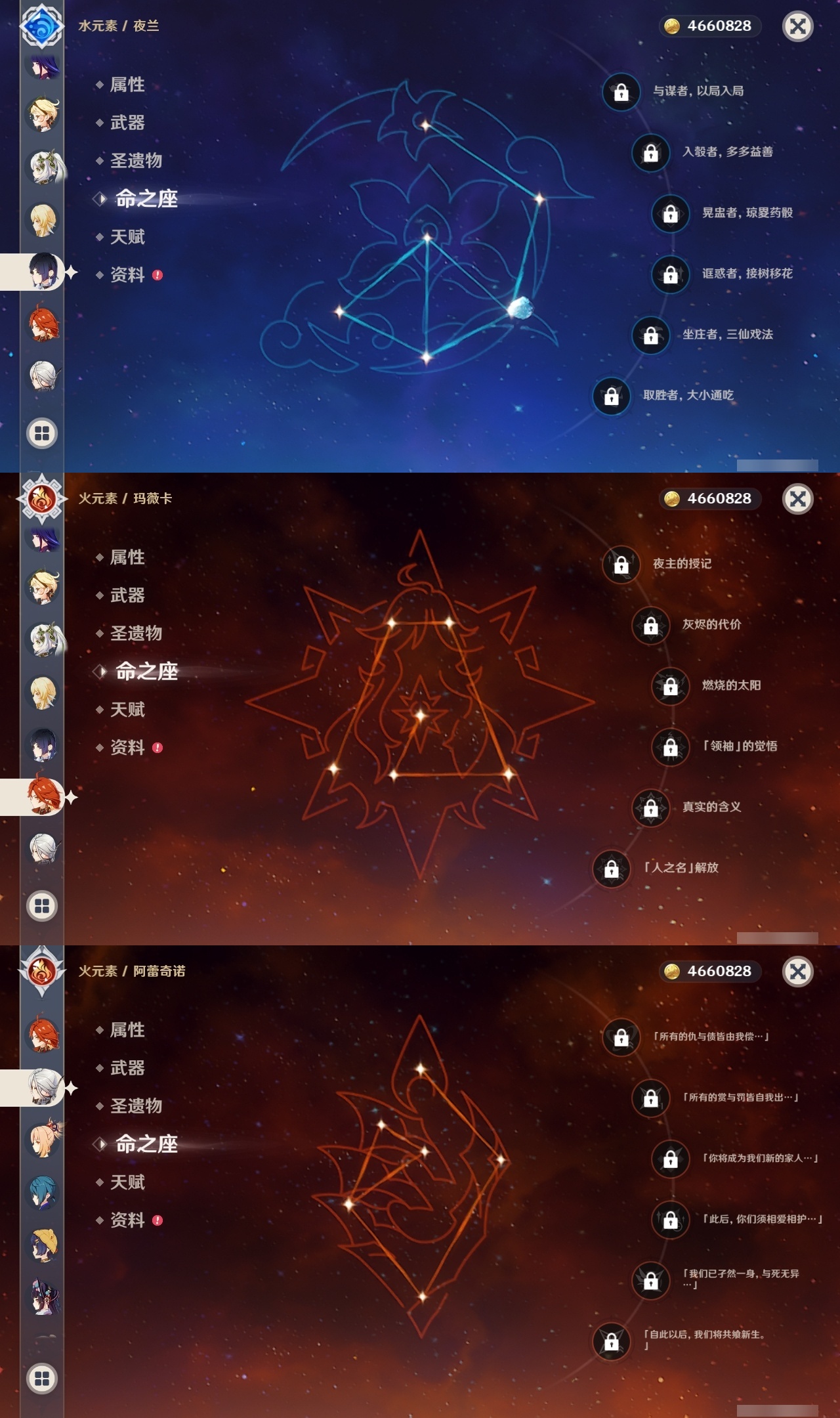 【原神】【lyys8083】冒险等级:60,五星数量:46,五星角色:莫娜 3命七七 3命迪卢克 2命那维莱特 1命芙宁娜 1命刻晴 1命琴 1命提纳里 1命艾梅莉埃希诺宁神里绫华玛薇卡宵宫优菈迪希雅钟离荒泷一斗申鹤瓦雷莎莱欧斯利夜兰闲云阿蕾奇诺丝柯克妮露纳西妲奈芙尔枫原万叶克洛琳德可莉雷电将军__五星武器:星鹫赤羽万世流涌大典飞雷之弦振风鹰剑和璞鸢狼的末路天空之脊天空之卷天空之刃天空之翼无工之剑薙草之稻光赤角石溃杵圣显之钥__四星角色:班尼特 6命行秋 6命香菱 6命鹿野院平藏 6命迪奥娜 6命坎蒂丝 6命多莉 6命芭芭拉 6命云堇 6命早柚 6命托马 6命五郎 6命烟绯 6命诺艾尔 6命罗莎莉亚 6命雷泽 6命菲谢尔 6命卡齐娜 5命凝光 5命砂糖 5命重云 5命辛焱 5命菲米尼 5命柯莱 4命卡维 4命北斗 4命珐露珊 3命莱依拉 3命夏洛蒂 3命嘉明 3命瑶瑶 2命蓝砚 2命赛索斯 2命九条裟罗 1命久岐忍 1命米卡 1命欧洛伦 1命琳妮特 1命夏沃蕾 1命爱诺 1命埃洛伊