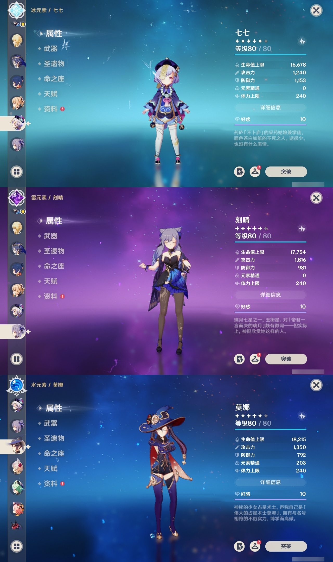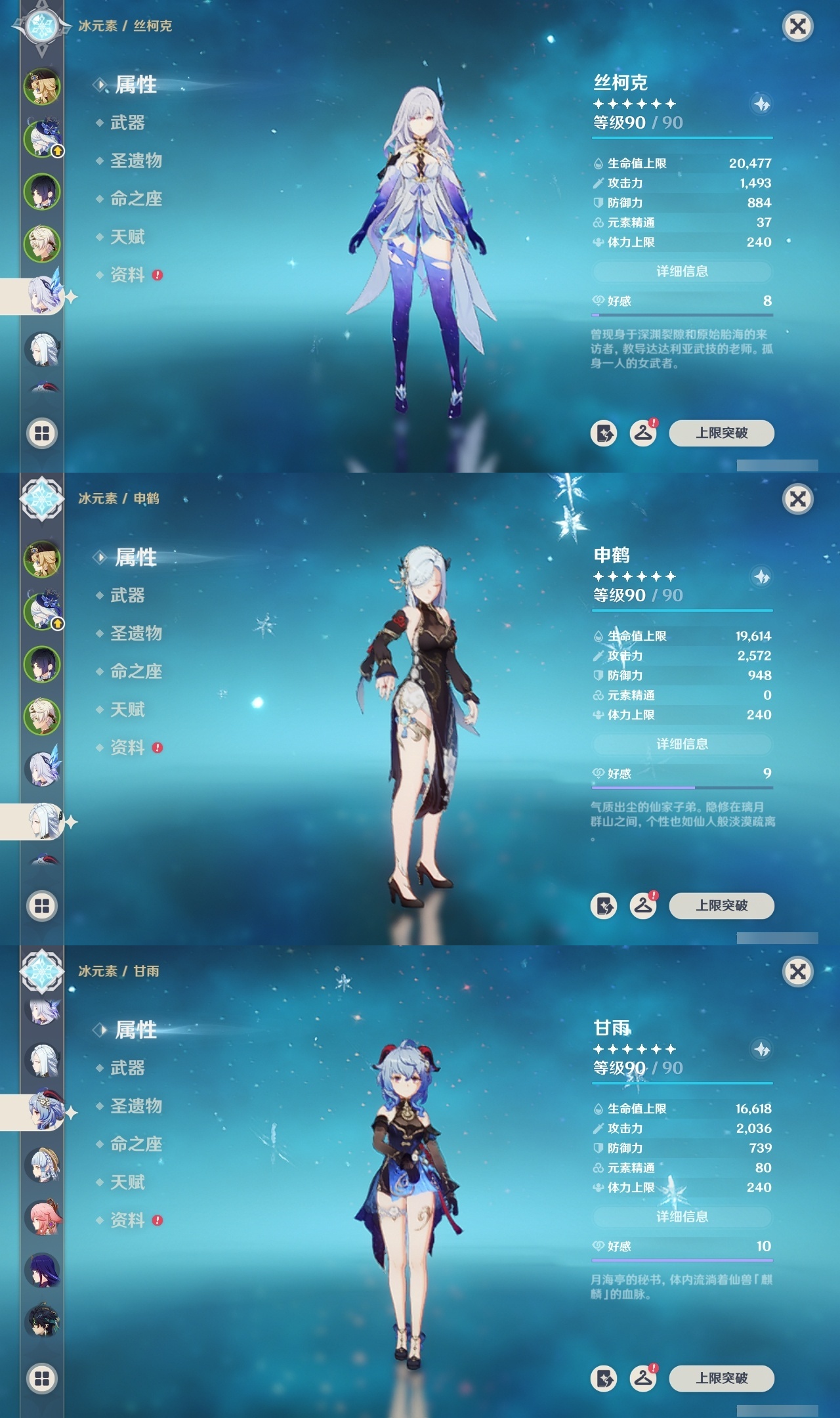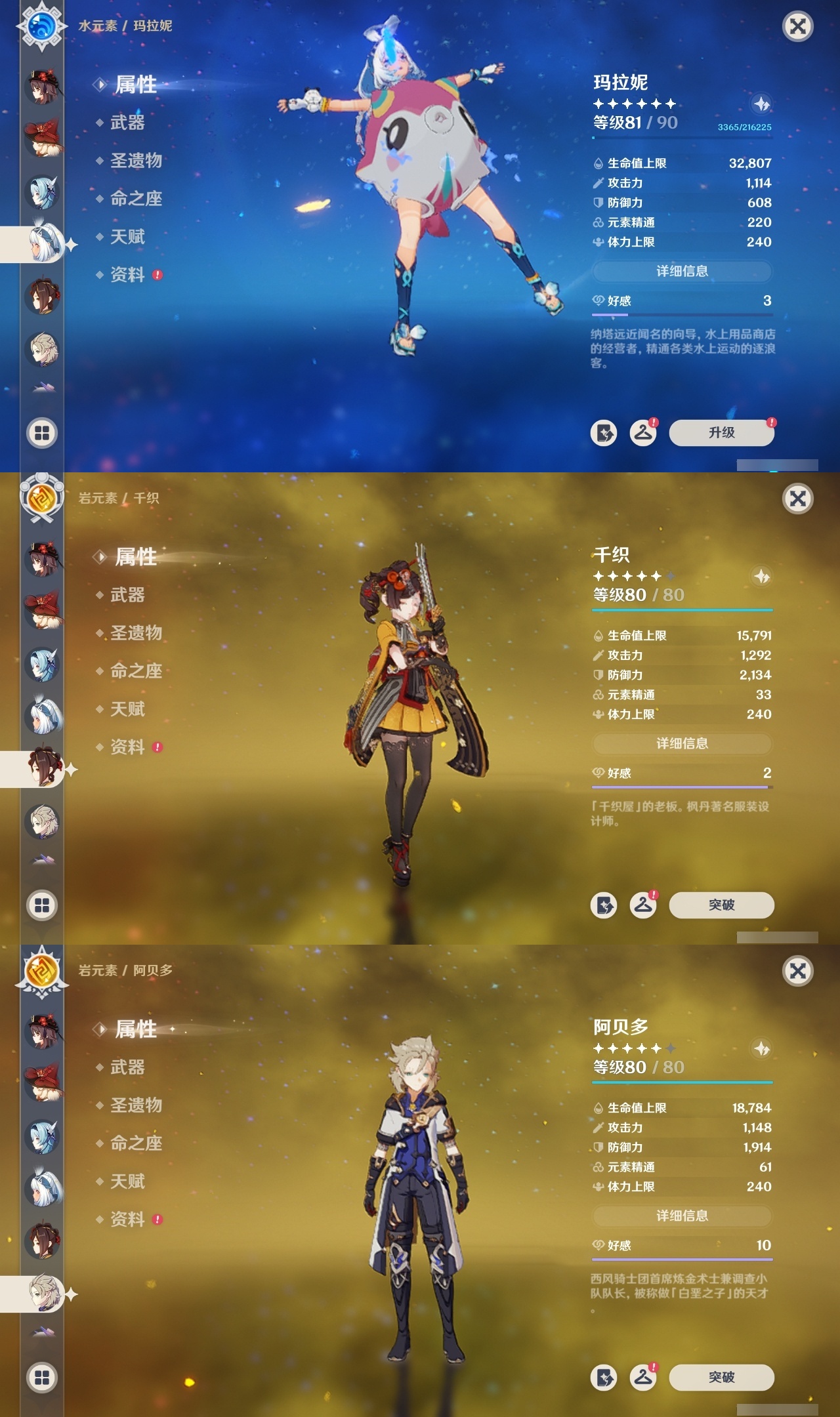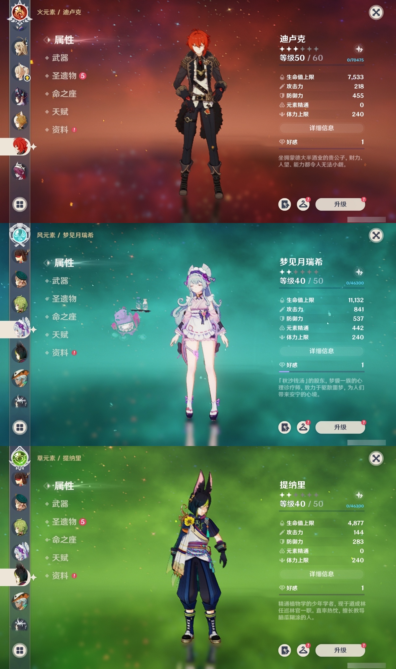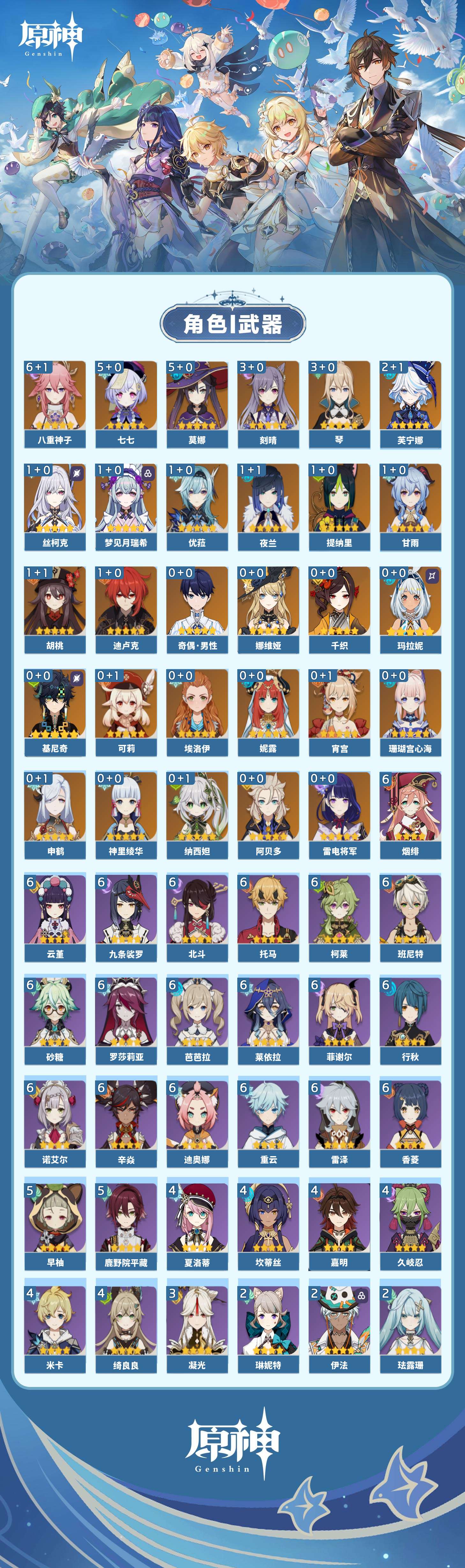 【原神】【lyys8105】冒险等级:60,五星数量:45,五星角色:八重神子 6命莫娜 5命七七 5命刻晴 3命琴 3命芙宁娜 2命梦见月瑞希 1命丝柯克 1命迪卢克 1命甘雨 1命胡桃 1命优菈 1命夜兰 1命提纳里 1命玛拉妮基尼奇珊瑚宫心海神里绫华宵宫申鹤阿贝多娜维娅千织妮露纳西妲可莉雷电将军__五星武器:碧落之珑静水流涌之辉苍古自由之誓飞雷之弦振和璞鸢护摩之杖四风原典天空之傲天空之脊天空之刃天空之翼息灾神乐之真意若水千夜浮梦__四星角色:班尼特 6命行秋 6命九条裟罗 6命香菱 6命迪奥娜 6命砂糖 6命莱依拉 6命柯莱 6命芭芭拉 6命云堇 6命托马 6命烟绯 6命重云 6命辛焱 6命诺艾尔 6命罗莎莉亚 6命雷泽 6命菲谢尔 6命北斗 6命鹿野院平藏 5命早柚 5命久岐忍 4命绮良良 4命米卡 4命坎蒂丝 4命夏洛蒂 4命嘉明 4命凝光 3命珐露珊 2命瑶瑶 2命琳妮特 2命伊法 2命多莉 1命欧洛伦 1命五郎 1命菲米尼 1命埃洛伊奇偶·女性奇偶·男性卡齐娜卡维蓝砚夏沃蕾伊安珊塔利雅
