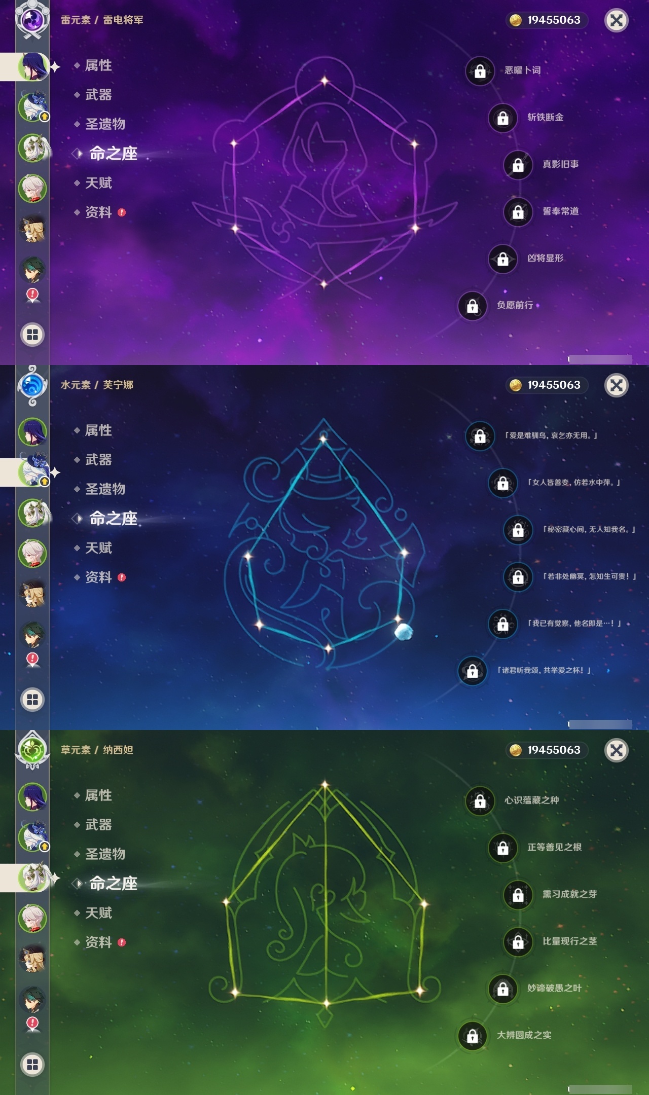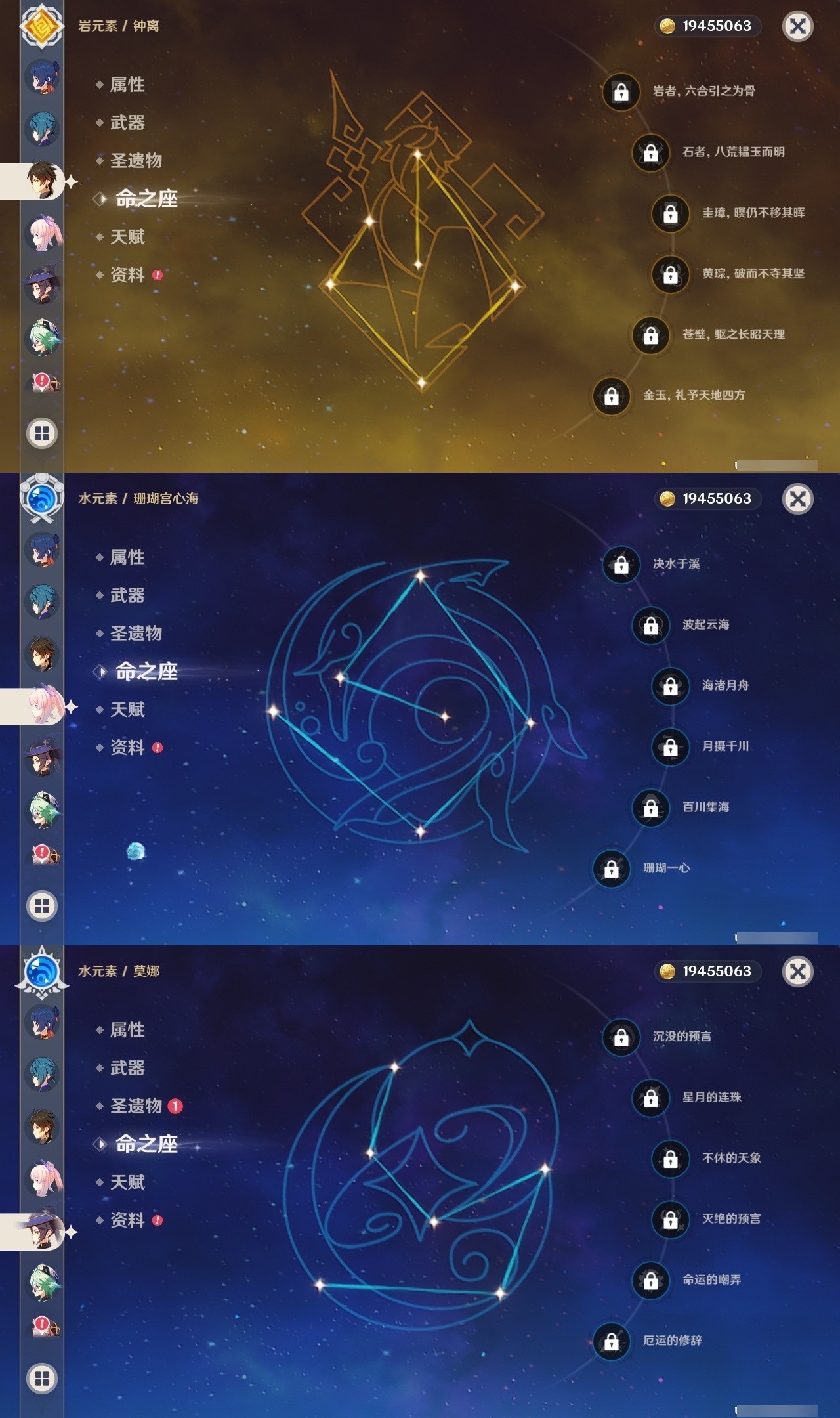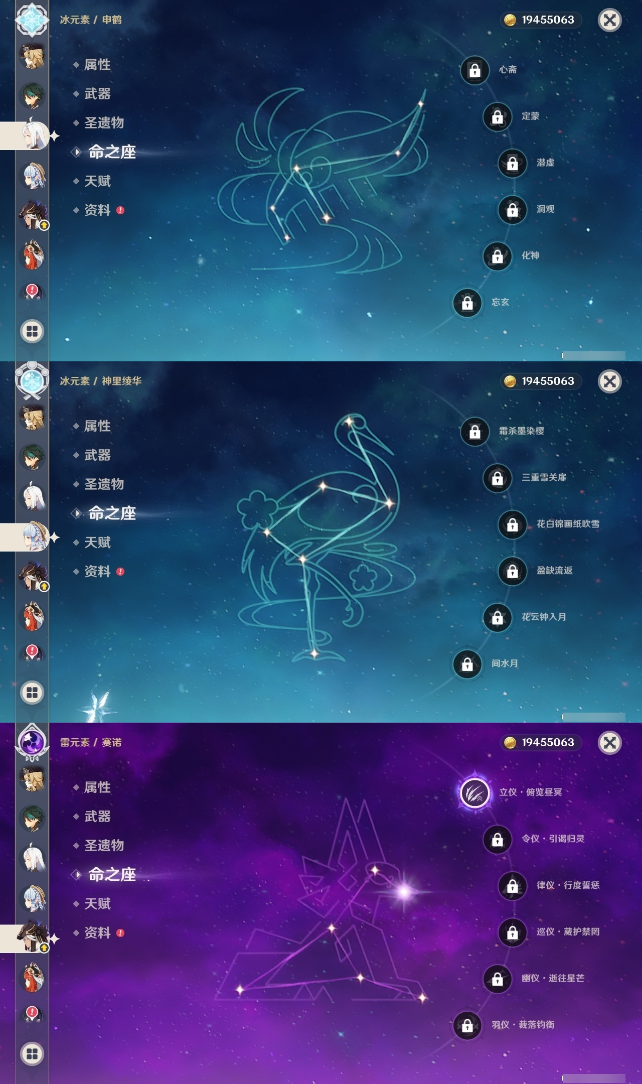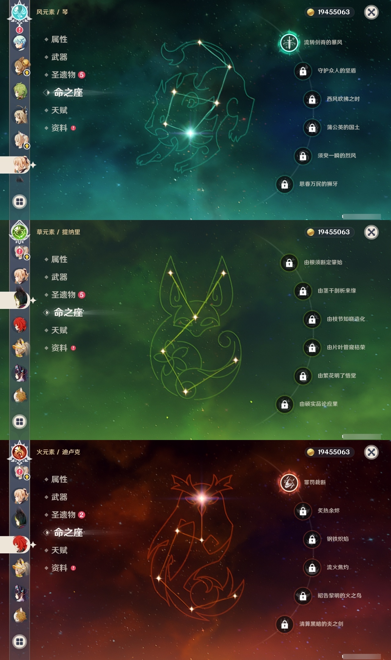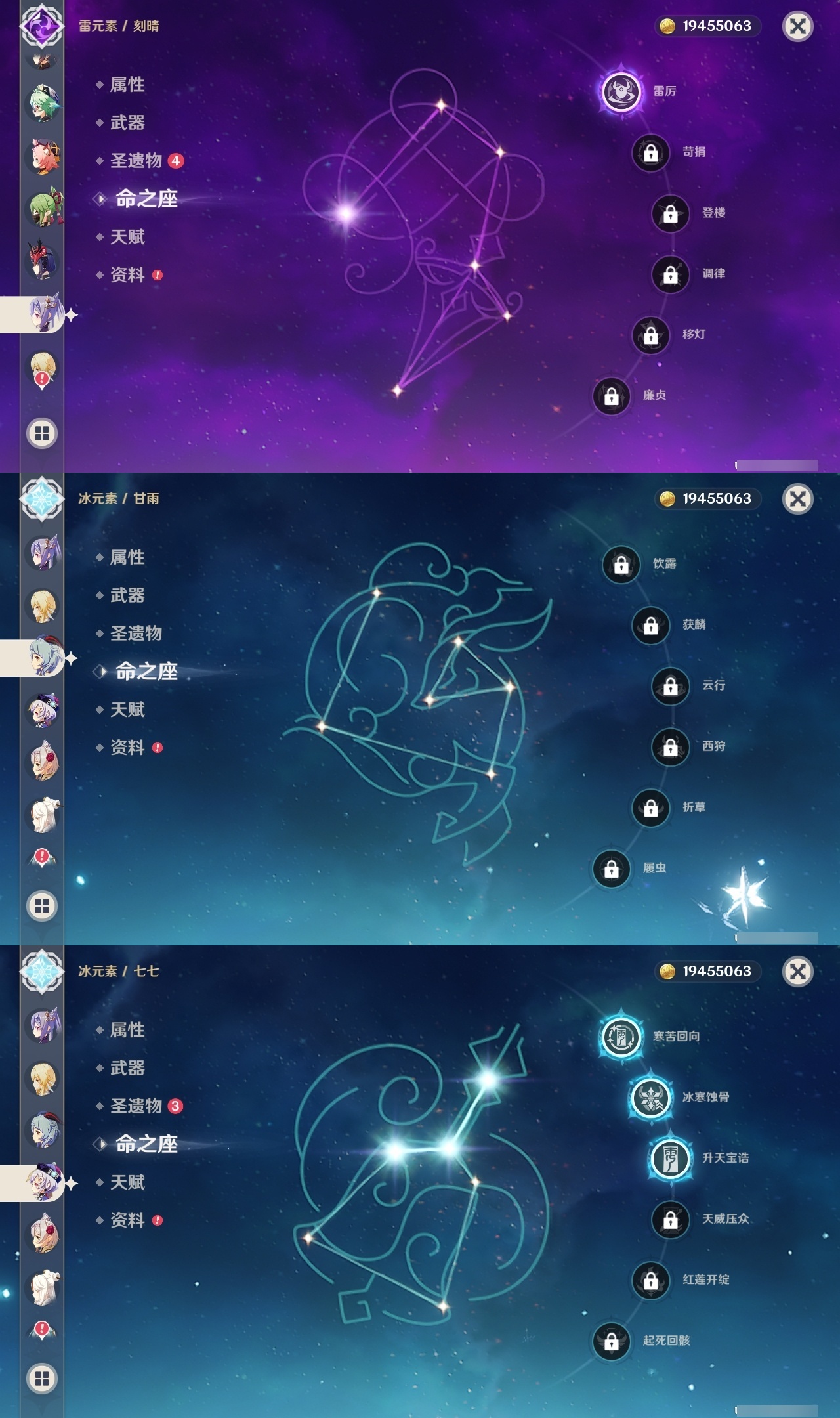 【原神】【lyys8123】冒险等级:59,五星数量:40,五星角色:七七 3命迪卢克 1命胡桃 1命刻晴 1命琴 1命夜兰 1命赛诺 1命莫娜珊瑚宫心海白术神里绫华钟离申鹤芙宁娜娜维娅提纳里千织妮露纳西妲枫原万叶甘雨魈可莉雷电将军__五星武器:碧落之珑静水流涌之辉有乐御簾切飞雷之弦振和璞鸢护摩之杖狼的末路四风原典天空之傲天空之脊天空之卷雾切之回光赤角石溃杵若水圣显之钥千夜浮梦__四星角色:班尼特 6命行秋 6命香菱 6命凝光 6命砂糖 6命柯莱 6命早柚 6命五郎 6命辛焱 6命诺艾尔 6命雷泽 6命菲谢尔 6命北斗 6命迪奥娜 5命芭芭拉 5命罗莎莉亚 5命久岐忍 4命云堇 4命烟绯 4命卡齐娜 3命九条裟罗 3命珐露珊 3命坎蒂丝 3命托马 3命夏洛蒂 3命鹿野院平藏 2命多莉 2命绮良良 1命瑶瑶 1命莱依拉 1命米卡 1命重云 1命夏沃蕾 1命嘉明 1命赛索斯 1命卡维琳妮特