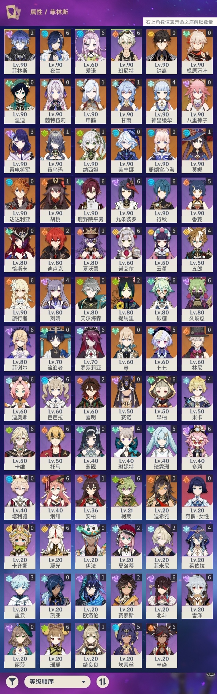 【原神】【lyys8141】冒险等级:60,五星数量:46,五星角色:夜兰 6命七七 5命刻晴 4命神里绫华 4命雷电将军 3命菲林斯 2命迪卢克 2命提纳里 2命菈乌玛 1命甘雨 1命胡桃 1命莫娜 1命申鹤 1命纳西妲 1命琴珊瑚宫心海温迪恰斯卡茜特菈莉迪希雅钟离达达利亚八重神子林尼芙宁娜赛诺艾尔海森流浪者枫原万叶__五星武器:若水 5精和璞鸢 3精护摩之杖 3精雾切之回光 3精狼的末路 2精天空之傲 2精纺夜天镜血染荒城不灭月华苍古自由之誓风鹰剑天空之卷天空之翼薙草之稻光冬极白星息灾__四星角色:班尼特 6命行秋 6命九条裟罗 6命久岐忍 6命鹿野院平藏 6命凝光 6命迪奥娜 6命砂糖 6命瑶瑶 6命多莉 6命柯莱 6命卡维 6命芭芭拉 6命云堇 6命早柚 6命托马 6命烟绯 6命辛焱 6命诺艾尔 6命罗莎莉亚 6命雷泽 6命菲谢尔 6命北斗 6命爱诺 6命香菱 5命珐露珊 5命坎蒂丝 5命莱依拉 4命米卡 4命五郎 4命琳妮特 4命重云 3命菲米尼 2命夏洛蒂 2命嘉明 2命赛索斯 2命绮良良 1命欧洛伦 1命夏沃蕾 1命奇偶·女性卡齐娜蓝砚伊法塔利雅邮箱审核 邮箱密码还没改 等明天