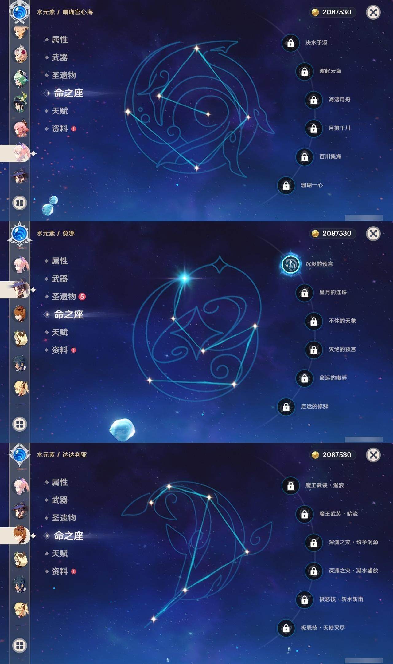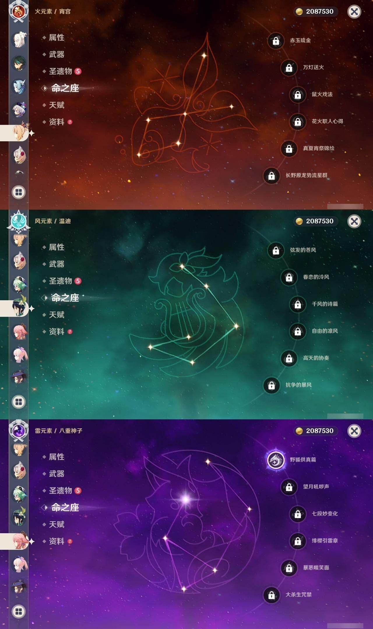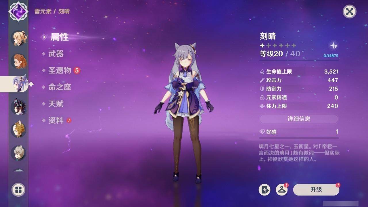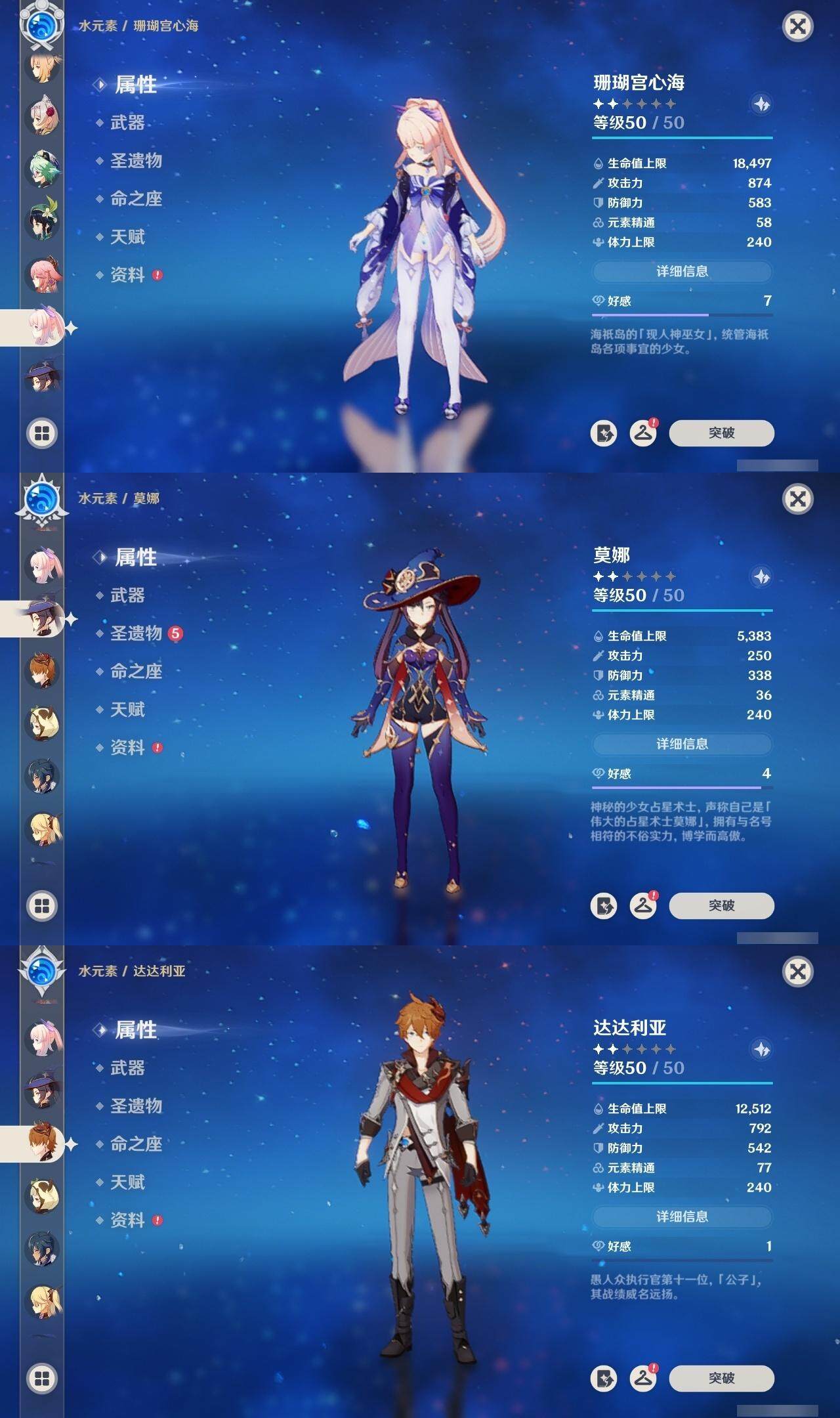 56级/27黄/女主/16个五星角色/4个五星武器 0命千织0命提纳里1命八重神子0命申鹤0命优菈0命雷电将军0命神里绫华0命魈0命宵宫0命温迪0命达达利亚0命珊瑚宫心海1命刻晴3命七七1命琴1命莫娜精1薙草之稻光精1天空之翼精1天空之卷精1天空之傲