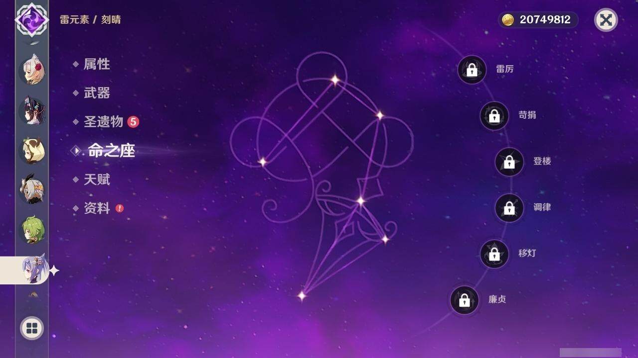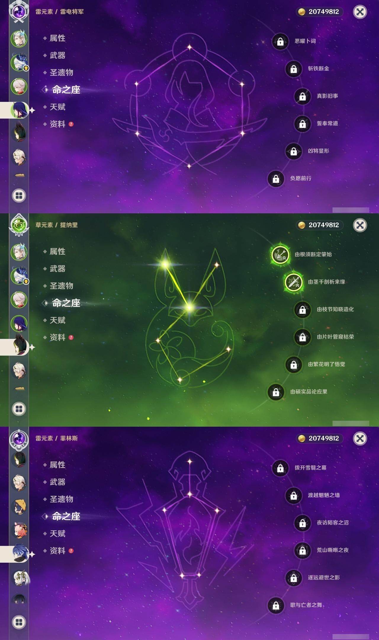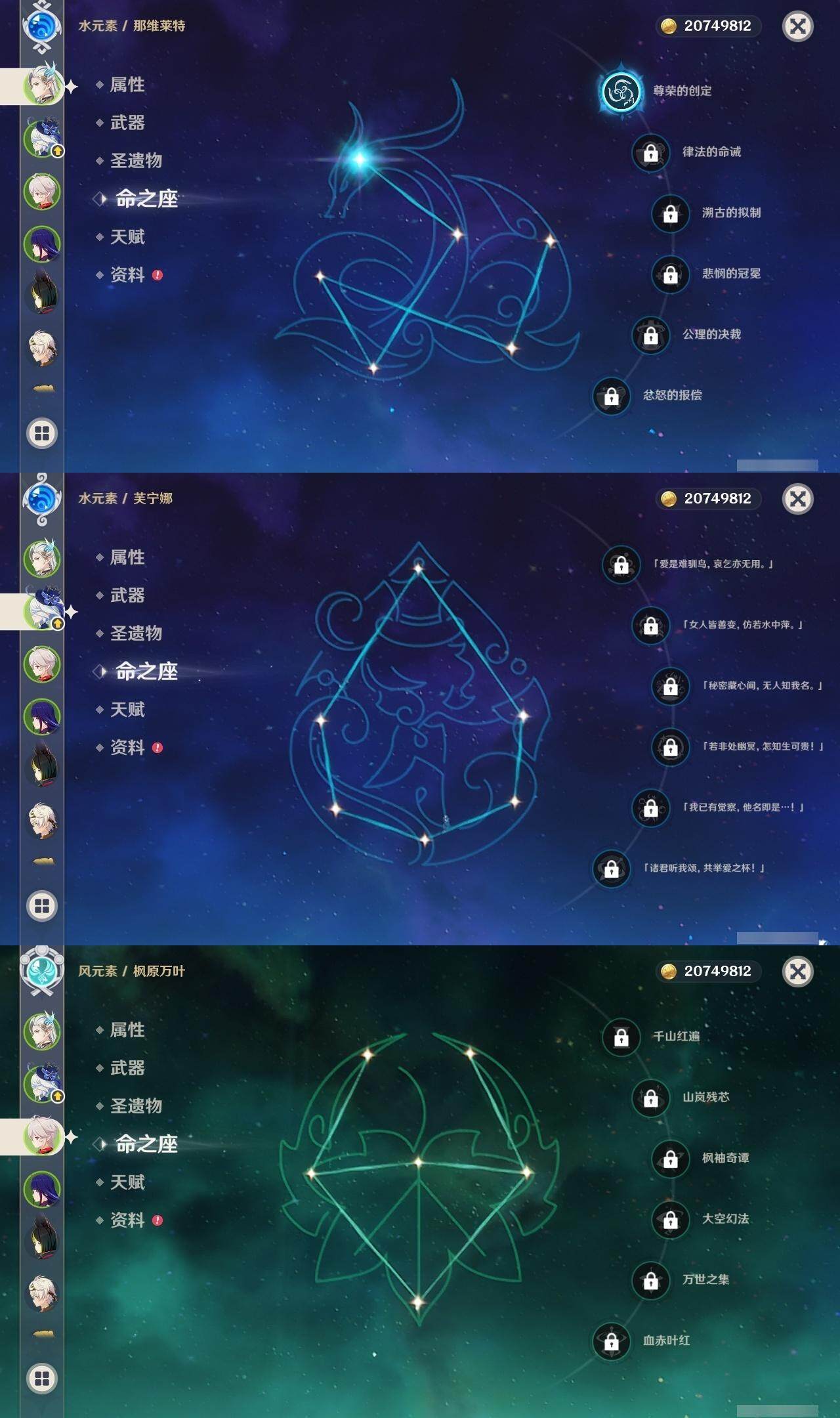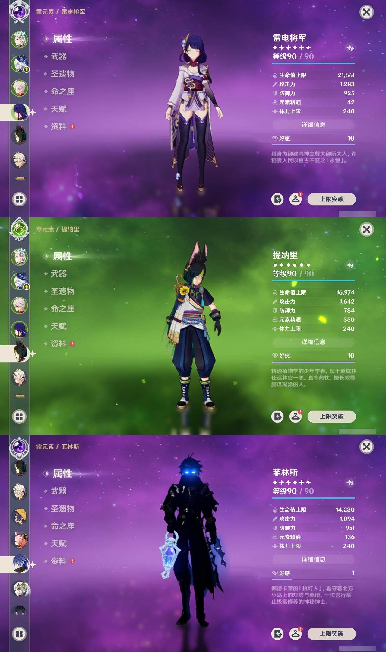 59级/31黄/男主/16个五星角色/3个五星武器 0命芙宁娜1命那维莱特0命纳西妲0命赛诺2命提纳里0命夜兰0命神里绫人0命雷电将军0命枫原万叶0命刻晴3命七七2命琴0命莫娜3命迪卢克0命玛薇卡0命菲林斯精1最初的大魔术精1阿莫斯之弓精2风鹰剑
