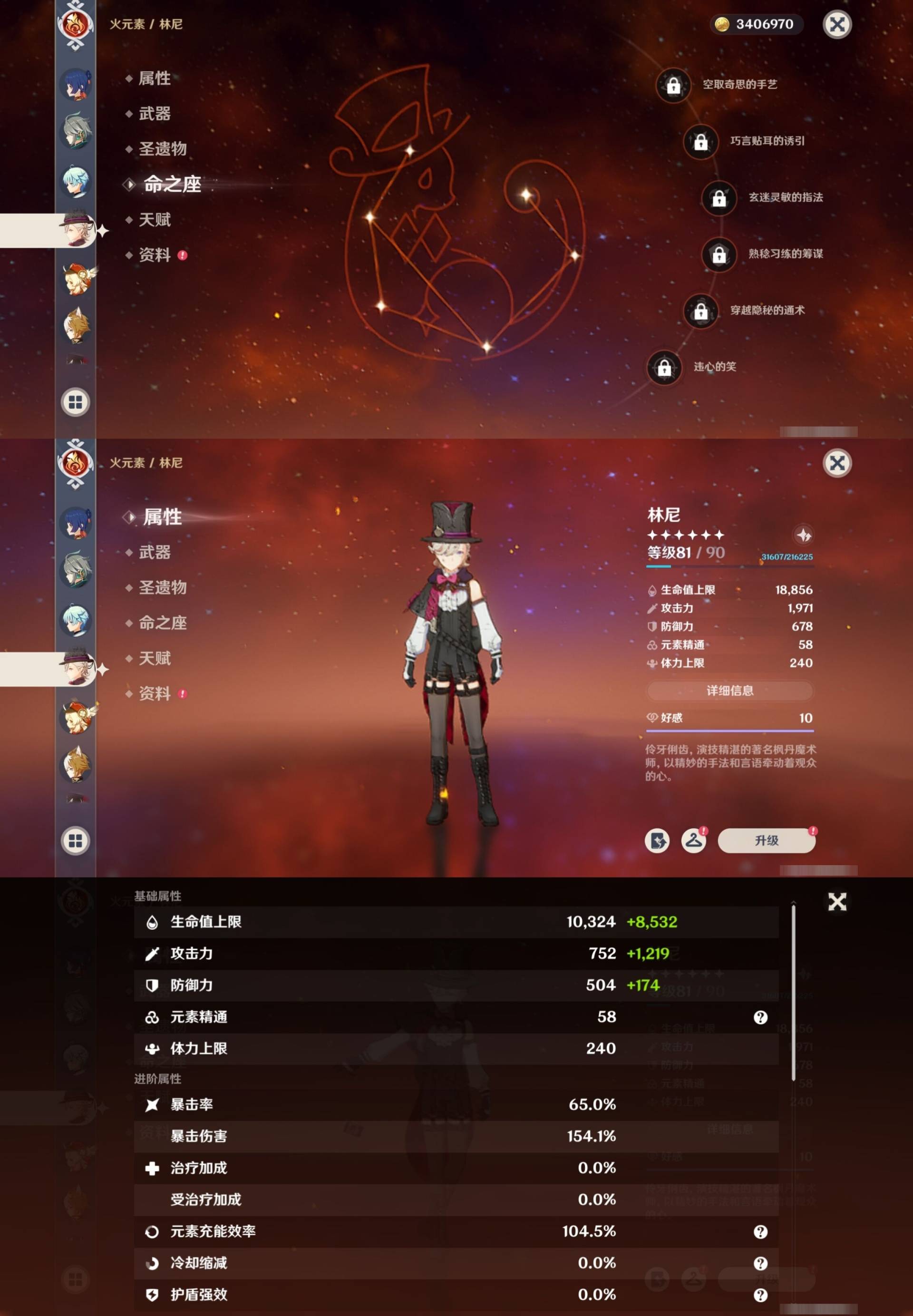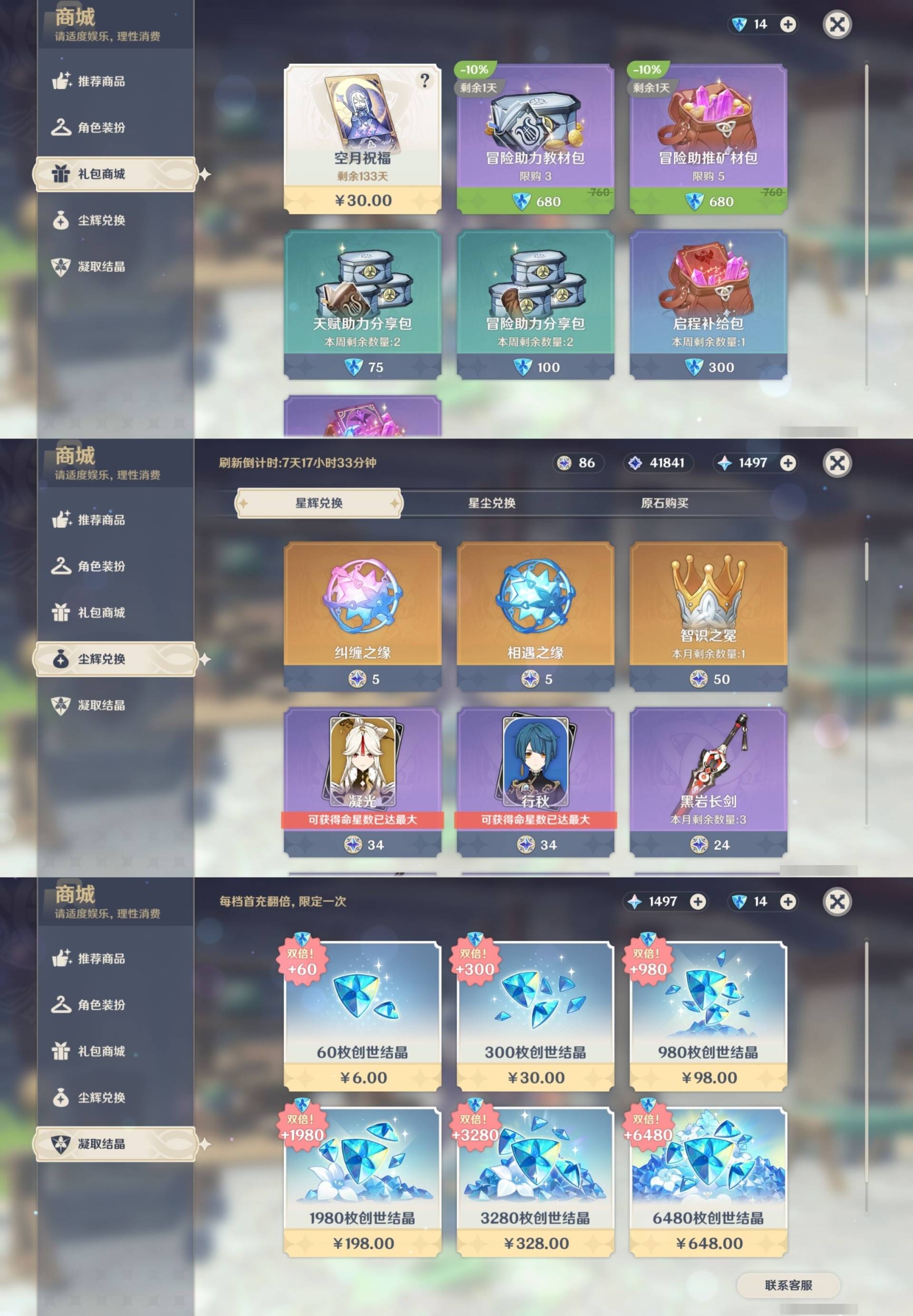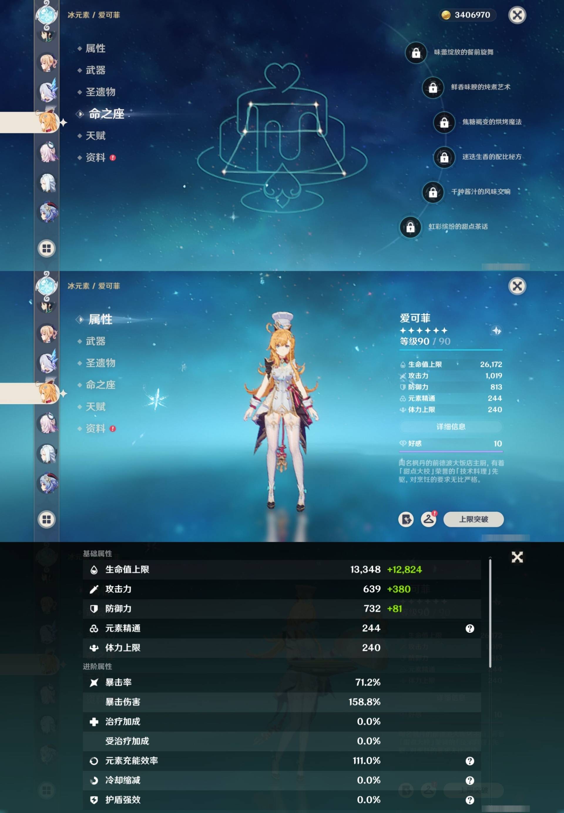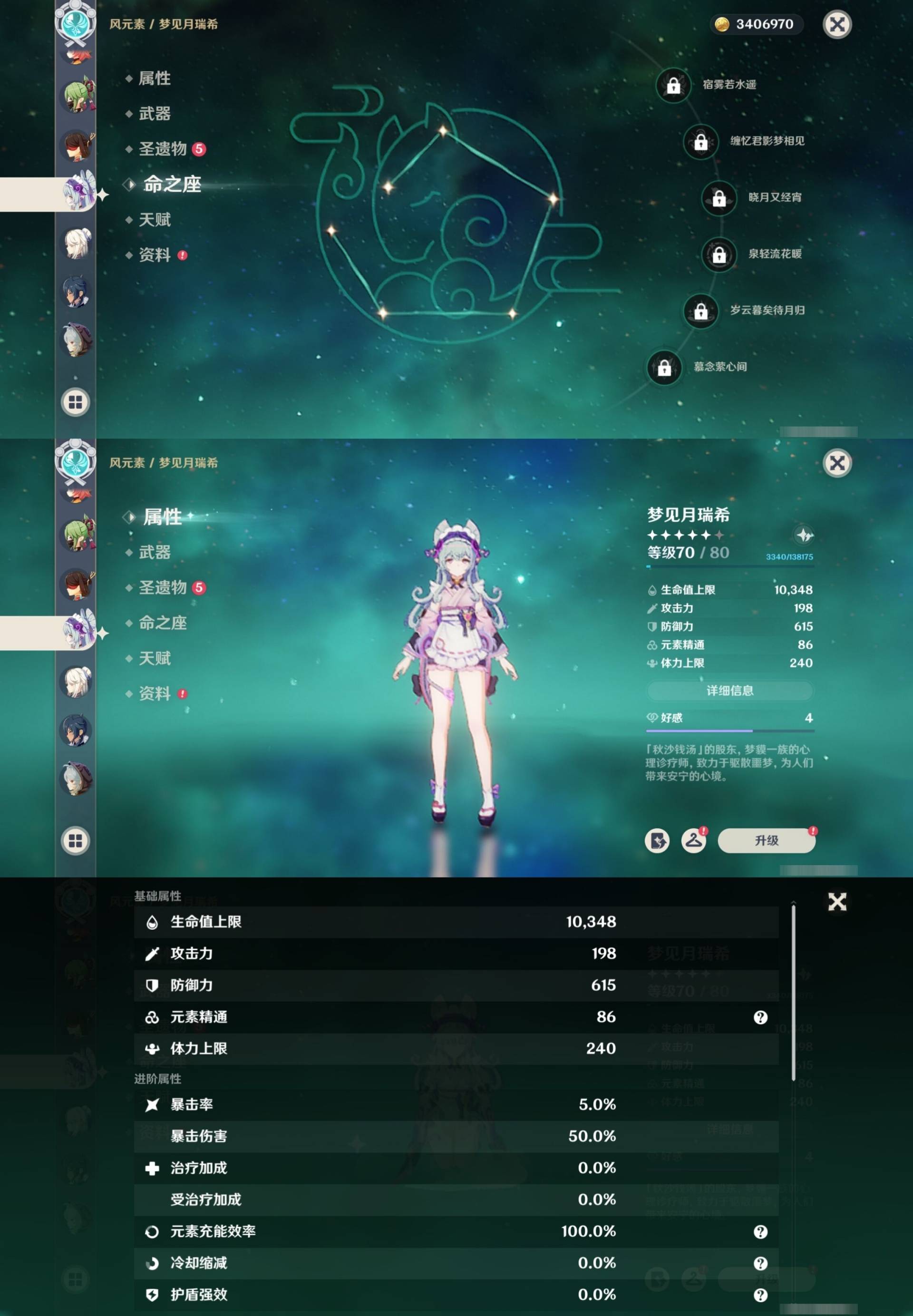 [13974794]310黄 风:2命闲云,6命流浪者,6命枫原万叶,0命魈,0命温迪,6命琴,0命梦见月瑞希 火:6命玛薇卡,6命阿蕾奇诺,0命宵宫,1命胡桃,6命迪卢克,0命林尼,0命可莉,6命迪希雅 水:6命妮露,6命芙宁娜,6命那维莱特,6命玛拉妮,6命希格雯,6命夜兰,6命莫娜 冰:0命丝柯克,0命爱可菲,6命茜特菈莉,0命申鹤,2命甘雨,6命七七,0命埃洛伊 岩:0命希诺宁,6命娜维娅,0命荒泷一斗,0命阿贝多,0命钟离 雷:6命克洛琳德,0命伊涅芙,1命八重神子,6命雷电将军,6命刻晴 草:0命菈乌玛,2命基尼奇,6命艾梅莉埃,6命白术,2命纳西妲,6命提纳里,0命艾尔海森 弓:精5白雨心弦,精2最初的大魔术,精1飞雷之弦振,精5若水,精1若水,精1天空之翼,精1天空之翼,精1天空之翼 法器:精2祭星者之望,精5冲浪时光,精1冲浪时光,精1鹤鸣余音,精1万世流涌大典,精5图莱杜拉的回忆,精1神乐之真意,精4碧落之珑,精3四风原典,精1天空之卷 单手剑:精5赦罪,精1有乐御簾切,精5静水流涌之辉,精1静水流涌之辉,精4裁叶萃光,精5圣显之钥,精1圣显之钥,精5苍古自由之誓,精3天空之刃,精3风鹰剑 双手剑:精5焚曜千阳,精1山王长牙,精5裁断,精3狼的末路,精1天空之傲,精1天空之傲 长柄武器:精1香韵奏者,精5柔灯挽歌,精3柔灯挽歌,精5赤月之形,精5薙草之稻光,精1贯虹之槊,精1天空之脊,精2护摩之杖,精1护摩之杖,精1和璞鸢,精1和璞鸢 【角色皮肤】 五星角色:迪卢克-殷红终夜,夜兰-静暇雅宴,胡桃-宿雪桃红,妮露-莎邦之息,申鹤-冷花幽露,甘雨-玄玉瑶芳,琴-海风之梦 四星角色:班尼特-炽绘奇旅,绮良良-倩影游侠,行秋-雨化竹身,丽莎-叶隐芳名,凝光-纱中幽兰,芭芭拉-闪耀协奏