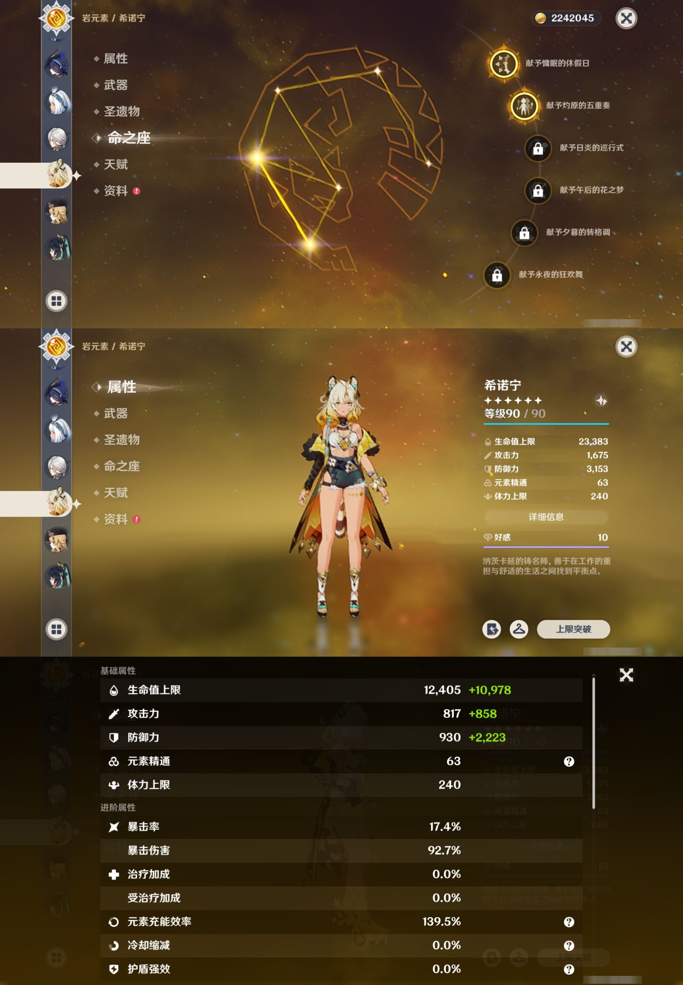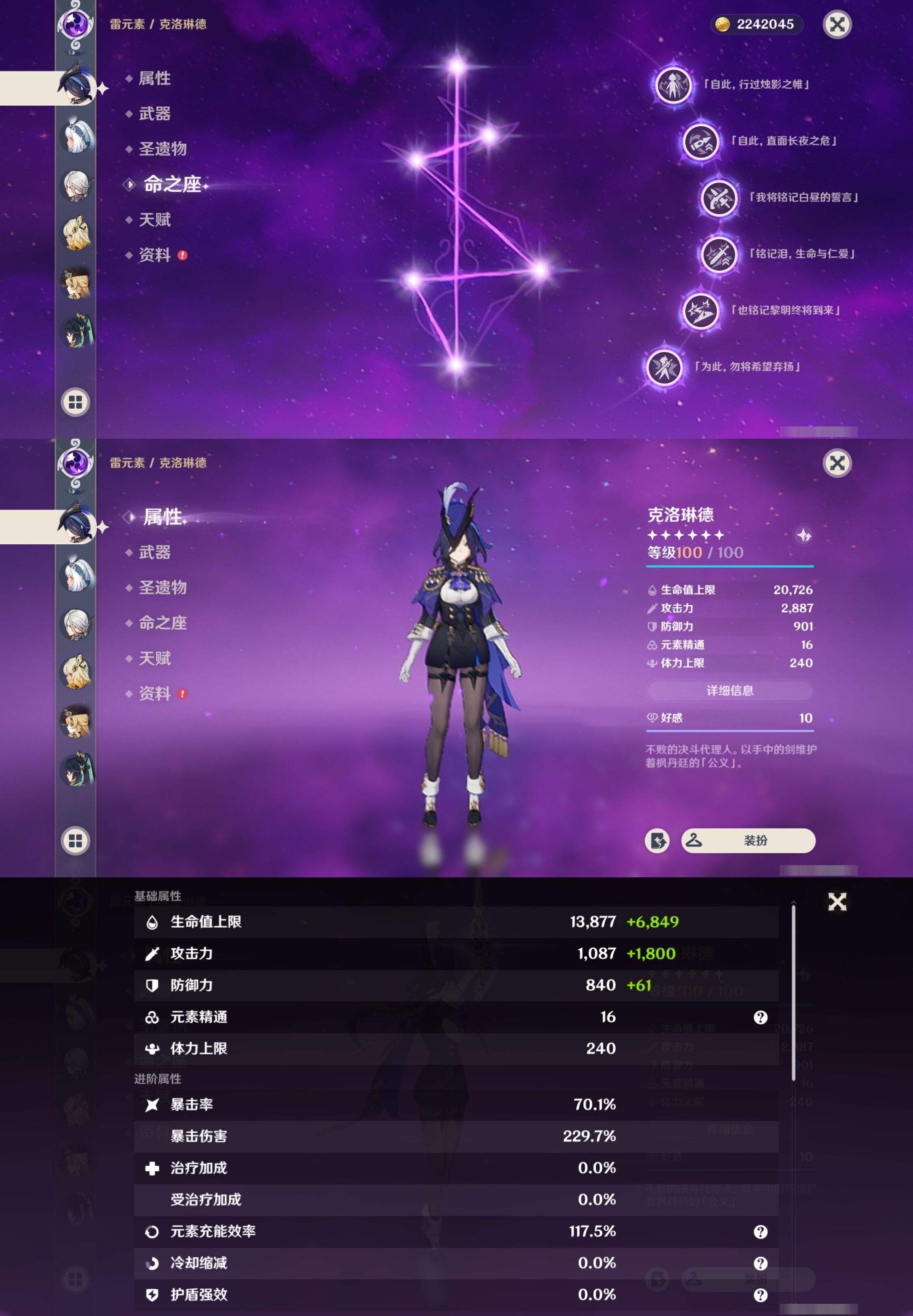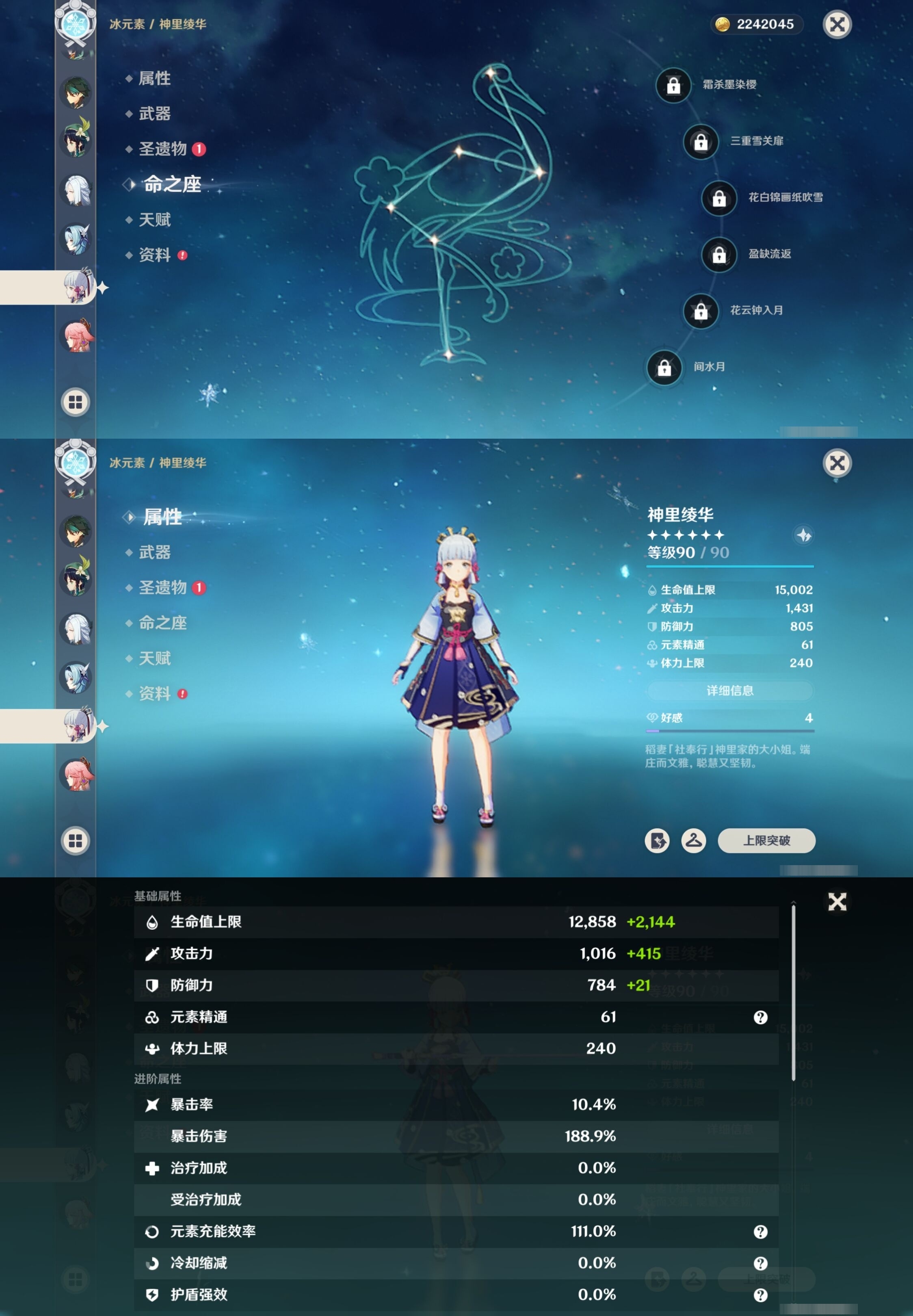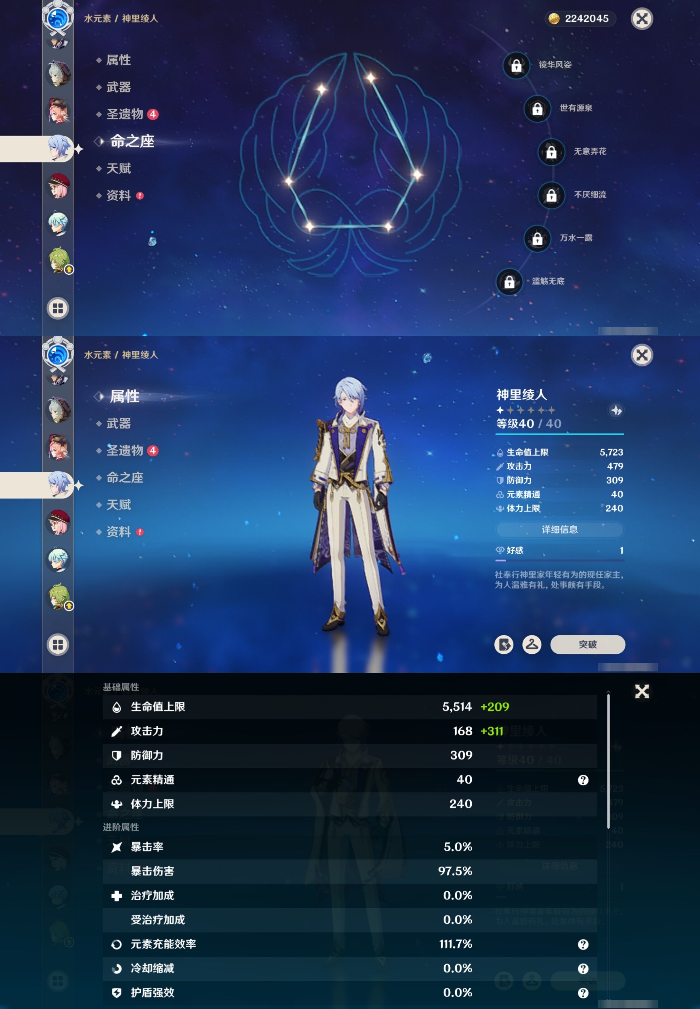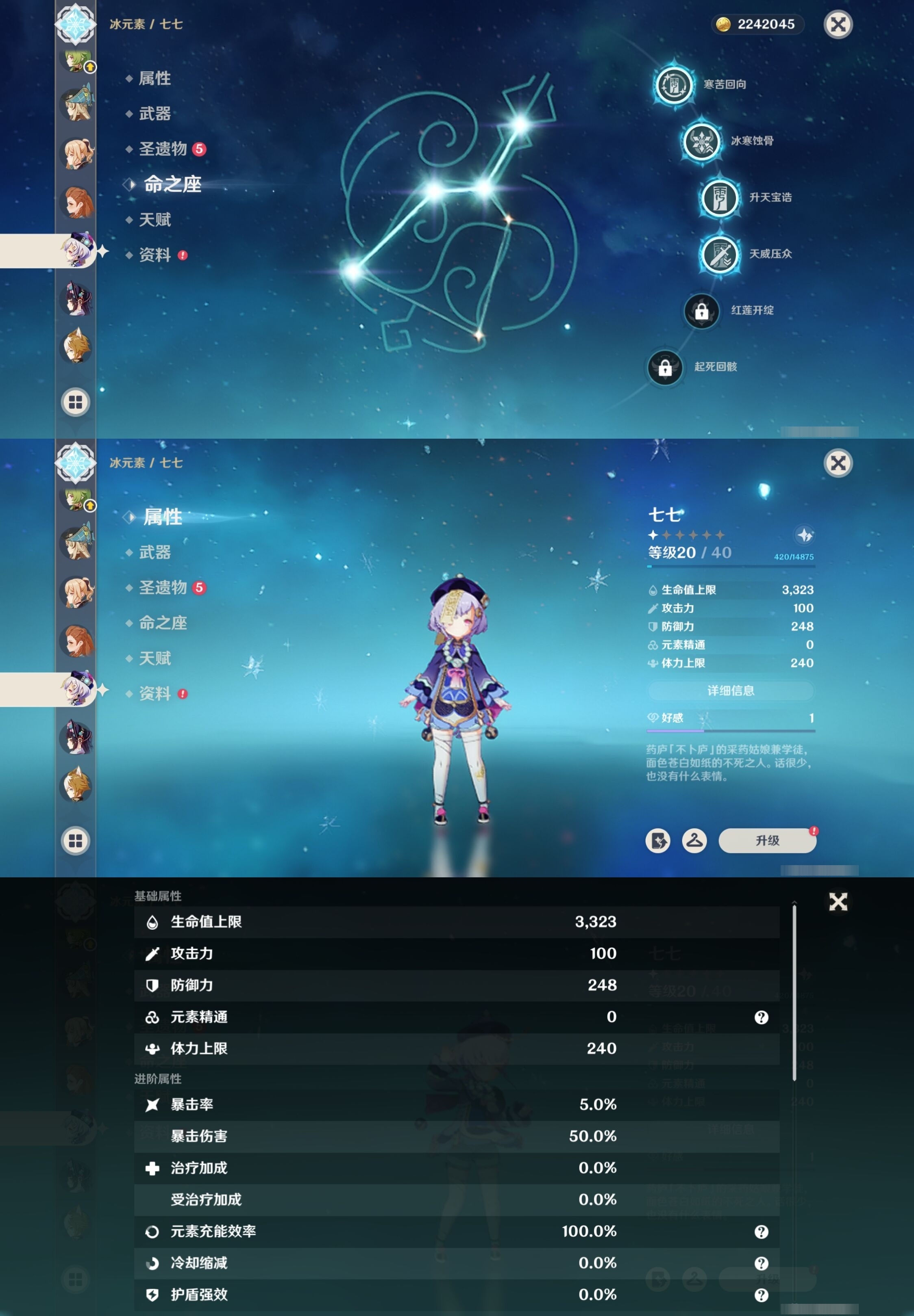 [13975261]223黄 风:2命枫原万叶,0命恰斯卡,2命闲云,0命魈,0命温迪,6命琴 火:6命阿蕾奇诺,1命胡桃,0命可莉,5命迪希雅,6命迪卢克 水:6命那维莱特,0命夜兰,6命芙宁娜,6命玛拉妮,2命妮露,1命珊瑚宫心海,6命莫娜,0命达达利亚,0命神里绫人 冰:6命甘雨,3命申鹤,3命优菈,0命神里绫华,0命埃洛伊,4命七七 岩:2命希诺宁,6命娜维娅,0命钟离 雷:6命克洛琳德,0命八重神子,0命雷电将军,6命刻晴 草:0命基尼奇,2命白术,2命纳西妲,4命提纳里 弓:精1星鹫赤羽,精2最初的大魔术,精1猎人之径,精1终末嗟叹之诗,精2阿莫斯之弓,精2天空之翼,精1飞雷之弦振 法器:精5冲浪时光,精1冲浪时光,精1鹤鸣余音,精5万世流涌大典,精2千夜浮梦,精1神乐之真意,精3不灭月华,精1碧落之珑,精1四风原典,精1天空之卷,精1天空之卷,精1天空之卷 单手剑:精2岩峰巡歌,精5赦罪,精1赦罪,精1静水流涌之辉,精2圣显之钥,精3雾切之回光,精5苍古自由之誓,精1天空之刃,精5裁叶萃光,精1裁叶萃光,精1裁叶萃光,精1风鹰剑,精1风鹰剑,精1风鹰剑,精1有乐御簾切 双手剑:精2裁断,精1松籁响起之时,精1无工之剑,精1天空之傲,精1天空之傲,精1天空之傲,精1狼的末路 长柄武器:精5赤月之形,精5薙草之稻光,精1和璞鸢,精1和璞鸢,精3护摩之杖 【角色皮肤】 五星角色:夜兰-静暇雅宴,胡桃-宿雪桃红,妮露-莎邦之息,申鹤-冷花幽露,甘雨-玄玉瑶芳,可莉-琪花星烛,刻晴-霓裾翩跹 四星角色:香菱-岁夜欢哗,绮良良-倩影游侠,行秋-雨化竹身,丽莎-叶隐芳名,菲谢尔-极夜真梦,凝光-纱中幽兰,芭芭拉-闪耀协奏