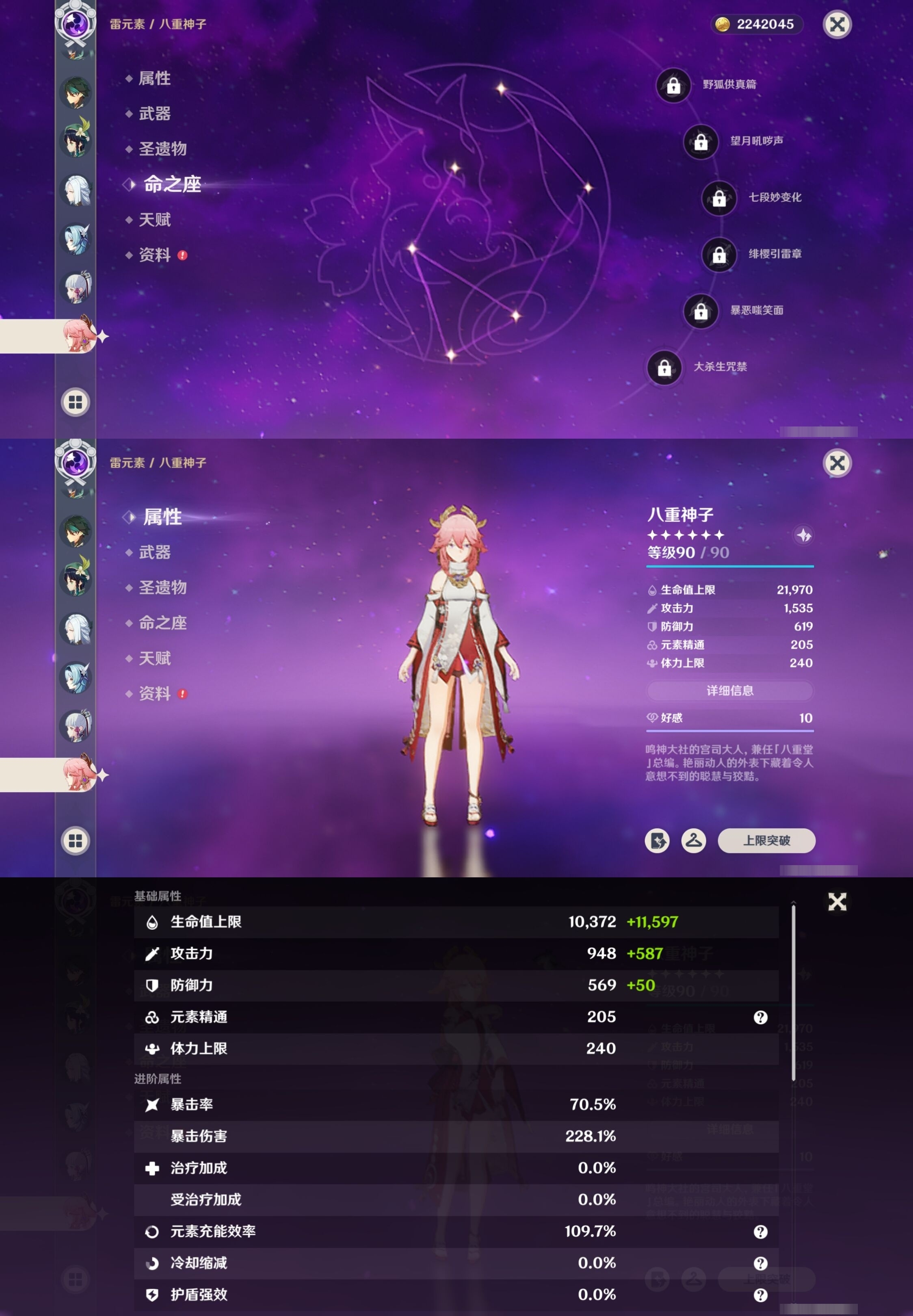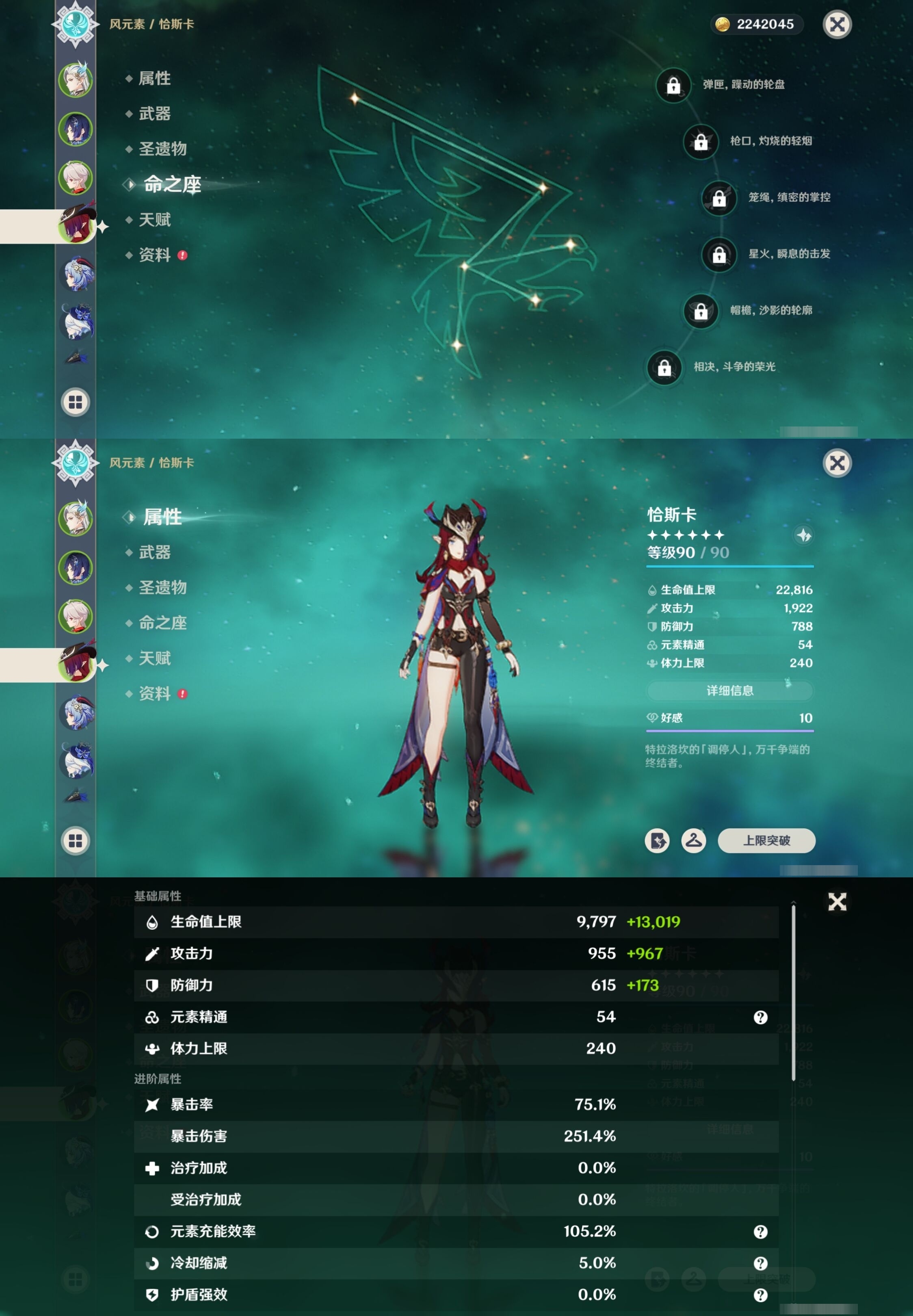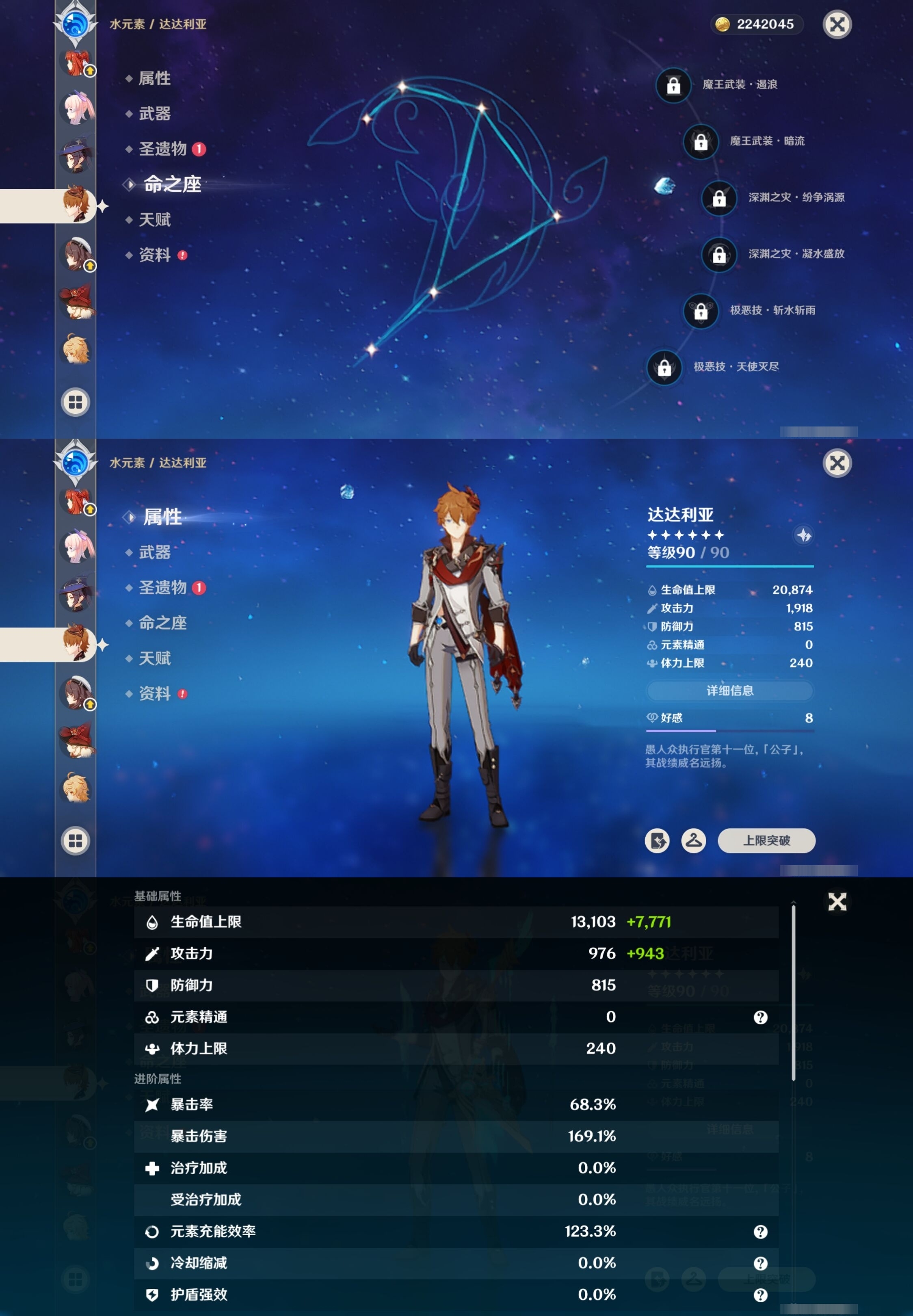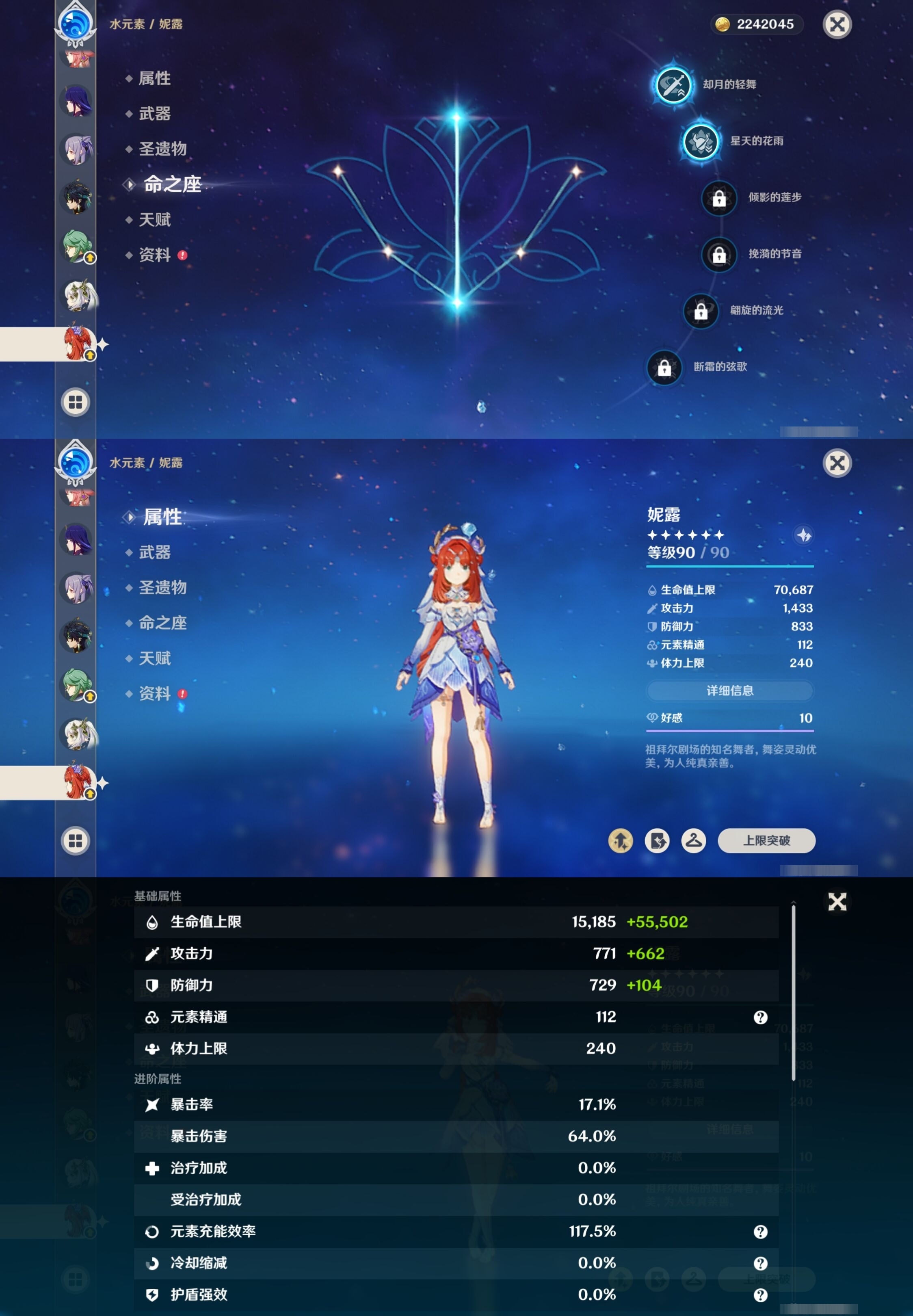 [13975261]223黄 风:2命枫原万叶,0命恰斯卡,2命闲云,0命魈,0命温迪,6命琴 火:6命阿蕾奇诺,1命胡桃,0命可莉,5命迪希雅,6命迪卢克 水:6命那维莱特,0命夜兰,6命芙宁娜,6命玛拉妮,2命妮露,1命珊瑚宫心海,6命莫娜,0命达达利亚,0命神里绫人 冰:6命甘雨,3命申鹤,3命优菈,0命神里绫华,0命埃洛伊,4命七七 岩:2命希诺宁,6命娜维娅,0命钟离 雷:6命克洛琳德,0命八重神子,0命雷电将军,6命刻晴 草:0命基尼奇,2命白术,2命纳西妲,4命提纳里 弓:精1星鹫赤羽,精2最初的大魔术,精1猎人之径,精1终末嗟叹之诗,精2阿莫斯之弓,精2天空之翼,精1飞雷之弦振 法器:精5冲浪时光,精1冲浪时光,精1鹤鸣余音,精5万世流涌大典,精2千夜浮梦,精1神乐之真意,精3不灭月华,精1碧落之珑,精1四风原典,精1天空之卷,精1天空之卷,精1天空之卷 单手剑:精2岩峰巡歌,精5赦罪,精1赦罪,精1静水流涌之辉,精2圣显之钥,精3雾切之回光,精5苍古自由之誓,精1天空之刃,精5裁叶萃光,精1裁叶萃光,精1裁叶萃光,精1风鹰剑,精1风鹰剑,精1风鹰剑,精1有乐御簾切 双手剑:精2裁断,精1松籁响起之时,精1无工之剑,精1天空之傲,精1天空之傲,精1天空之傲,精1狼的末路 长柄武器:精5赤月之形,精5薙草之稻光,精1和璞鸢,精1和璞鸢,精3护摩之杖 【角色皮肤】 五星角色:夜兰-静暇雅宴,胡桃-宿雪桃红,妮露-莎邦之息,申鹤-冷花幽露,甘雨-玄玉瑶芳,可莉-琪花星烛,刻晴-霓裾翩跹 四星角色:香菱-岁夜欢哗,绮良良-倩影游侠,行秋-雨化竹身,丽莎-叶隐芳名,菲谢尔-极夜真梦,凝光-纱中幽兰,芭芭拉-闪耀协奏