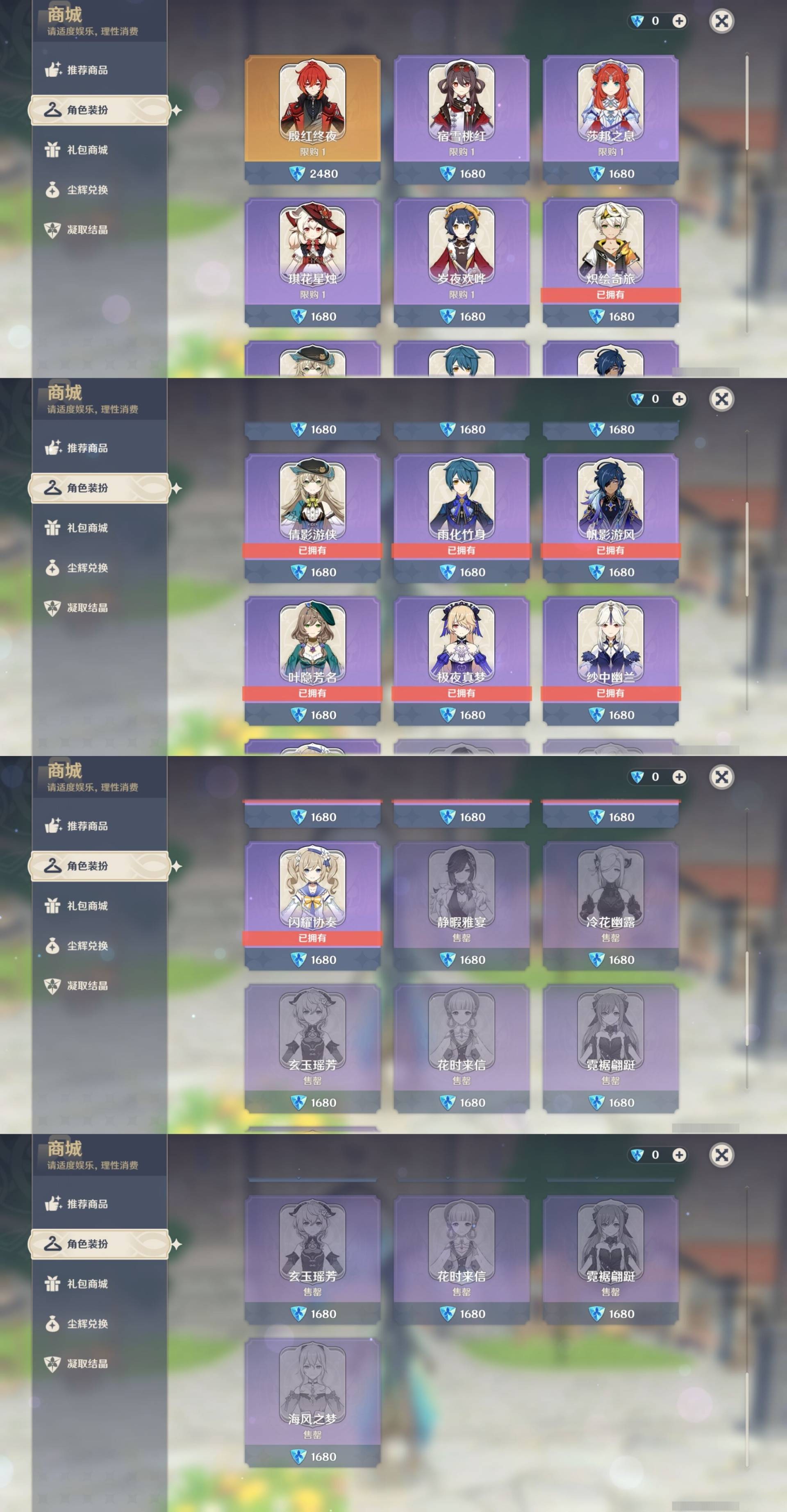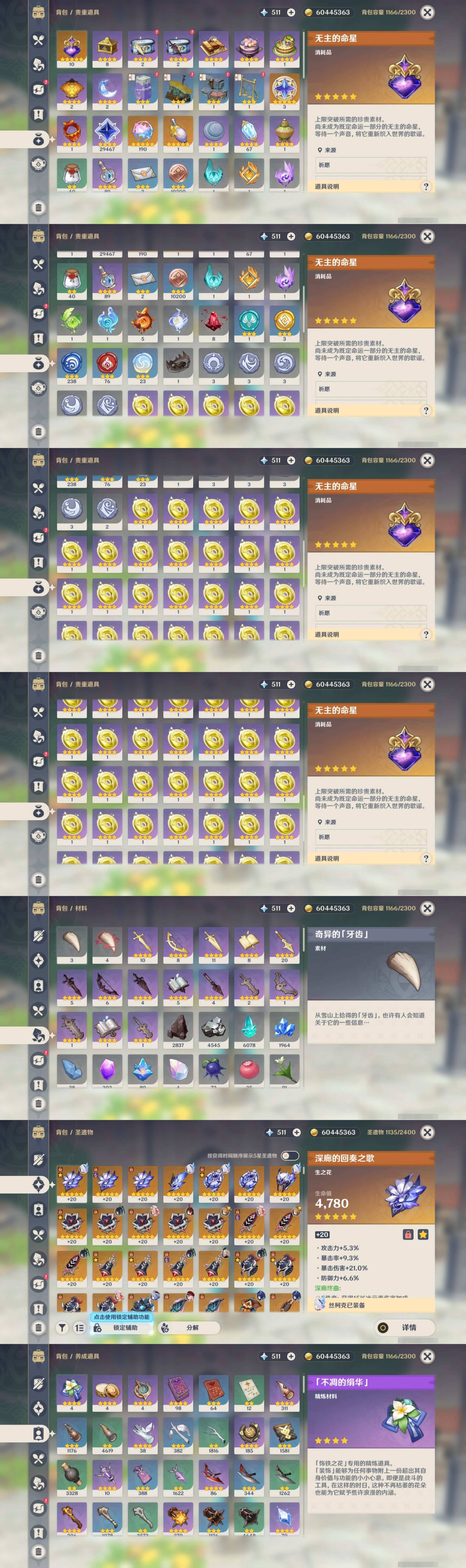 [13976838]181黄 风:6命闲云,0命枫原万叶,6命魈,0命温迪,6命琴,0命流浪者 火:6命迪希雅,6命迪卢克 水:3命芙宁娜,6命夜兰,0命玛拉妮,1命那维莱特,6命神里绫人,1命珊瑚宫心海,6命莫娜 冰:6命神里绫华,6命申鹤,0命丝柯克,6命优菈,0命甘雨,0命埃洛伊,6命七七 岩:0命荒泷一斗,0命阿贝多,2命钟离 雷:6命刻晴,0命瓦雷莎,6命八重神子,6命雷电将军 草:0命艾梅莉埃,2命纳西妲,6命提纳里 弓:精1猎人之径,精1若水,精1冬极白星,精1终末嗟叹之诗,精1阿莫斯之弓,精1天空之翼,精1天空之翼 法器:精5鹤鸣余音,精1鹤鸣余音,精1万世流涌大典,精2千夜浮梦,精1神乐之真意,精1尘世之锁,精1四风原典 单手剑:精1圣显之钥,精1波乱月白经津,精1雾切之回光,精1雾切之回光,精1磐岩结绿,精1磐岩结绿,精2斫峰之刃,精1风鹰剑,精1风鹰剑,精1风鹰剑,精1风鹰剑,精1天空之刃 双手剑:精1苇海信标,精2松籁响起之时,精1天空之傲,精1天空之傲 长柄武器:精1薙草之稻光,精1息灾,精1和璞鸢,精1和璞鸢,精2天空之脊,精1护摩之杖 【角色皮肤】 五星角色:夜兰-静暇雅宴,申鹤-冷花幽露,甘雨-玄玉瑶芳,神里绫华-花时来信,刻晴-霓裾翩跹,琴-海风之梦 四星角色:班尼特-炽绘奇旅,绮良良-倩影游侠,行秋-雨化竹身,凯亚-帆影游风,丽莎-叶隐芳名,菲谢尔-极夜真梦,凝光-纱中幽兰,芭芭拉-闪耀协奏