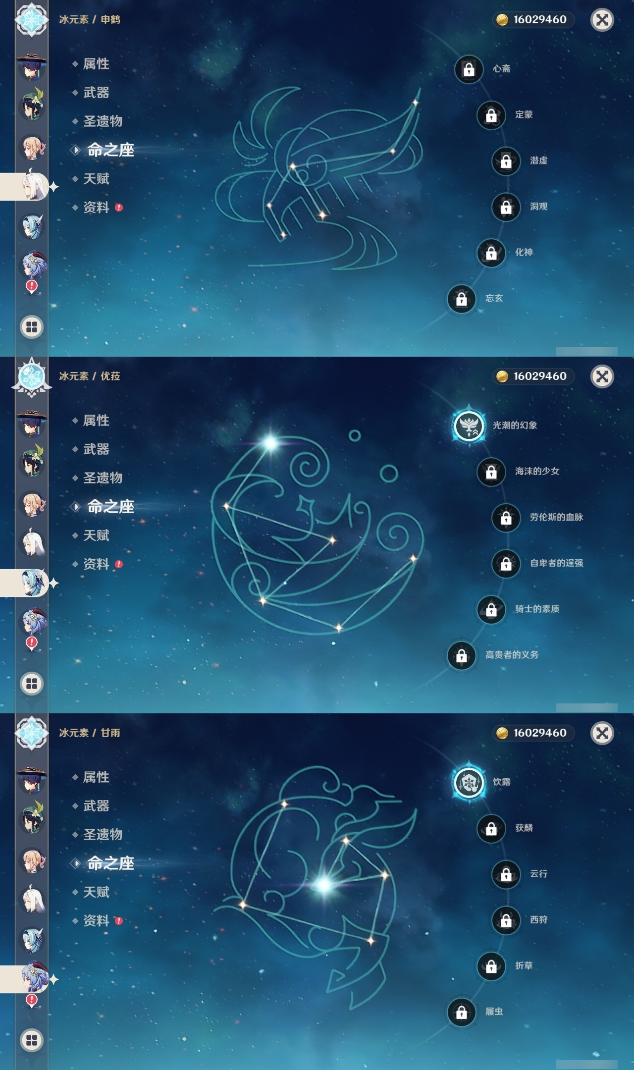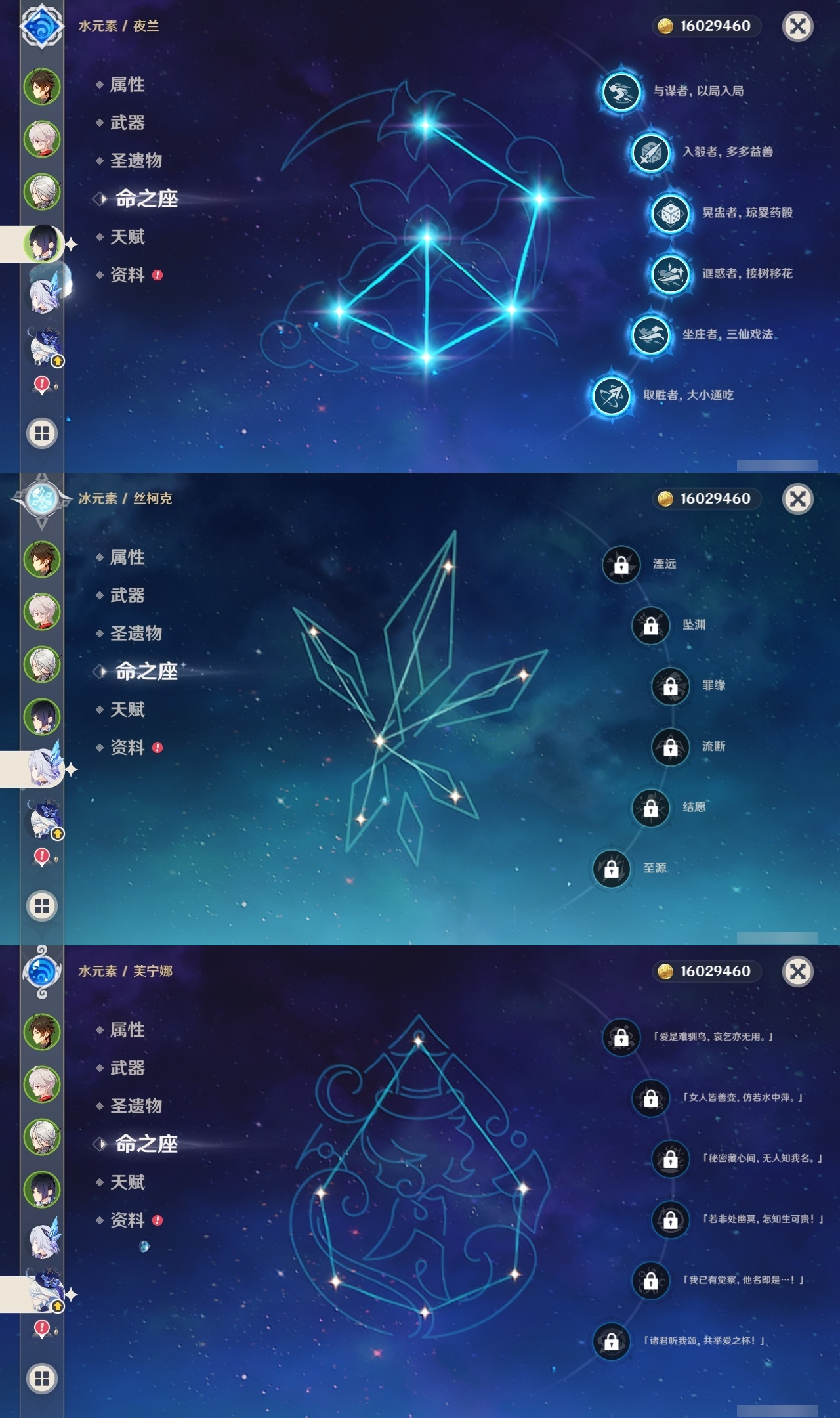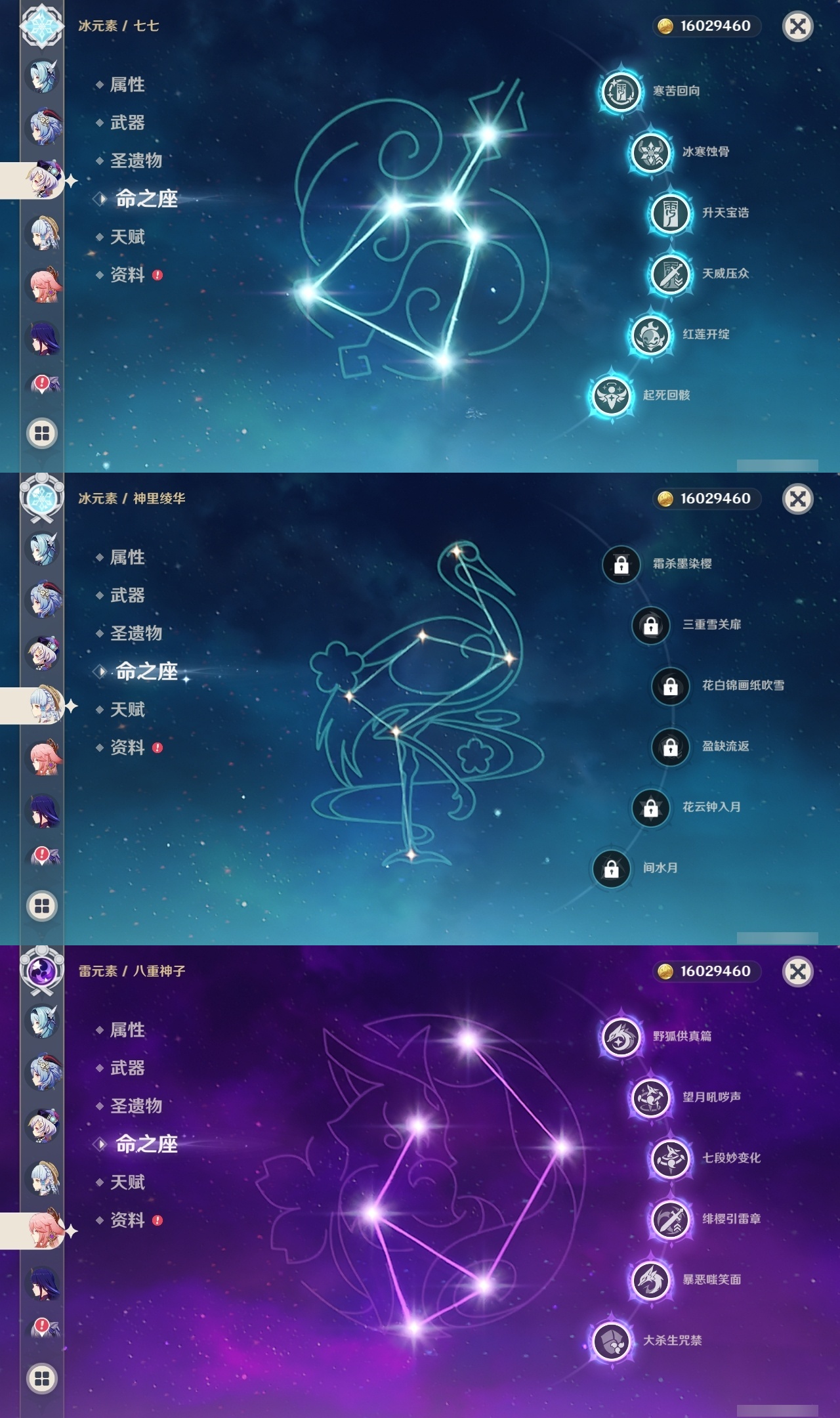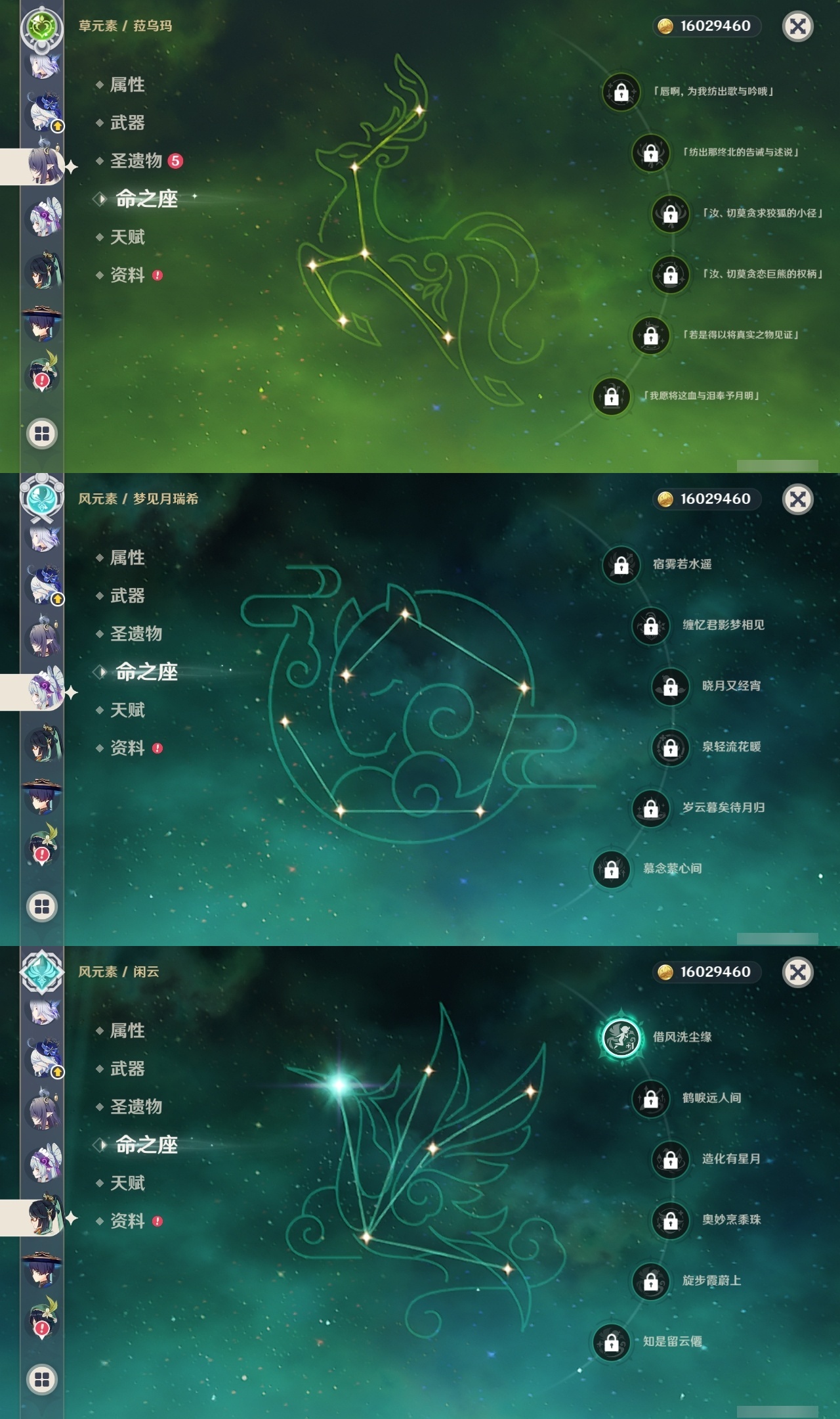 【原神】满命,冒险等级:60,五星数量:66,五星角色:刻晴 6命七七 6命琴 6命宵宫 6命八重神子 6命夜兰 6命提纳里 6命纳西妲 6命莫娜 5命迪卢克 4命阿蕾奇诺 3命雷电将军 3命枫原万叶 2命钟离 2命妮露 2命迪希雅 1命闲云 1命甘雨 1命胡桃 1命珊瑚宫心海 1命优菈 1命玛拉妮白术神里绫华温迪恰斯卡荒泷一斗达达利亚梦见月瑞希申鹤神里绫人莱欧斯利芙宁娜丝柯克菈乌玛流浪者克洛琳德可莉__五星武器:飞雷之弦振 5精天空之傲 3精薙草之稻光 3精斫峰之刃 3精不灭月华 2精苍古自由之誓 2精若水 2精鹤鸣余音赤月之形苍耀阿莫斯之弓狼的末路磐岩结绿四风原典天空之脊天空之卷天空之刃天空之翼终末嗟叹之诗赤角石溃杵神乐之真意波乱月白经津赤沙之杖圣显之钥千夜浮梦赦罪__四星角色:班尼特 6命行秋 6命九条裟罗 6命香菱 6命久岐忍 6命鹿野院平藏 6命珐露珊 6命凝光 6命迪奥娜 6命砂糖 6命瑶瑶 6命莱依拉 6命米卡 6命坎蒂丝 6命多莉 6命柯莱 6命芭芭拉 6命云堇 6命早柚 6命托马 6命五郎 6命烟绯 6命重云 6命辛焱 6命诺艾尔 6命罗莎莉亚 6命雷泽 6命菲谢尔 6命北斗 6命琳妮特 6命卡维 5命菲米尼 5命绮良良 3命蓝砚 3命夏洛蒂 3命赛索斯 3命卡齐娜 2命嘉明 2命欧洛伦 1命夏沃蕾 1命奇偶·女性奇偶·男性伊安珊爱诺