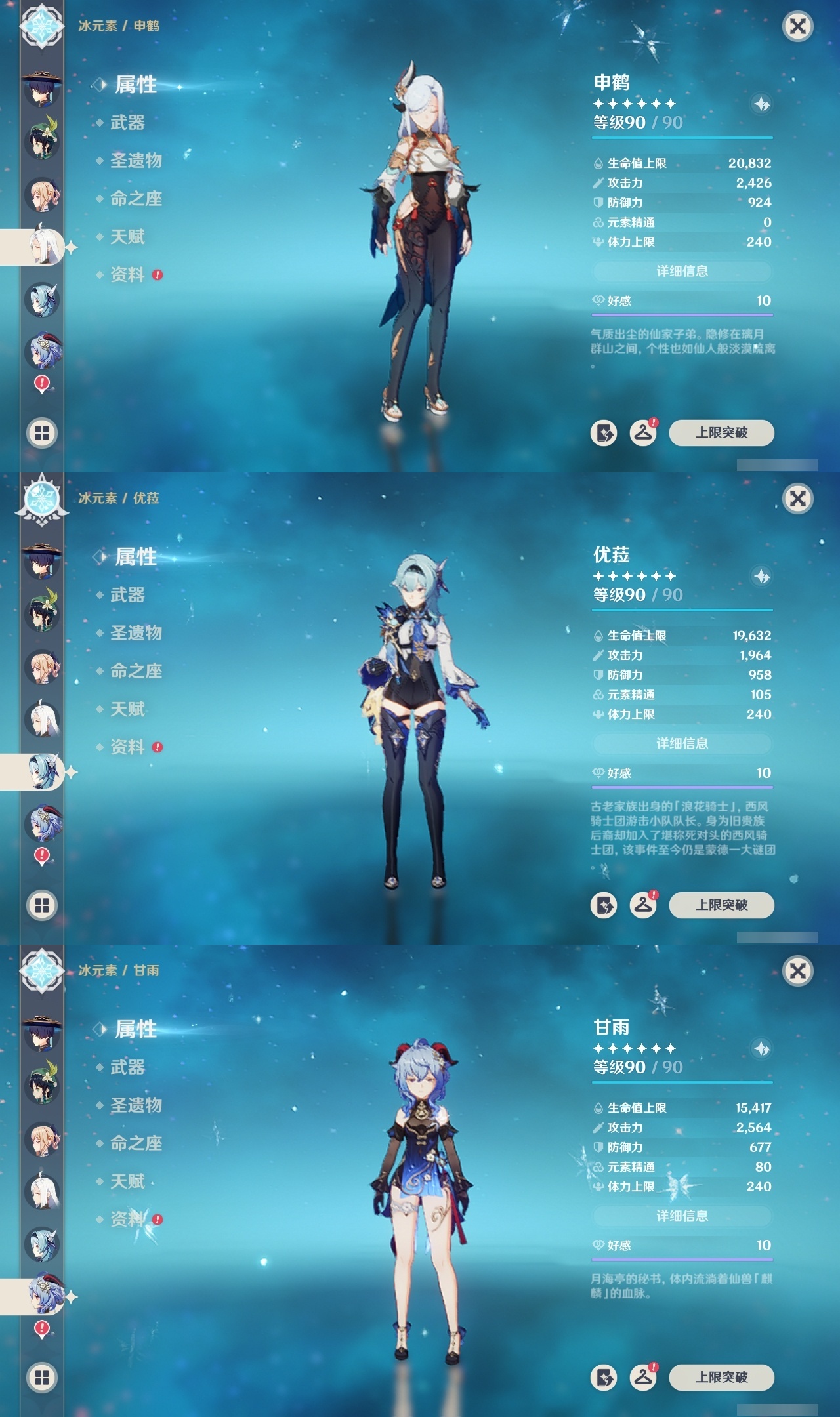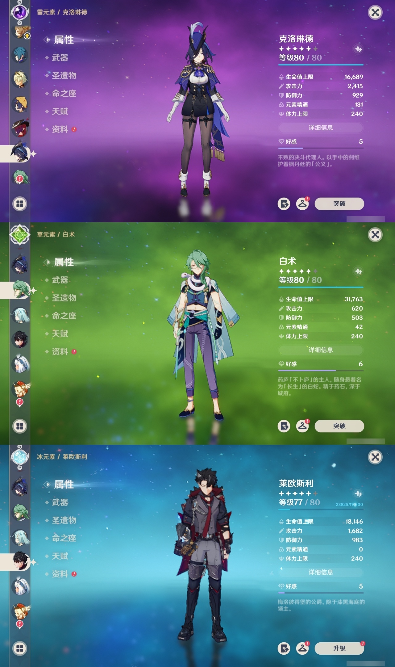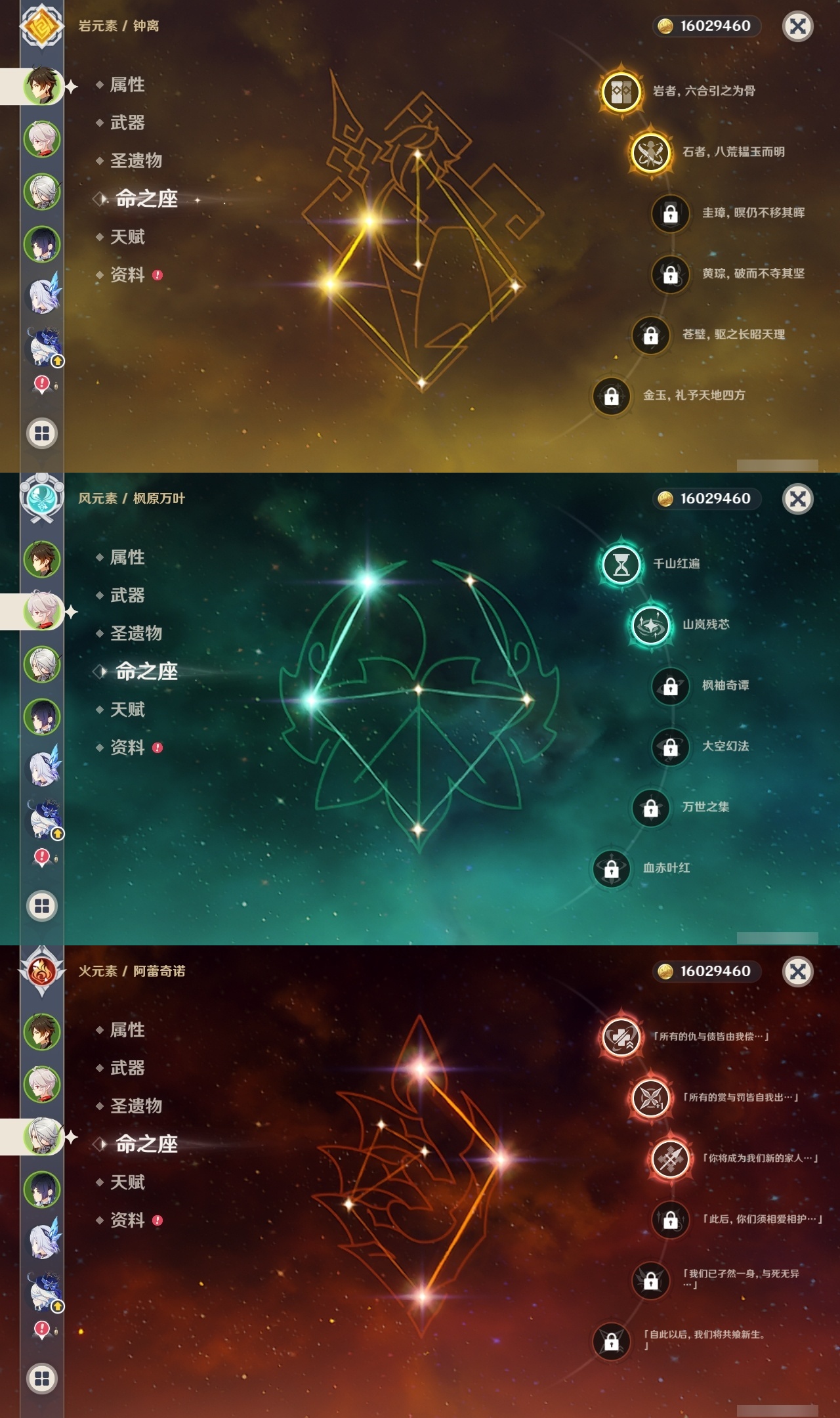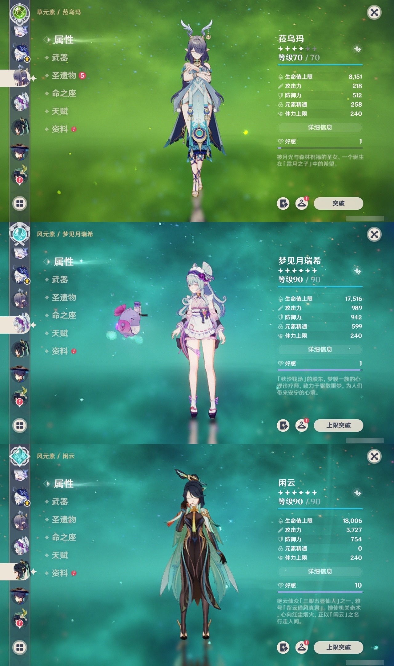 【原神】满命,冒险等级:60,五星数量:66,五星角色:刻晴 6命七七 6命琴 6命宵宫 6命八重神子 6命夜兰 6命提纳里 6命纳西妲 6命莫娜 5命迪卢克 4命阿蕾奇诺 3命雷电将军 3命枫原万叶 2命钟离 2命妮露 2命迪希雅 1命闲云 1命甘雨 1命胡桃 1命珊瑚宫心海 1命优菈 1命玛拉妮白术神里绫华温迪恰斯卡荒泷一斗达达利亚梦见月瑞希申鹤神里绫人莱欧斯利芙宁娜丝柯克菈乌玛流浪者克洛琳德可莉__五星武器:飞雷之弦振 5精天空之傲 3精薙草之稻光 3精斫峰之刃 3精不灭月华 2精苍古自由之誓 2精若水 2精鹤鸣余音赤月之形苍耀阿莫斯之弓狼的末路磐岩结绿四风原典天空之脊天空之卷天空之刃天空之翼终末嗟叹之诗赤角石溃杵神乐之真意波乱月白经津赤沙之杖圣显之钥千夜浮梦赦罪__四星角色:班尼特 6命行秋 6命九条裟罗 6命香菱 6命久岐忍 6命鹿野院平藏 6命珐露珊 6命凝光 6命迪奥娜 6命砂糖 6命瑶瑶 6命莱依拉 6命米卡 6命坎蒂丝 6命多莉 6命柯莱 6命芭芭拉 6命云堇 6命早柚 6命托马 6命五郎 6命烟绯 6命重云 6命辛焱 6命诺艾尔 6命罗莎莉亚 6命雷泽 6命菲谢尔 6命北斗 6命琳妮特 6命卡维 5命菲米尼 5命绮良良 3命蓝砚 3命夏洛蒂 3命赛索斯 3命卡齐娜 2命嘉明 2命欧洛伦 1命夏沃蕾 1命奇偶·女性奇偶·男性伊安珊爱诺