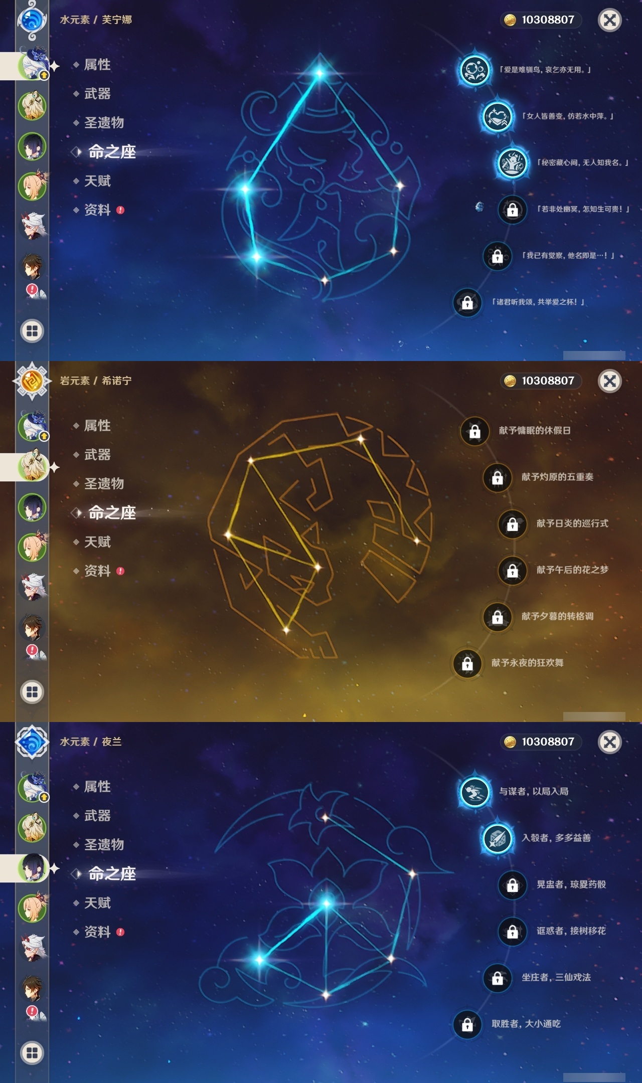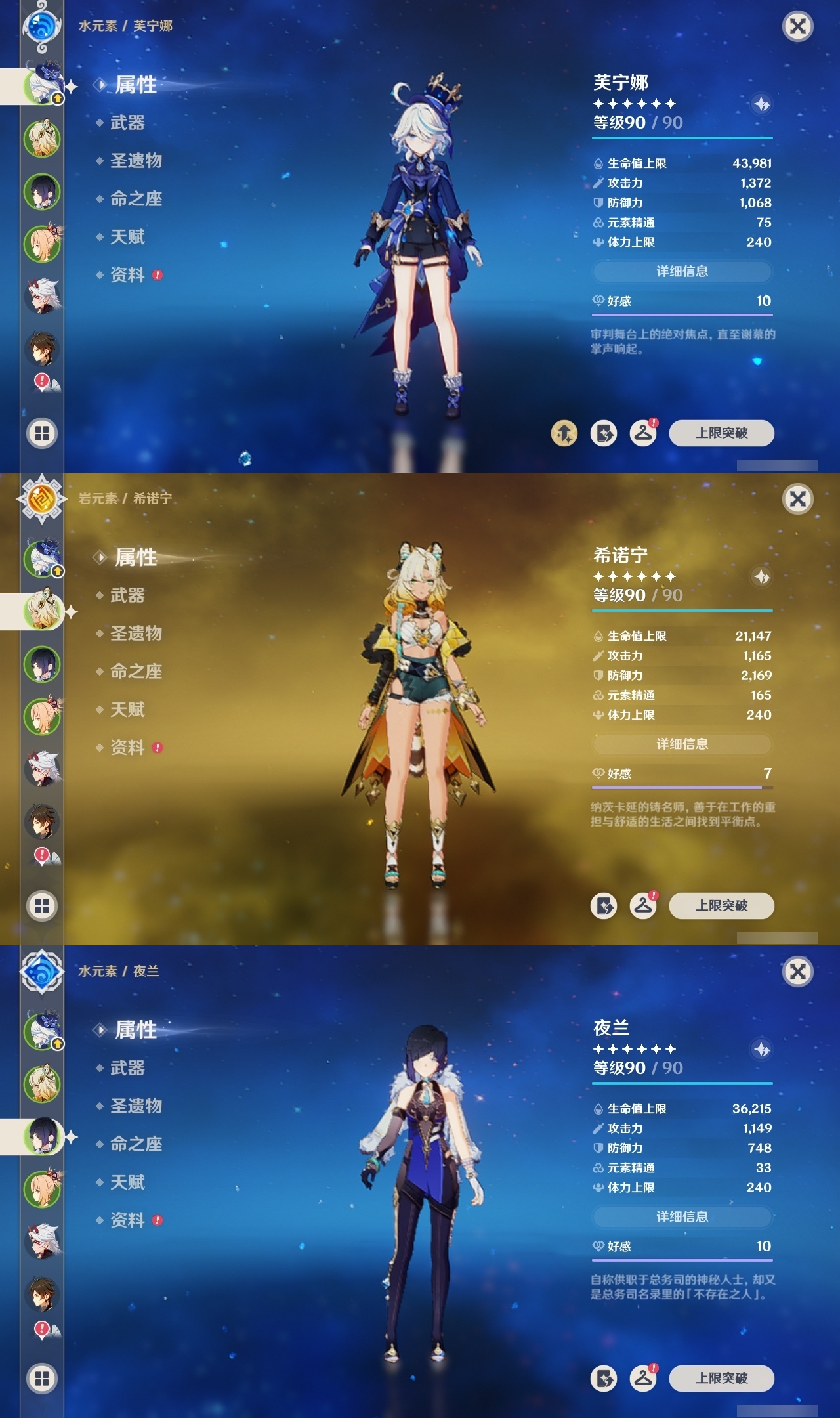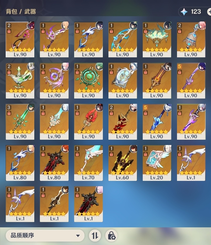 【原神】满命,冒险等级:60,五星数量:59,五星角色:迪卢克 6命刻晴 6命琴 6命宵宫 6命荒泷一斗 6命纳西妲 6命芙宁娜 3命雷电将军 3命莫娜 3命闲云 2命胡桃 2命夜兰 2命提纳里 2命赛诺 2命迪希雅 1命流浪者 1命七七玛拉妮基尼奇珊瑚宫心海希诺宁白术神里绫华温迪恰斯卡玛薇卡钟离梦见月瑞希申鹤八重神子神里绫人艾尔海森枫原万叶魈__五星武器:薙草之稻光 5精波乱月白经津 5精和璞鸢 3精最初的大魔术 2精赤角石溃杵 2精千夜浮梦 2精图莱杜拉的回忆 2精碧落之珑鹤鸣余音阿莫斯之弓不灭月华飞雷之弦振护摩之杖狼的末路四风原典天空之脊天空之卷天空之翼无工之剑雾切之回光终末嗟叹之诗贯虹之槊若水赤沙之杖__四星角色:班尼特 6命行秋 6命九条裟罗 6命香菱 6命久岐忍 6命鹿野院平藏 6命珐露珊 6命凝光 6命砂糖 6命坎蒂丝 6命多莉 6命柯莱 6命芭芭拉 6命云堇 6命早柚 6命托马 6命五郎 6命烟绯 6命辛焱 6命诺艾尔 6命罗莎莉亚 6命雷泽 6命菲谢尔 6命北斗 6命菲米尼 6命夏沃蕾 6命嘉明 6命莱依拉 5命重云 5命卡维 4命琳妮特 4命迪奥娜 3命绮良良 3命瑶瑶 3命塔利雅 3命米卡 2命赛索斯 2命卡齐娜 1命欧洛伦 1命夏洛蒂 1命奇偶·男性蓝砚伊安珊爱诺