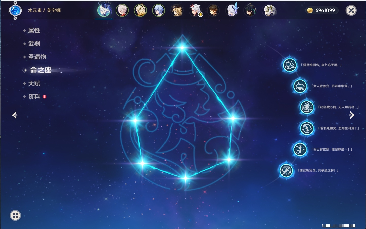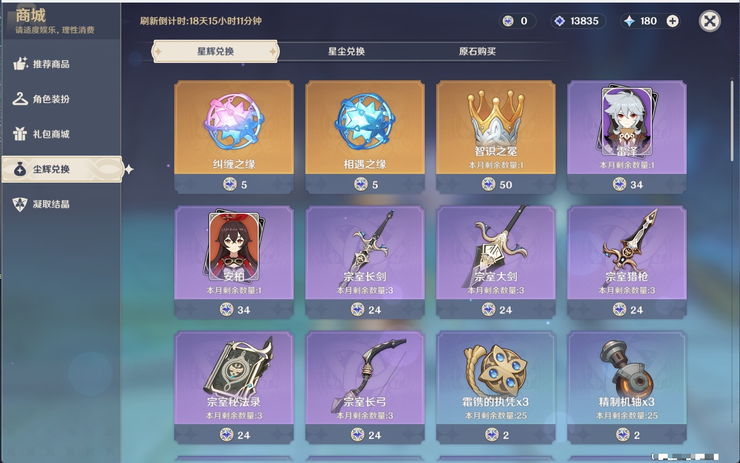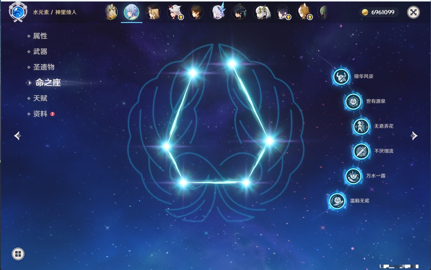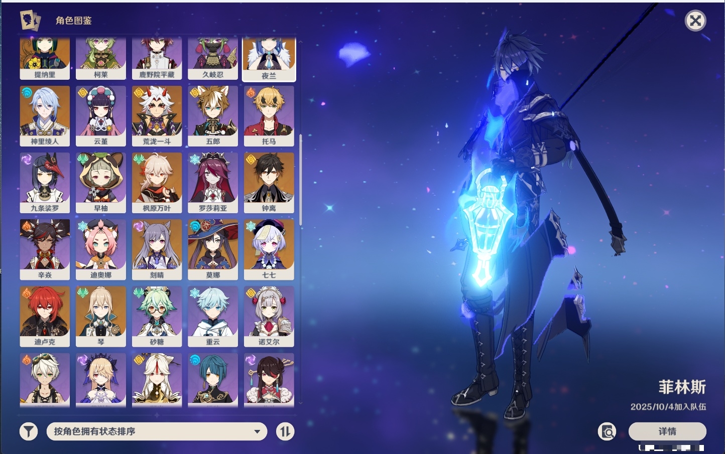 [14001888]74黄 风:2命枫原万叶,0命流浪者,3命琴,0命梦见月瑞希 火:1命迪希雅,0命迪卢克 水:6命芙宁娜,6命神里绫人,0命夜兰,1命莫娜 冰:0命丝柯克,2命七七 岩:0命希诺宁,0命娜维娅,6命荒泷一斗,2命钟离 雷:1命刻晴,0命菲林斯 草:0命基尼奇,0命纳西妲,3命提纳里 弓:精1飞雷之弦振,精1若水,精1阿莫斯之弓,精1天空之翼 法器:精1尘世之锁 单手剑:精2静水流涌之辉,精1波乱月白经津,精3苍古自由之誓,精1风鹰剑,精1天空之刃 双手剑:精1裁断,精1赤角石溃杵,精2狼的末路,精1天空之傲 长柄武器:精2护摩之杖 【角色皮肤】 四星角色:丽莎-叶隐芳名,菲谢尔-极夜真梦