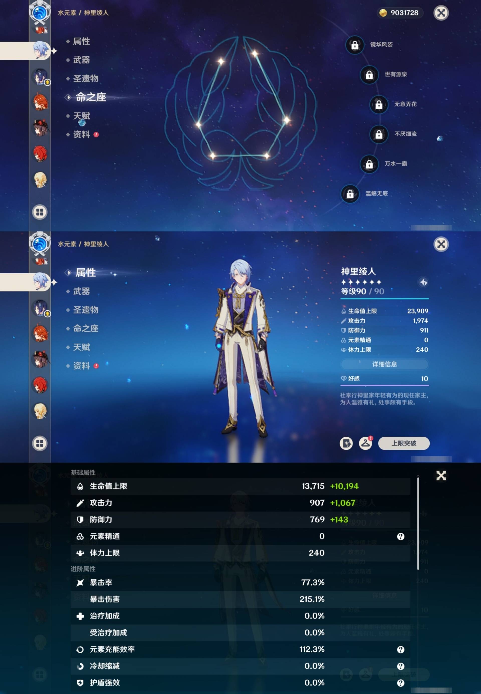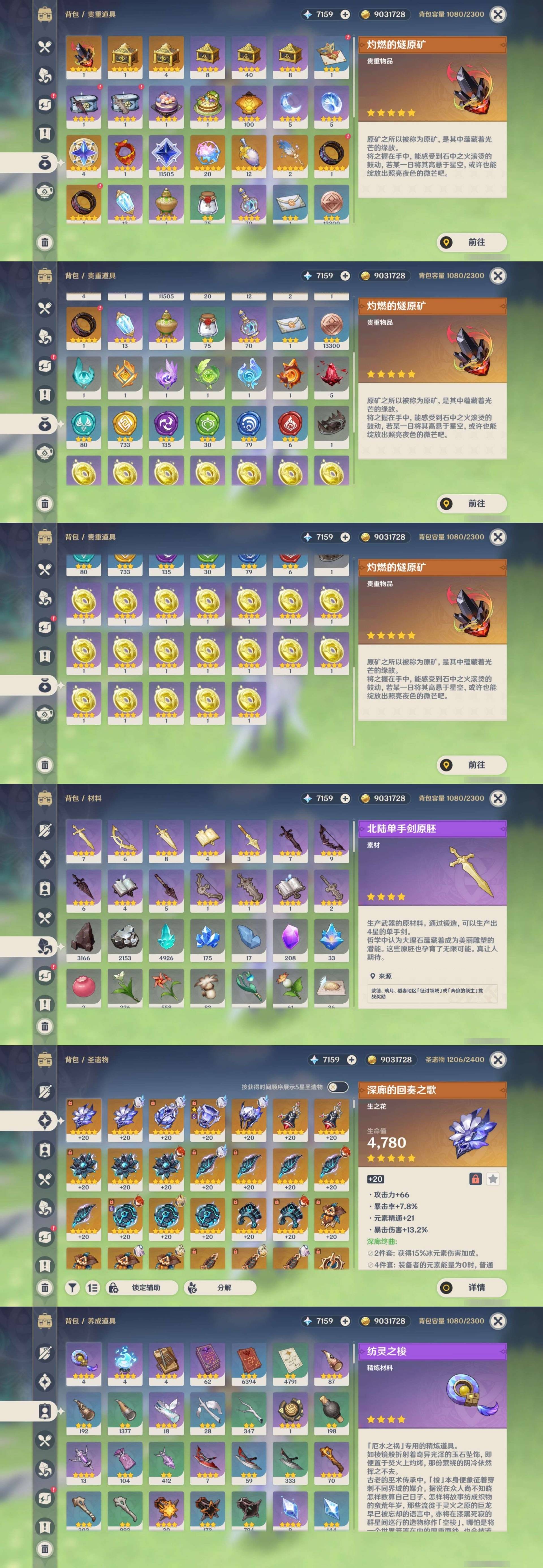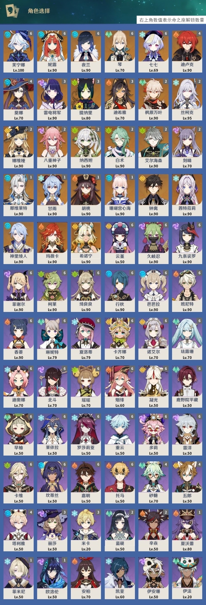 [14006865]130黄 风元素:2命枫原万叶 火元素:0命玛薇卡 1命胡桃 水元素:1命那维莱特 6命芙宁娜 6命妮露 0命神里绫人 6命夜兰 1命珊瑚宫心海 雷元素:2命八重神子 3命雷电将军 冰元素:2命丝柯克 0命茜特菈莉 1命甘雨 岩元素:2命娜维娅 0命钟离 0命希诺宁 草元素:2命纳西妲 2命白术 2命艾尔海森 【常驻五星角色及命座】 风元素:6命琴 火元素:4命迪卢克 3命迪希雅 水元素:4命莫娜 雷元素:2命刻晴 冰元素:6命七七 草元素:3命提纳里 单手剑:精5圣显之钥 精1波乱月白经津 精1苍古自由之誓 精1苍耀 精1裁叶萃光 精1静水流涌之辉 双手剑:精1焚曜千阳 精1狼的末路 精1裁断 长柄武器:精2和璞鸢 精1天空之脊 精1息灾 精1息灾 精1护摩之杖 精1护摩之杖 精1护摩之杖 精1薙草之稻光 法器:精1万世流涌大典 精1千夜浮梦 精1千夜浮梦 精1千夜浮梦 精1天空之卷 精1天空之卷 精1天空之卷 精1神乐之真意 精1祭星者之望 精1祭星者之望 弓:精2白雨心弦 精1若水 精1阿莫斯之弓 【角色皮肤】 五星角色:妮露-莎邦之息 夜兰-静暇雅宴 四星角色:绮良良-倩影游侠 凯亚-帆影游风 丽莎-叶隐芳名 行秋-雨化竹身 香菱-岁夜欢哗