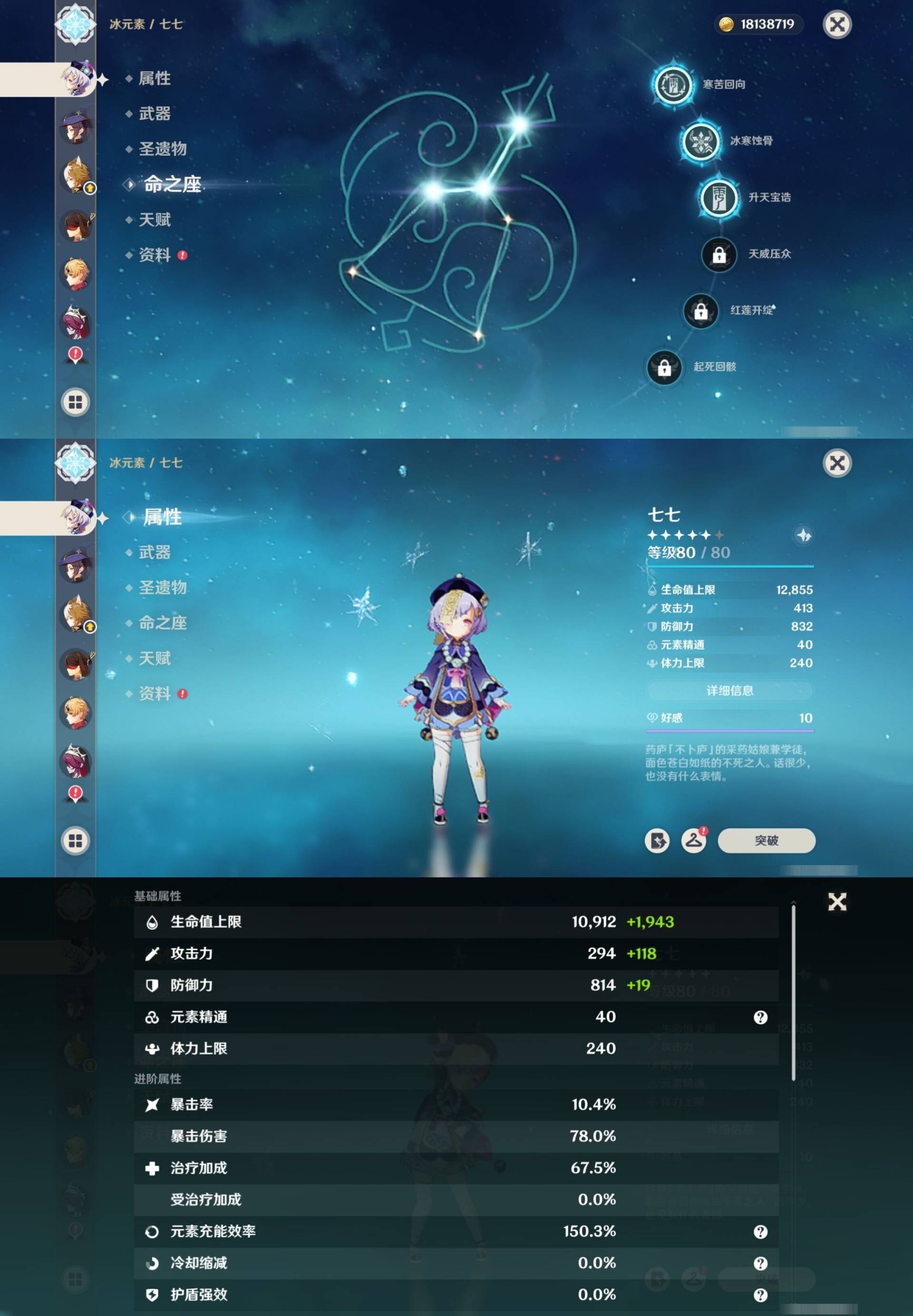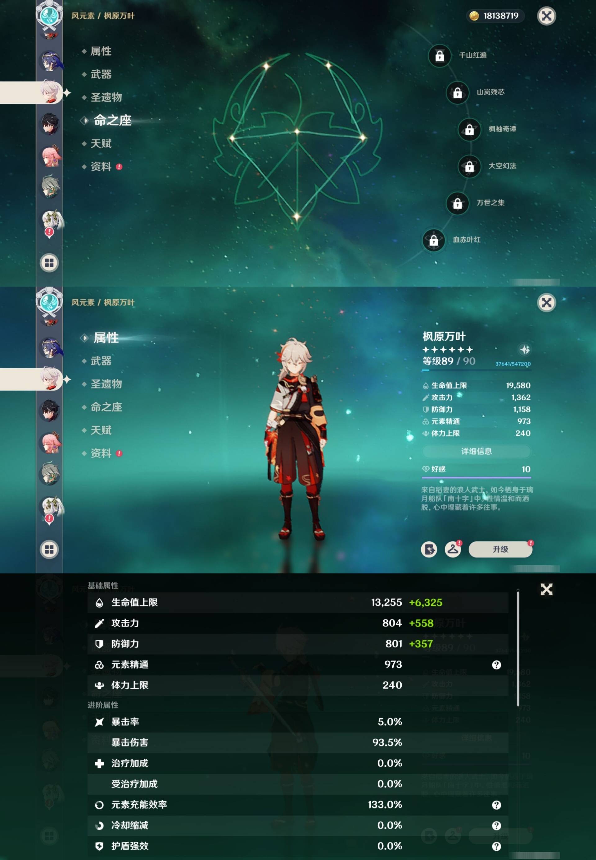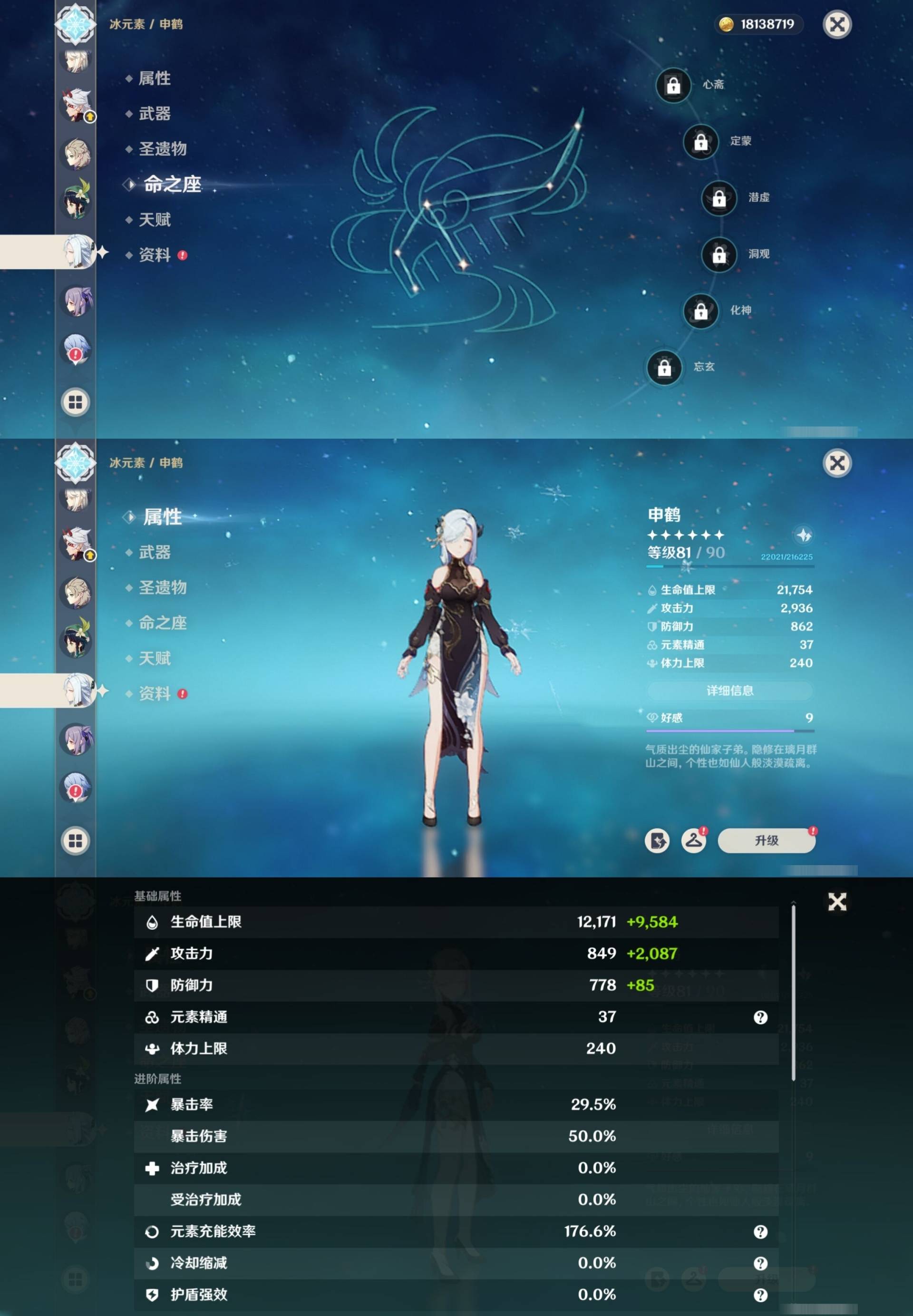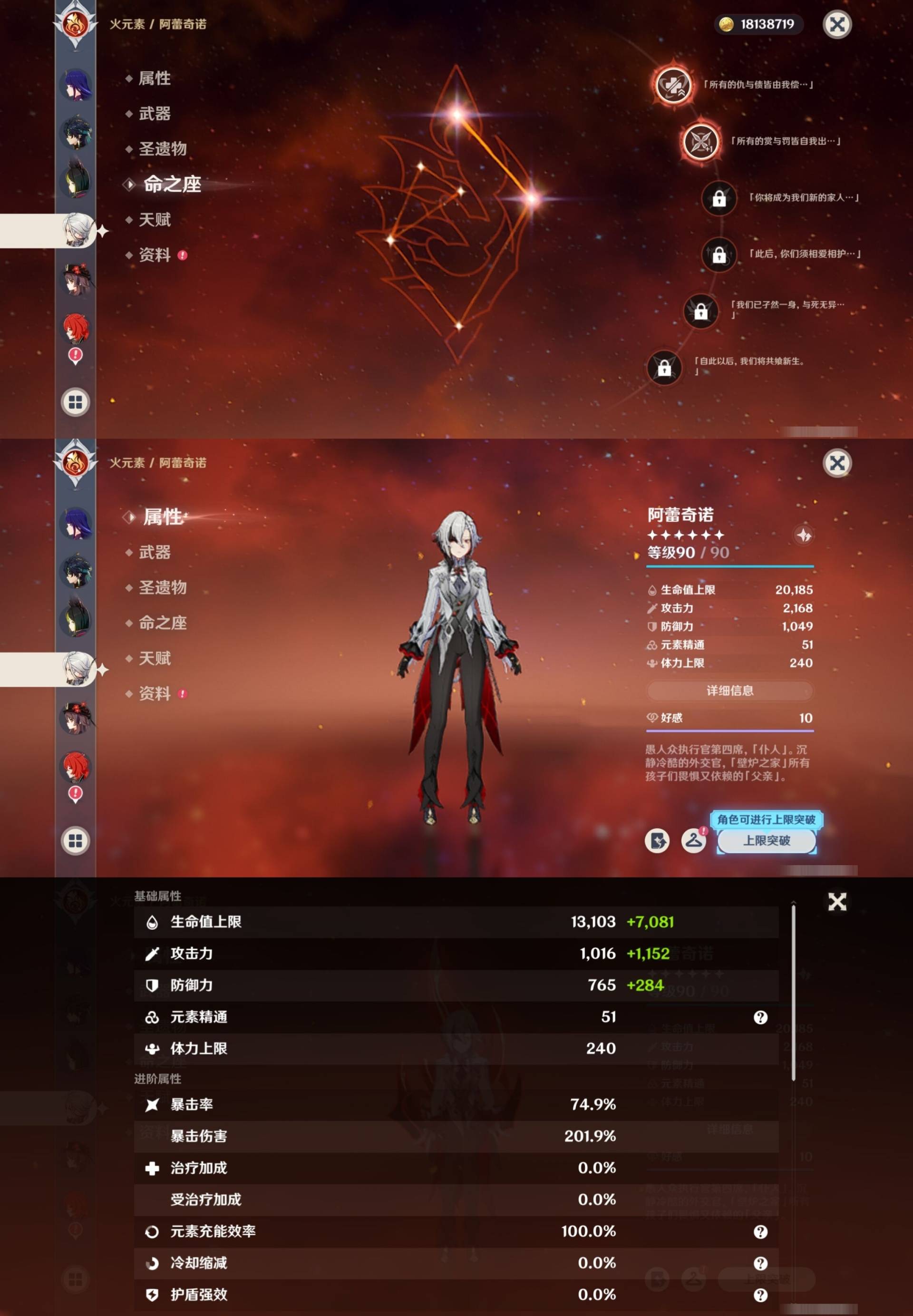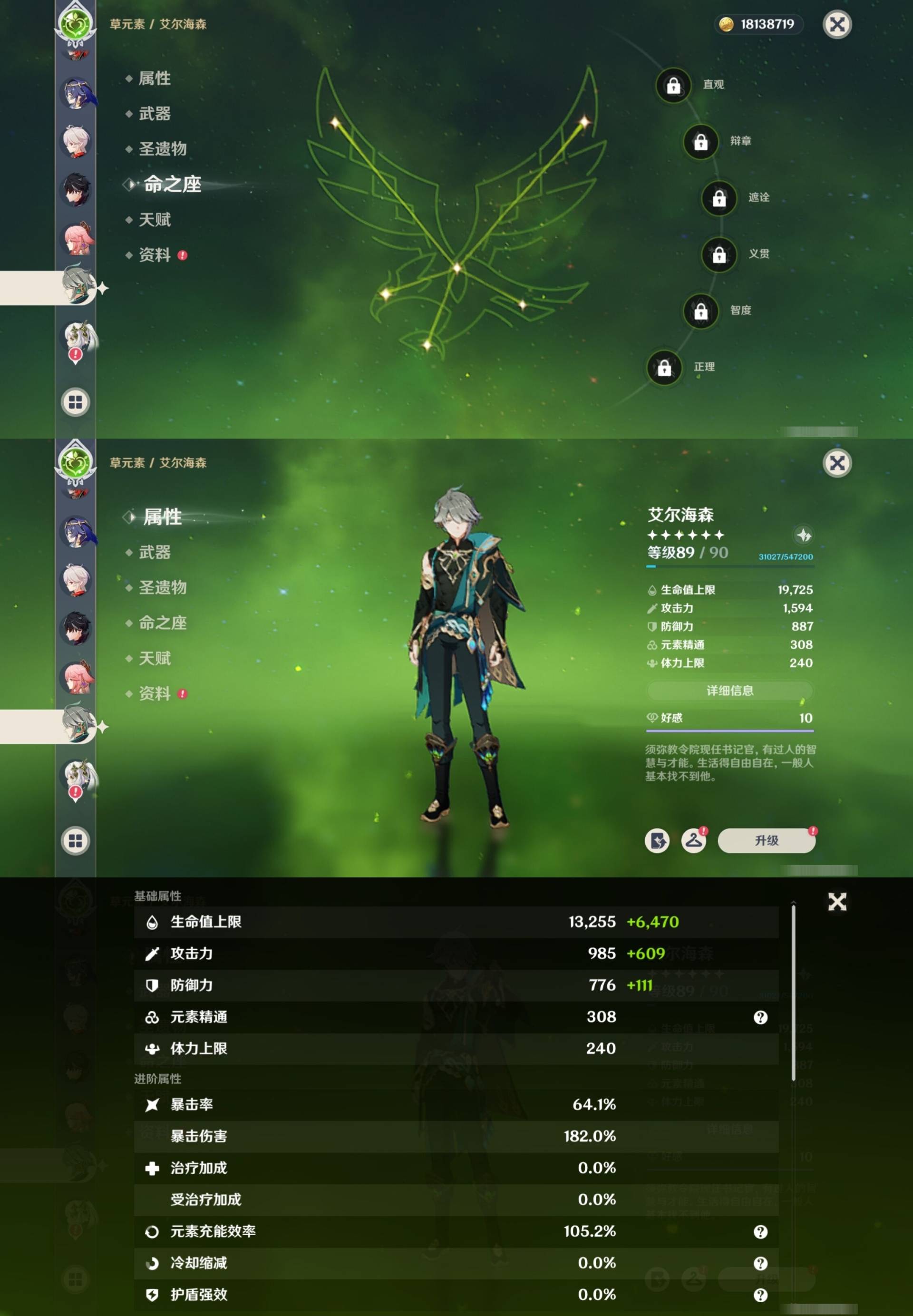 [14007517]84黄 风系:0命恰斯卡/0命魈/0命枫原万叶/2命流浪者/0命温迪/1命琴 火系:2命阿蕾奇诺/1命胡桃/3命迪卢克/0命迪希雅 水系:0命那维莱特/3命神里绫人/0命珊瑚宫心海/0命达达利亚/6命莫娜/2命夜兰 冰系:0命神里绫华/0命莱欧斯利/0命申鹤/3命七七/0命埃洛伊 岩系:2命荒泷一斗/0命阿贝多/0命钟离 雷系:0命雷电将军/0命八重神子/2命刻晴/0命菲林斯 草系:0命基尼奇/2命提纳里/0命艾尔海森/0命纳西妲 [四星角色等级及命座] 风系: 6命珐露珊/4命鹿野院平藏/6命砂糖/6命琳妮特/6命早柚 火系: 6命班尼特/0命嘉明/6命香菱/5命托马/6命烟绯/6命辛焱/3命安柏/0命夏沃蕾 水系:6命行秋/6命芭芭拉/0命坎蒂丝/0命爱诺/0命塔利雅 冰系:5命莱依拉/6命重云/6命罗莎莉亚/0命夏洛蒂/5命凯亚/6命菲米尼/6命迪奥娜 岩系:6命凝光/6命云堇/6命诺艾尔/6命五郎 雷系:1命久岐忍/6命菲谢尔/6命北斗/0命赛索斯/3命丽莎/6命雷泽/6命九条裟罗/2命多莉/3命欧洛伦 草系:2命绮良良/6命瑶瑶/6命柯莱/0命卡维 [角色经验书] 紫色154/蓝色2538 [小物品] 脆弱树脂83/异梦溶媒8/嬗变之尘289 [特殊材料] 东风之爪7/东风的吐息10/北风之环2/北风的魂匣3/吞天之鲸·只角6/武炼之魂·孤影5/龙王之冕15 血玉之枝/鎏金之鳞10/智识之冕11 [神瞳剩余数量] 风神瞳1/岩神瞳1/草神瞳1