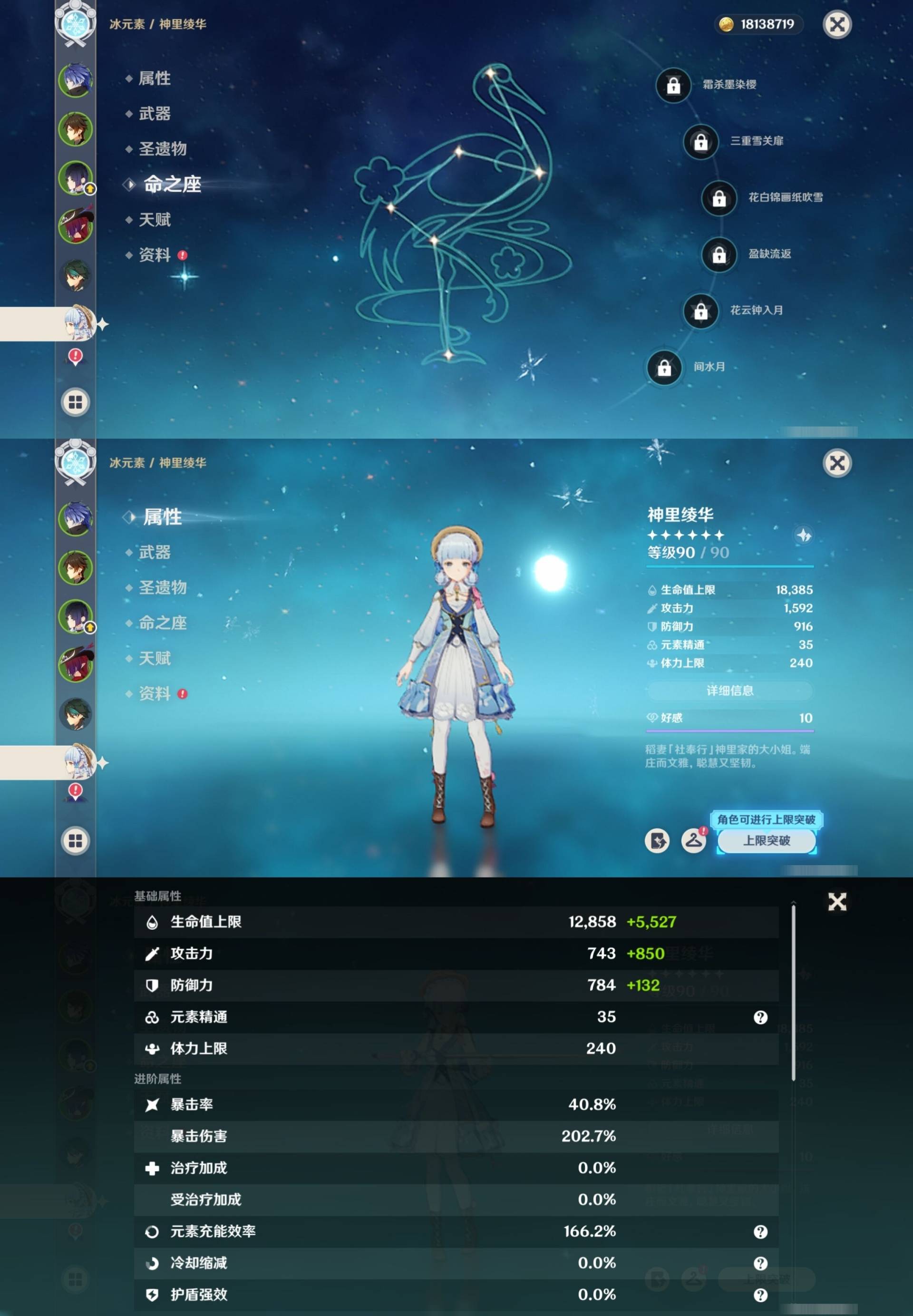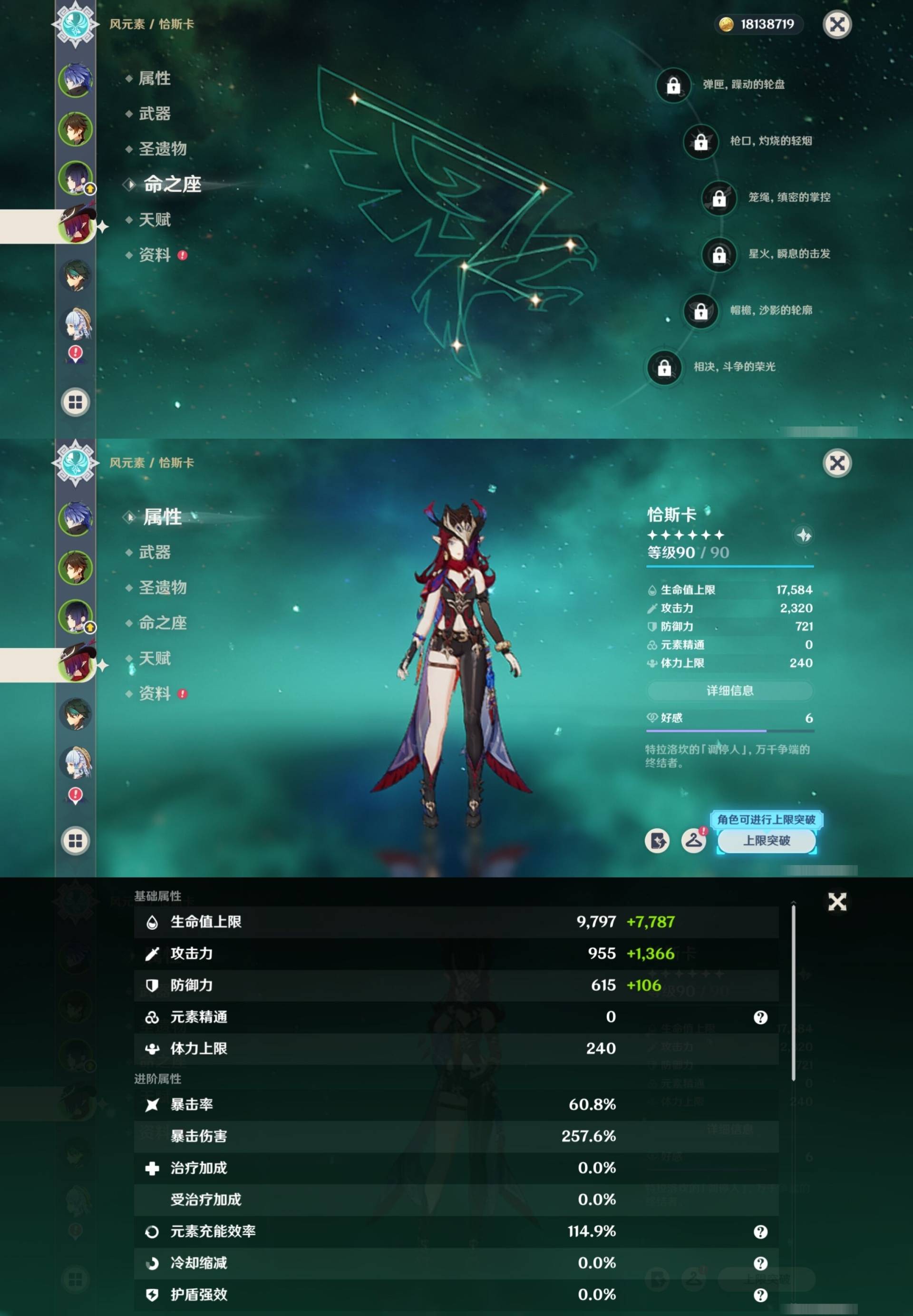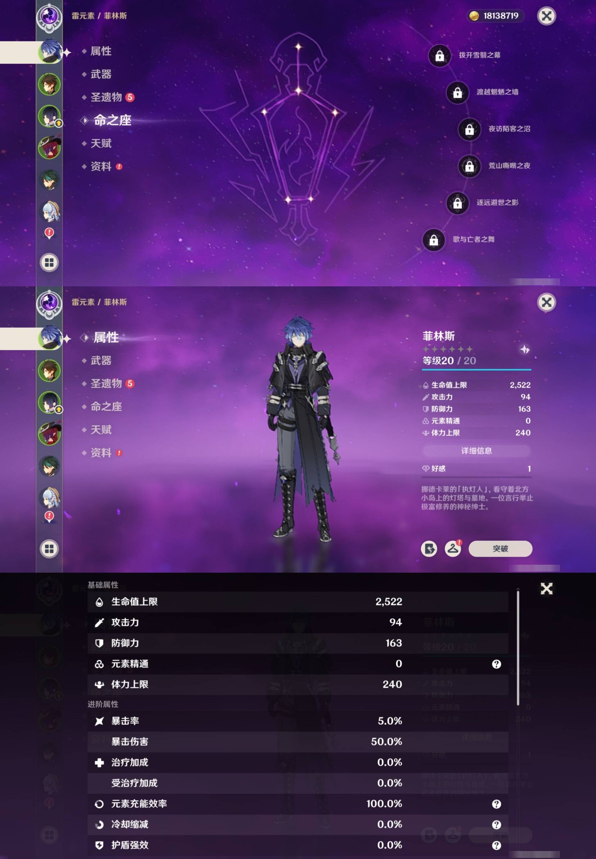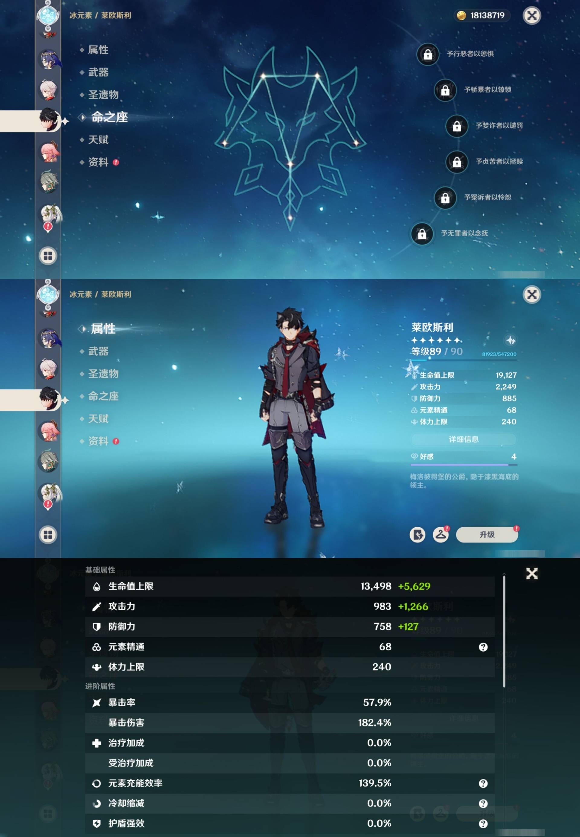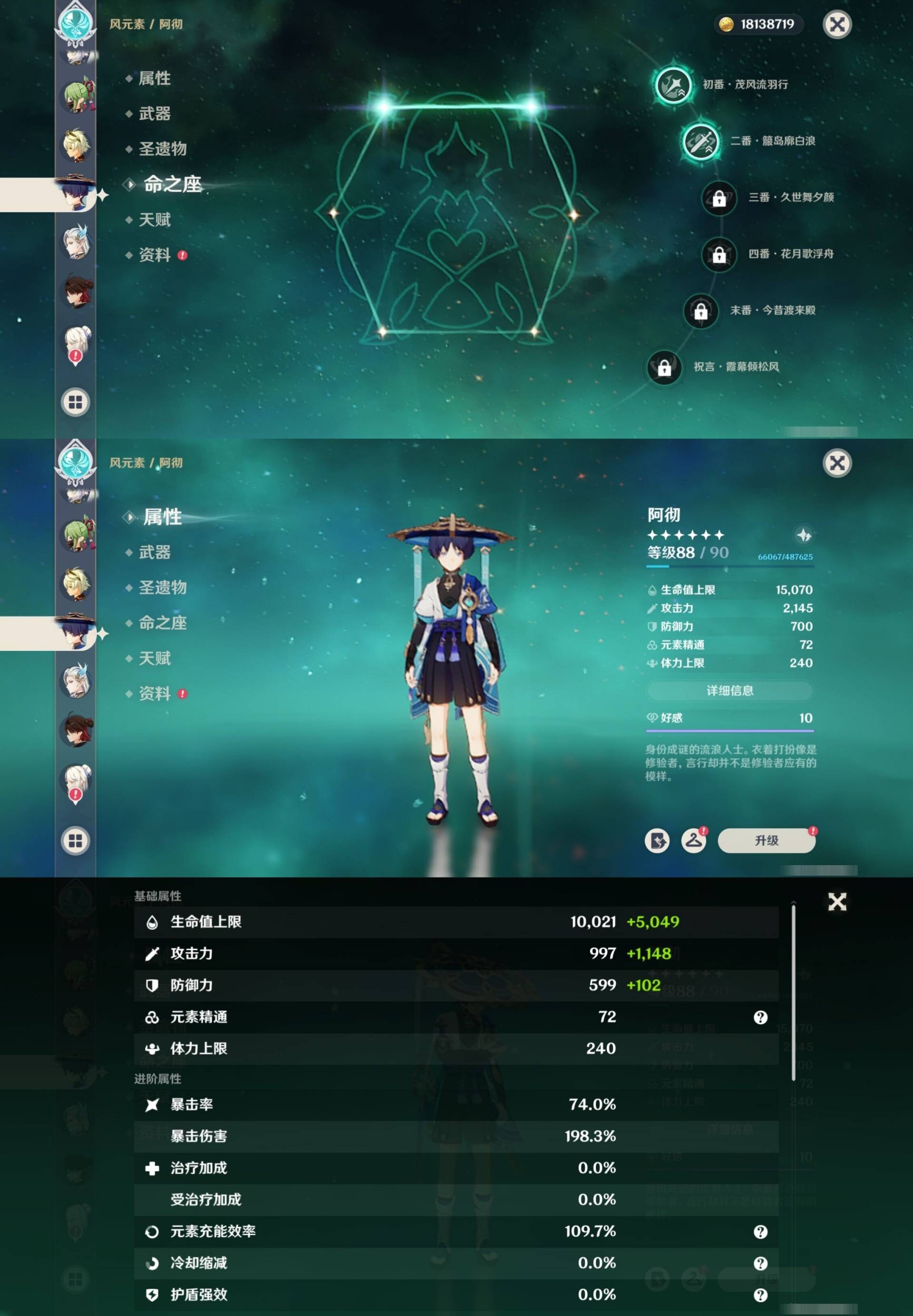 [14007517]84黄 风系:0命恰斯卡/0命魈/0命枫原万叶/2命流浪者/0命温迪/1命琴 火系:2命阿蕾奇诺/1命胡桃/3命迪卢克/0命迪希雅 水系:0命那维莱特/3命神里绫人/0命珊瑚宫心海/0命达达利亚/6命莫娜/2命夜兰 冰系:0命神里绫华/0命莱欧斯利/0命申鹤/3命七七/0命埃洛伊 岩系:2命荒泷一斗/0命阿贝多/0命钟离 雷系:0命雷电将军/0命八重神子/2命刻晴/0命菲林斯 草系:0命基尼奇/2命提纳里/0命艾尔海森/0命纳西妲 [四星角色等级及命座] 风系: 6命珐露珊/4命鹿野院平藏/6命砂糖/6命琳妮特/6命早柚 火系: 6命班尼特/0命嘉明/6命香菱/5命托马/6命烟绯/6命辛焱/3命安柏/0命夏沃蕾 水系:6命行秋/6命芭芭拉/0命坎蒂丝/0命爱诺/0命塔利雅 冰系:5命莱依拉/6命重云/6命罗莎莉亚/0命夏洛蒂/5命凯亚/6命菲米尼/6命迪奥娜 岩系:6命凝光/6命云堇/6命诺艾尔/6命五郎 雷系:1命久岐忍/6命菲谢尔/6命北斗/0命赛索斯/3命丽莎/6命雷泽/6命九条裟罗/2命多莉/3命欧洛伦 草系:2命绮良良/6命瑶瑶/6命柯莱/0命卡维 [角色经验书] 紫色154/蓝色2538 [小物品] 脆弱树脂83/异梦溶媒8/嬗变之尘289 [特殊材料] 东风之爪7/东风的吐息10/北风之环2/北风的魂匣3/吞天之鲸·只角6/武炼之魂·孤影5/龙王之冕15 血玉之枝/鎏金之鳞10/智识之冕11 [神瞳剩余数量] 风神瞳1/岩神瞳1/草神瞳1