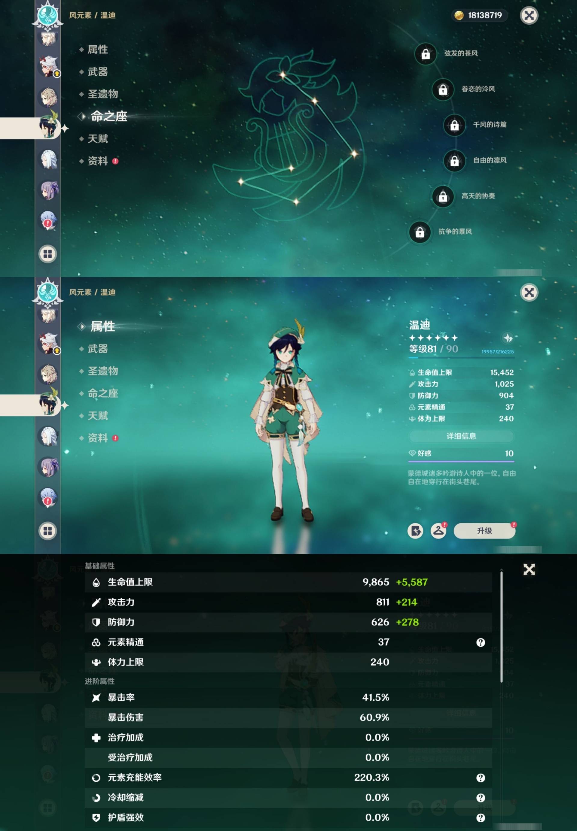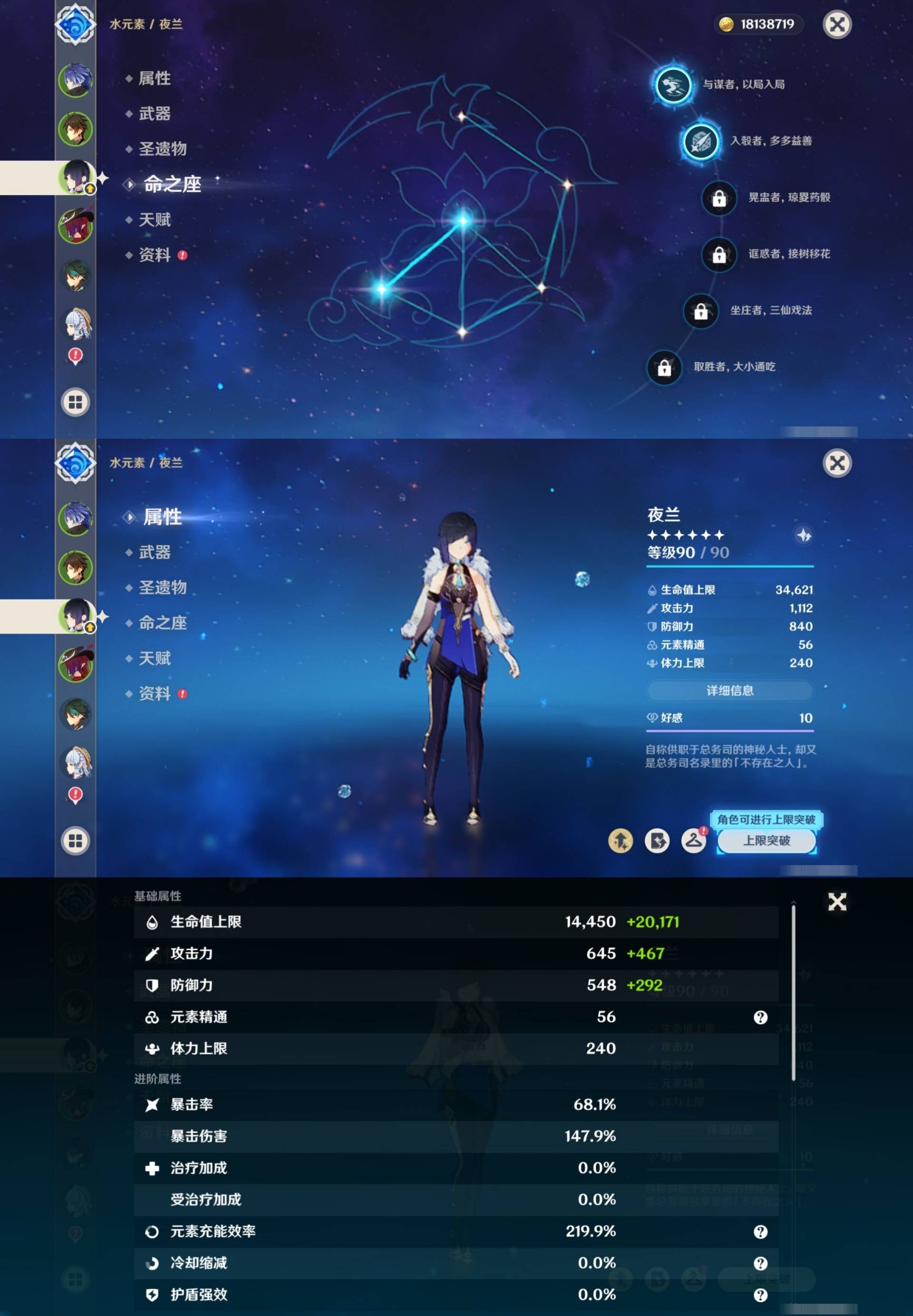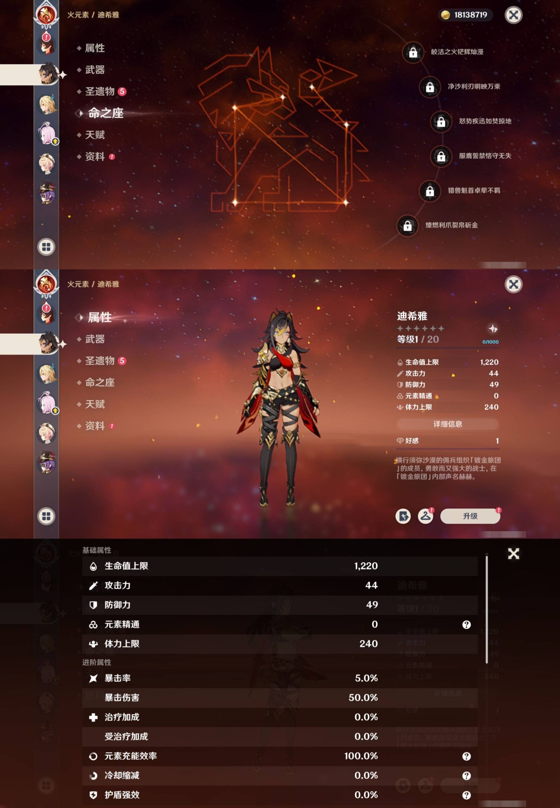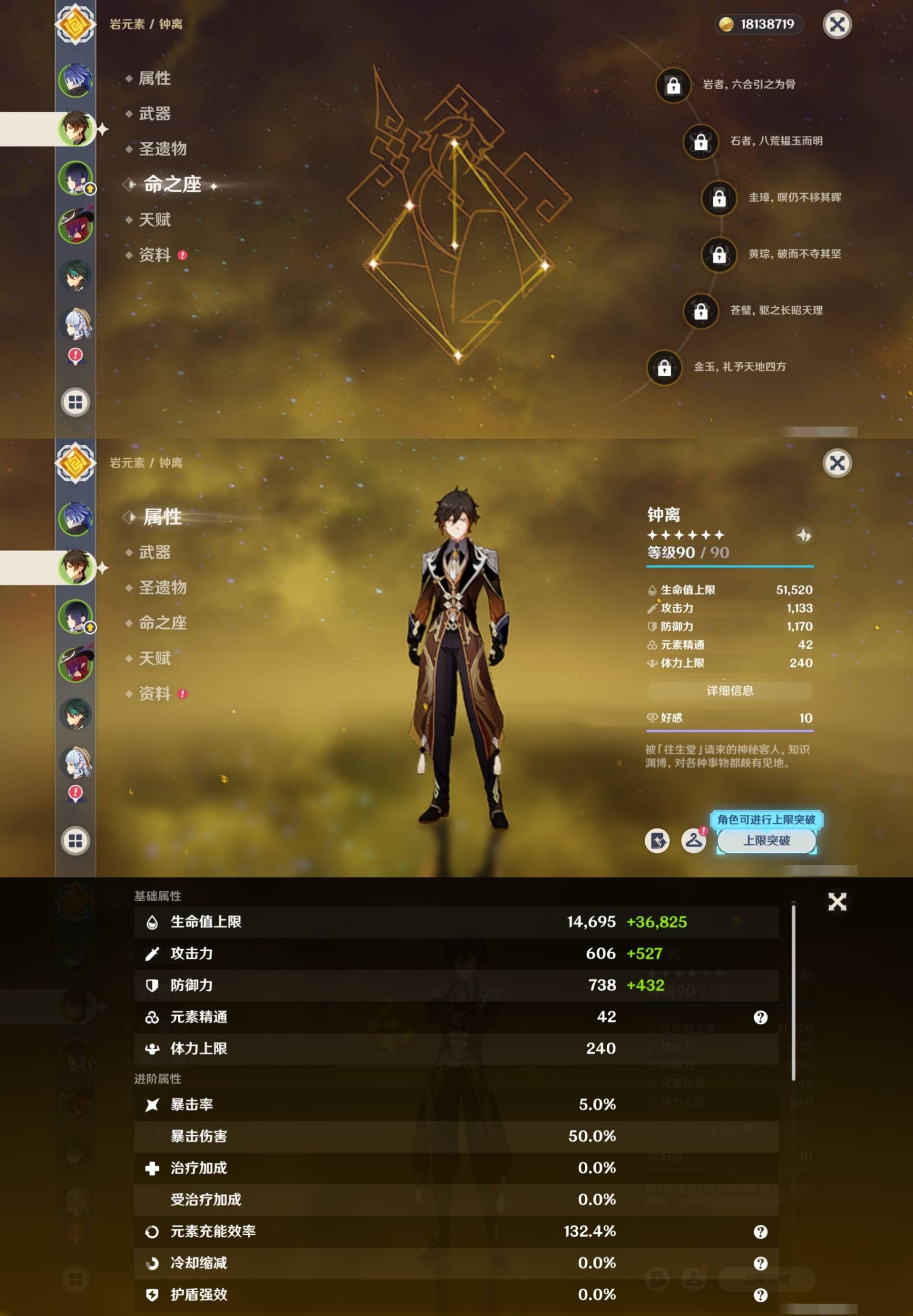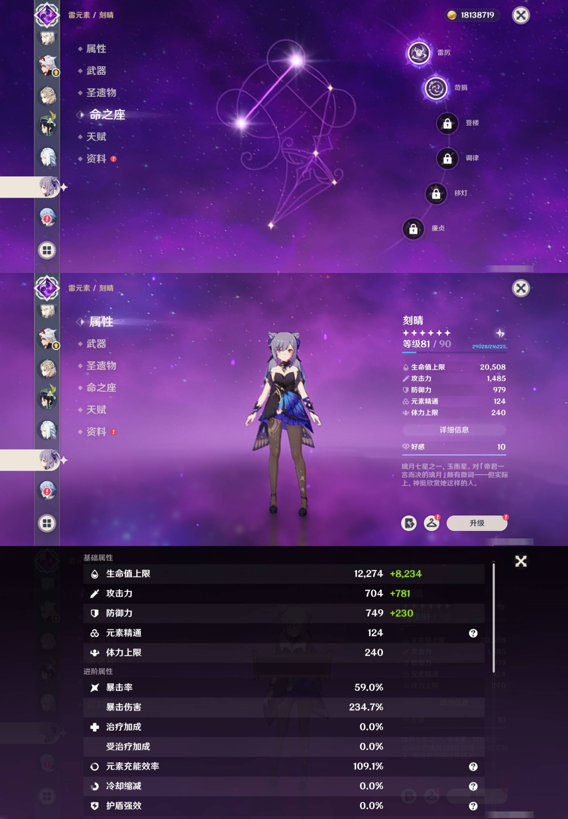 [14007517]84黄 风系:0命恰斯卡/0命魈/0命枫原万叶/2命流浪者/0命温迪/1命琴 火系:2命阿蕾奇诺/1命胡桃/3命迪卢克/0命迪希雅 水系:0命那维莱特/3命神里绫人/0命珊瑚宫心海/0命达达利亚/6命莫娜/2命夜兰 冰系:0命神里绫华/0命莱欧斯利/0命申鹤/3命七七/0命埃洛伊 岩系:2命荒泷一斗/0命阿贝多/0命钟离 雷系:0命雷电将军/0命八重神子/2命刻晴/0命菲林斯 草系:0命基尼奇/2命提纳里/0命艾尔海森/0命纳西妲 [四星角色等级及命座] 风系: 6命珐露珊/4命鹿野院平藏/6命砂糖/6命琳妮特/6命早柚 火系: 6命班尼特/0命嘉明/6命香菱/5命托马/6命烟绯/6命辛焱/3命安柏/0命夏沃蕾 水系:6命行秋/6命芭芭拉/0命坎蒂丝/0命爱诺/0命塔利雅 冰系:5命莱依拉/6命重云/6命罗莎莉亚/0命夏洛蒂/5命凯亚/6命菲米尼/6命迪奥娜 岩系:6命凝光/6命云堇/6命诺艾尔/6命五郎 雷系:1命久岐忍/6命菲谢尔/6命北斗/0命赛索斯/3命丽莎/6命雷泽/6命九条裟罗/2命多莉/3命欧洛伦 草系:2命绮良良/6命瑶瑶/6命柯莱/0命卡维 [角色经验书] 紫色154/蓝色2538 [小物品] 脆弱树脂83/异梦溶媒8/嬗变之尘289 [特殊材料] 东风之爪7/东风的吐息10/北风之环2/北风的魂匣3/吞天之鲸·只角6/武炼之魂·孤影5/龙王之冕15 血玉之枝/鎏金之鳞10/智识之冕11 [神瞳剩余数量] 风神瞳1/岩神瞳1/草神瞳1