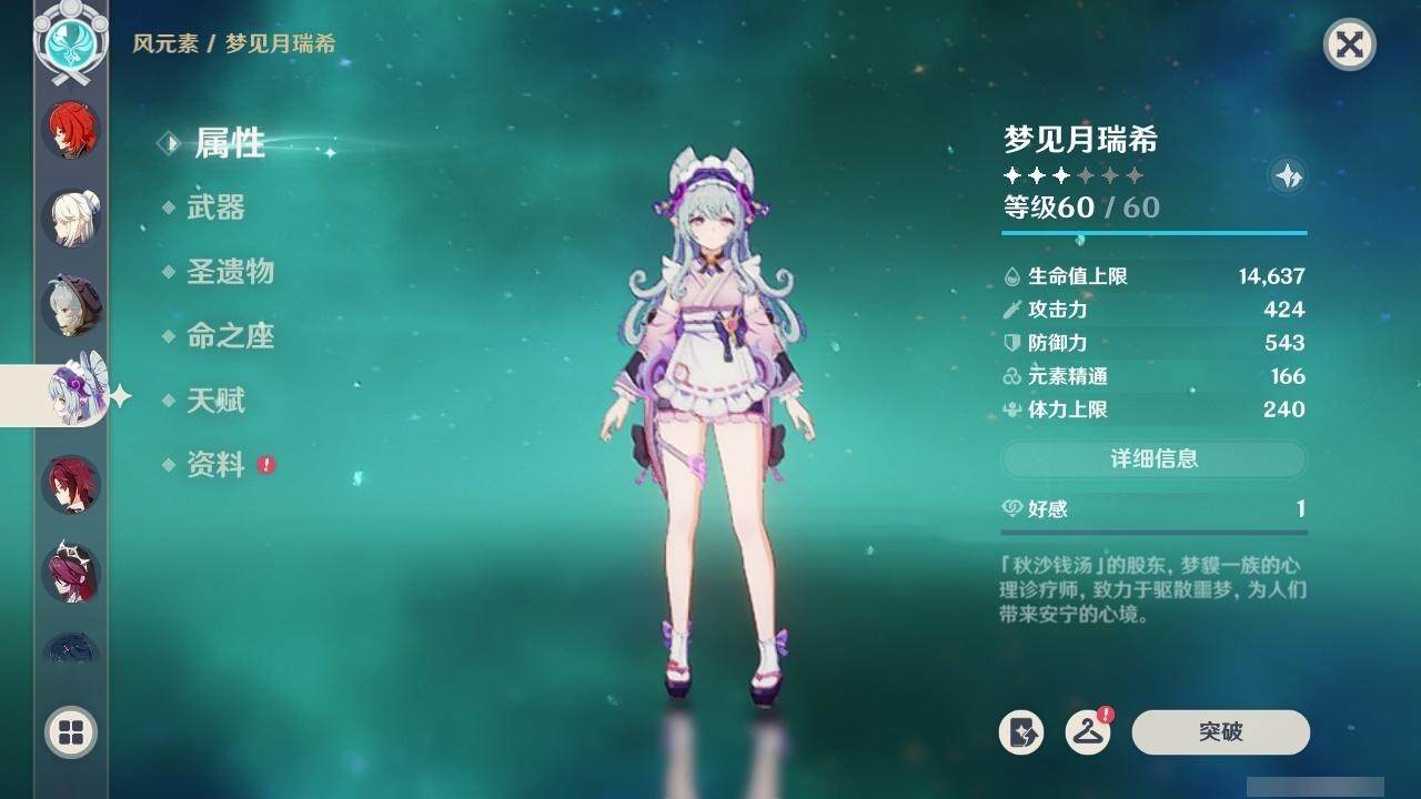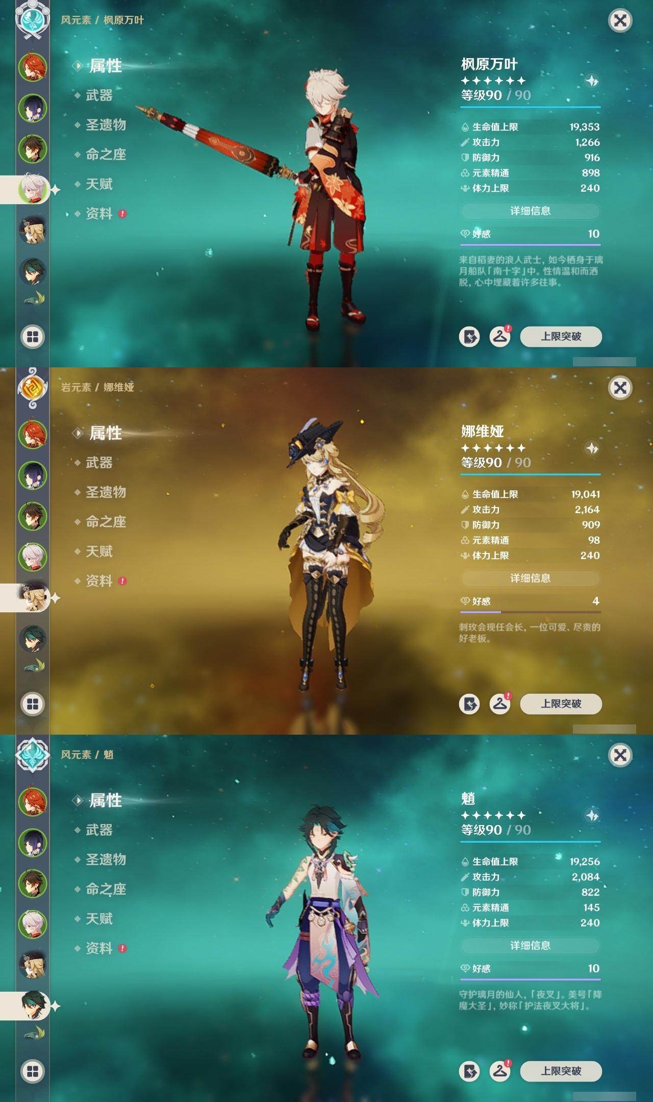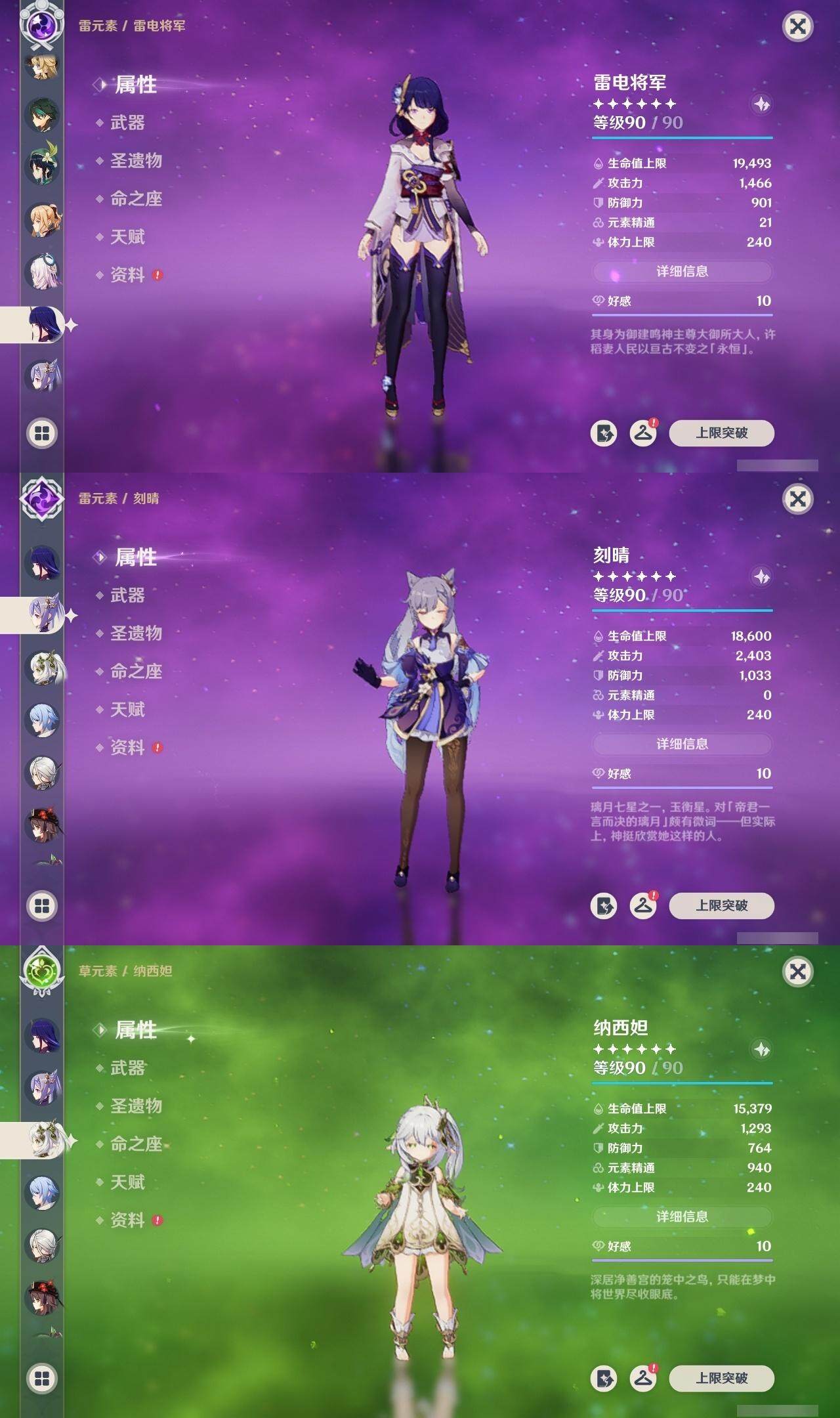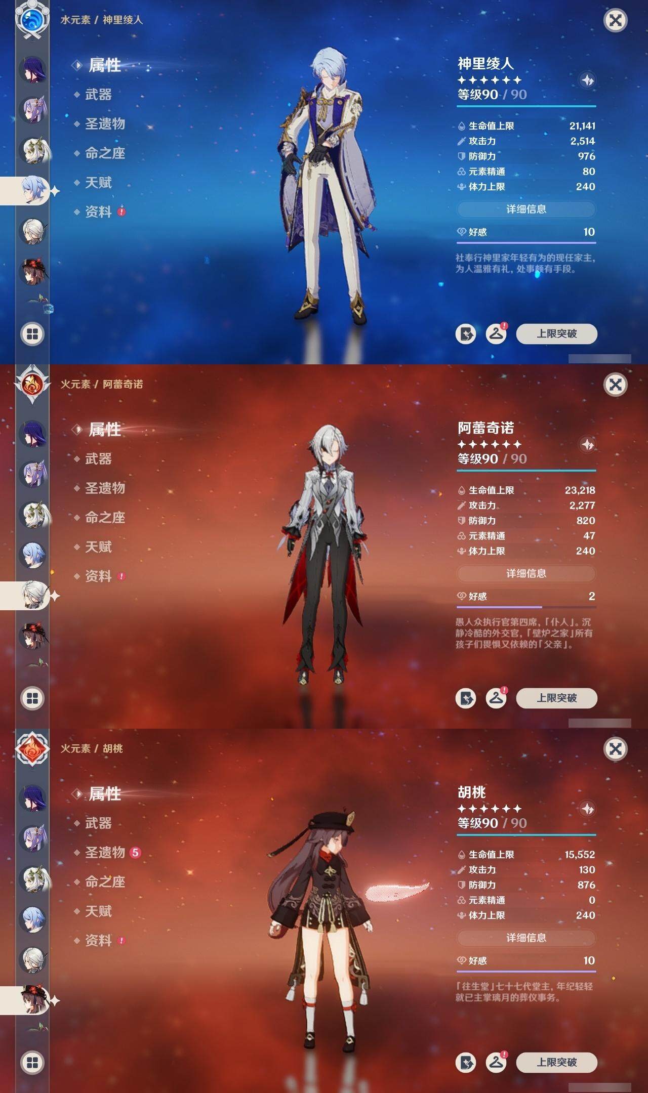 60级/47黄/女主/19个五星角色/13个五星武器 0命阿蕾奇诺0命娜维娅2命纳西妲0命夜兰0命神里绫人0命雷电将军0命枫原万叶1命钟离1命胡桃0命魈0命温迪2命刻晴3命七七5命琴1命莫娜0命迪卢克0命玛薇卡0命茜特菈莉0命梦见月瑞希精1裁断精1若水精1雾切之回光精1护摩之杖精1天空之脊精1天空之翼精1阿莫斯之弓精1天空之卷精1风鹰剑精1天空之傲