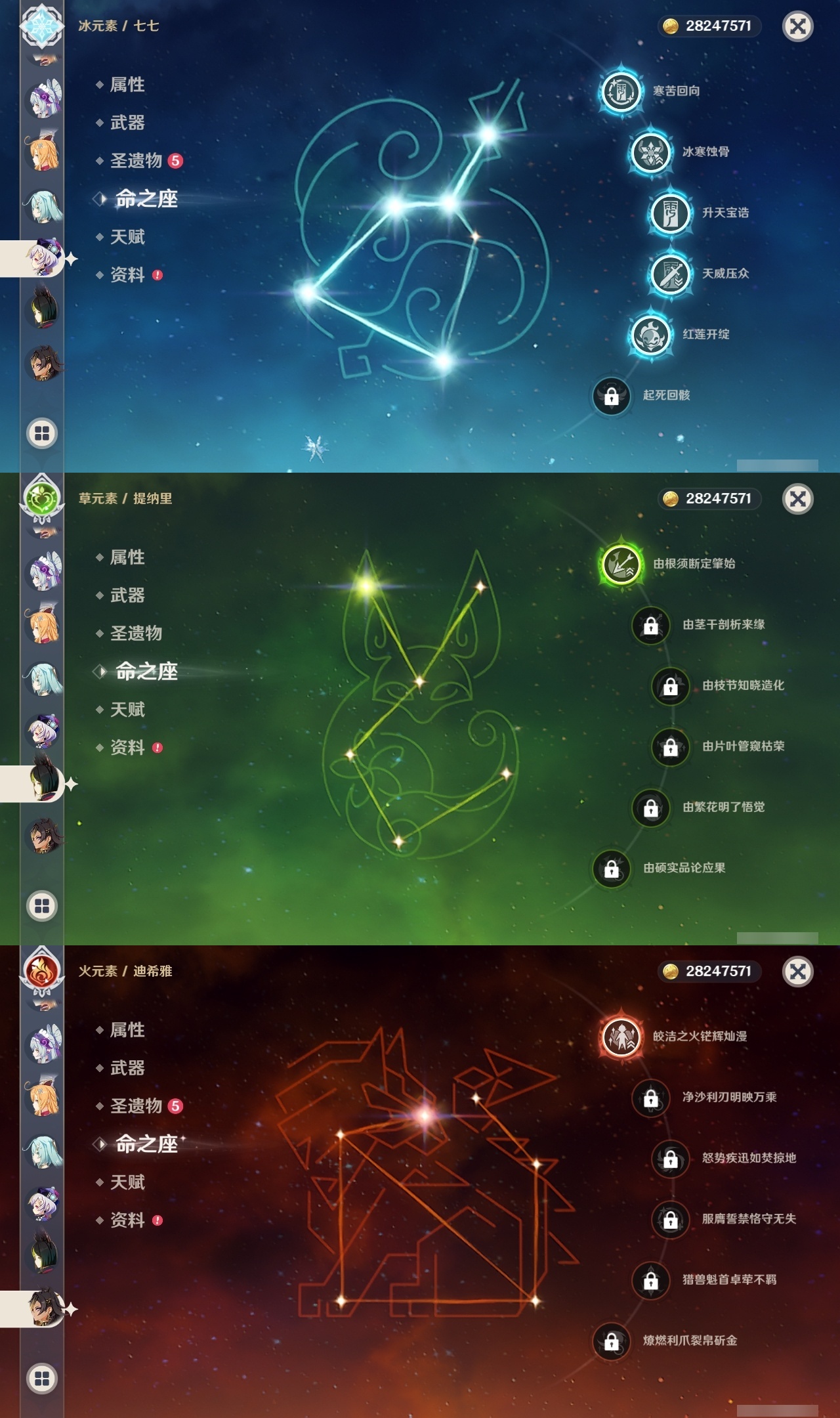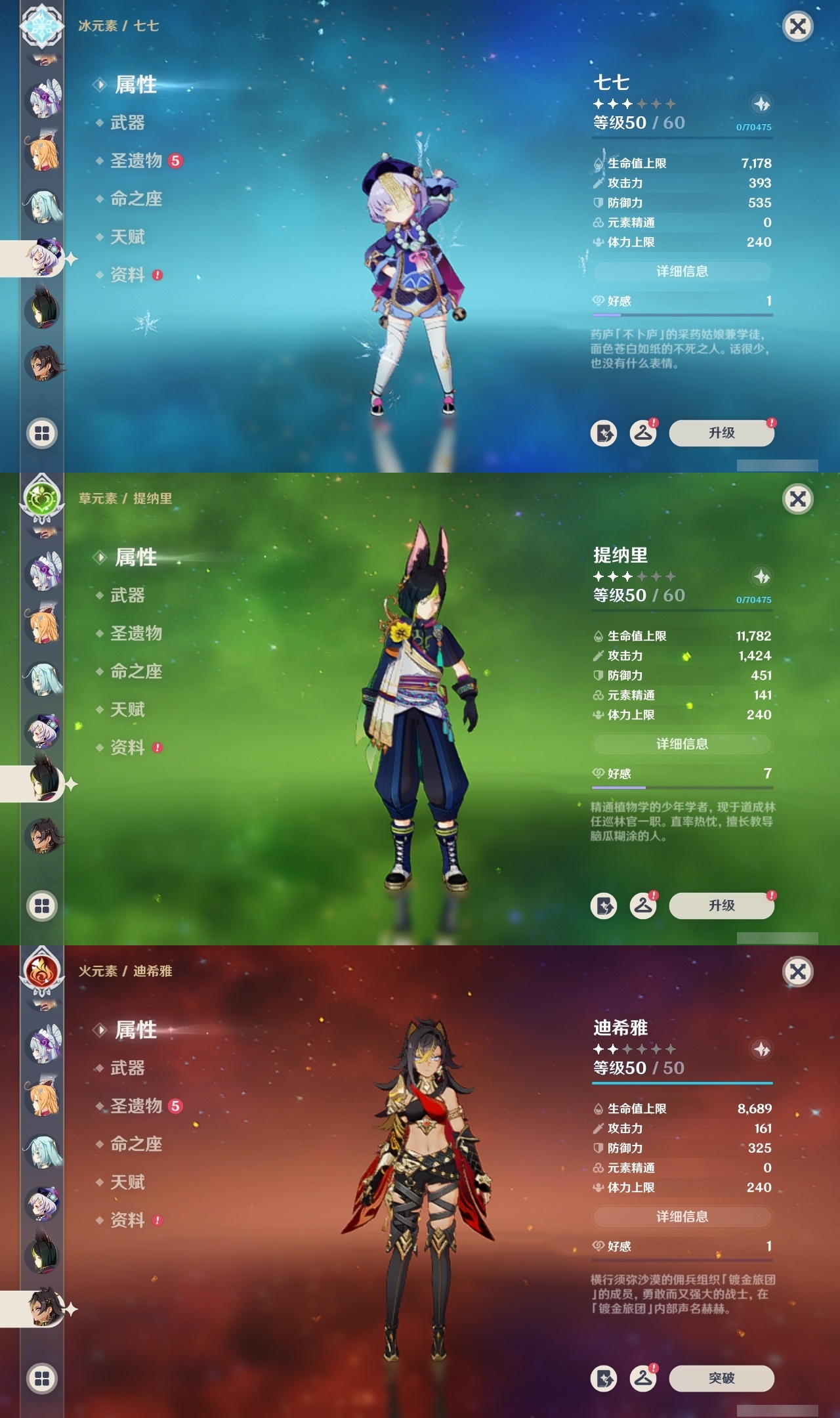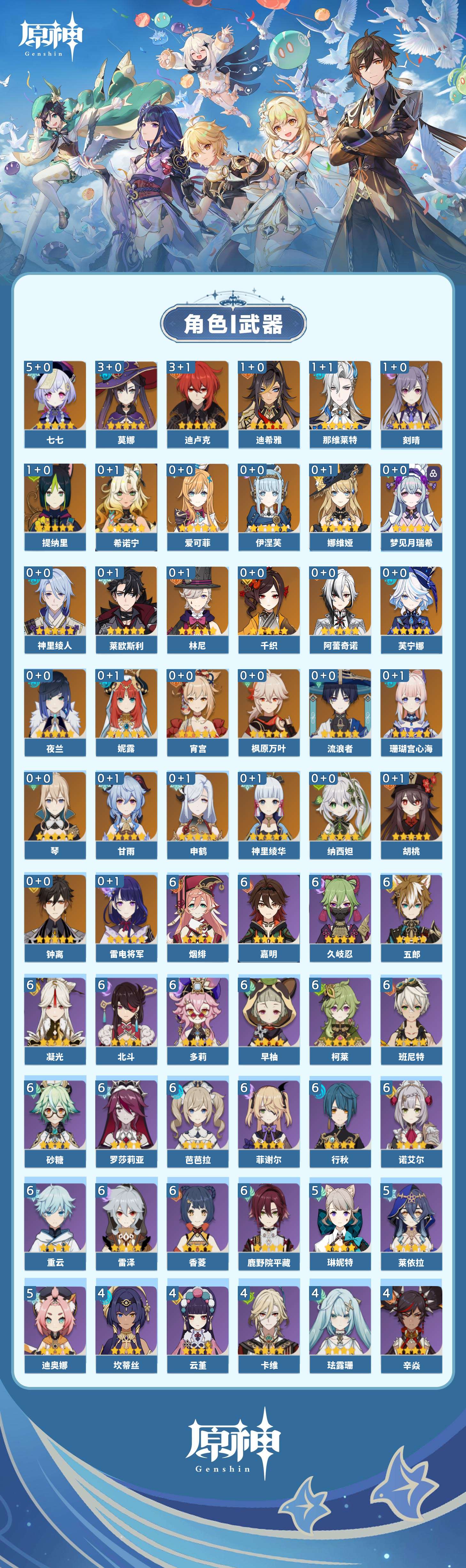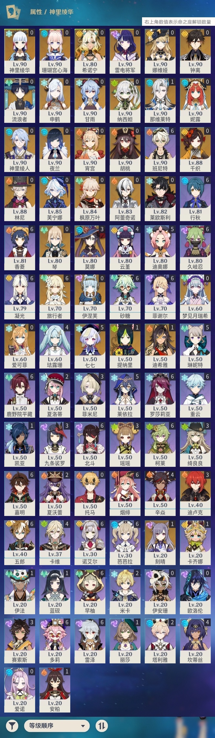 【原神】【lyys8260】冒险等级:60,五星数量:48,五星角色:七七 5命迪卢克 3命莫娜 3命迪希雅 1命那维莱特 1命刻晴 1命提纳里 1命琴珊瑚宫心海希诺宁神里绫华宵宫钟离梦见月瑞希申鹤神里绫人林尼莱欧斯利夜兰芙宁娜娜维娅千织爱可菲阿蕾奇诺妮露伊涅芙纳西妲流浪者枫原万叶甘雨胡桃雷电将军__五星武器:岩峰巡歌最初的大魔术万世流涌大典金流监督裁断阿莫斯之弓不灭月华风鹰剑护摩之杖狼的末路四风原典雾切之回光薙草之稻光终末嗟叹之诗息灾圣显之钥__四星角色:班尼特 6命行秋 6命香菱 6命久岐忍 6命鹿野院平藏 6命凝光 6命砂糖 6命多莉 6命柯莱 6命芭芭拉 6命早柚 6命五郎 6命烟绯 6命重云 6命诺艾尔 6命罗莎莉亚 6命雷泽 6命菲谢尔 6命北斗 6命嘉明 6命迪奥娜 5命莱依拉 5命琳妮特 5命珐露珊 4命坎蒂丝 4命卡维 4命云堇 4命辛焱 4命九条裟罗 3命绮良良 3命瑶瑶 3命菲米尼 3命赛索斯 3命米卡 2命夏洛蒂 2命夏沃蕾 2命塔利雅 2命卡齐娜 1命蓝砚 1命伊法 1命欧洛伦托马伊安珊爱诺