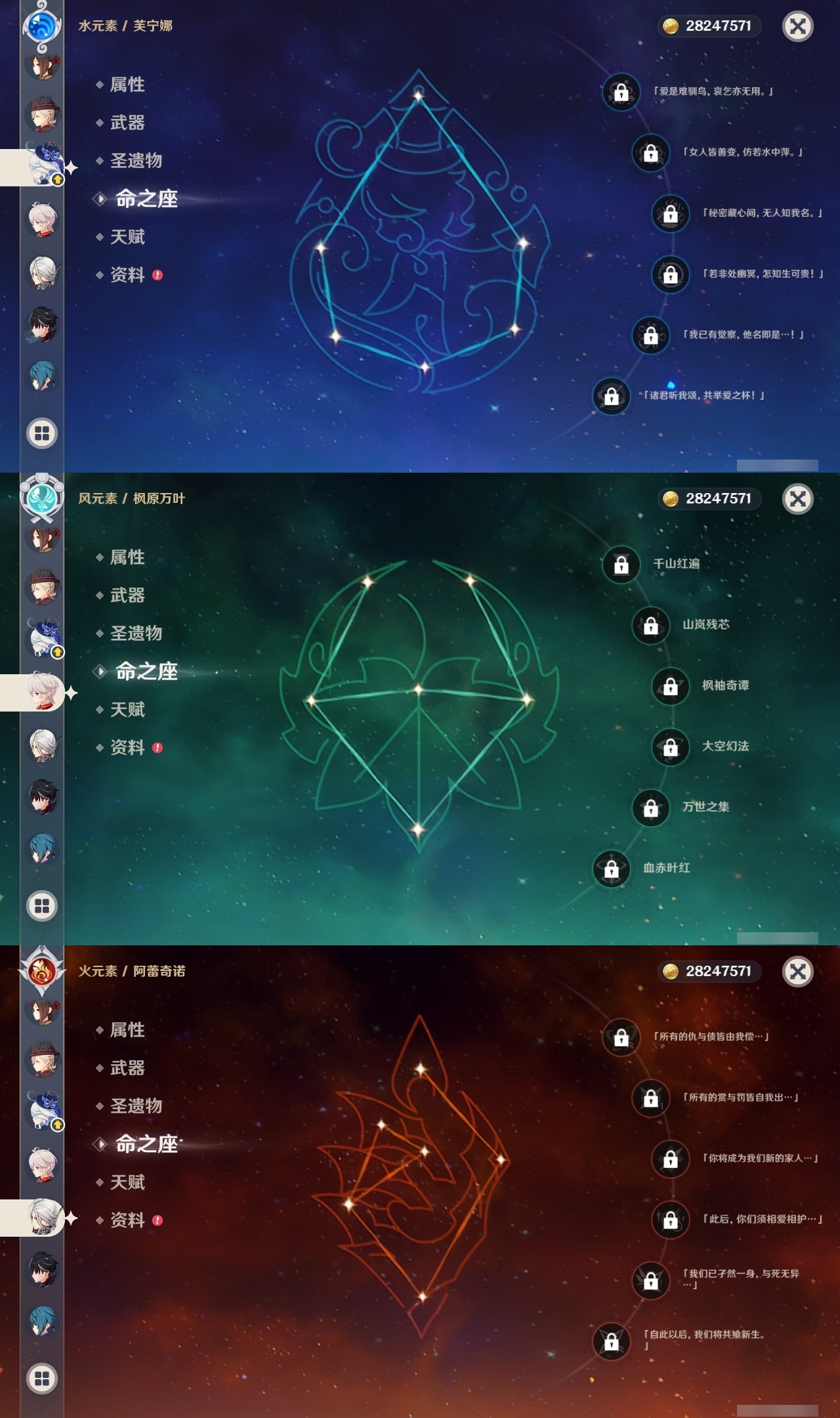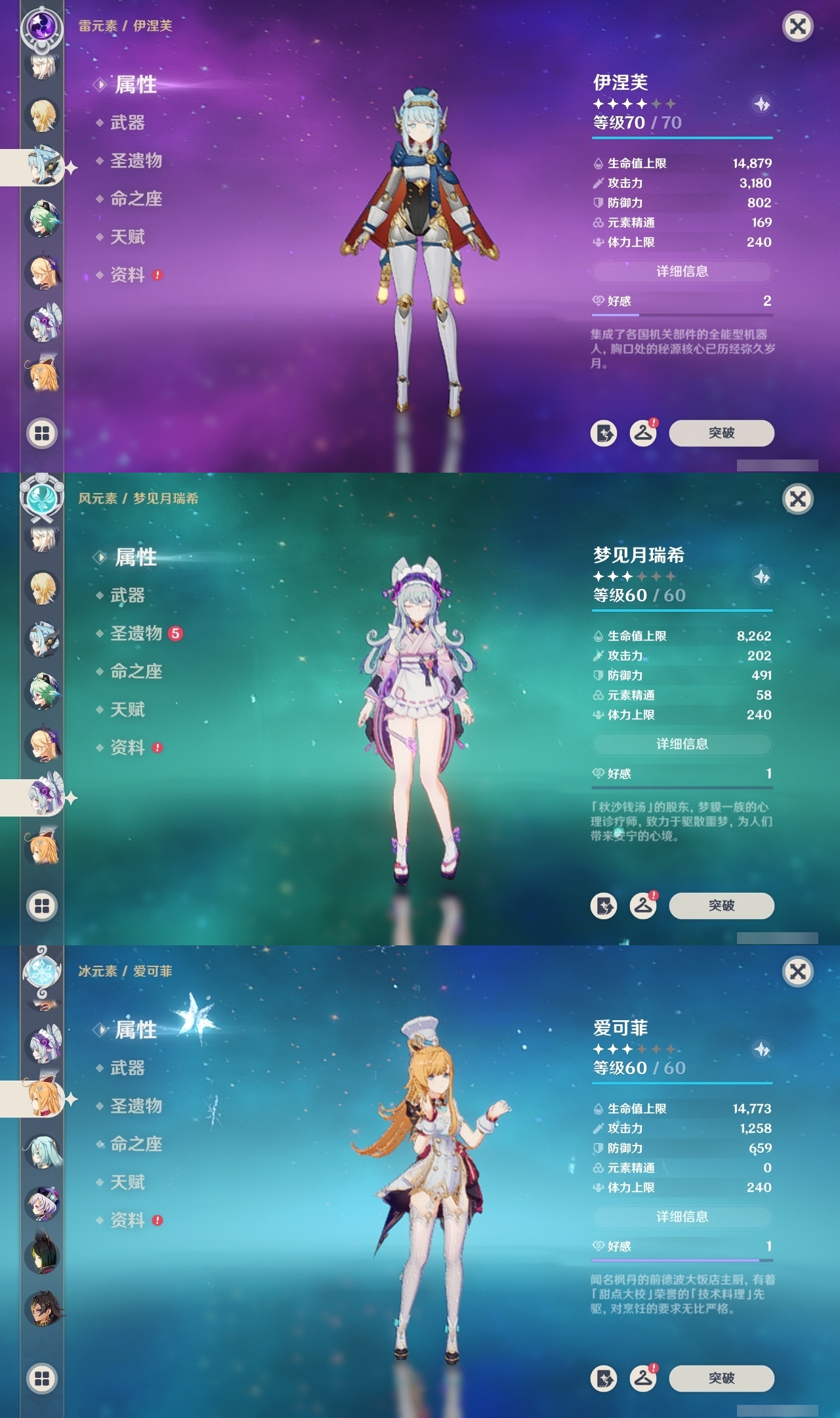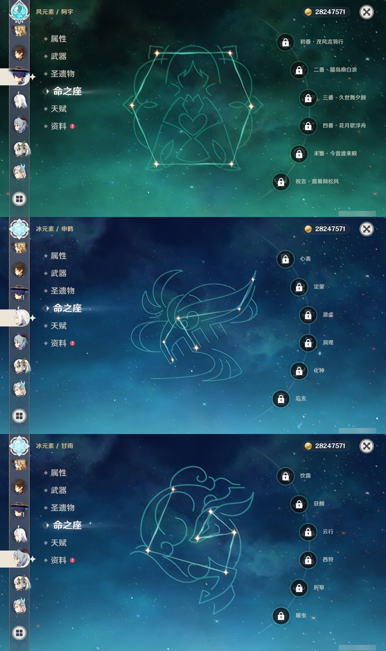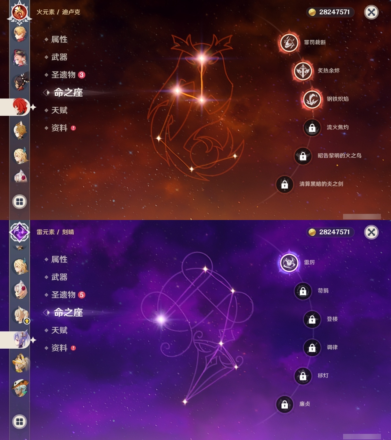 【原神】【lyys8260】冒险等级:60,五星数量:48,五星角色:七七 5命迪卢克 3命莫娜 3命迪希雅 1命那维莱特 1命刻晴 1命提纳里 1命琴珊瑚宫心海希诺宁神里绫华宵宫钟离梦见月瑞希申鹤神里绫人林尼莱欧斯利夜兰芙宁娜娜维娅千织爱可菲阿蕾奇诺妮露伊涅芙纳西妲流浪者枫原万叶甘雨胡桃雷电将军__五星武器:岩峰巡歌最初的大魔术万世流涌大典金流监督裁断阿莫斯之弓不灭月华风鹰剑护摩之杖狼的末路四风原典雾切之回光薙草之稻光终末嗟叹之诗息灾圣显之钥__四星角色:班尼特 6命行秋 6命香菱 6命久岐忍 6命鹿野院平藏 6命凝光 6命砂糖 6命多莉 6命柯莱 6命芭芭拉 6命早柚 6命五郎 6命烟绯 6命重云 6命诺艾尔 6命罗莎莉亚 6命雷泽 6命菲谢尔 6命北斗 6命嘉明 6命迪奥娜 5命莱依拉 5命琳妮特 5命珐露珊 4命坎蒂丝 4命卡维 4命云堇 4命辛焱 4命九条裟罗 3命绮良良 3命瑶瑶 3命菲米尼 3命赛索斯 3命米卡 2命夏洛蒂 2命夏沃蕾 2命塔利雅 2命卡齐娜 1命蓝砚 1命伊法 1命欧洛伦托马伊安珊爱诺