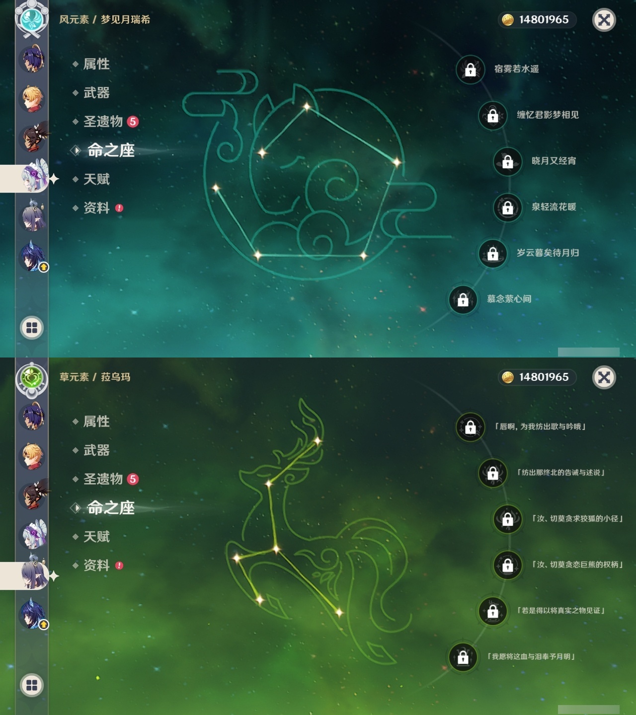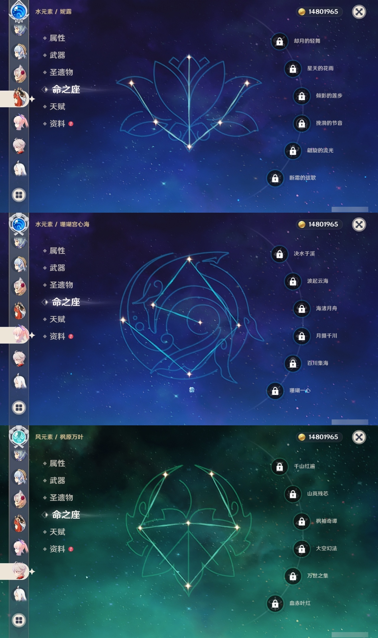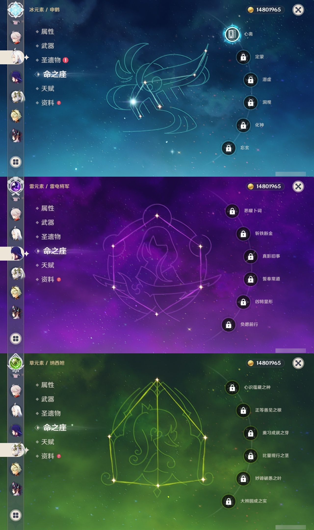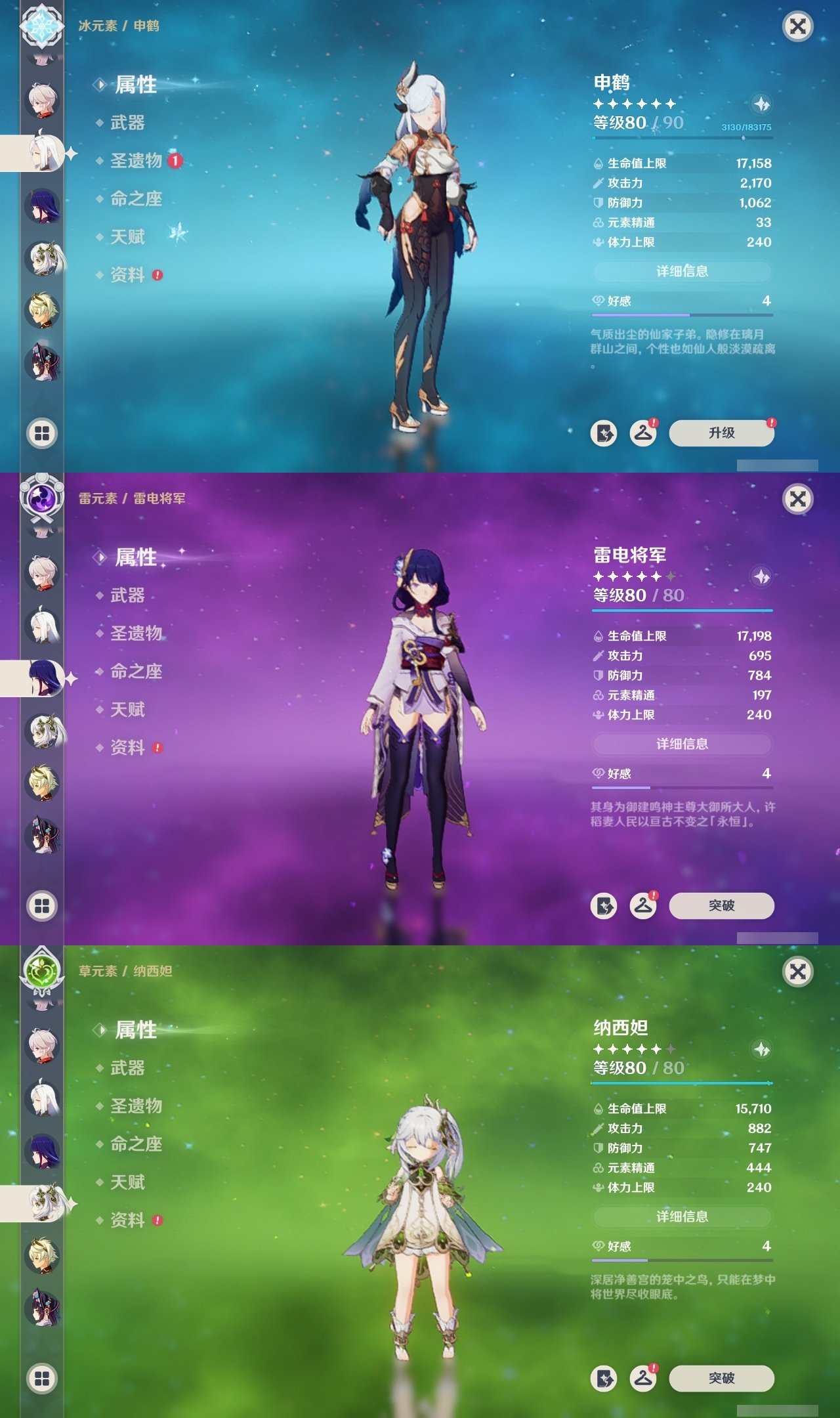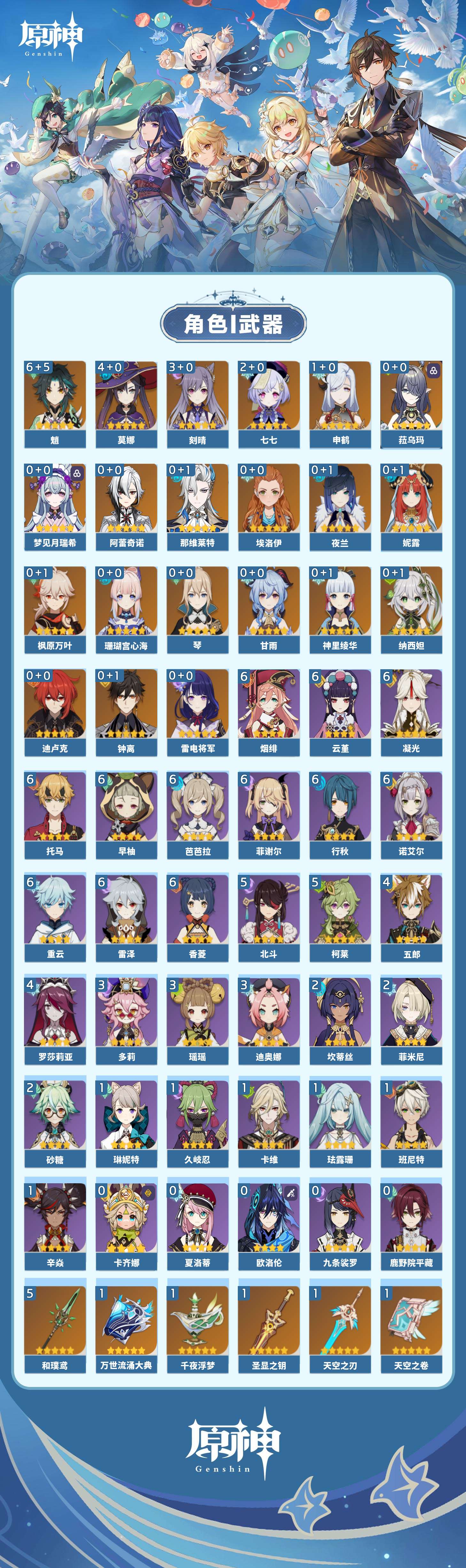 【原神】【lyys8270】冒险等级:57,五星数量:32,五星角色:魈 6命莫娜 4命刻晴 3命七七 2命申鹤 1命琴珊瑚宫心海神里绫华钟离梦见月瑞希那维莱特夜兰阿蕾奇诺妮露纳西妲菈乌玛迪卢克枫原万叶甘雨雷电将军__五星武器:和璞鸢 5精万世流涌大典苍古自由之誓风鹰剑天空之卷天空之刃雾切之回光贯虹之槊若水圣显之钥千夜浮梦__四星角色:行秋 6命香菱 6命凝光 6命芭芭拉 6命云堇 6命早柚 6命托马 6命烟绯 6命重云 6命诺艾尔 6命雷泽 6命菲谢尔 6命柯莱 5命北斗 5命五郎 4命罗莎莉亚 4命迪奥娜 3命瑶瑶 3命多莉 3命砂糖 2命坎蒂丝 2命菲米尼 2命班尼特 1命久岐忍 1命珐露珊 1命卡维 1命辛焱 1命琳妮特 1命埃洛伊卡齐娜九条裟罗鹿野院平藏欧洛伦夏洛蒂