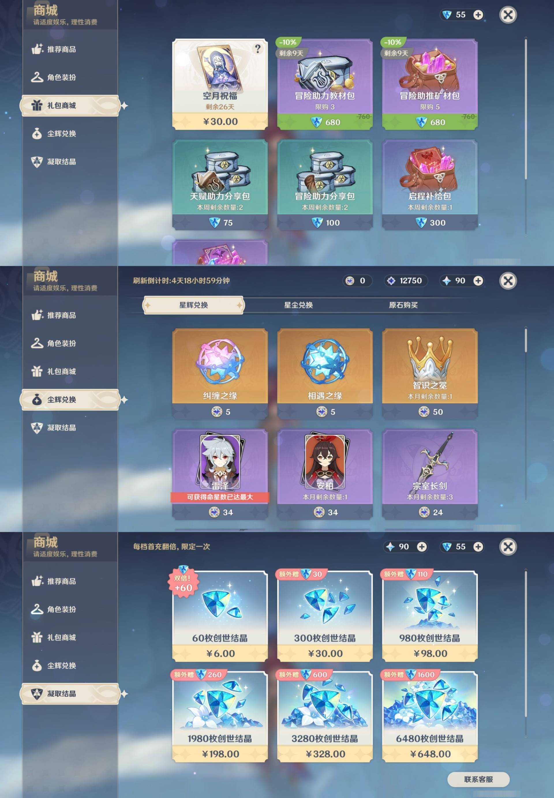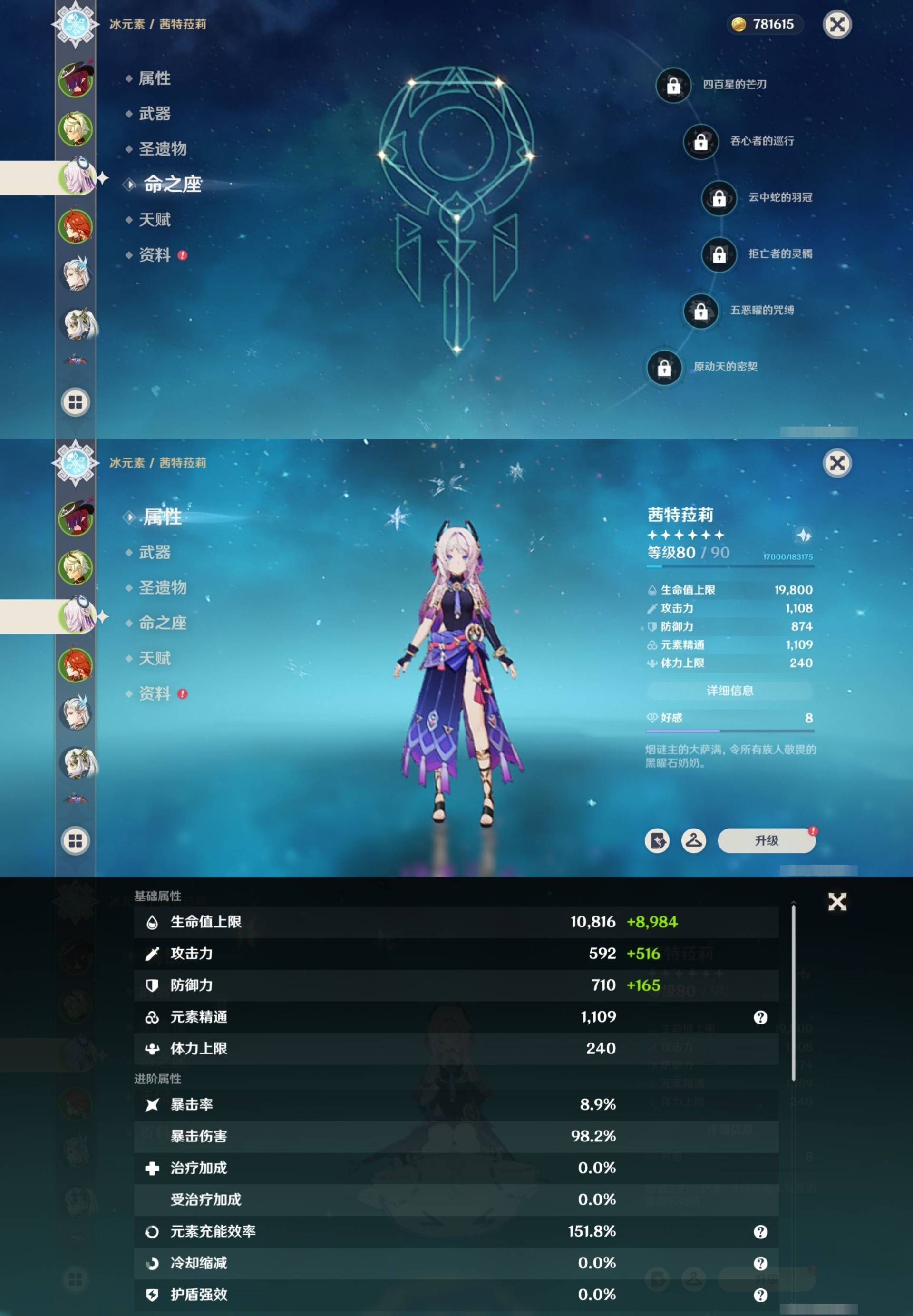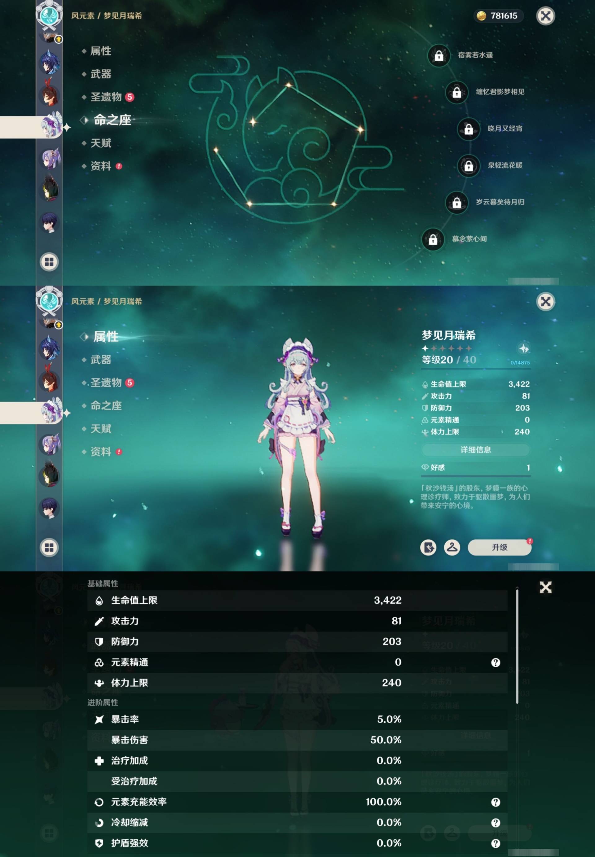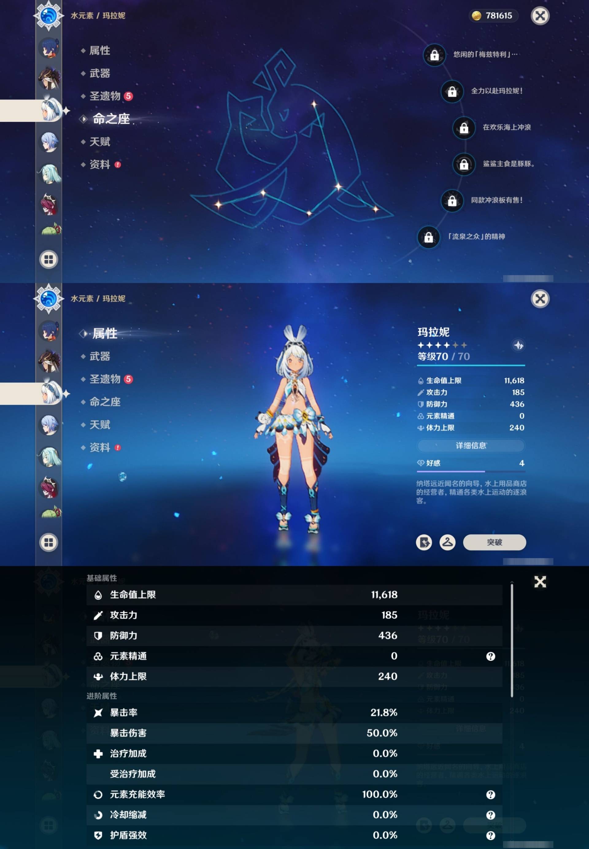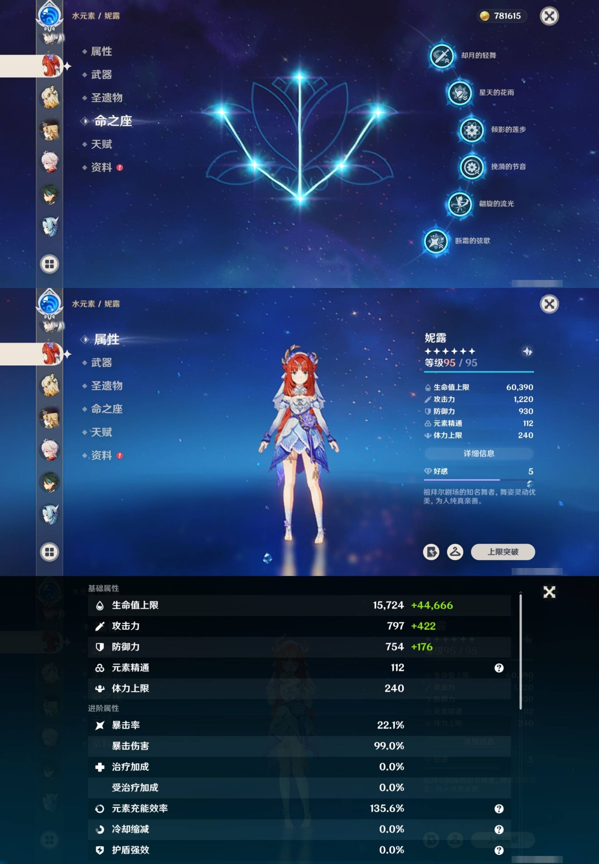 [14030528]164黄 风:6命恰斯卡,2命枫原万叶,6命魈,6命琴,0命梦见月瑞希 火:0命玛薇卡,6命胡桃,1命宵宫,6命迪卢克,1命迪希雅 水:6命那维莱特,6命妮露,1命芙宁娜,3命达达利亚,0命夜兰,0命玛拉妮,0命神里绫人,6命莫娜 冰:0命茜特菈莉,6命优菈,2命神里绫华,6命七七 岩:0命希诺宁,0命娜维娅,0命钟离 雷:6命雷电将军,0命赛诺,3命刻晴 草:2命纳西妲,0命菈乌玛,3命艾尔海森,5命提纳里 弓:精1星鹫赤羽,精3飞雷之弦振,精1冬极白星,精1阿莫斯之弓,精1若水,精1天空之翼 法器:精2万世流涌大典,精4千夜浮梦,精1纺夜天镜,精1祭星者之望,精1冲浪时光,精1图莱杜拉的回忆,精1四风原典,精1天空之卷 单手剑:精1裁叶萃光,精1圣显之钥,精1天空之刃,精1雾切之回光,精1雾切之回光,精1波乱月白经津,精1风鹰剑 双手剑:精3松籁响起之时,精1狼的末路,精2天空之傲 长柄武器:精1赤沙之杖,精1薙草之稻光,精1和璞鸢,精5护摩之杖,精2天空之脊 【角色皮肤】 五星角色:妮露-莎邦之息 四星角色:行秋-雨化竹身