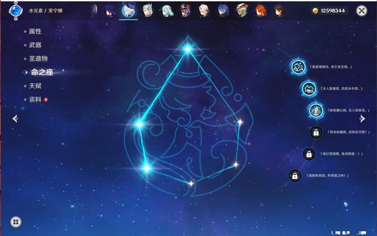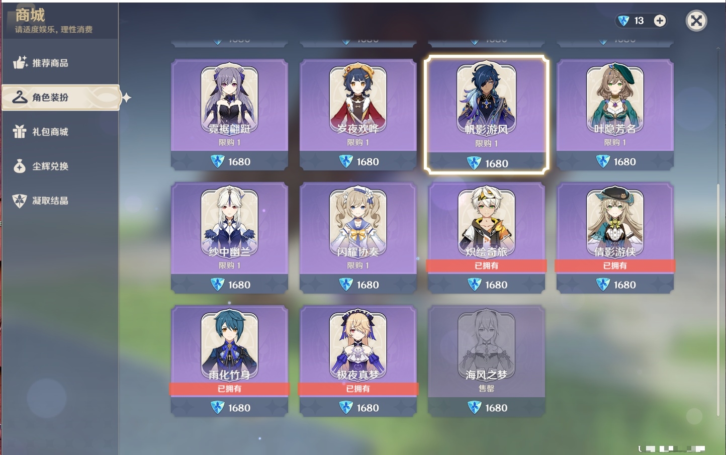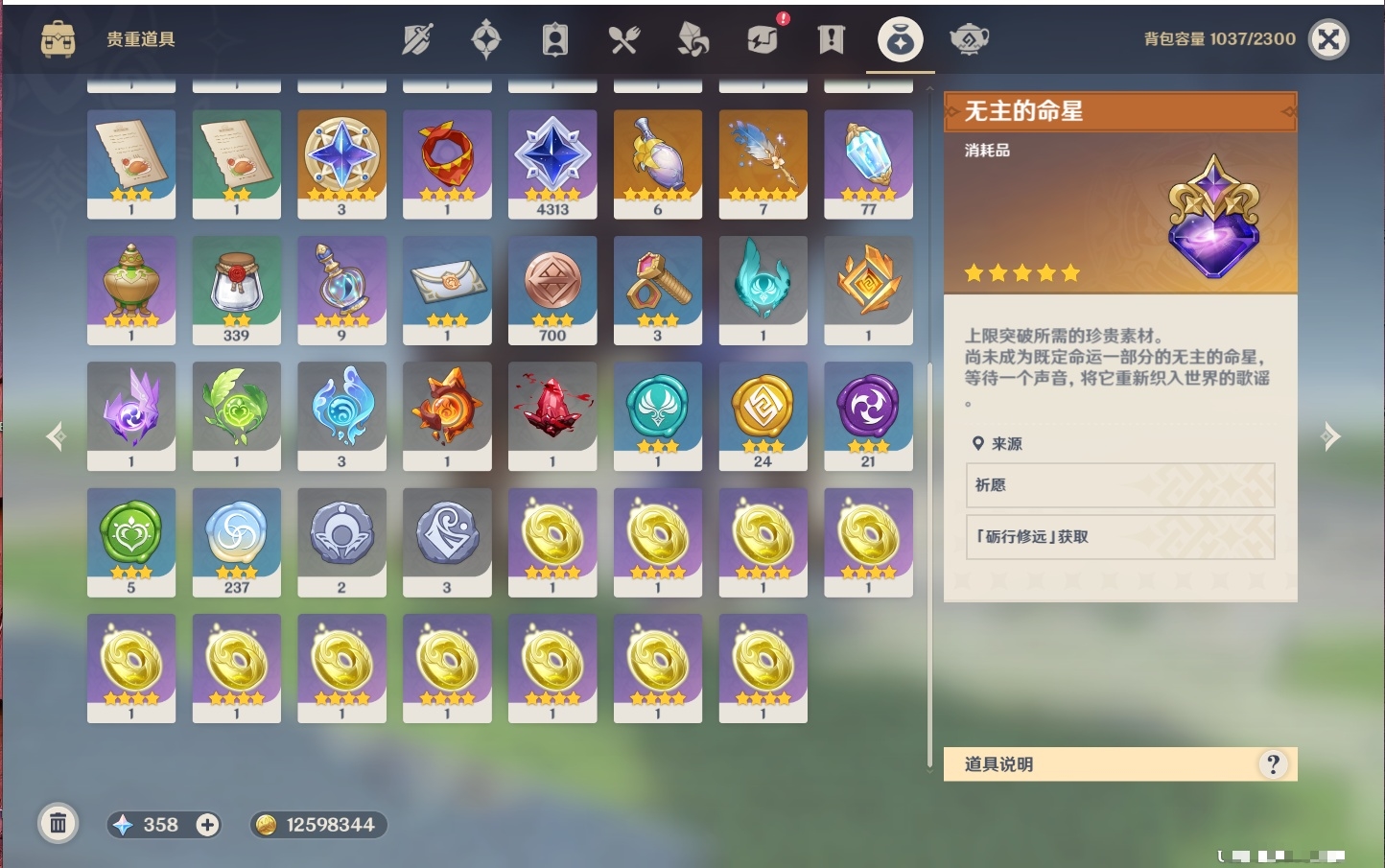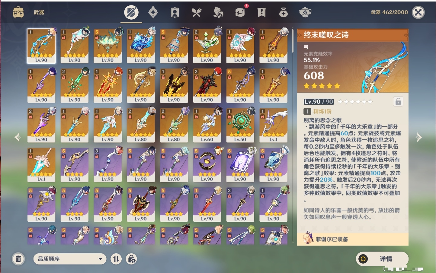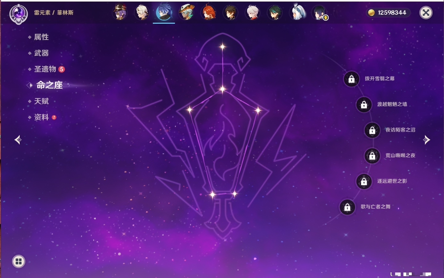[14030537]135黄 风:6命闲云,6命流浪者,0命温迪,0命枫原万叶,0命魈,4命琴,0命恰斯卡 火:0命玛薇卡,5命迪希雅,0命宵宫,0命阿蕾奇诺,0命可莉,1命迪卢克 水:3命芙宁娜,3命那维莱特,0命玛拉妮,0命夜兰,3命莫娜 冰:2命神里绫华,5命七七 岩:2命娜维娅,0命钟离 雷:6命克洛琳德,3命雷电将军,0命菲林斯,6命刻晴,0命赛诺 草:2命纳西妲,2命菈乌玛,3命提纳里 弓:精1终末嗟叹之诗,精1天空之翼,精1阿莫斯之弓 法器:精5鹤鸣余音,精1万世流涌大典,精5图莱杜拉的回忆,精2千夜浮梦,精1天空之卷,精1碧落之珑 单手剑:精5赦罪,精1圣显之钥,精2雾切之回光,精1苍古自由之誓,精1天空之刃,精2裁叶萃光 双手剑:精1焚曜千阳,精1裁断,精1无工之剑,精2狼的末路,精1天空之傲 长柄武器:精1赤沙之杖,精1薙草之稻光,精2和璞鸢,精2天空之脊,精1柔灯挽歌 【角色皮肤】 五星角色:琴-海风之梦 四星角色:班尼特-炽绘奇旅,绮良良-倩影游侠,行秋-雨化竹身,菲谢尔-极夜真梦