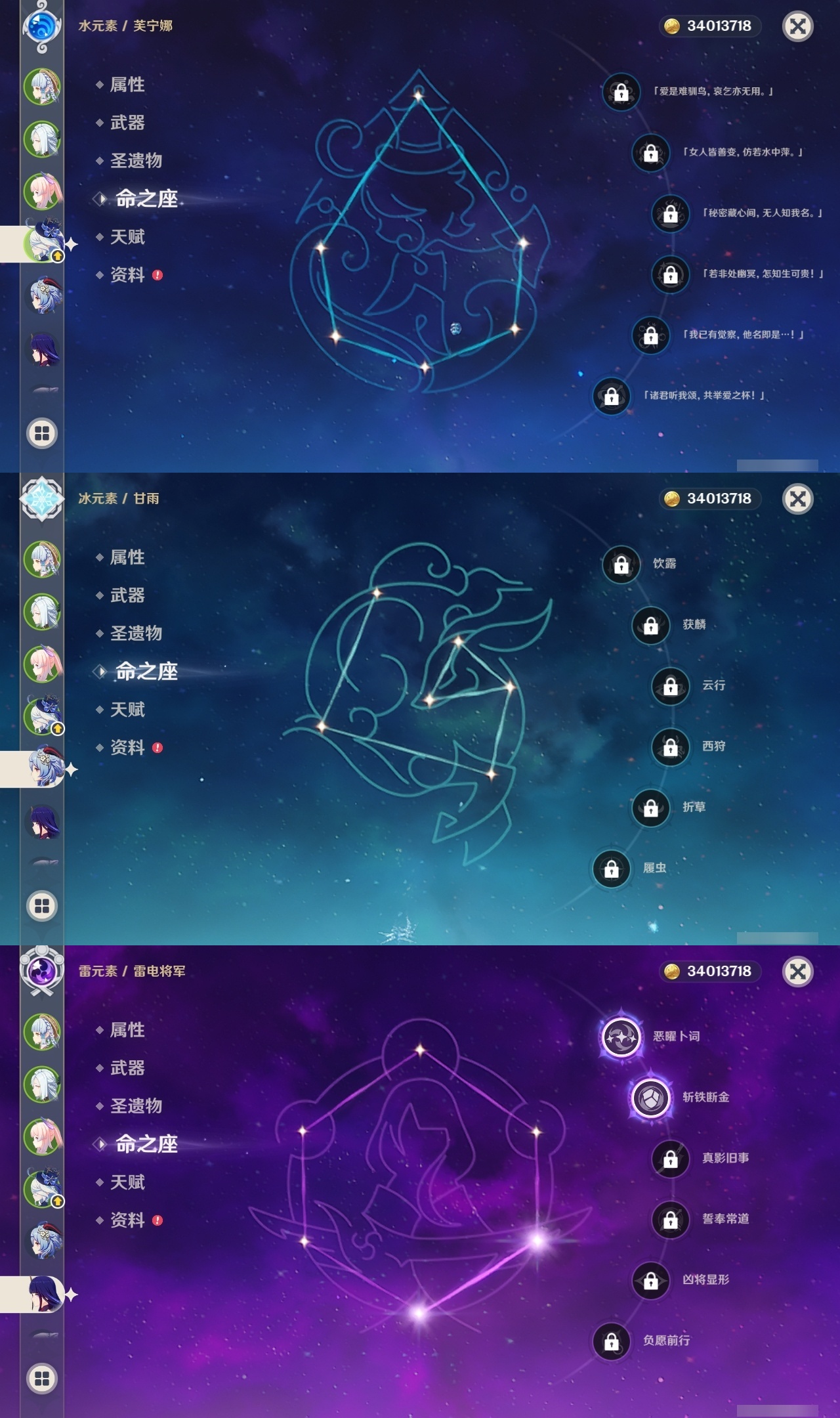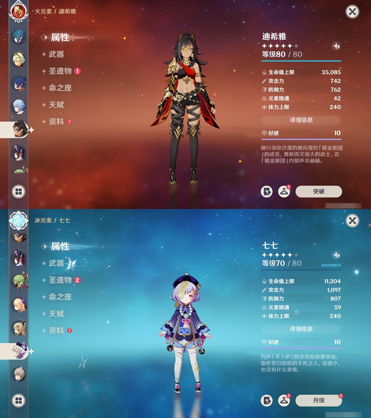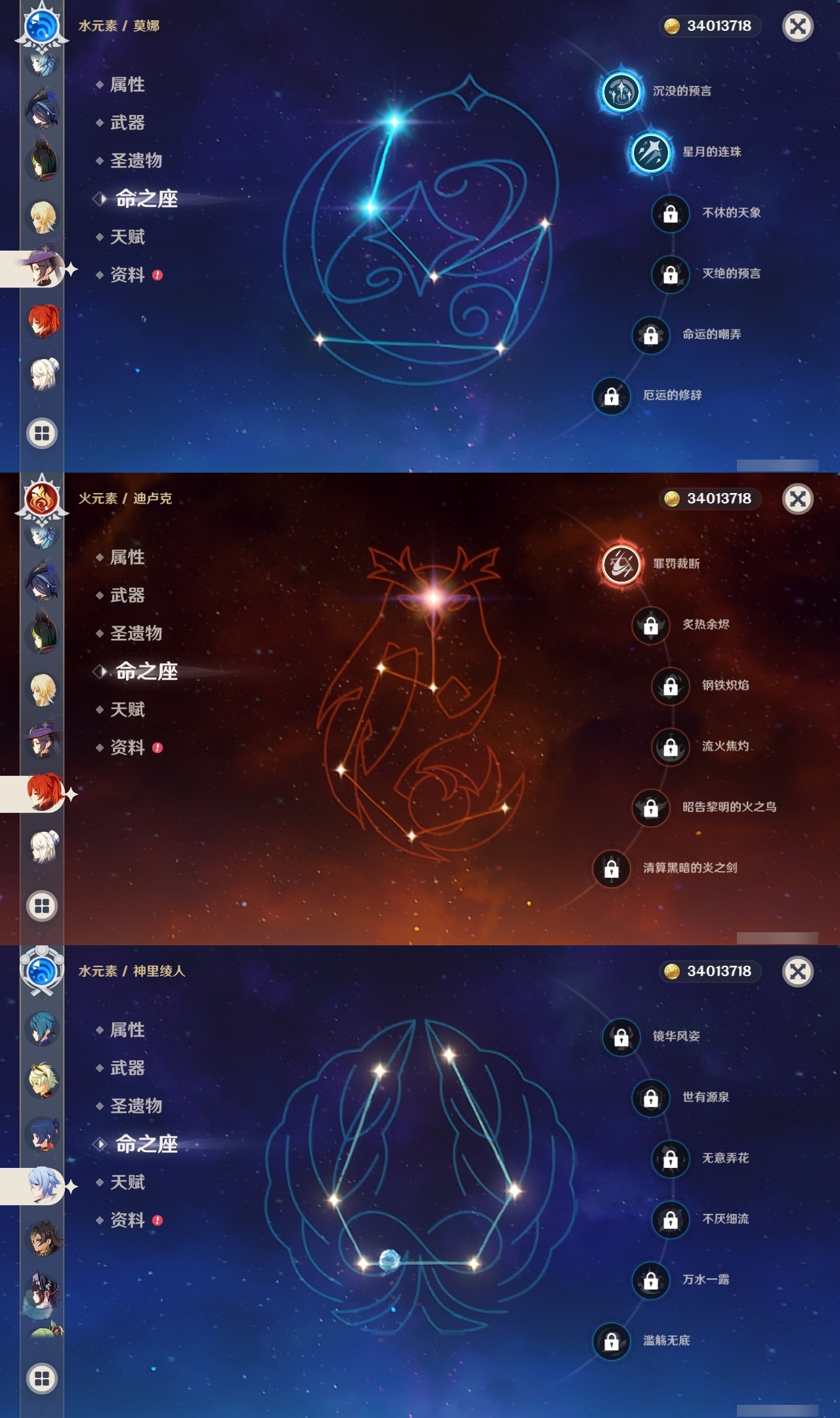 【原神】【lyys8279】冒险等级:60,五星数量:47,五星角色:神里绫华 6命琴 5命迪希雅 2命那维莱特 2命雷电将军 2命莫娜 2命迪卢克 1命刻晴 1命纳西妲 1命七七珊瑚宫心海温迪宵宫优菈钟离梦见月瑞希申鹤神里绫人夜兰芙宁娜娜维娅提纳里闲云千织妮露流浪者枫原万叶甘雨克洛琳德__五星武器:天空之傲 3精天空之卷 2精天空之刃 2精万世流涌大典静水流涌之辉鹤鸣余音不灭月华和璞鸢护摩之杖四风原典天空之脊天空之翼雾切之回光薙草之稻光若水猎人之径圣显之钥__四星角色:班尼特 6命行秋 6命九条裟罗 6命香菱 6命久岐忍 6命鹿野院平藏 6命凝光 6命迪奥娜 6命砂糖 6命瑶瑶 6命多莉 6命柯莱 6命芭芭拉 6命云堇 6命早柚 6命托马 6命五郎 6命烟绯 6命重云 6命辛焱 6命诺艾尔 6命罗莎莉亚 6命雷泽 6命菲谢尔 6命北斗 6命嘉明 6命绮良良 5命莱依拉 4命坎蒂丝 4命夏沃蕾 4命珐露珊 3命琳妮特 3命卡齐娜 2命米卡 2命菲米尼 2命夏洛蒂 2命埃洛伊卡维欧洛伦伊安珊